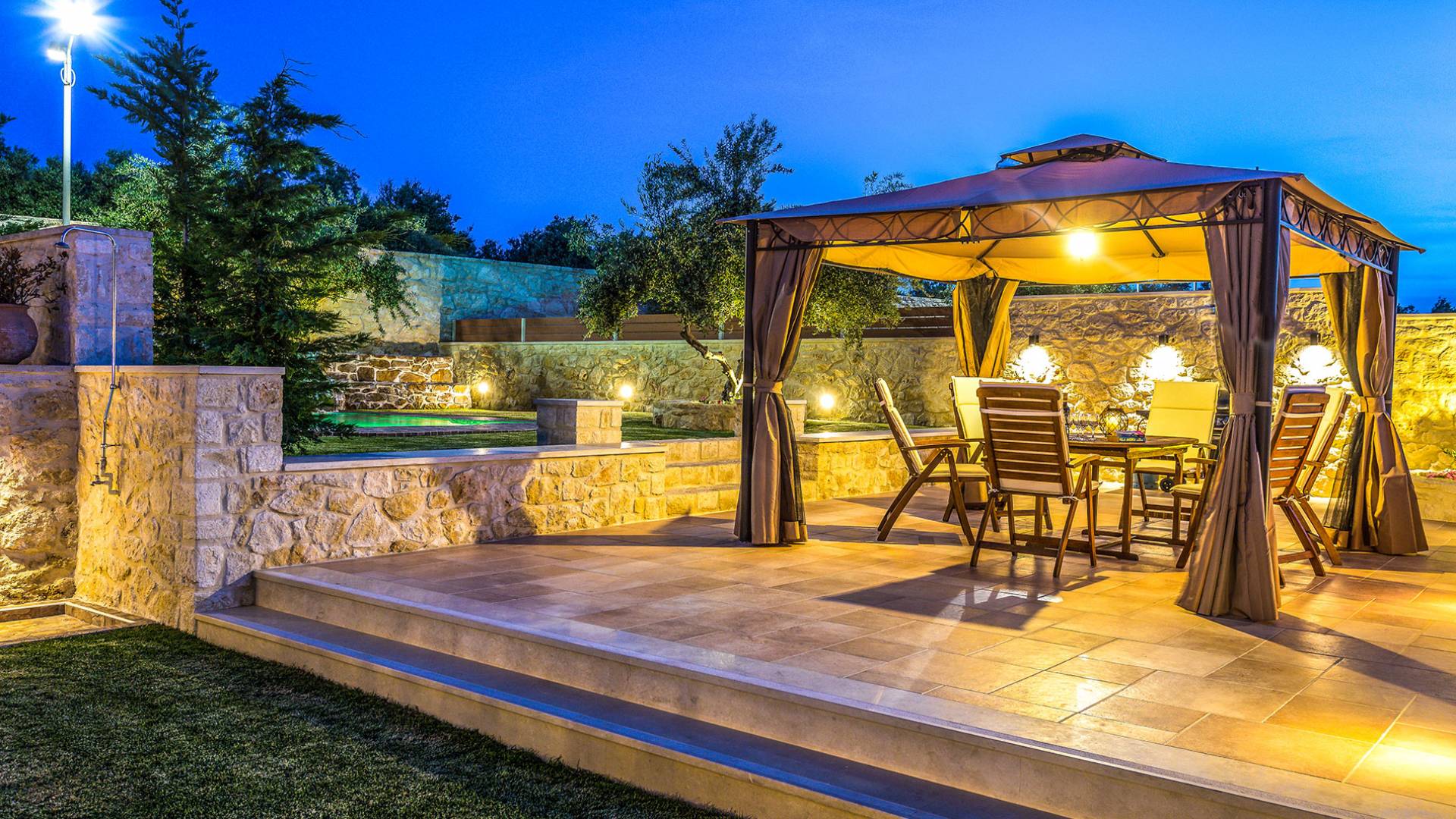 Außenbereich: Der Garten verfügt über einen 30 m² langen privaten Swimmingpool und ein großes Grundstück mit Rasenfläche zum Spielen für Kinder. Das Gelände ist durch eine traditionelle Steinmauer gesichert, die das äußere Design der Villa ergänzt und gleichzeitig Privatsphäre gewährleistet. Rund um den privaten Swimmingpool stehen Liegestühle und Sonnenschirme für Ihren Komfort bereit, damit Sie sich in Ihrem eigenen Garten entspannen und ungestört die Sonne genießen können. Jede Villa verfügt über einen eigenen privaten Parkplatz und alle Einheiten wurden speziell für Gäste mit eingeschränkter Mobilität entwickelt. Grillmöglichkeiten sind vorhanden und jede Villa ist komplett mit Gartenmöbeln ausgestattet, perfekt für Mahlzeiten im Freien.