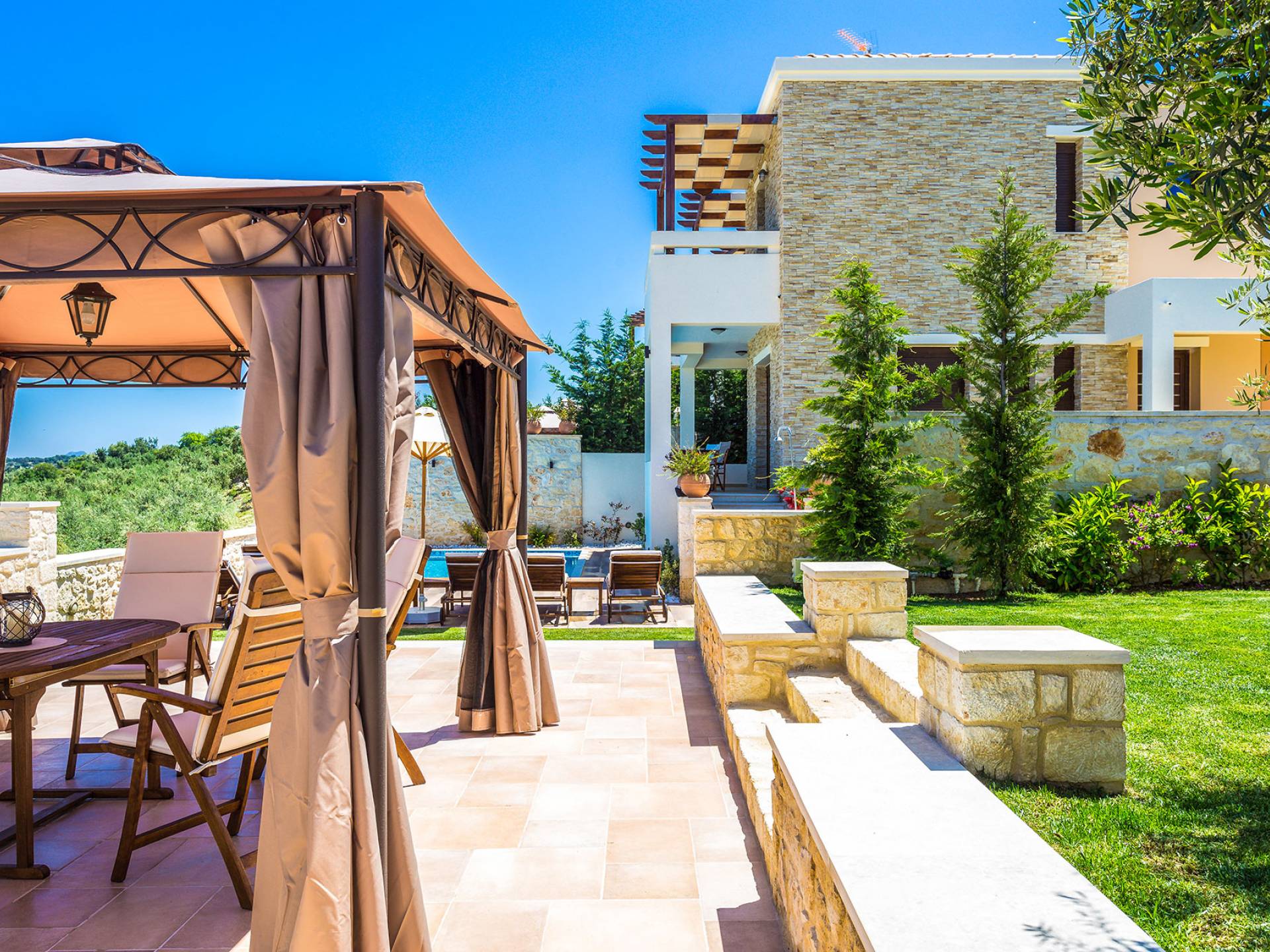 Diese attraktiven Villen verfügen über große Balkone und Terrassen, die einen 360-Grad-Blick auf die atemberaubende Landschaft bieten. Roupes Villas Rethymno bietet eine herrlich entspannende Atmosphäre und ist das ideale Ziel für Touristen, romantische Kurzurlaube und für Familien mit kleinen Kindern. Die einzigartigen Vorteile der Roupis-Villen sind nach unseren Angaben die Lage, die es Ihnen ermöglicht, sich zu entspannen, indem Sie die spektakuläre Aussicht genießen, die vollständige Privatsphäre für die Gäste und der perfekte Garten- und Poolbereich! Die Villen sind so ausgestattet, dass sie alle Ihre Bedürfnisse erfüllen.