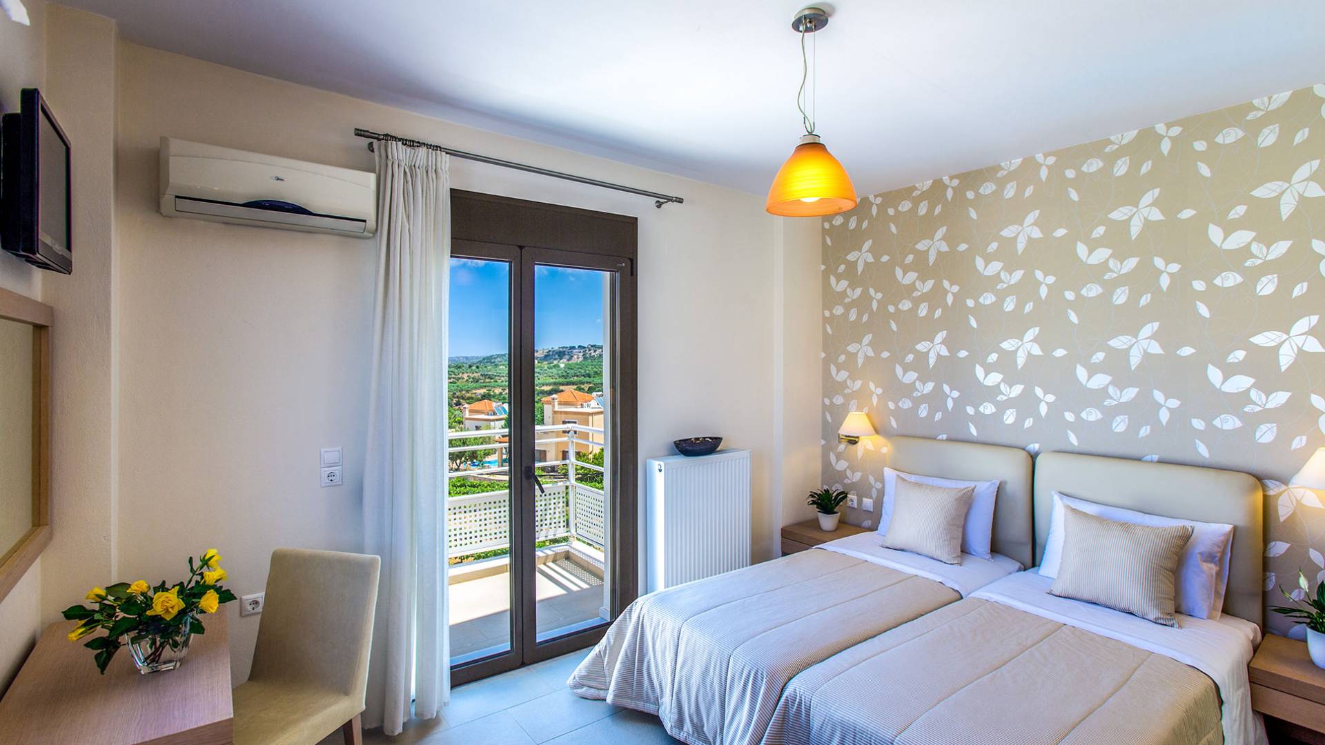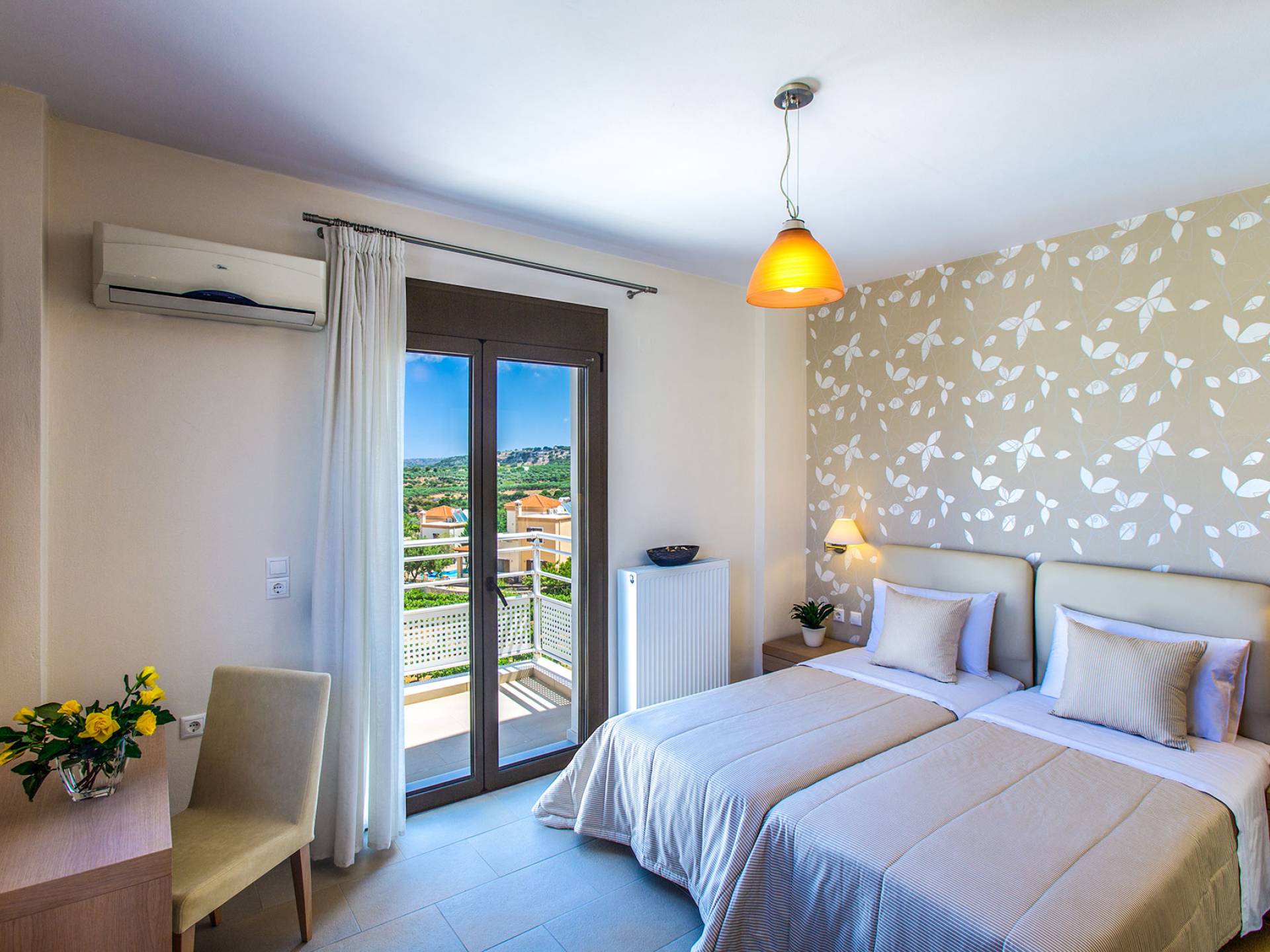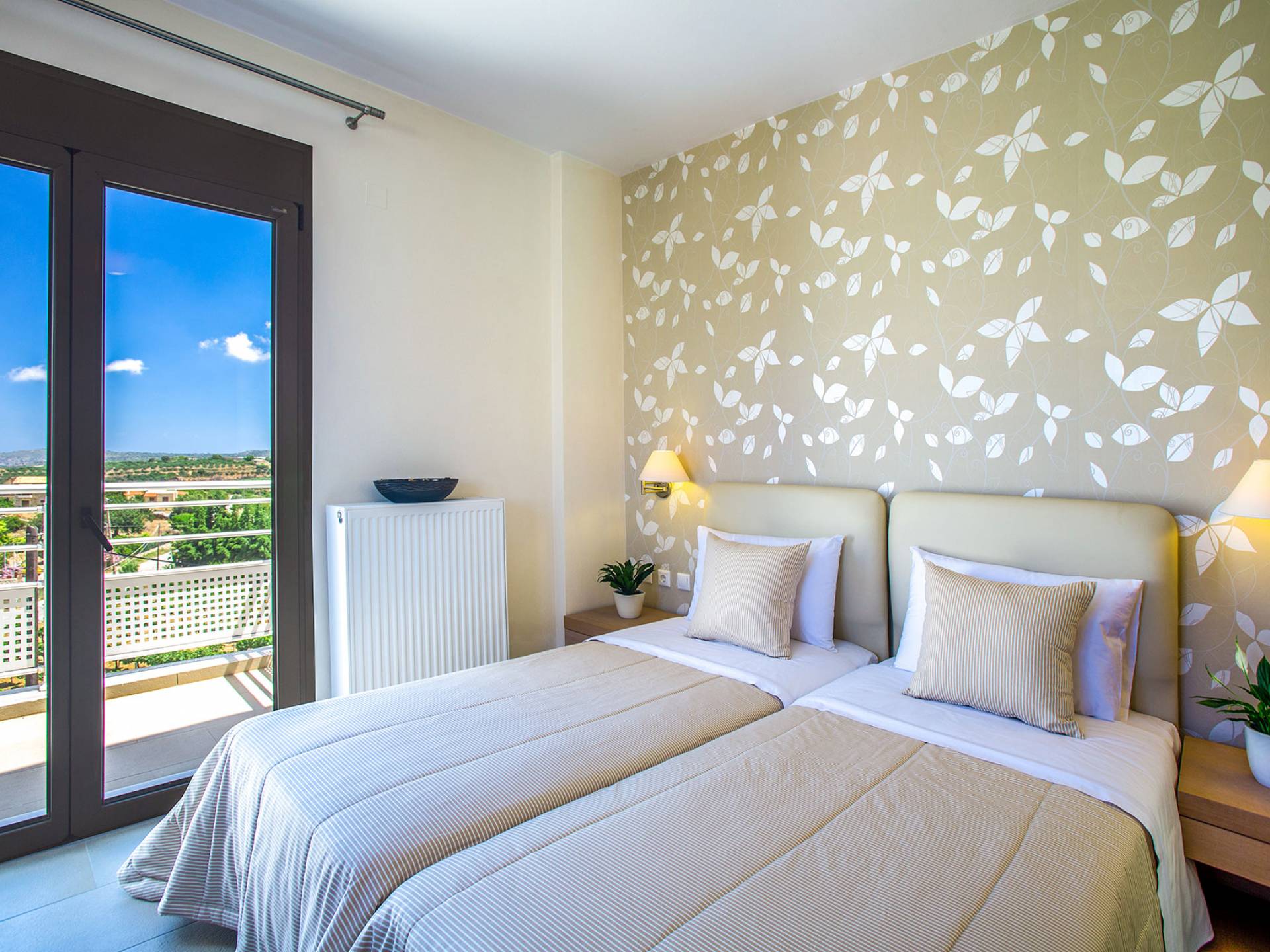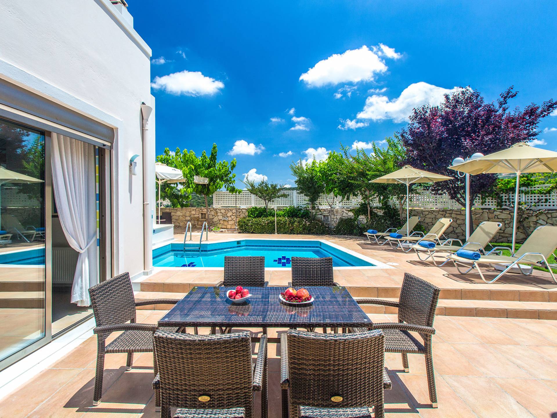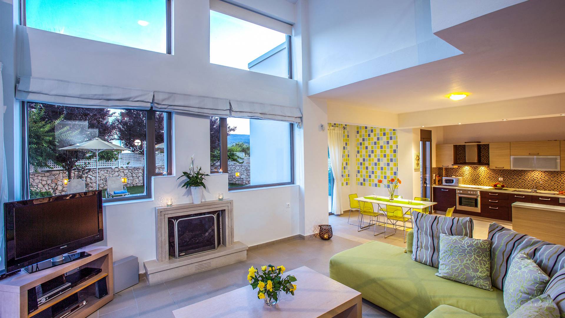 Auf einem Hügel mit 360-Grad-Blick über die Weinberge, Olivenbäume und die Landschaft mit ungestörtem Blick auf das Meer liegt diese herrliche Marigo Villa Rethymno. Das Anwesen verfügt über große, vollständig umzäunte Gärten mit Rasenflächen und bunten Pflanzen. Auf der Rückseite befinden sich großzügige Rasenflächen, ideal für Kinder zum Spielen. Marigo Villa Rethymno mit seinen eleganten, geräumigen Zimmern und großen Außenterrassen ist perfekt für Familienurlaub, Firmenfeiern oder besondere Veranstaltungen. Marigo Villa Rethymno ist ideal für die ganzjährige Vermietung mit Klimaanlage in allen Räumen im Sommer und Kamin im Wohnzimmer und Warmluftheizung im Winter für alle Räume.