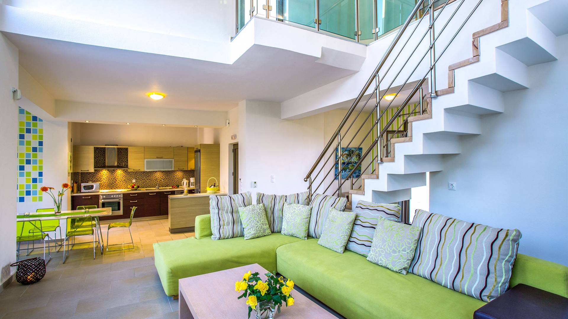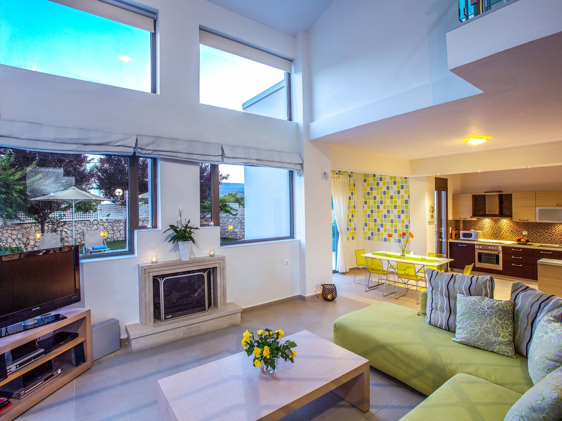Marigo Villa Rethymno überblickt das Meer und den Berg Psiloritis. Die Villa verfügt über komfortable und moderne Einrichtungen und liegt in einer sehr ruhigen Umgebung und bietet eine reiche Ausstattung und interessante Architektur. Platz für 6-9 Personen in den 3 Schlafzimmern und 3 Sofas. Es besteht auch die Möglichkeit, in allen Schlafzimmern ein Zustell- oder Babybett aufzustellen. Die elegante zweistöckige Villa verfügt über eine Sonnenterrasse und einen Balkon. Das Hauptschlafzimmer verfügt über ein großes Badezimmer mit Whirlpool und Dusche. Bademäntel, Strandtücher, Toilettenartikel und Hausschuhe sind vorhanden. Die Villa ist voll klimatisiert und verfügt über kostenloses WLAN, Sat-TV und einen CD-/DVD-Player. Jedes verfügt über ein Wohnzimmer mit Kamin und eine Küche mit Waschmaschine, Elektroherd, Kühl-/Gefrierschrank und Toaster.