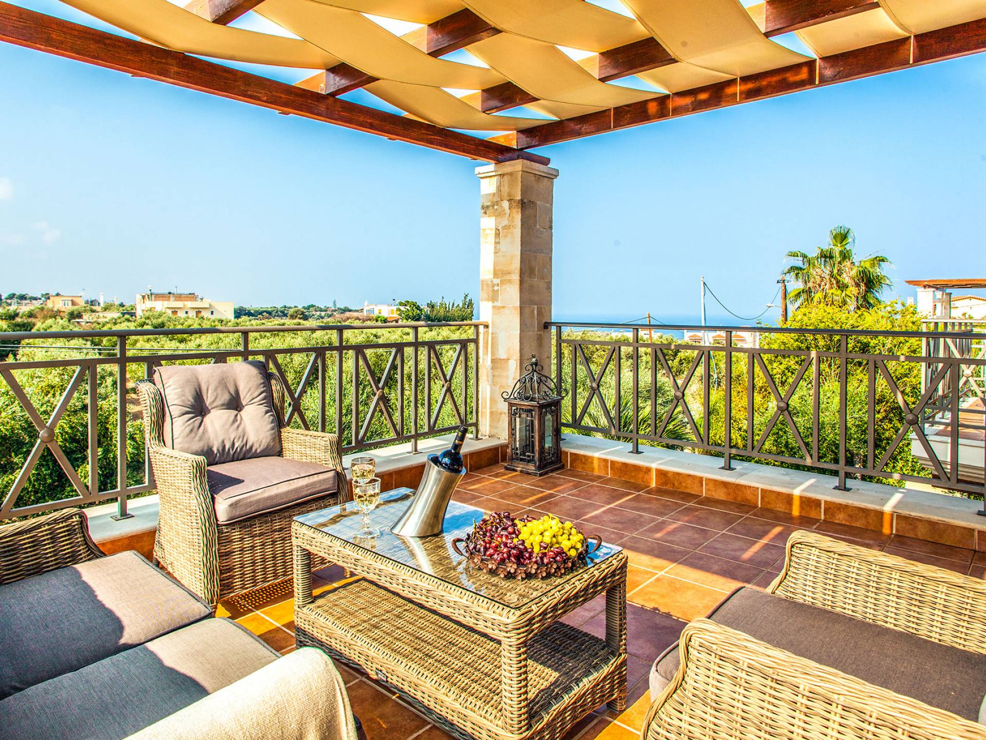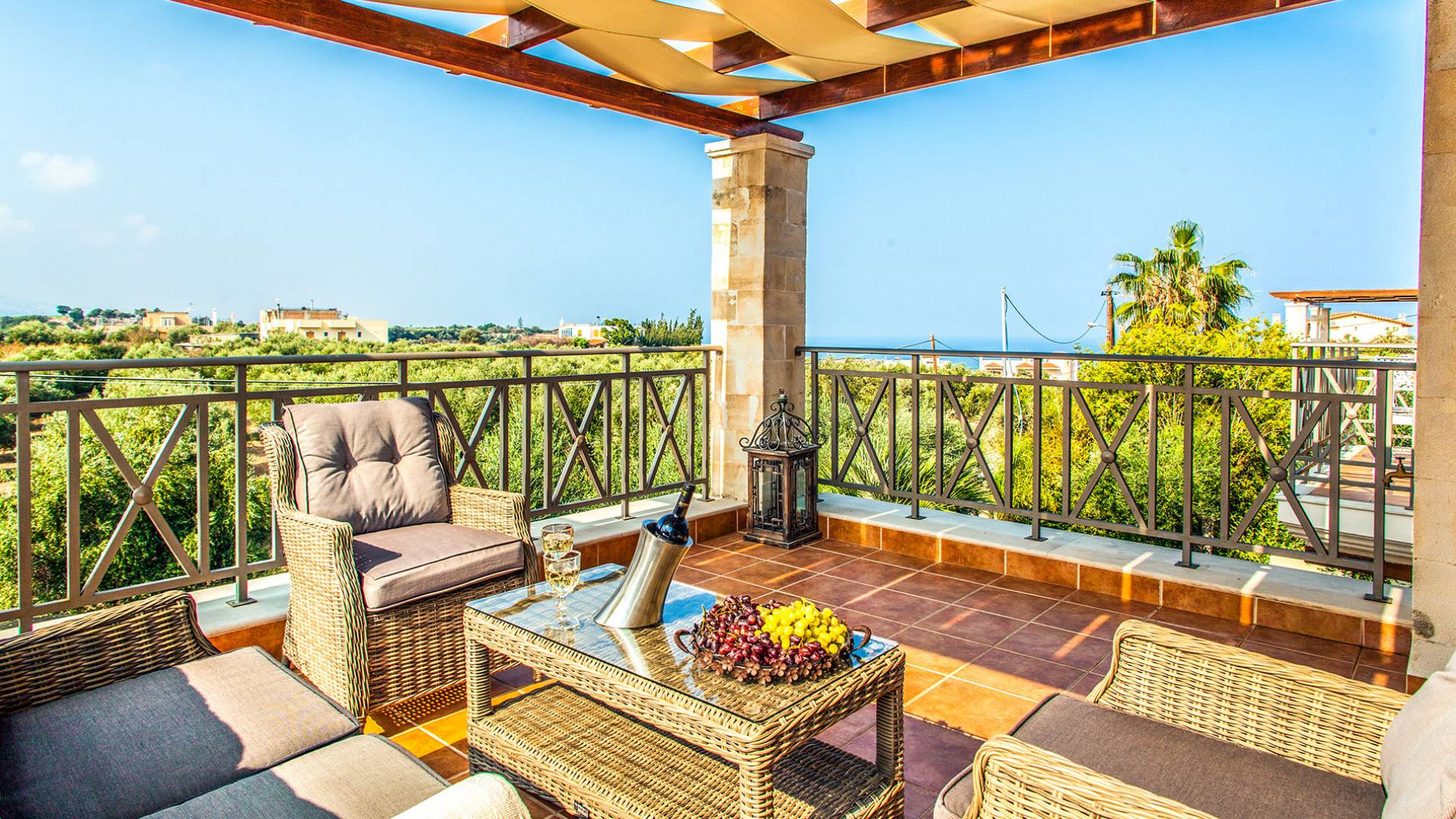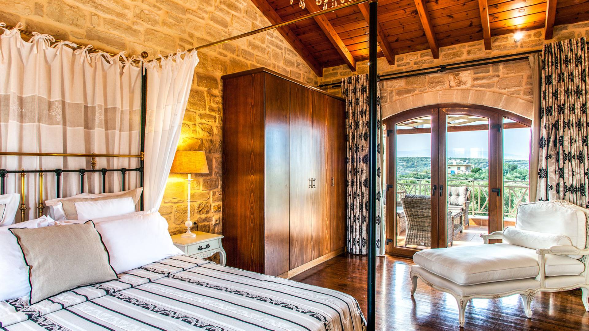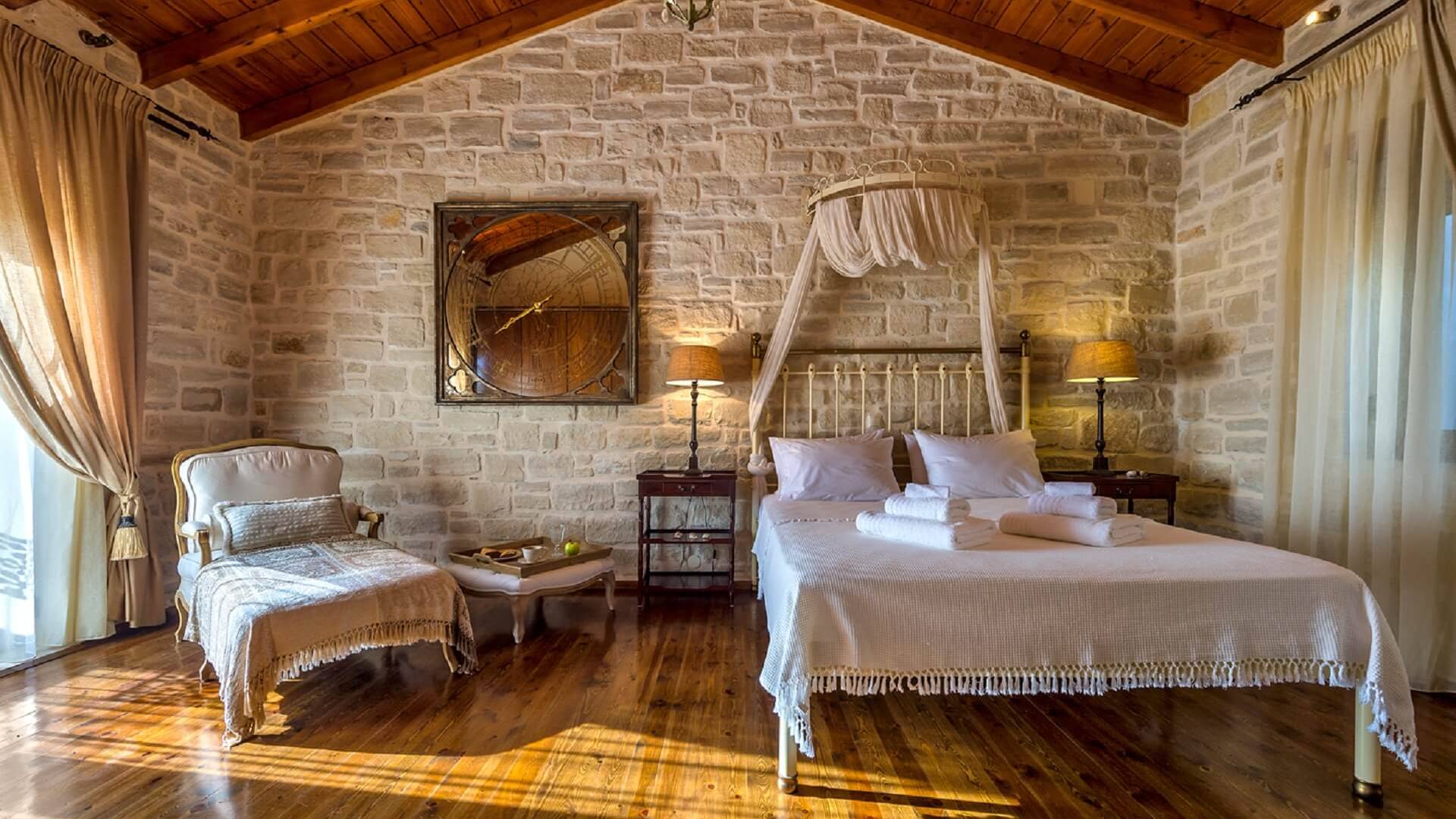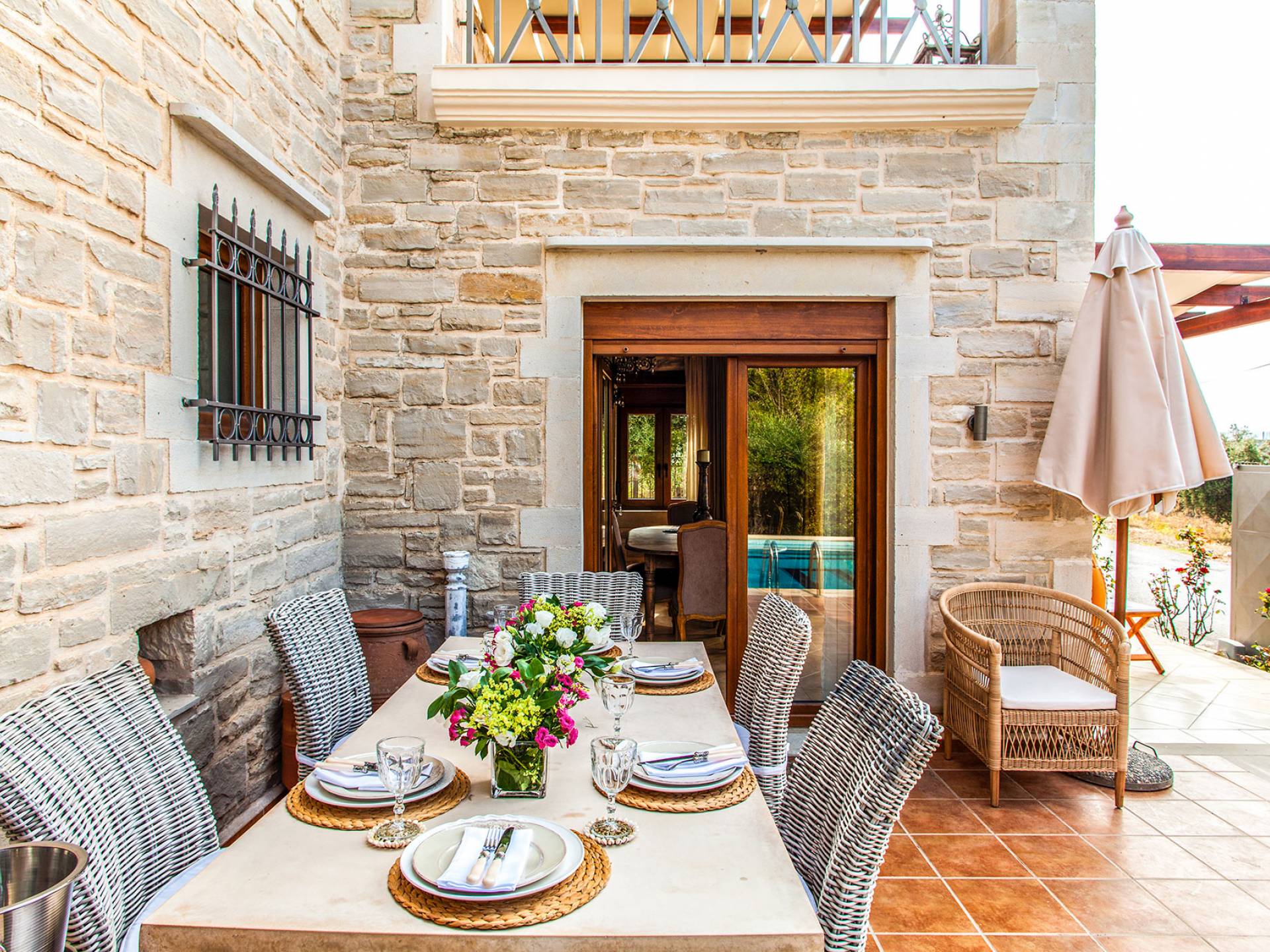Daher ist Okalia Villa Rethymno ein ideales Reiseziel für Freunde, Paare und Familien, da jede Residenz Platz für bis zu sechs Personen bietet. Die Steinwände werden harmonisch mit den Holzelementen kombiniert und die Räume werden von einer raffinierten ländlichen Atmosphäre dominiert. Alle Schlafzimmer haben Balkone und Veranden mit Meer- und Bergblick.