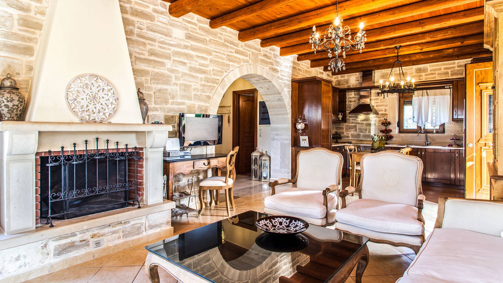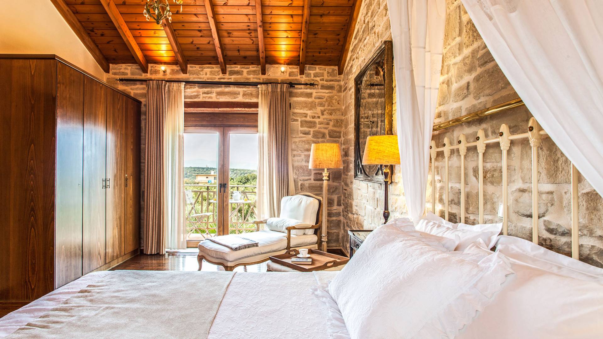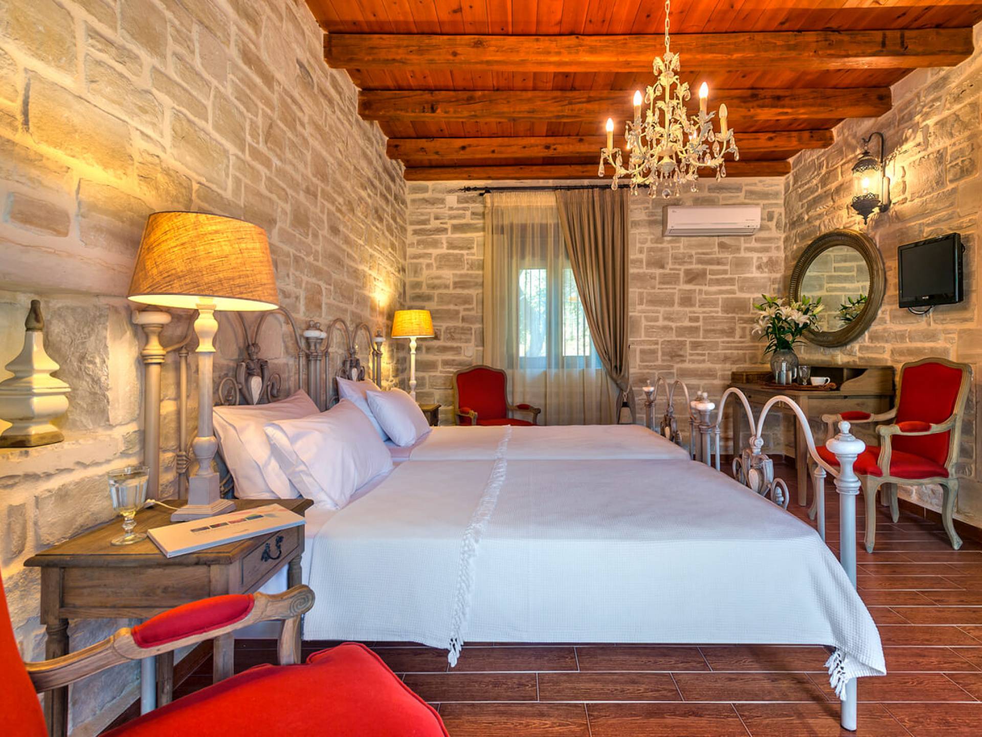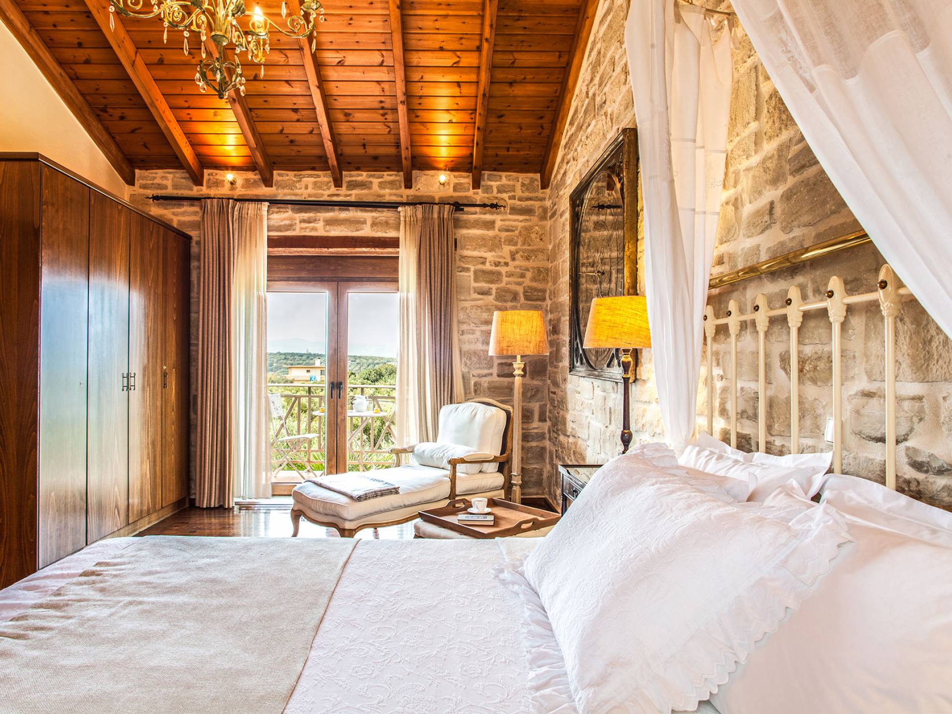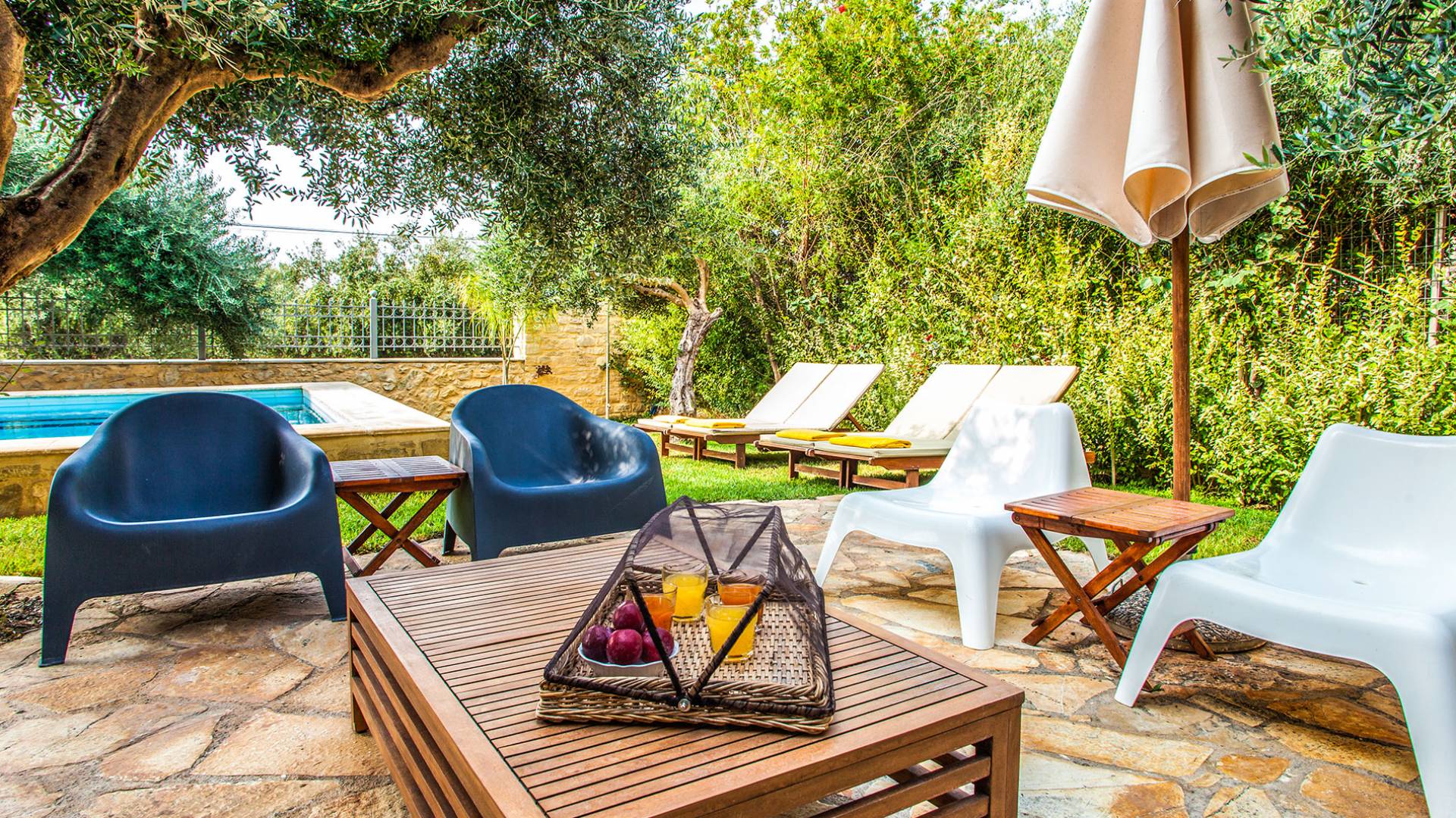 Daher ist Okalia Villa Rethymno ein ideales Reiseziel für Freunde, Paare und Familien, da jede Residenz Platz für bis zu sechs Personen bietet. Die Steinwände werden harmonisch mit den Holzelementen kombiniert und die Räume werden von einer raffinierten ländlichen Atmosphäre dominiert. Alle Schlafzimmer haben Balkone und Veranden mit Meer- und Bergblick.