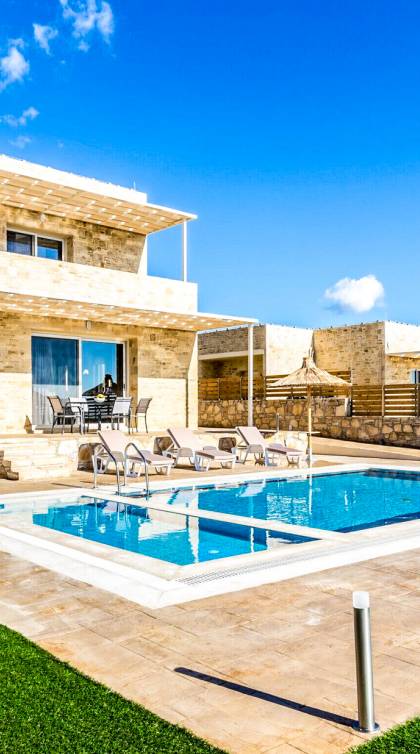 Triopetra Calm Villas Kreta – 3 Villen zur exklusiven Nutzung – Ein ruhiger Luxus-Rückzugsort mit atemberaubendem Meerblick, nur 3 Minuten vom Strand entfernt. Entfliehen Sie in diese außergewöhnlichen Villen an der Südküste Kretas, wo Luxus auf Natur trifft. Dieser sonnendurchflutete Zufluchtsort eignet sich perfekt für Familien, Paare oder Freunde und bietet Platz für bis zu 20 Gäste. Er liegt in einer ruhigen Umgebung, nur wenige Minuten vom kristallklaren Wasser des Triopetra-Strands entfernt.