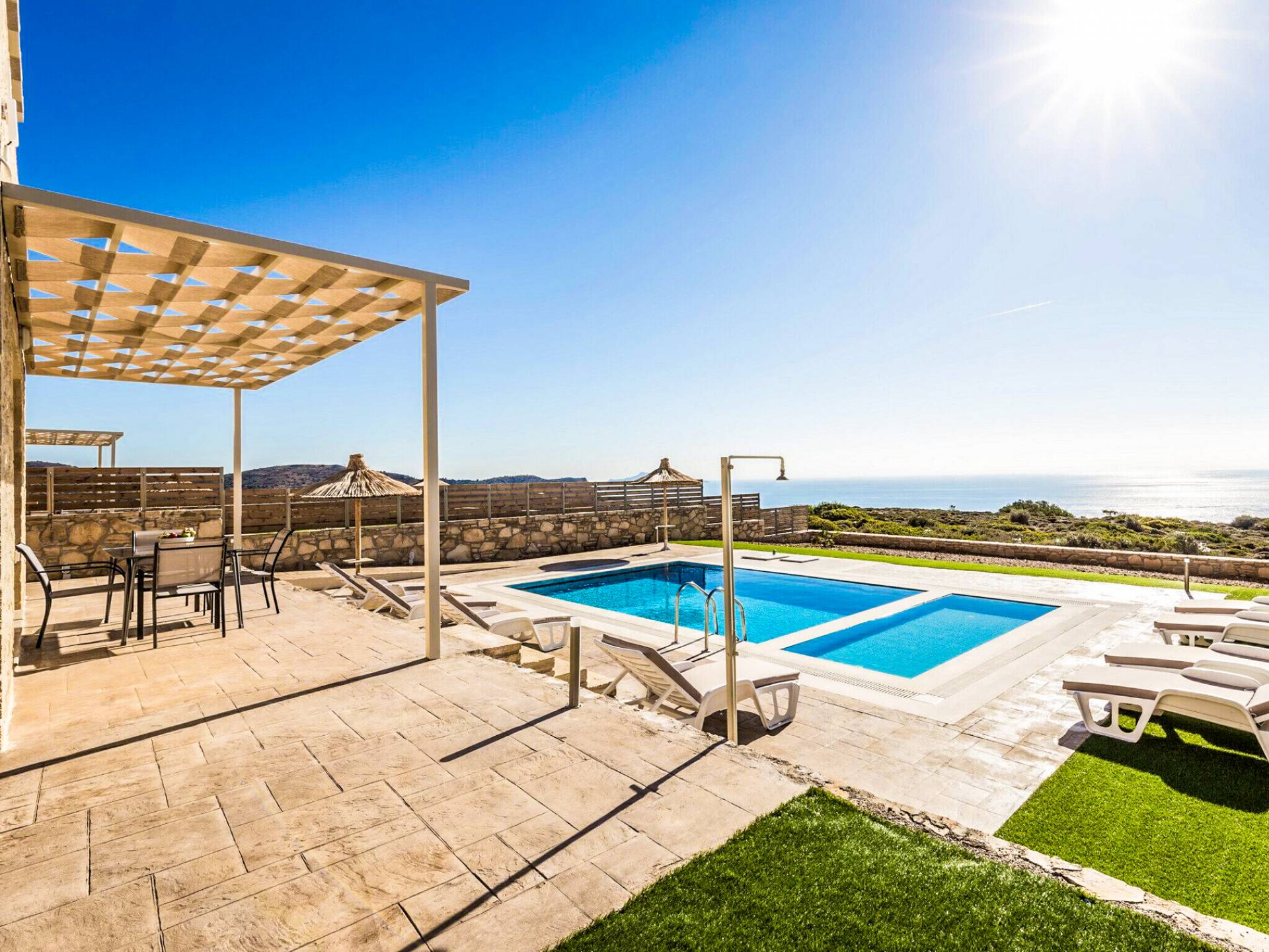 Thea Villa Rethymno ist Ihre ideale Ferienvilla am Triopetra-Strand mit allen modernen Annehmlichkeiten und Komfort für einen wunderschönen Urlaub auf Kreta. Sobald Sie ankommen, wird Sie die Thea Villa Rethymno mit ihrem atemberaubenden Meerblick überzeugen. Die Thea Villa Rethymno ist für 6 bis 8 Personen geeignet und von Steinhöfen, Grünflächen und einem großen Parkplatz umgeben. Fühlen Sie sich sicher! Sicherheit und Geborgenheit sind wesentliche Eigenschaften der Thea Villa Rethymno, geschützt durch Alarmsysteme und Außenüberwachungskameras. Die Villa verfügt über einen großzügigen Außenbereich mit einem großen Swimmingpool und einem separaten Kinderbecken, Sonnenliegen, eine Pergola, ein Essbereich im Freien und ein tragbarer Grill sind ebenfalls vorhanden.