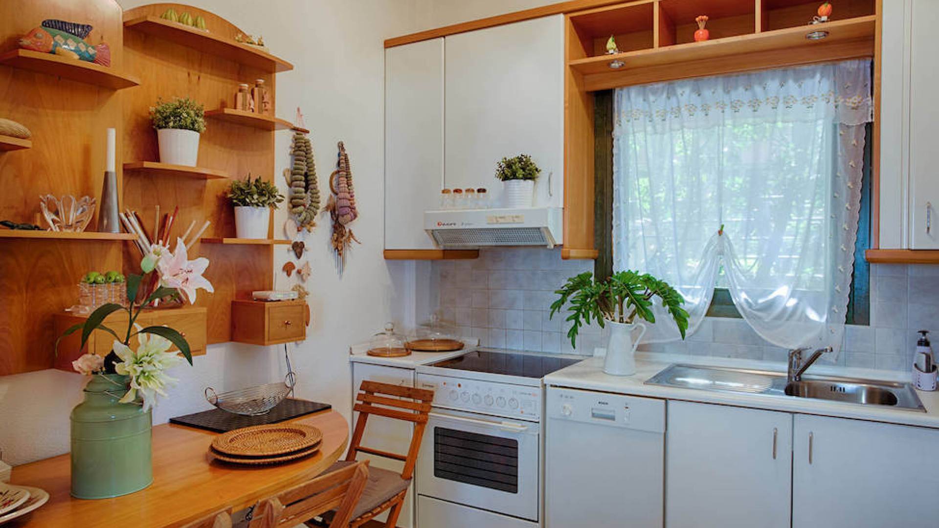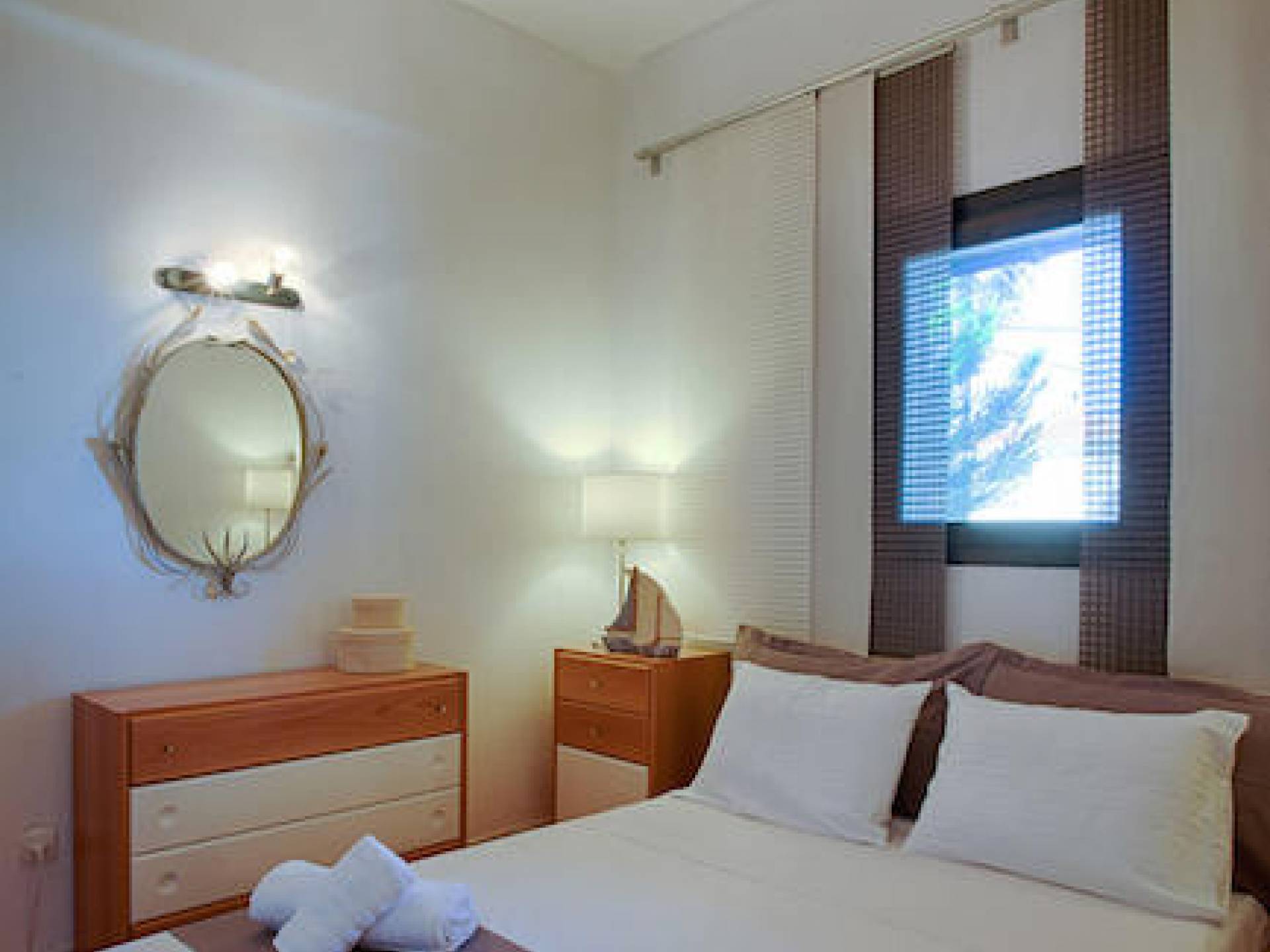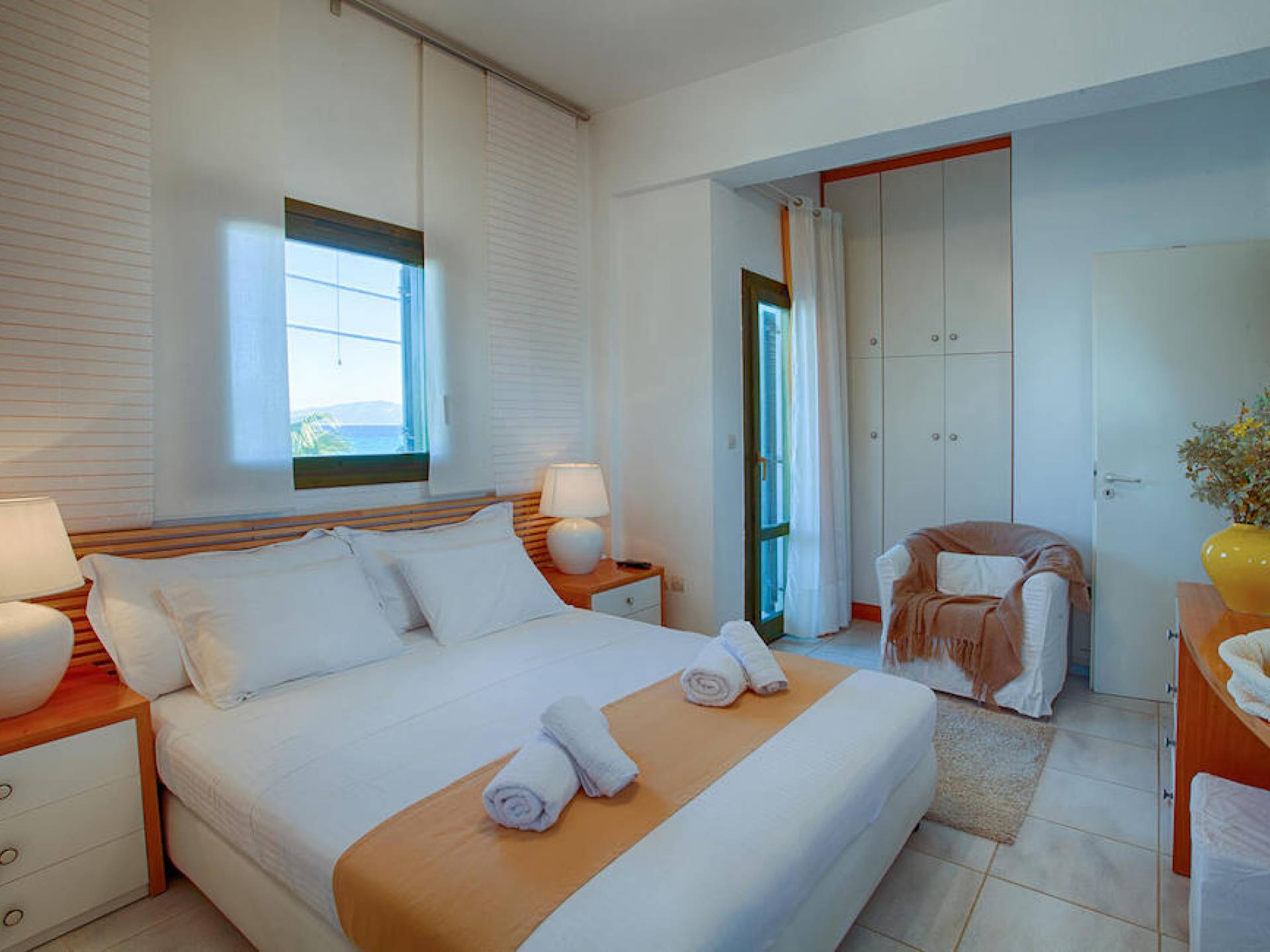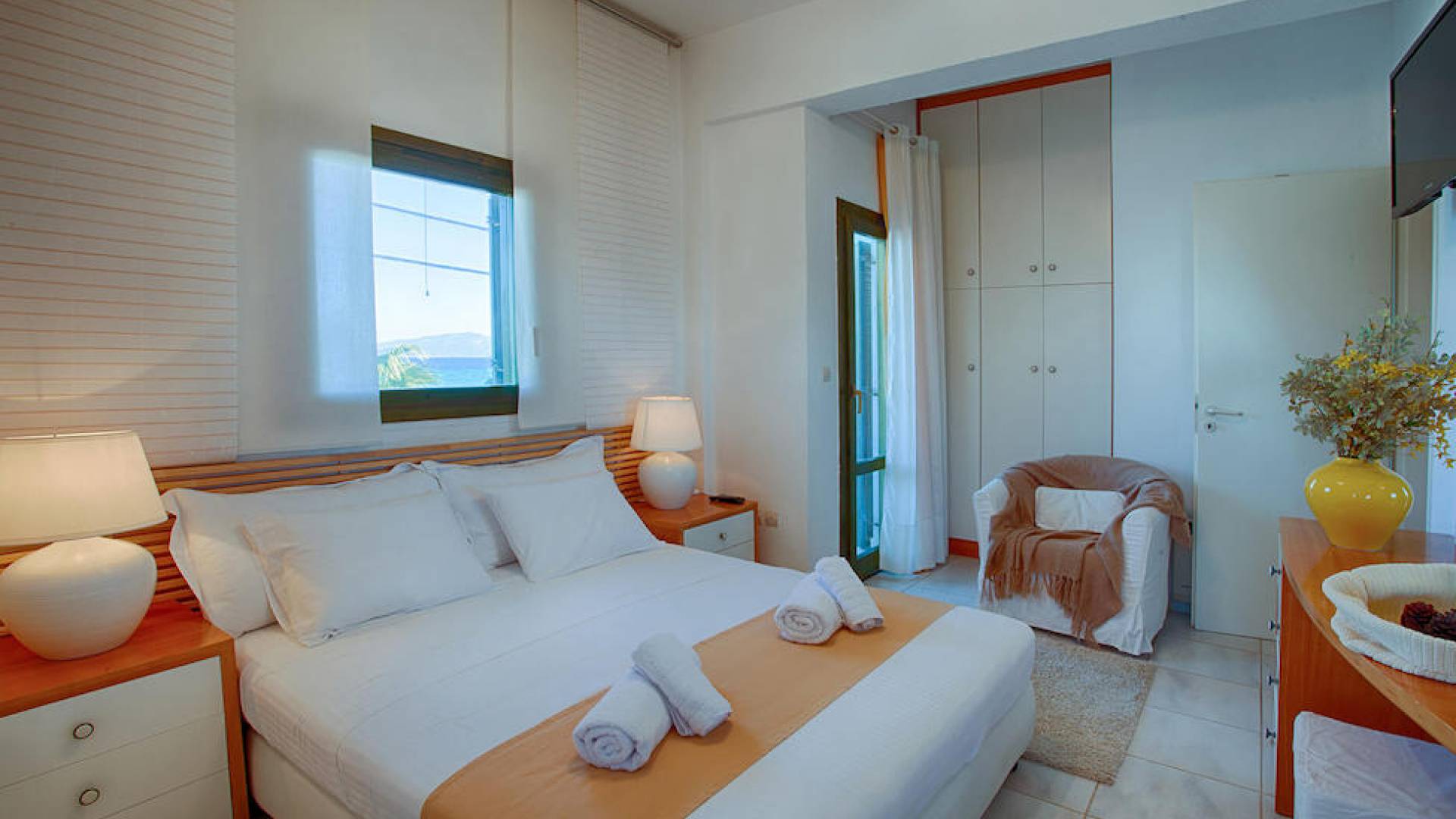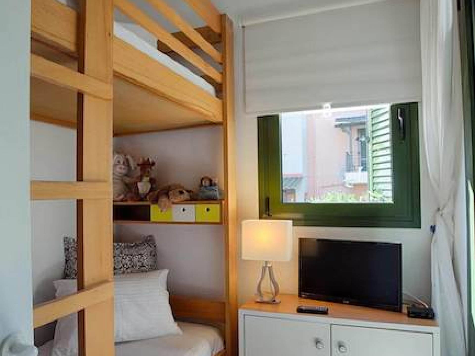 Das Hauptschlafzimmer hat ein Kingsize-Bett (180×200) und zwei Balkone mit Blick auf das Meer und den darunter liegenden Garten. Auch das Schlafzimmer ist mit einem großen Kleiderschrank mit Safe für Ihre Kleidung und Wertsachen ausgestattet. Ein 32-Zoll-LED-Fernseher leistet Ihnen während der Nacht oder Ihrem Mittagsschlaf Gesellschaft. Das Haus verfügt auch über ein „Kinderzimmer“, das mit einem Etagenbett ausgestattet ist, das sowohl für Kinder als auch für Erwachsene geeignet ist. Mit einem schönen Blick auf den Hinterhof und einem 23-Zoll-LED-Fernseher können sich die Kinder entspannen und ihren Urlaub genießen. Das Hauptbadezimmer ist mit einer Badewanne, einer Waschmaschine und einem Schrank ausgestattet, in dem Sie alles aufbewahren können, von Ihren Handtüchern bis zu Ihren Badeanzügen und Kosmetikprodukten.