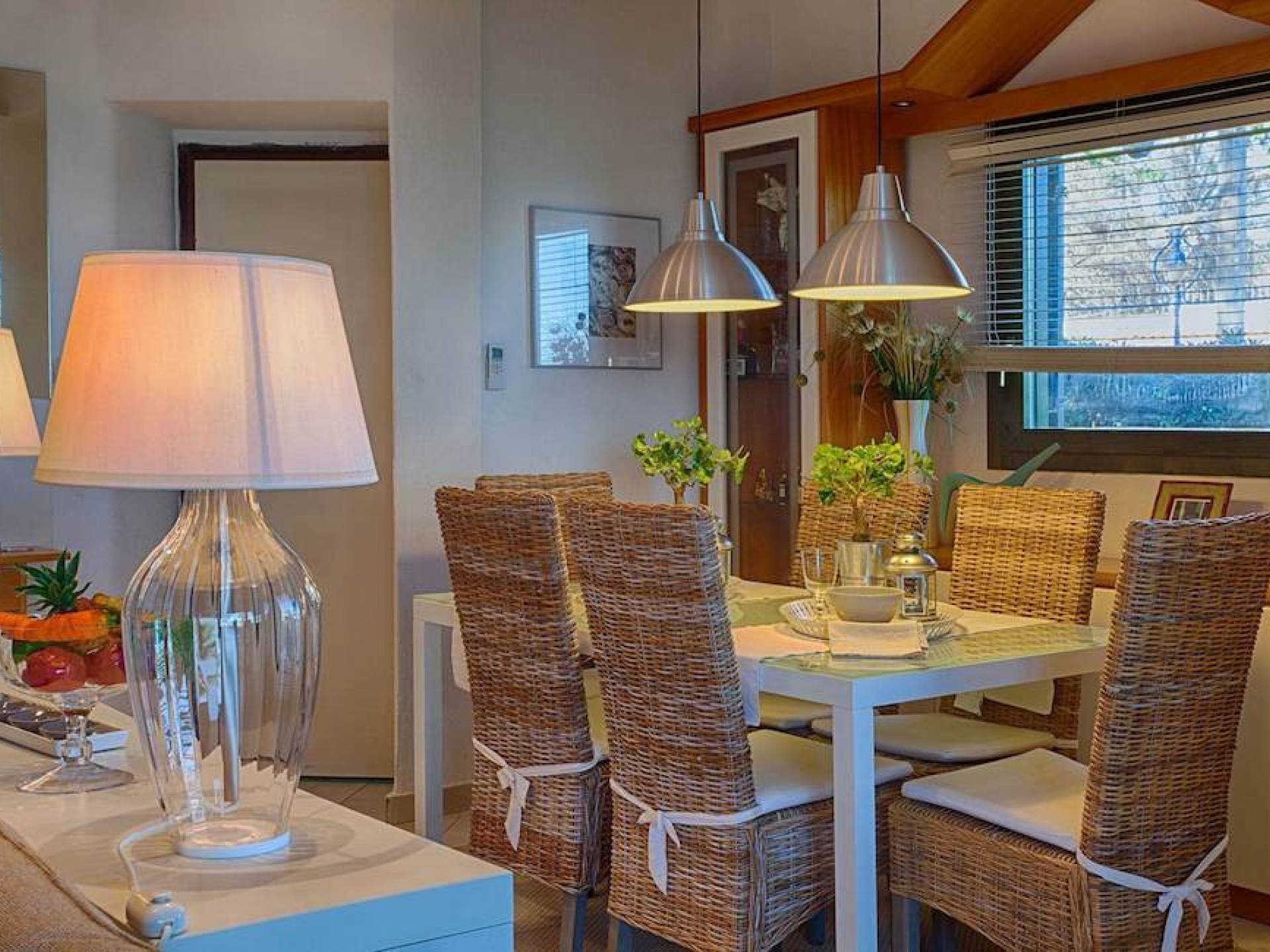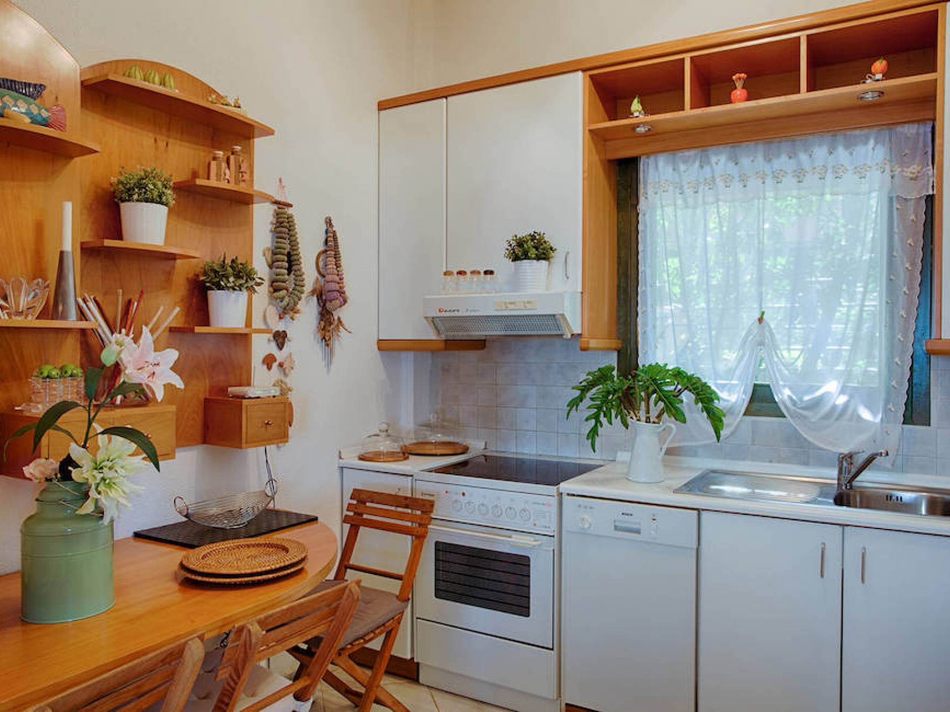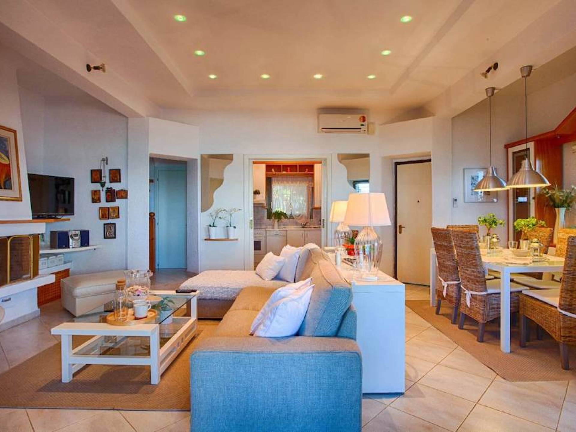 Ein großes Wohnzimmer, in dem selbst die größten Familien Platz finden, mit einem bequemen Sofa und einer Chaiselongue sowie einem Drehstuhl. Ein 40-Zoll-LED-Fernseher mit Satellitenschüssel bietet Entspannung während der Stunden, die Sie zu Hause verbringen. Ausgestattet mit zwei Esstischen bietet dieses Haus Platz für große Familien oder sogar bis zu vier Paare. Das Haus ist auch mit Kinderstühlen ausgestattet, damit Sie und Ihr Baby gemeinsam essen können. Eine voll ausgestattete und funktionale Küche mit Herd, Geschirrspüler und großem Kühlschrank bietet Ihnen alles, was Sie brauchen, um für sich und Ihre Familie zu kochen, wenn Sie zu Hause bleiben und sich entspannen möchten.