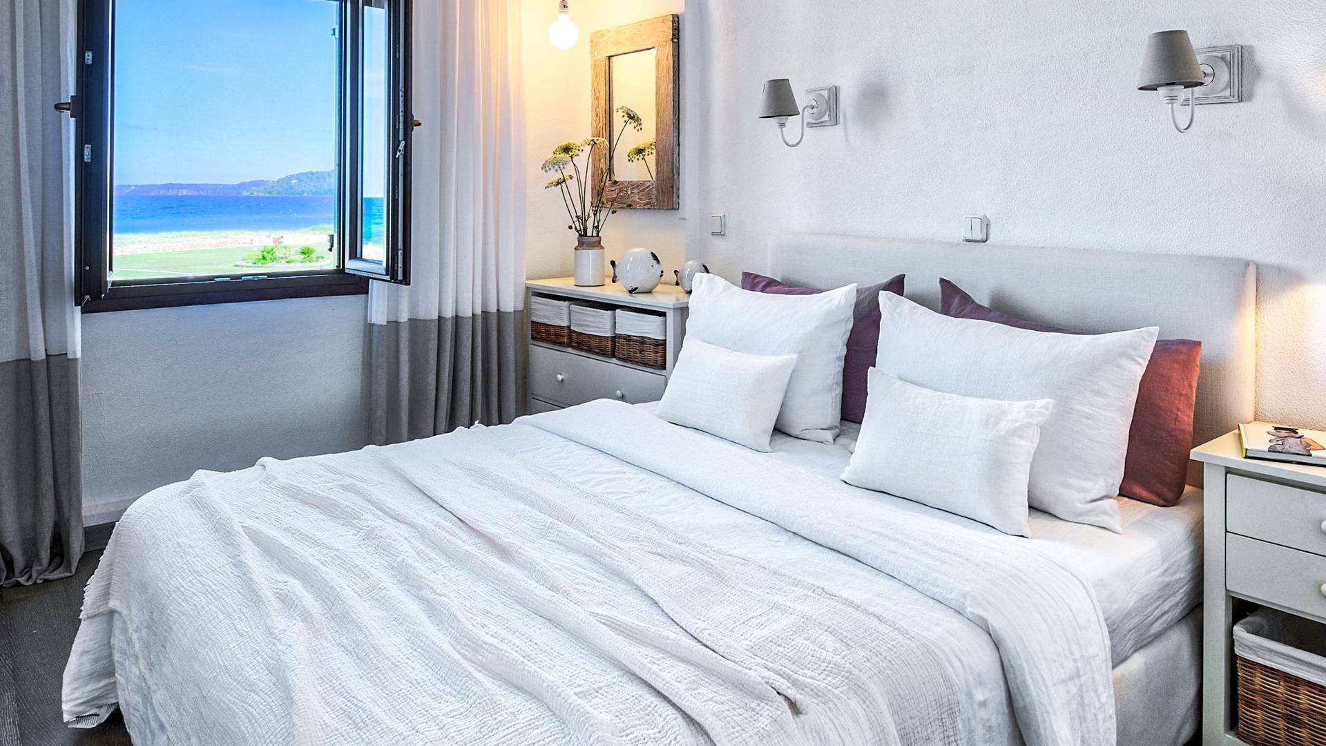 Das Soleado Beachfront Outpost bietet bequem Platz für bis zu zehn Personen und ist am besten für Familien mit Kindern geeignet. Im Erdgeschoss besteht die Maisonette aus einer voll ausgestatteten Küche, einem Esszimmer mit Kamin, einer Terrasse mit Sitzgelegenheiten im Freien und einem Essbereich auf der Vorderseite mit Blick auf die Ägäis und einer Terrasse auf der Rückseite, die einen atemberaubenden Blick bietet Blick auf den Olymp. Im ersten Stock treffen Sie auf eine Junior Suite, bestehend aus einem Queen-Size-Bett, einem Sofa-Doppelbett und einem Duschbad.
