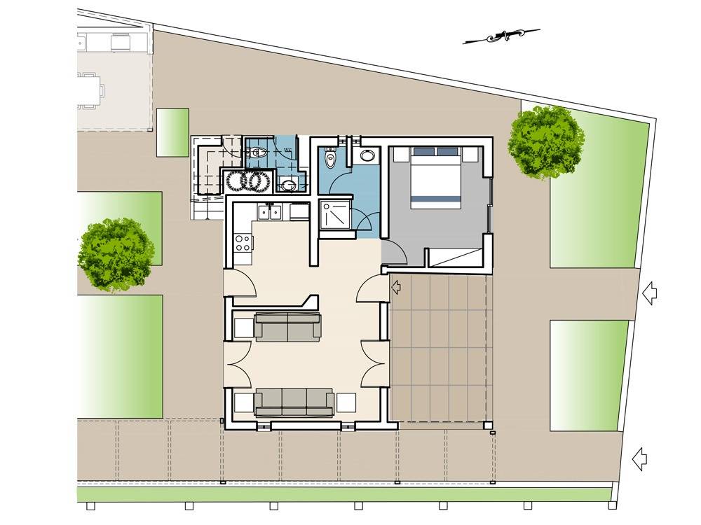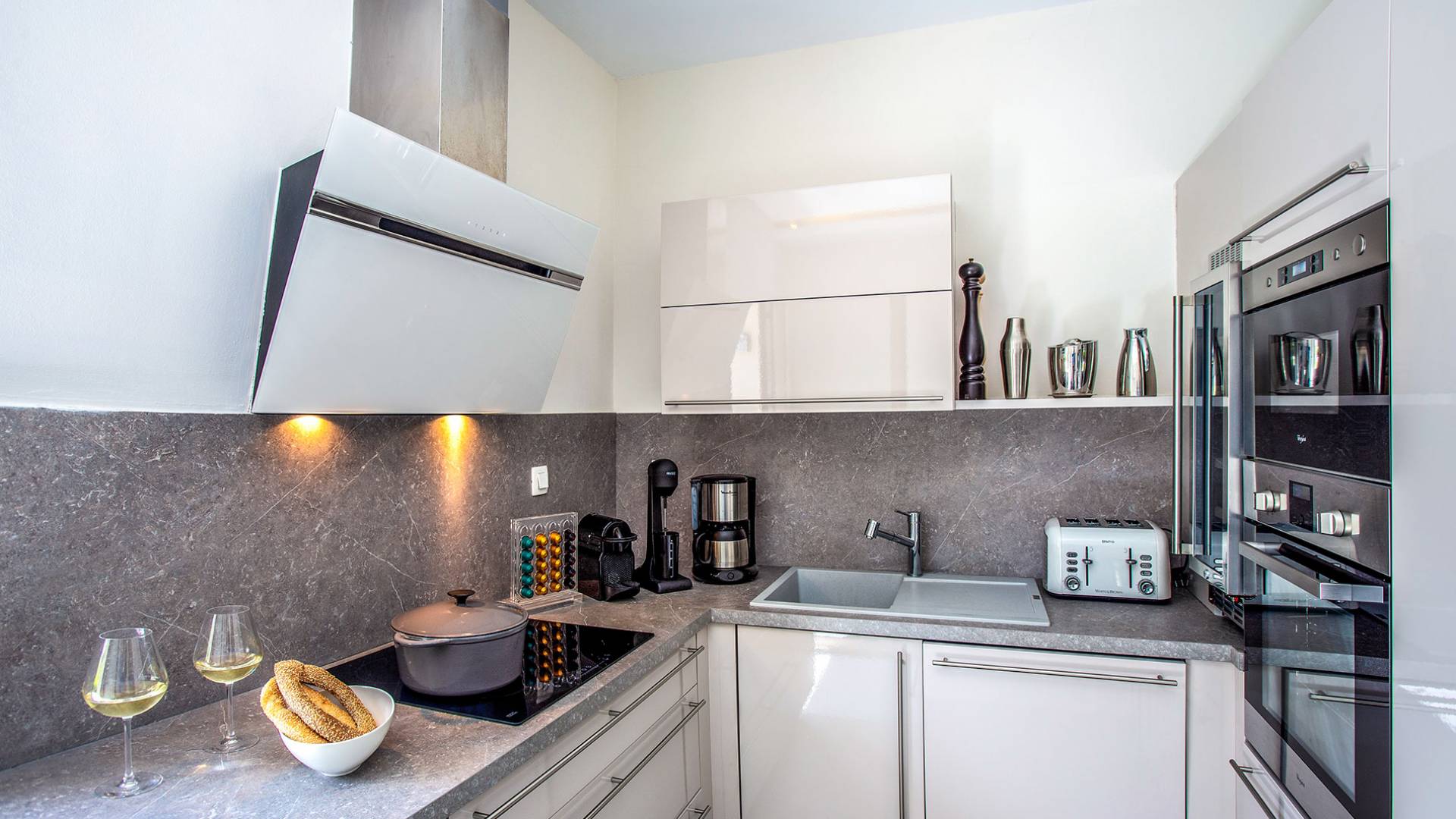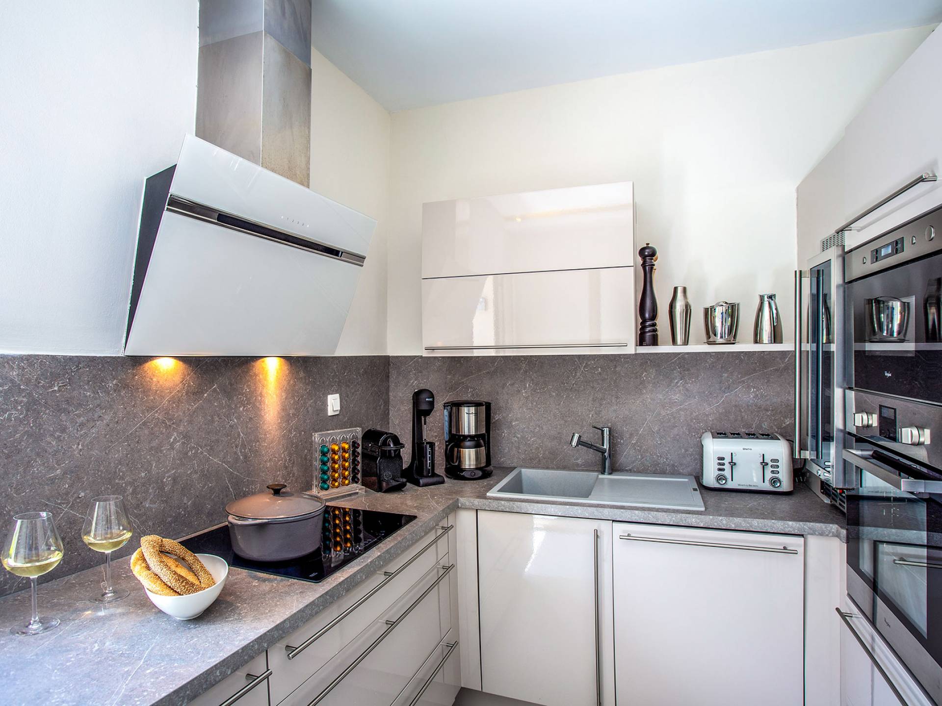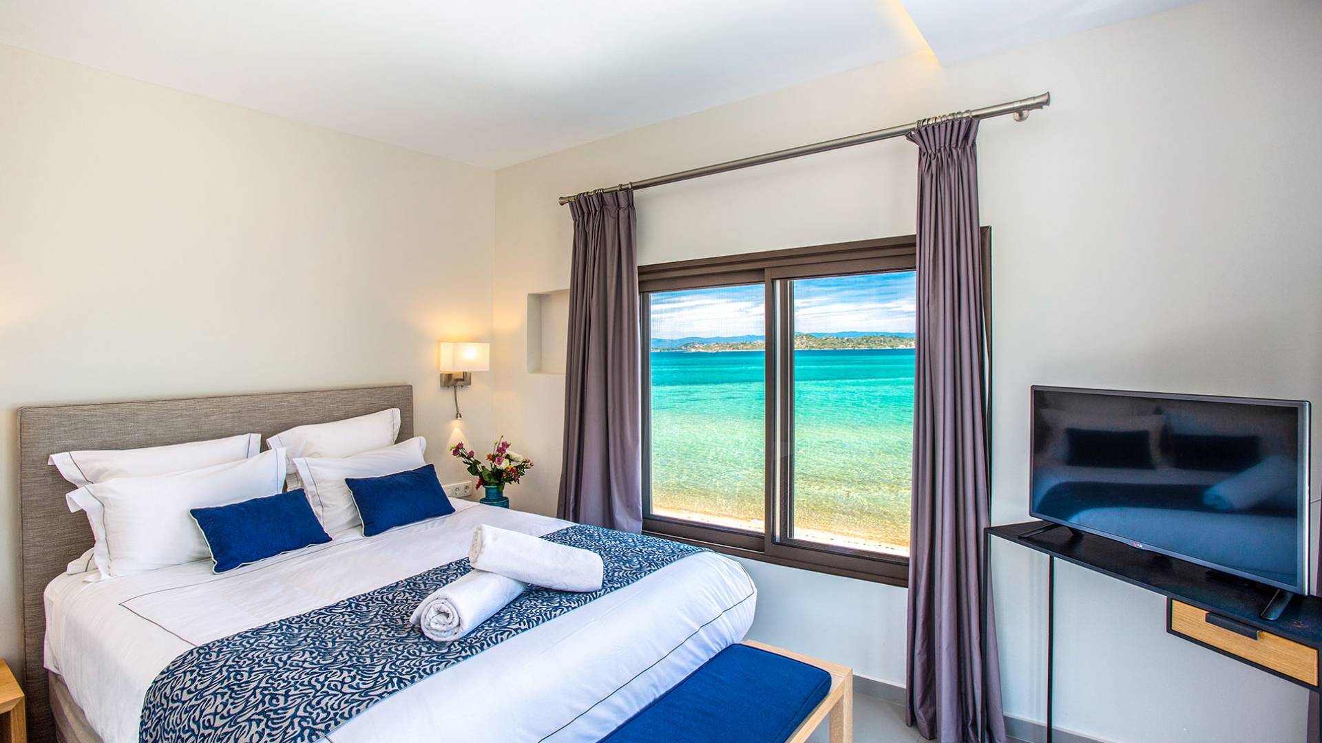 Der Garten schirmt den Grill- und Essbereich mit einer 16 m² großen Pergola ab. Gehen Sie einfach aus dem Wohnzimmer (18 m2) durch die Terrassentüren, entspannen Sie im Schatten der privaten Terrasse oder entspannen Sie noch einen Schritt weiter auf den Sonnenliegen am Sandstrand. Das geräumige Schlafzimmer bietet einen herrlichen Blick auf das Meer. Voll ausgestattete Küche, um den täglichen Bedarf einfach und angenehm zu machen. Nach einem erfrischenden Bad mit herrlichem Blick auf die Insel Diaporos kann man die Entspannung bei einem Cocktail auf dem Außenbalkon genießen. Diese Residenz bietet wirklich die einzigartige Gelegenheit, die perfekten Urlaubsmomente in dieser schönen Landschaft zu verbringen und Privatsphäre zu wählen, während Sie sich im Herzen dieses schönen Dorfes befinden.