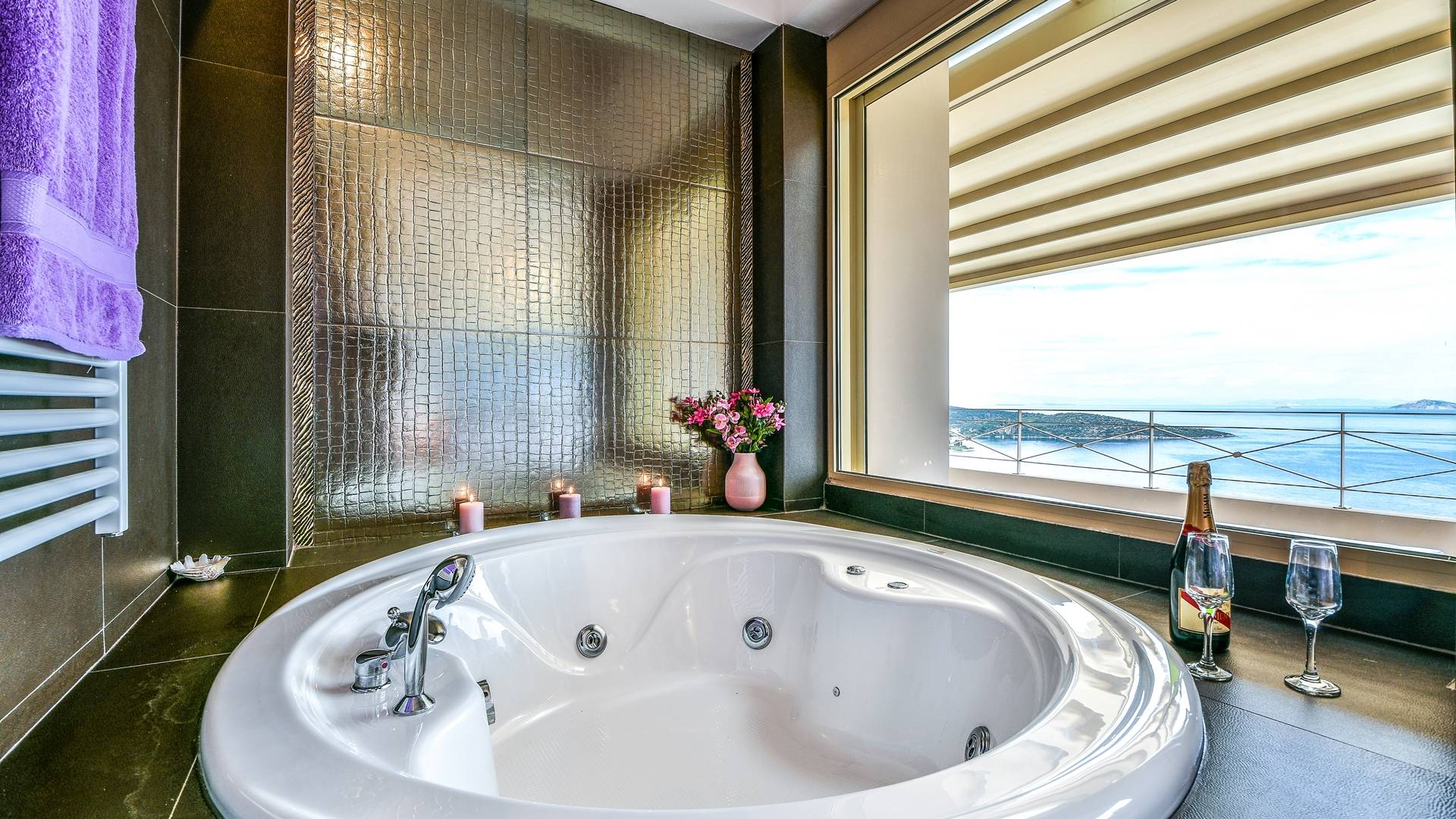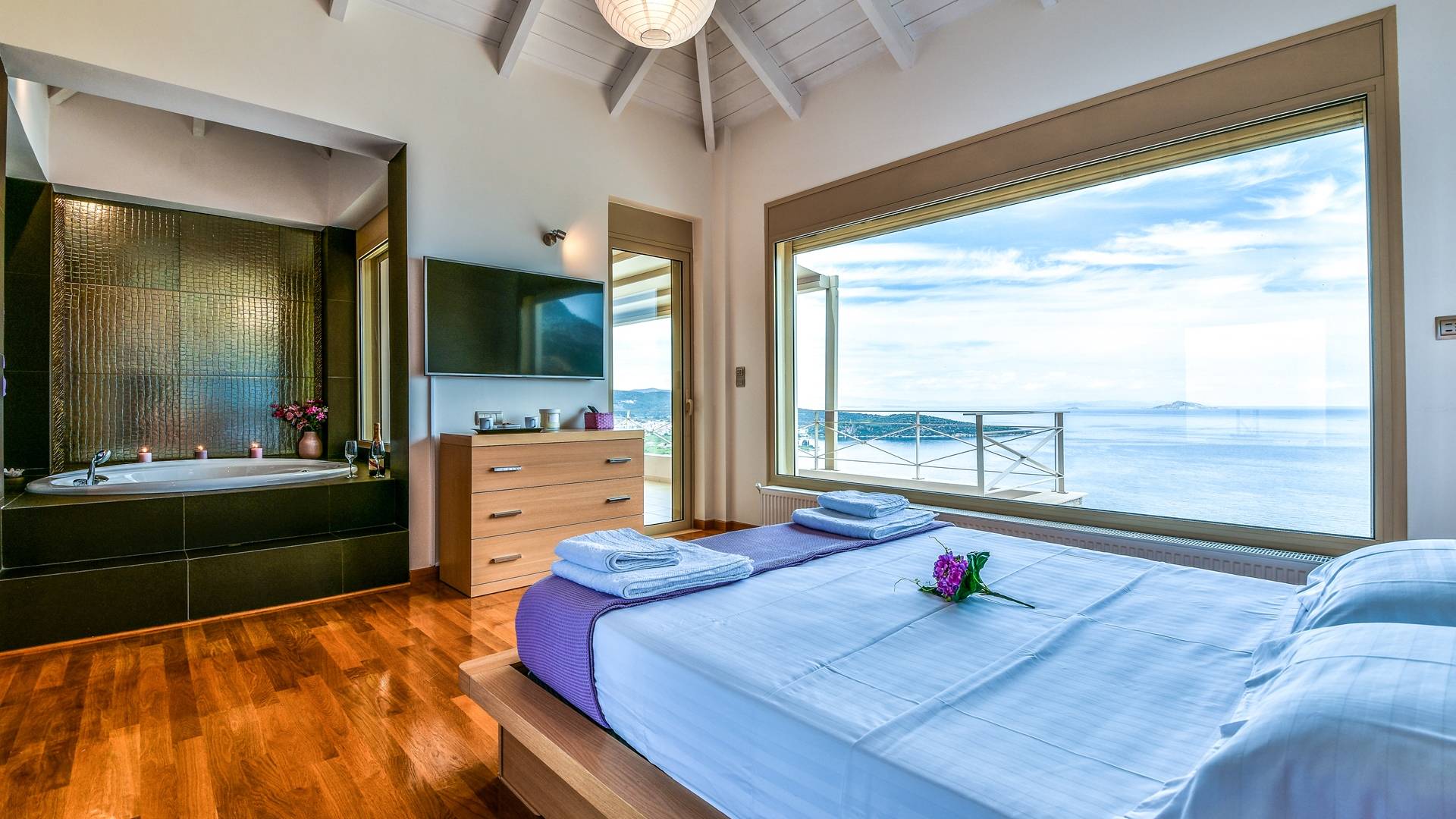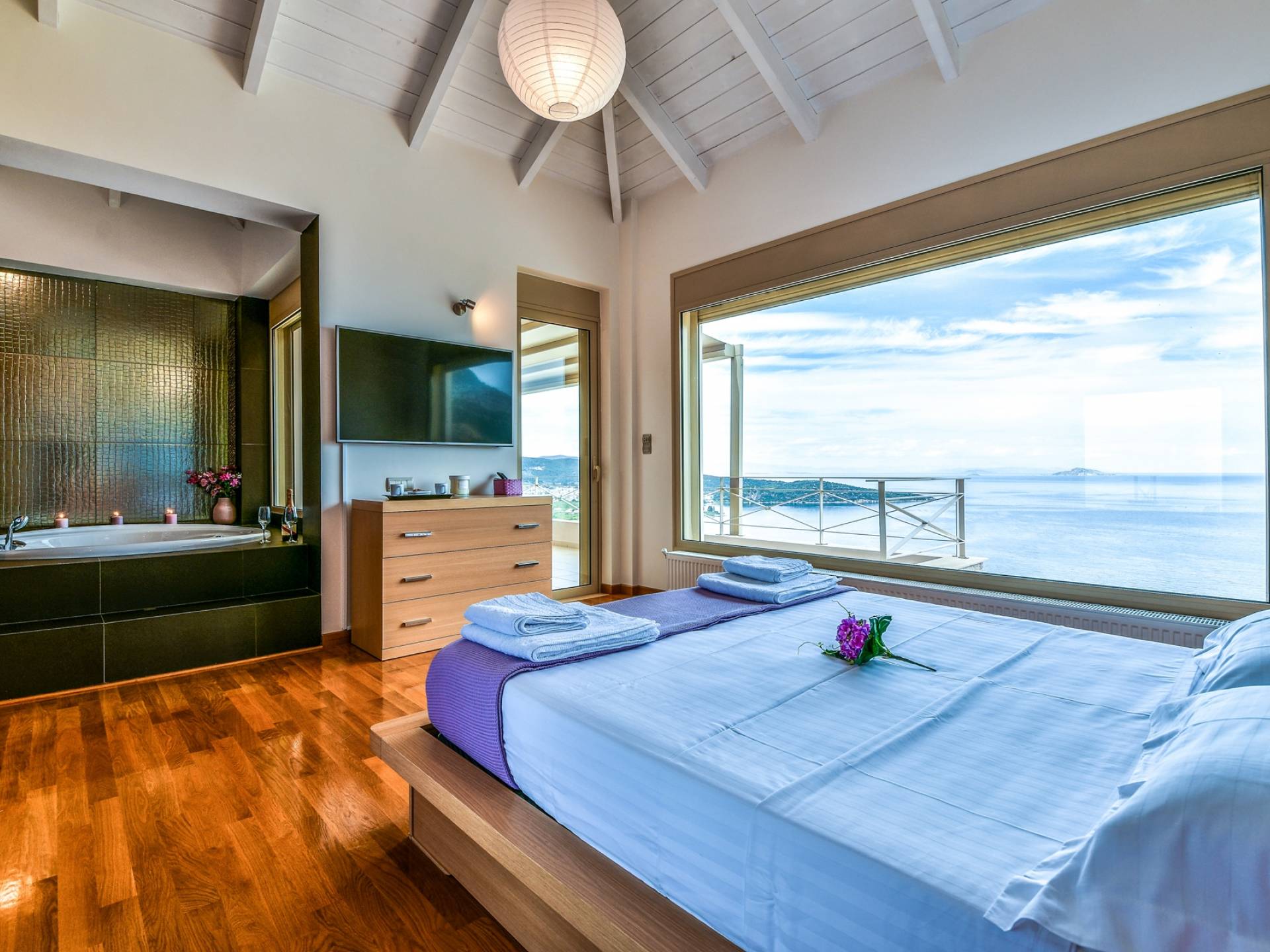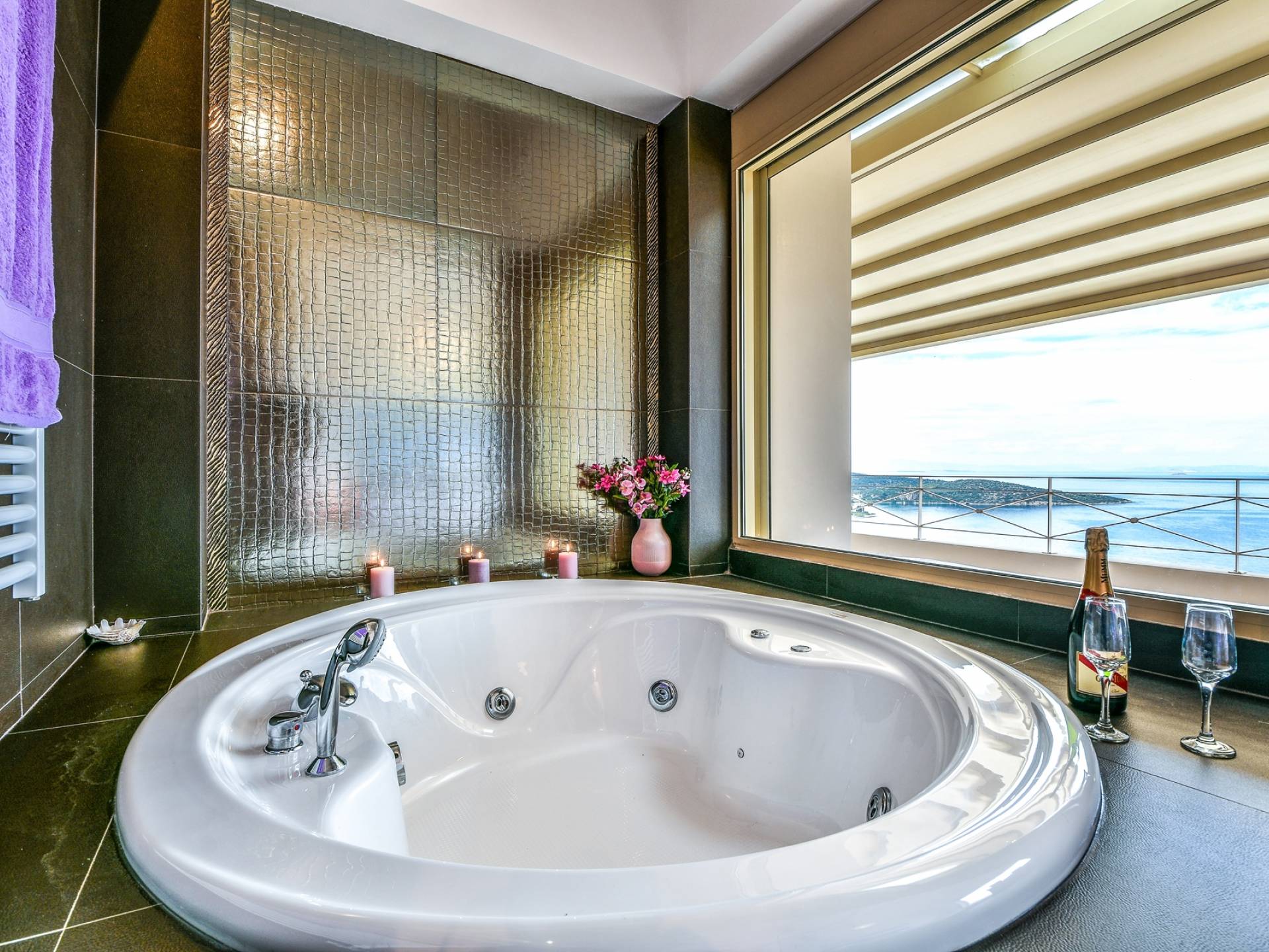 Die nächste Etage verfügt über ein Wohnzimmer und einen Küchen- und Badezimmerbereich, der zu einer großen schattigen Veranda mit luxuriösen Gartenmöbeln für das Essen im Freien und einem großen Esstisch aus Kristall mit einer magischen Aussicht führt. Auf der letzten Etage befindet sich ein Hauptschlafzimmer mit eigenem Jacuzzi und einer phänomenalen Aussicht sowie ein zweites geräumiges Hauptschlafzimmer mit freiem Meerblick. Alle Bereiche der Villa sind klimatisiert und verfügen über einen SmartTV und das Wi-Fi-Signal ist außergewöhnlich, falls Sie ein Zoom-Meeting benötigen. Die Lage der Villa ermöglicht Ihnen viele Aktivitäten und Tagesausflüge in unmittelbarer Nähe. Der schöne Strand befindet sich genau unterhalb der Villa.
