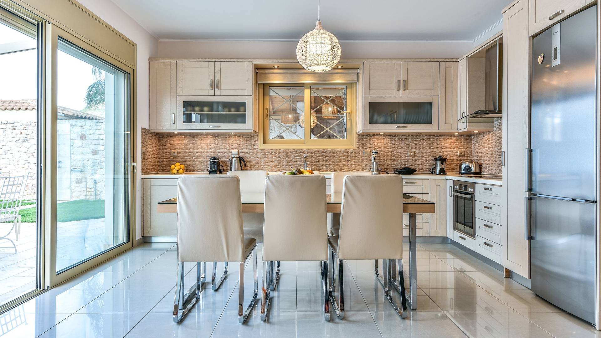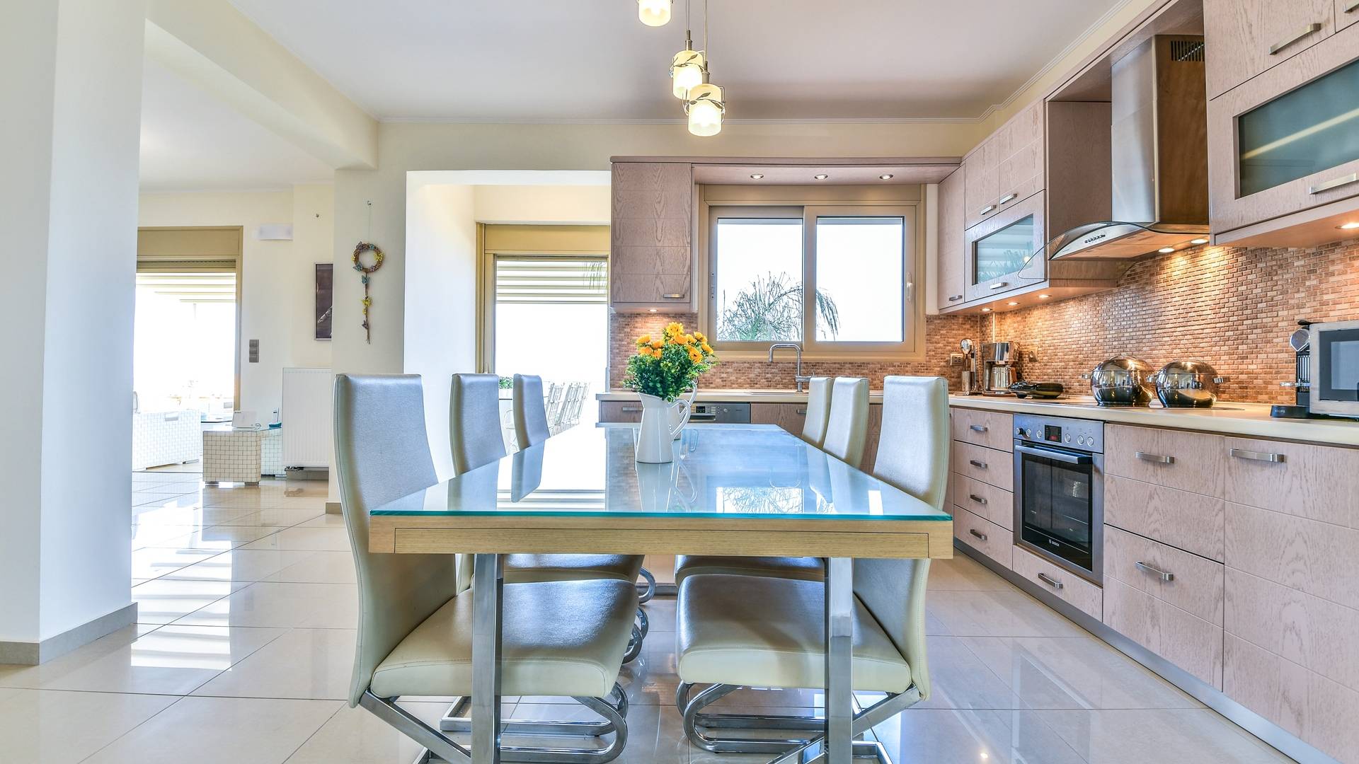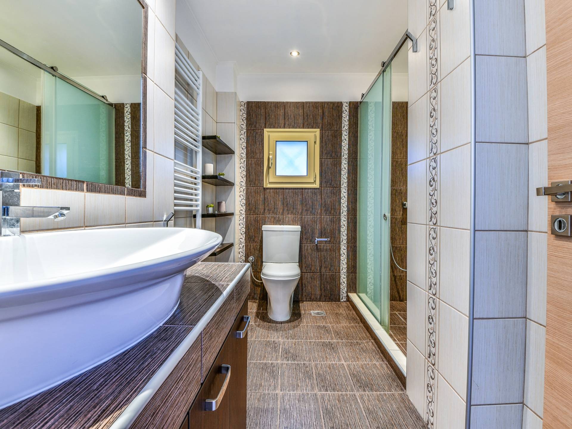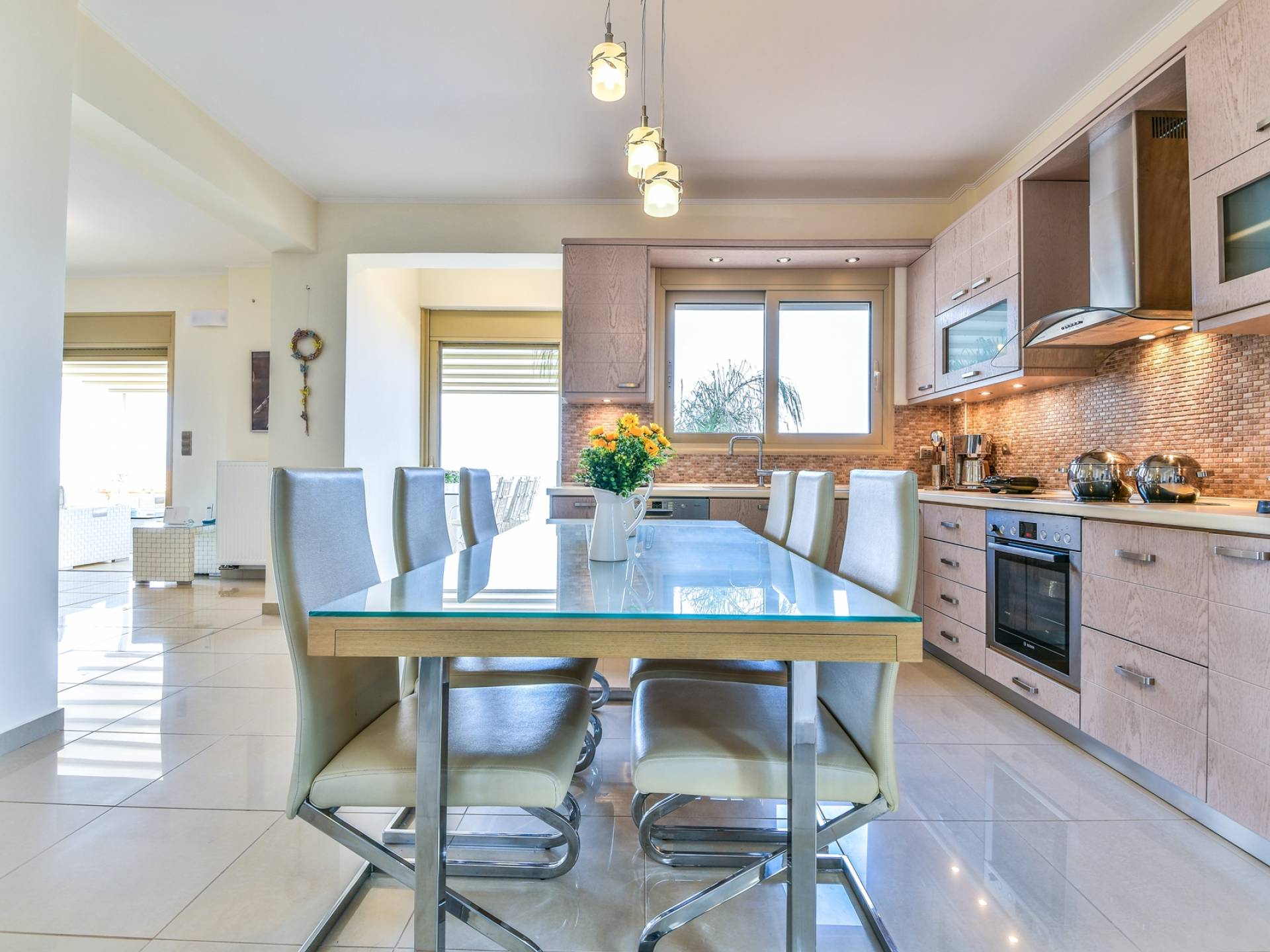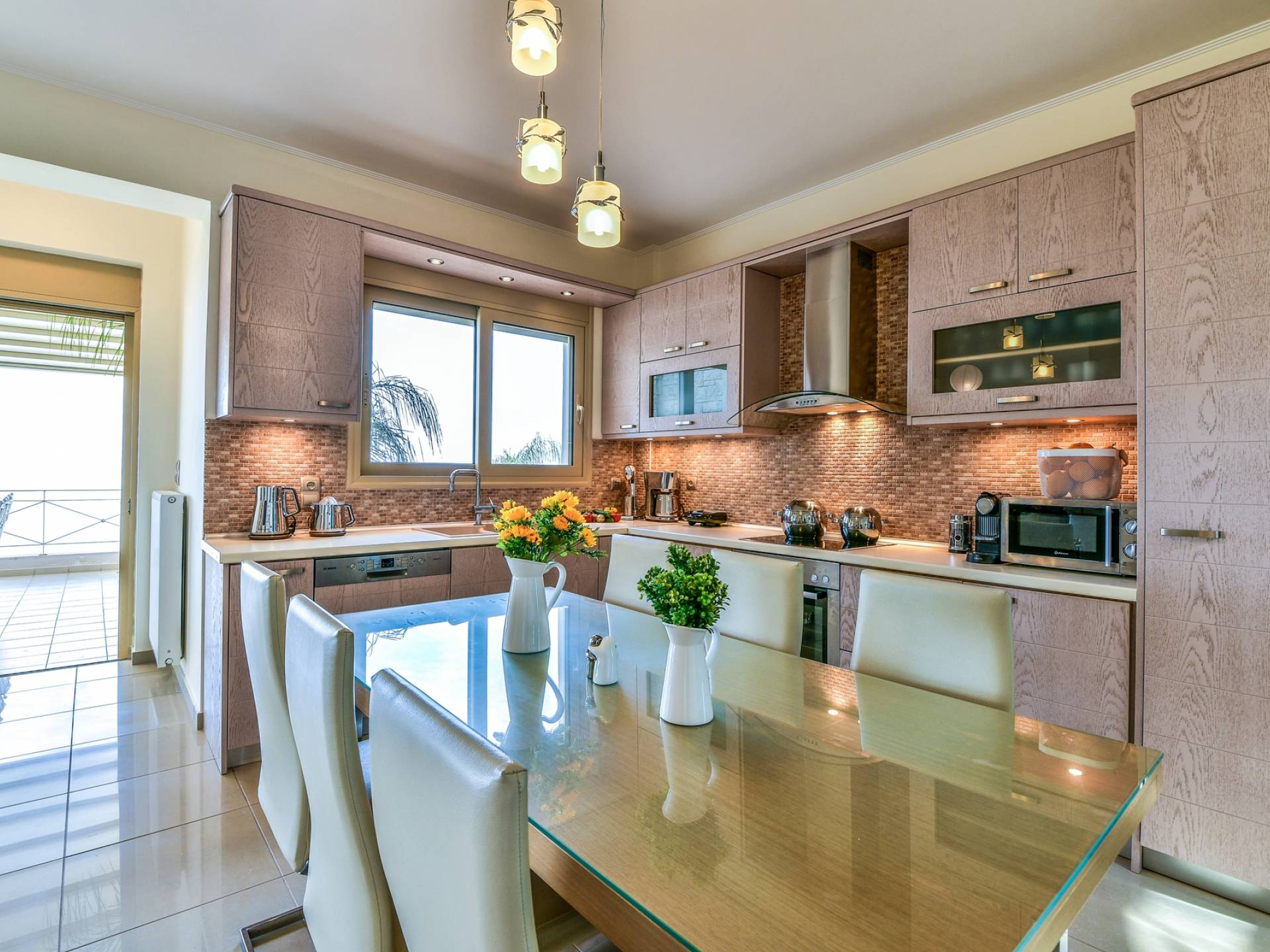 Im Garten gibt es einen speziellen geschlossenen Grillplatz, der komplett ausgestattet ist mit einem Holzofen, einer Spüle, einem Kühlschrank und einem schönen Esstisch aus Kristallmarmor mit Platz für 12 Personen. Ein schattiger Innenhof im Poolbereich bietet einen perfekten Blick auf die Schönheit um Sie herum. Im Inneren verfügt die Villa über große Bereiche, die mit großer Sorgfalt gestaltet und dekoriert wurden. Im Erdgeschoss finden Sie das Wohnzimmer, eine voll ausgestattete offene Küche, ein geräumiges Badezimmer, 2 Schlafzimmer und eine Waschküche. Es hat direkten Zugang zum Pool.