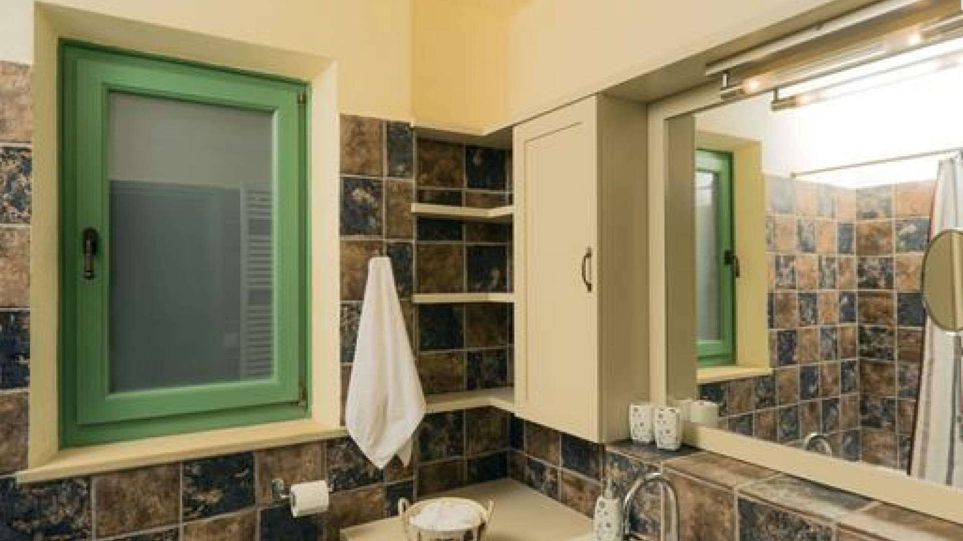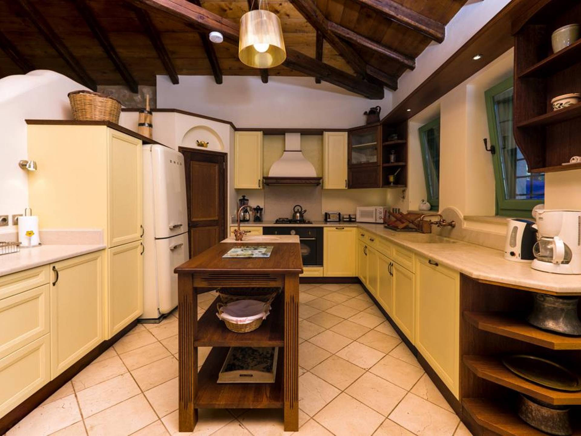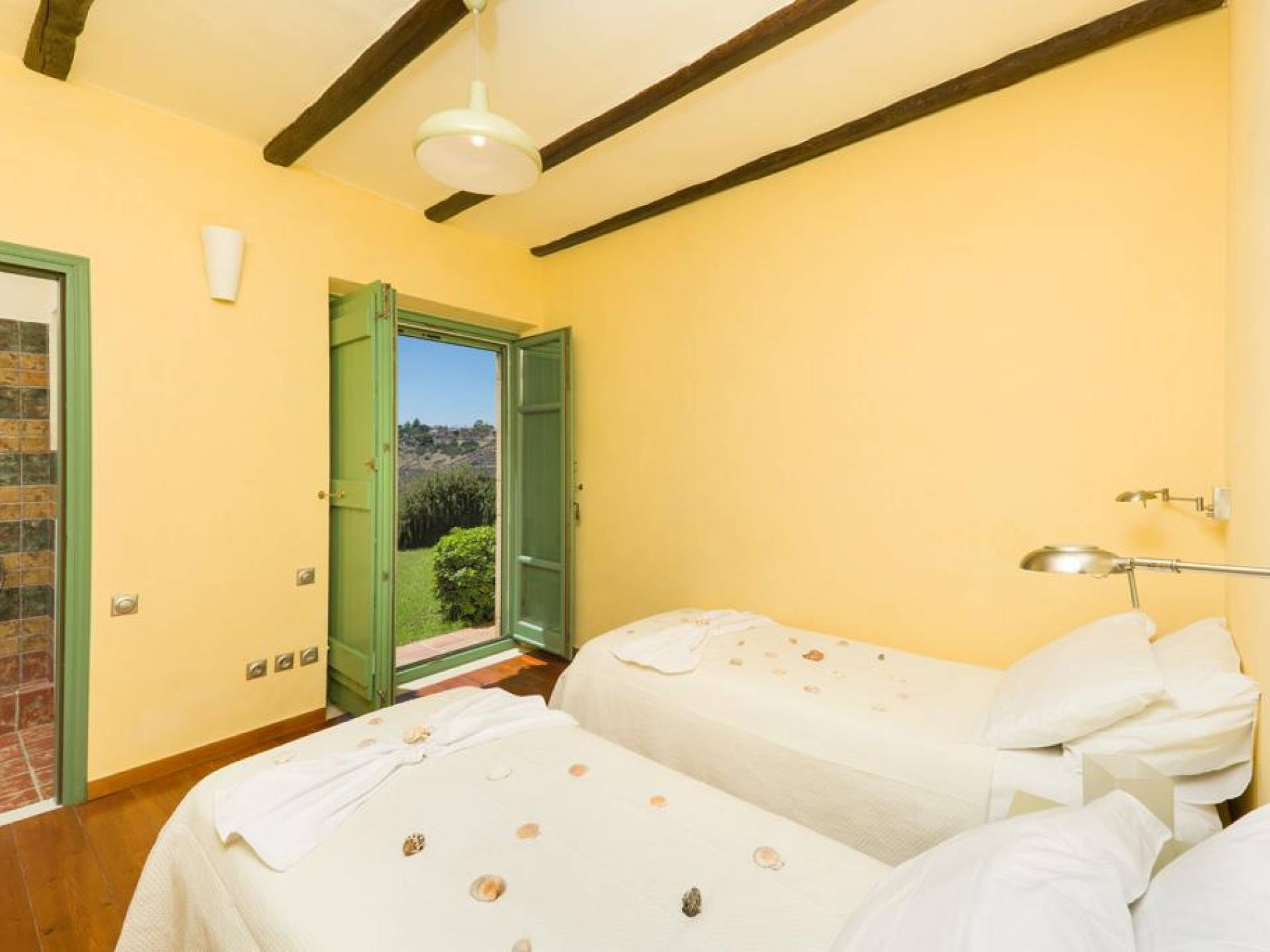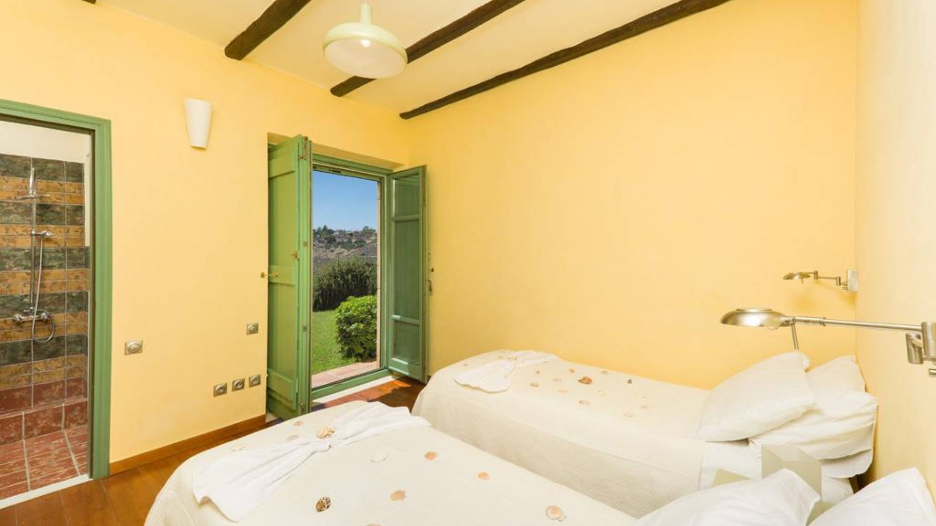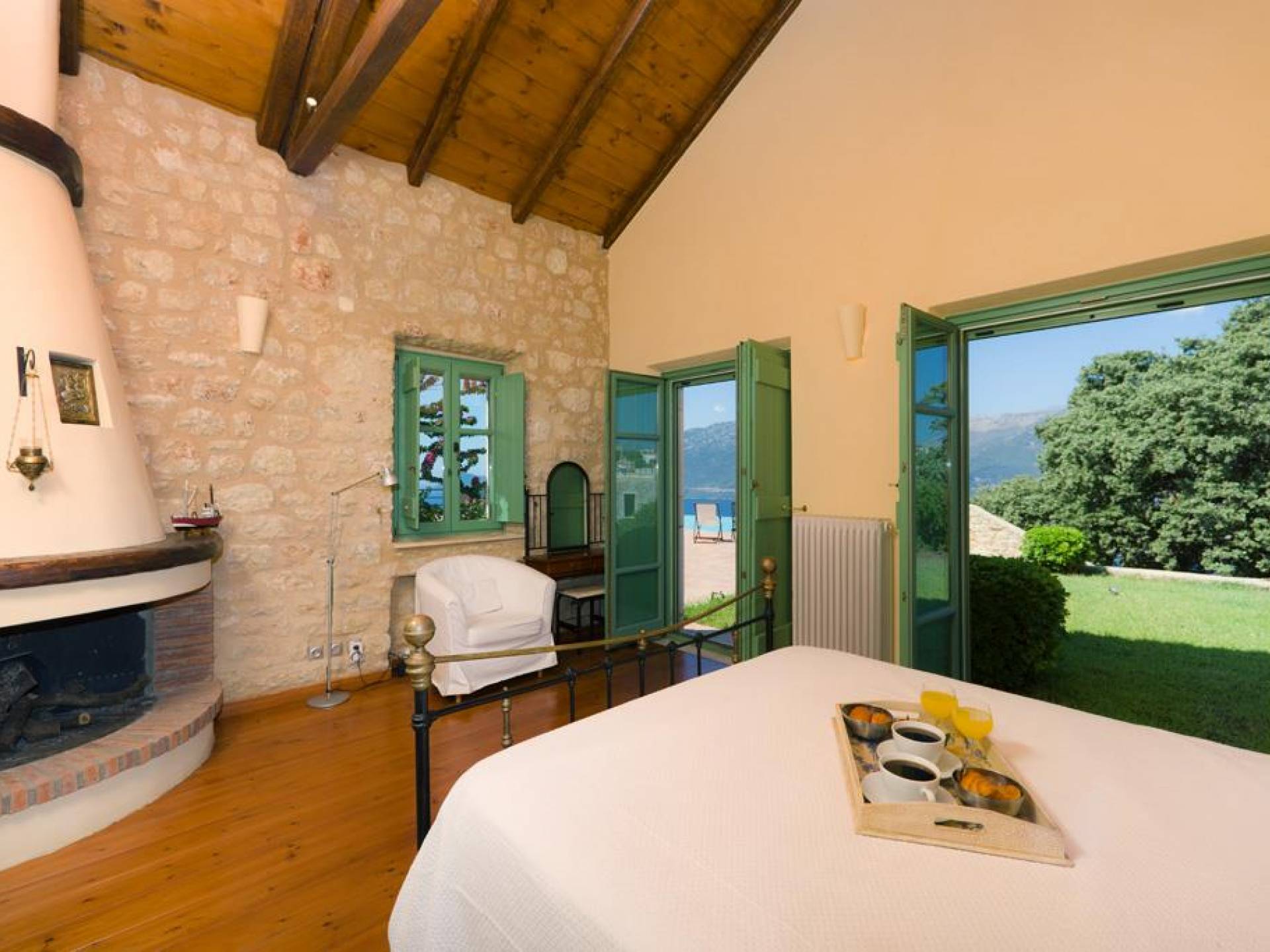 Die Steinwände werden mit einem modernen Interieur kombiniert, das auf Komfort ausgerichtet ist. Das traditionsreiche, aber einzigartige Anwesen bietet alle modernen Annehmlichkeiten, darunter unter anderem ein Soundsystem für verschiedene Bereiche des Hauses, Sat-TV, Grill und Holzofen sowie einen Infinity-Pool mit atemberaubender Aussicht. Die Farben sind schlicht, Creme und Stein, mit einem durchgehenden Fliesenboden. Die Fensterläden sind in hellem Pistazie gestrichen und helles Magenta wurde überall in die Polstermöbel und Esszimmerstühle eingeführt, die einen brillanten Kontrast zum Farbschema bilden. Große Türen im französischen Stil führen von jedem Bereich auf die Poolterrasse, die einen perfekten Ort zum Entspannen für jeden Teil des Tages bietet.