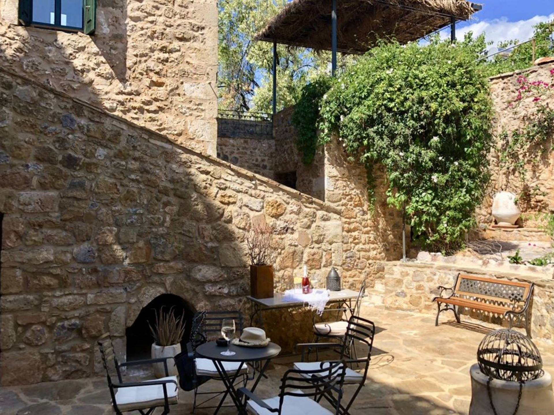 Das Hotel befindet sich im Dorf Great Madinia. Dieses befestigte Herrenhaus aus dem Jahr 1858 wurde vom griechischen Kulturministerium als „Kunstwerk“ und historisches Denkmal ausgewiesen, ein hervorragendes Beispiel für eine Residenz nach der Revolution in der nördlichen Mani. Die Idee hinter der kürzlich durchgeführten Renovierung war es, es in seinem ursprünglichen Glanz wiederherzustellen und es unter Beibehaltung seines einzigartigen Charakters und seiner ursprünglichen Elemente mit modernen Verbesserungen in ein luxuriöses Boutique-Hotel mit allen modernen Annehmlichkeiten von der Familie Vager umzuwandeln.