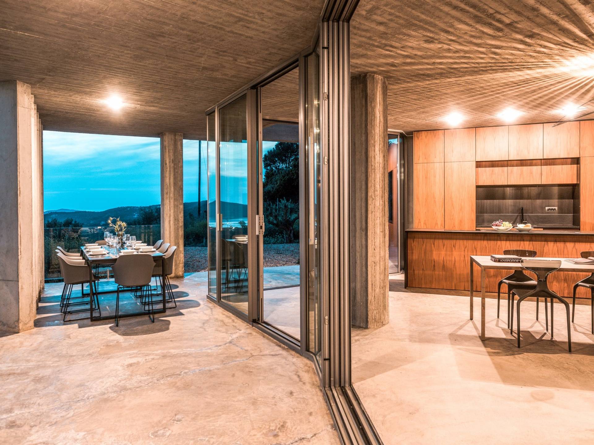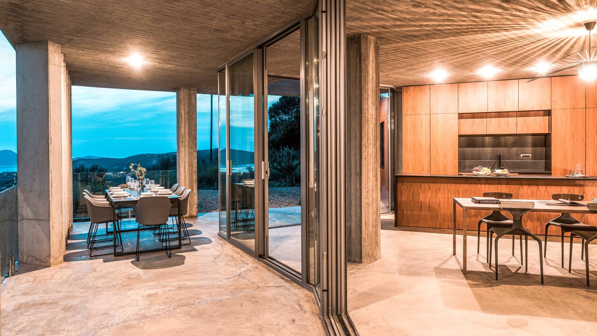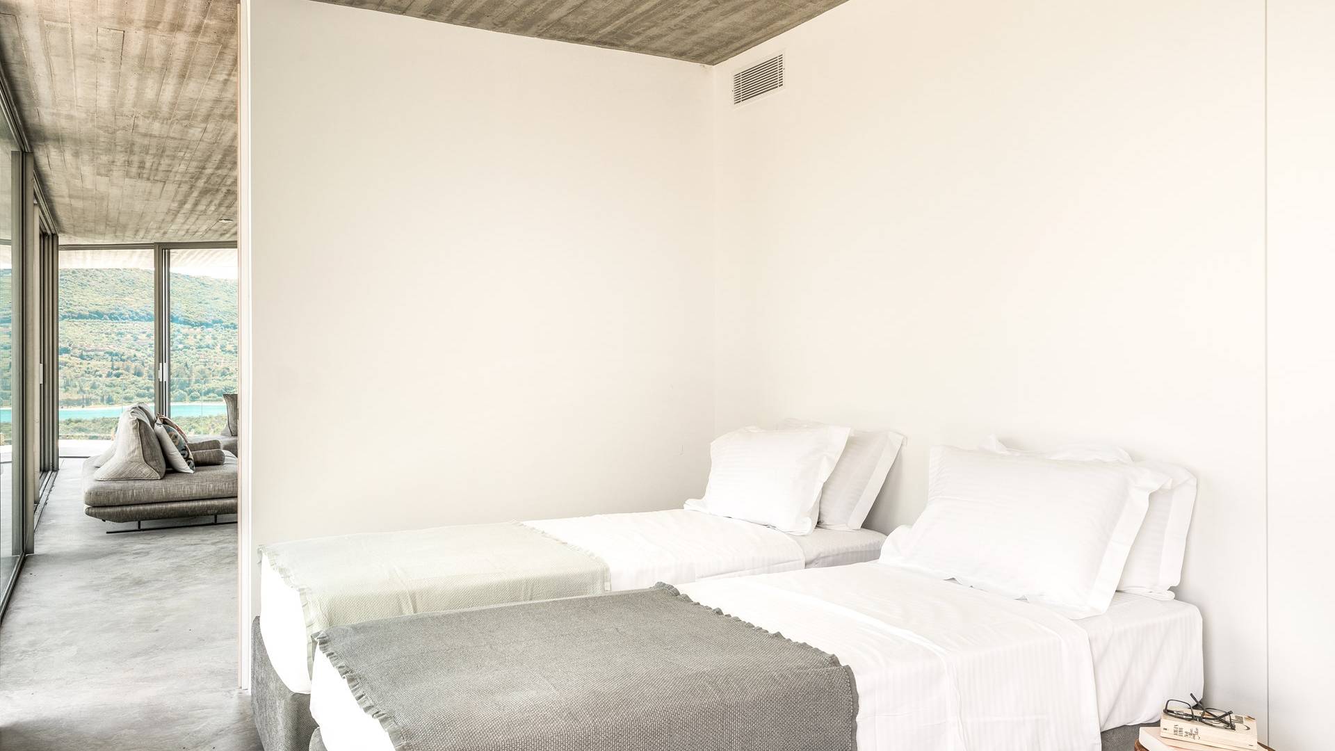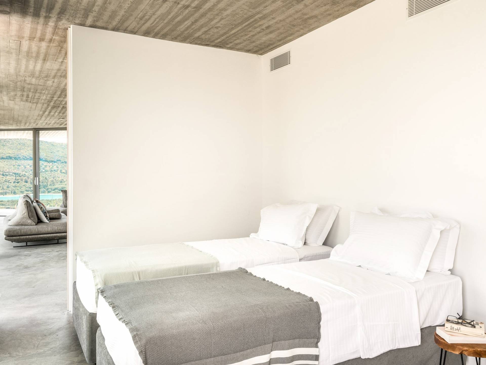 Villa Orionas ist eine moderne, große Villa mit offenem Schnitt und drei Schlafzimmern im Erdgeschoss. Das Hauptschlafzimmer bietet einen fantastischen Meerblick. Es ist geräumig mit einem Queensize-Bett und großen Schiebefenstern, die sich auf einen großen Balkon mit Möbeln öffnen. Es gibt eine ebenerdige Dusche und ein Waschbecken sowie einen Kleiderschrank mit Schränken. Es gibt 2 weitere Schlafzimmer, eines mit Queensize-Bett, Badewanne und Waschbecken und eines mit 2 Einzelbetten, die in ein Kingsize-Bett umgewandelt werden können, mit ebenerdiger Dusche und Waschbecken. Beide Zimmer haben einen Blick auf den Garten durch die riesigen Schiebefenster. Alle Schlafzimmer verfügen über einen Verdunkelungsvorhang ohne Rollläden. Der Wohnbereich verfügt über 2 Lounges, eine mit Hängematte und eine mit einem luxuriösen Designer-Sofabereich. Das Esszimmer grenzt an die Wohnbereiche und die offene, voll ausgestattete Küche mit Geschirrspüler, Kühlschrank und Backofen. Im Erdgeschoss befindet sich ein WC-Raum.