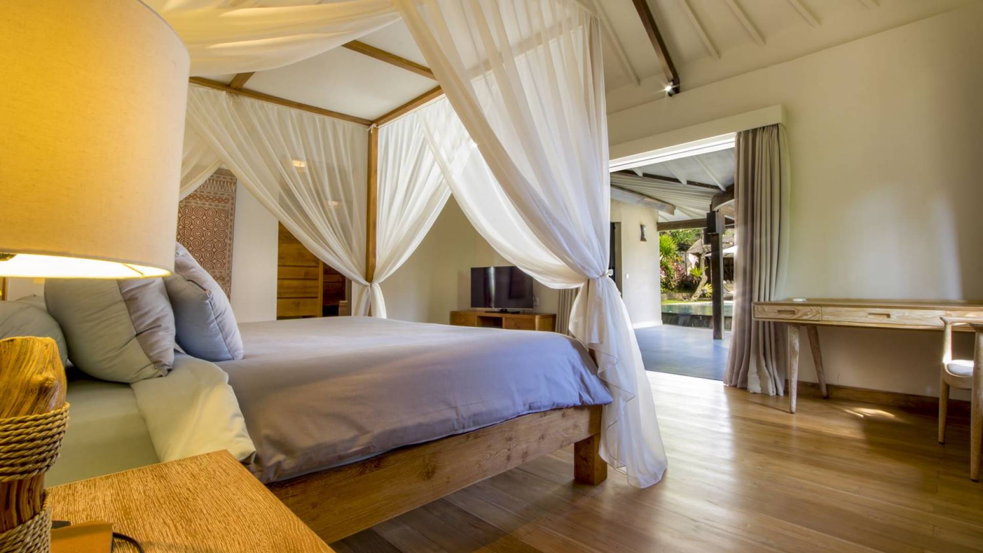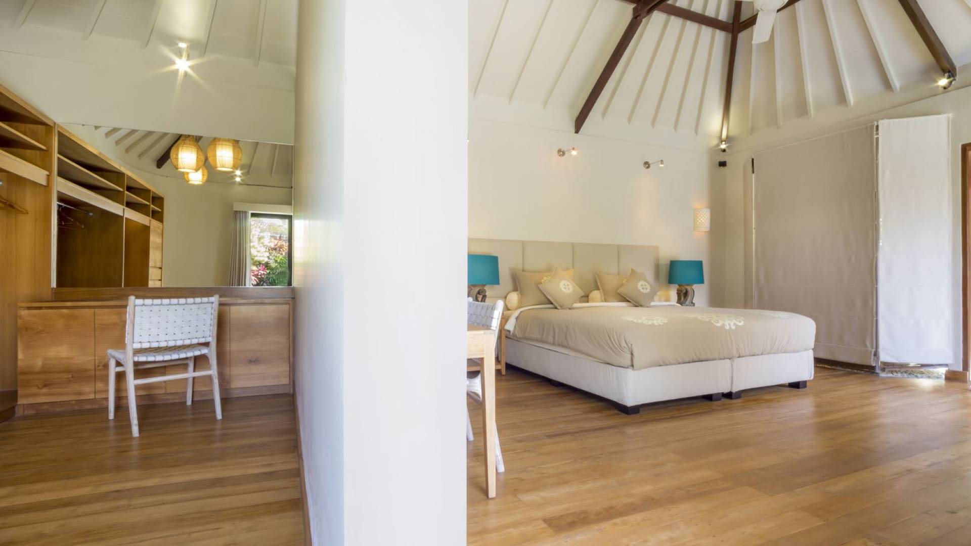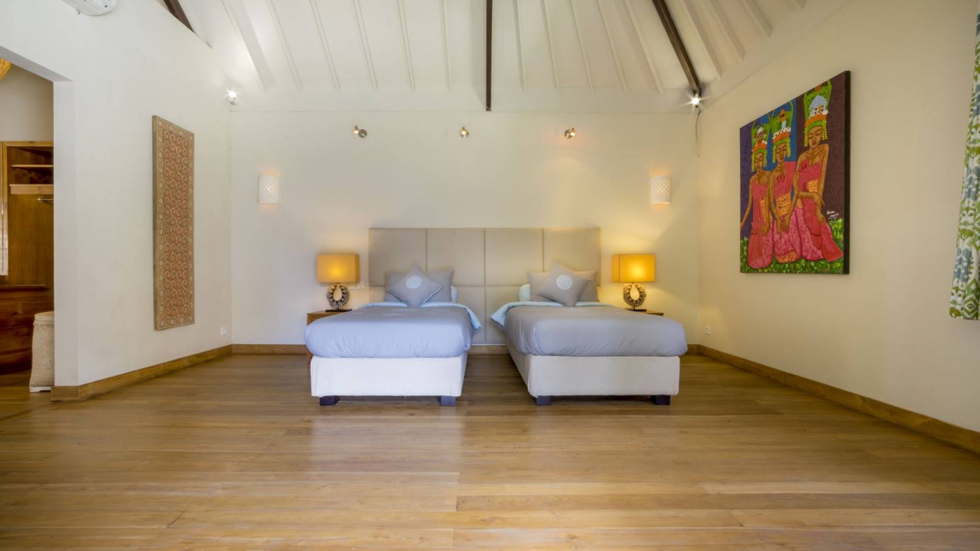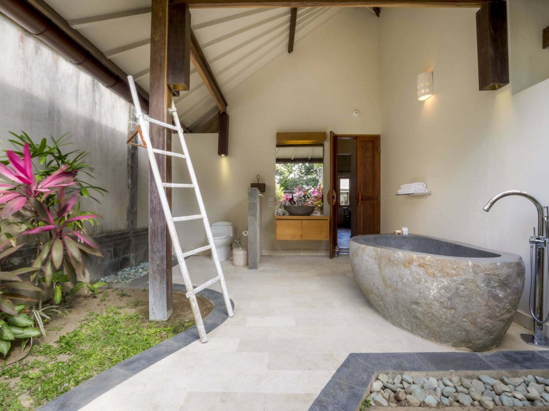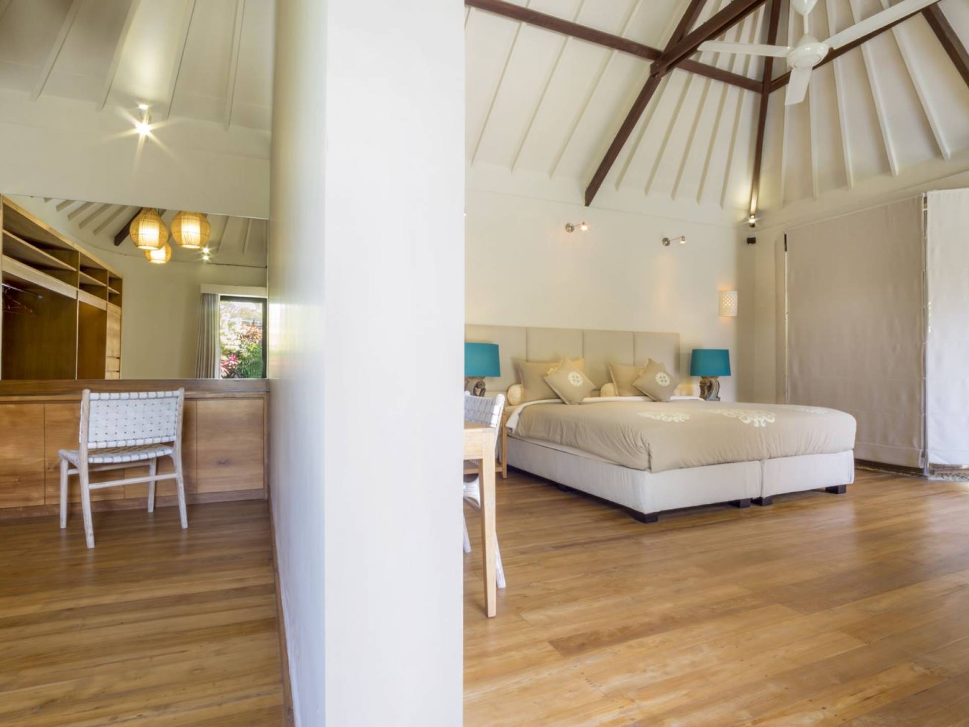 Villa Markisa ist eine Villa mit 3 Schlafzimmern und alle 3 Schlafzimmer sind geräumig, klimatisiert und mit ihren hochwertigen Betten, Laken und Kissen sehr komfortabel. Das Hauptschlafzimmer befindet sich in einem privaten, unabhängigen Pavillon, der sich zum Garten hin öffnet. Dieses luxuriöse Schlafzimmer verfügt über ein Kingsize-Bett, einen Fernseher mit internationalen Kanälen, einen Schreibtisch, ein Ankleidezimmer und ein atemberaubendes Open-Air-Badezimmer mit großer Badewanne und Außendusche. Die 2 Gästezimmer teilen sich einen dritten Gartenpavillon und eine Veranda. Ein Schlafzimmer ist mit einem Queensize-Bett mit Baldachin ausgestattet, das andere mit zwei Einzelbetten, die auf Anfrage in ein Kingsize-Bett umgewandelt werden können. Außerdem verfügen diese 2 Schlafzimmer über geräumige Umkleideräume und Badezimmer im Garten mit Badewannen und Duschen im Freien. Alle Gäste der Villa Markisa genießen den gleichen modernen Komfort und Luxus. Wie wunderbar!