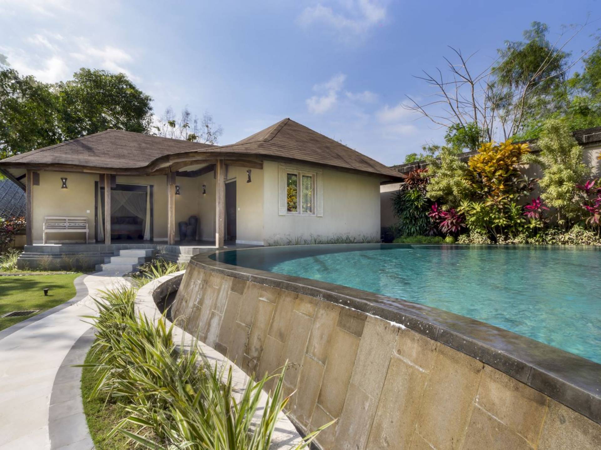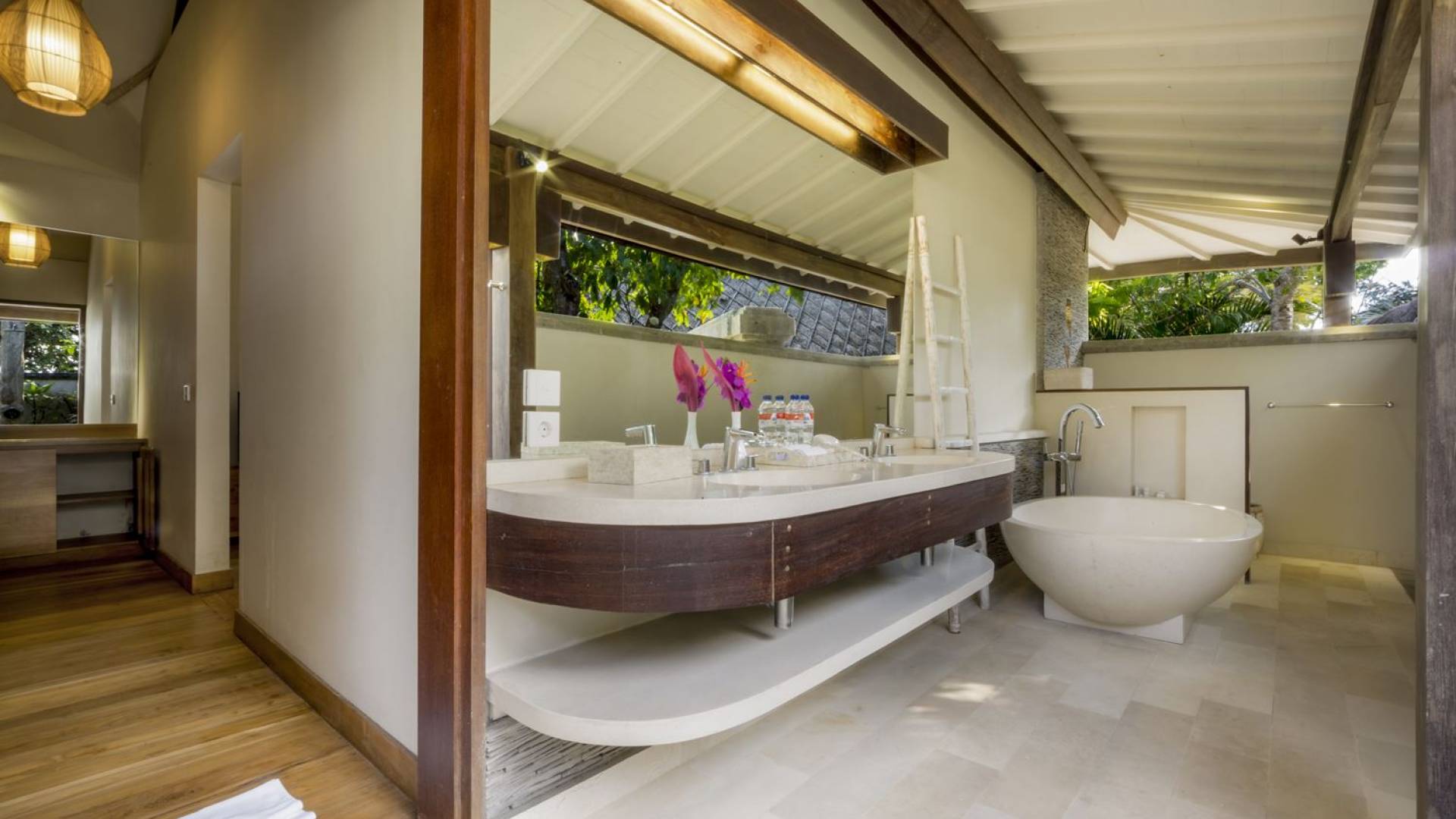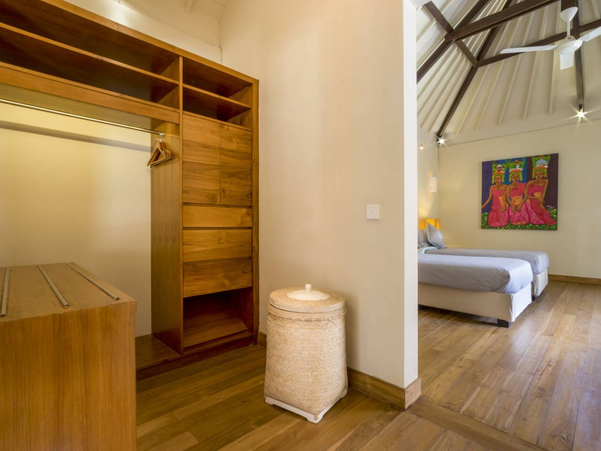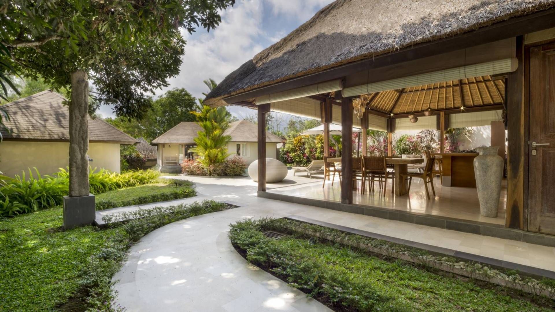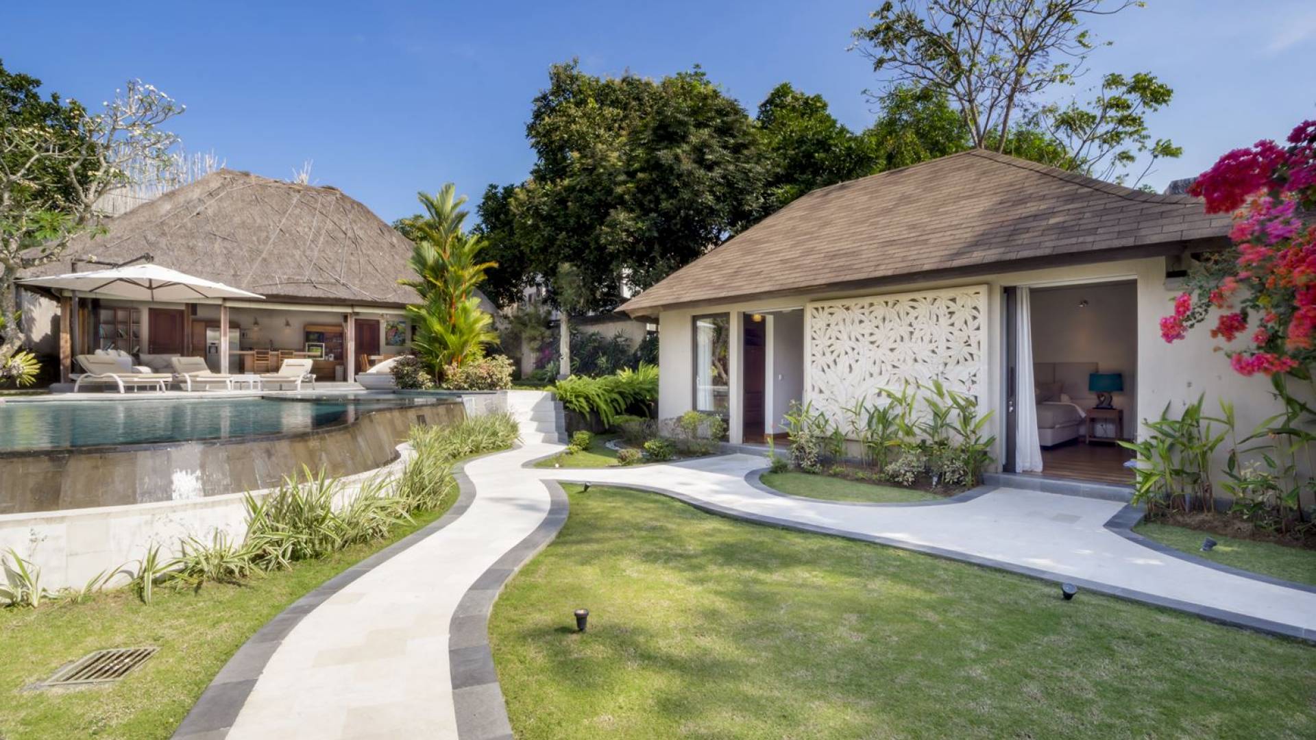Villa Markisa ist eine Villa mit 3 Schlafzimmern und alle 3 Schlafzimmer sind geräumig, klimatisiert und mit ihren hochwertigen Betten, Laken und Kissen sehr komfortabel. Das Hauptschlafzimmer befindet sich in einem privaten, unabhängigen Pavillon, der sich zum Garten hin öffnet. Dieses luxuriöse Schlafzimmer verfügt über ein Kingsize-Bett, einen Fernseher mit internationalen Kanälen, einen Schreibtisch, ein Ankleidezimmer und ein atemberaubendes Open-Air-Badezimmer mit großer Badewanne und Außendusche. Die 2 Gästezimmer teilen sich einen dritten Gartenpavillon und eine Veranda. Ein Schlafzimmer ist mit einem Queensize-Bett mit Baldachin ausgestattet, das andere mit zwei Einzelbetten, die auf Anfrage in ein Kingsize-Bett umgewandelt werden können. Außerdem verfügen diese 2 Schlafzimmer über geräumige Umkleideräume und Badezimmer im Garten mit Badewannen und Duschen im Freien. Alle Gäste der Villa Markisa genießen den gleichen modernen Komfort und Luxus. Wie wunderbar!