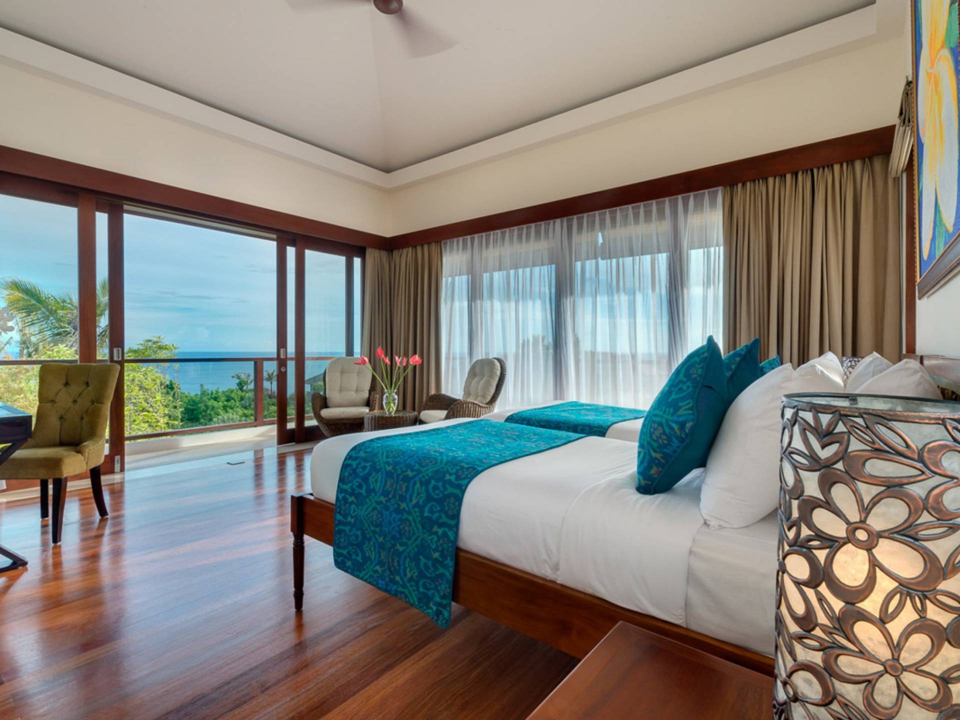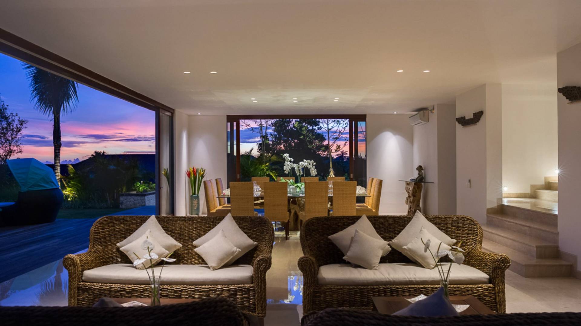 Das Pandawa Cliff Estate Bali liegt hoch über dem Meer auf Balis malerischer Halbinsel Bukit und ist ein hervorragender Ort für Hochzeiten und Veranstaltungen. Villa Rose im Pandawa Cliff Estate Bali, eines von vier luxuriösen Mietobjekten auf dem Anwesen, umfasst seine erhabene Lage auf den Klippen mit einer eleganten, offenen Lounge und einem großen Esszimmer, in dem die Glastüren vollständig zurück in die Gärten und 18- Meter Infinity-Pool. Vier geräumige Schlafzimmer mit eigenem Bad – zwei Kingsize- und zwei Zweibettzimmer – sind ideal für Familien eingerichtet, während ein Sportzentrum, ein Tennisplatz, ein Spa und ein großes Team professioneller Mitarbeiter sich um jeden Urlaubswunsch kümmern.