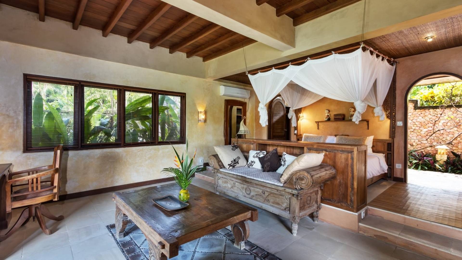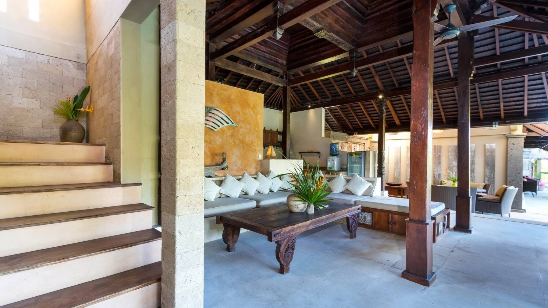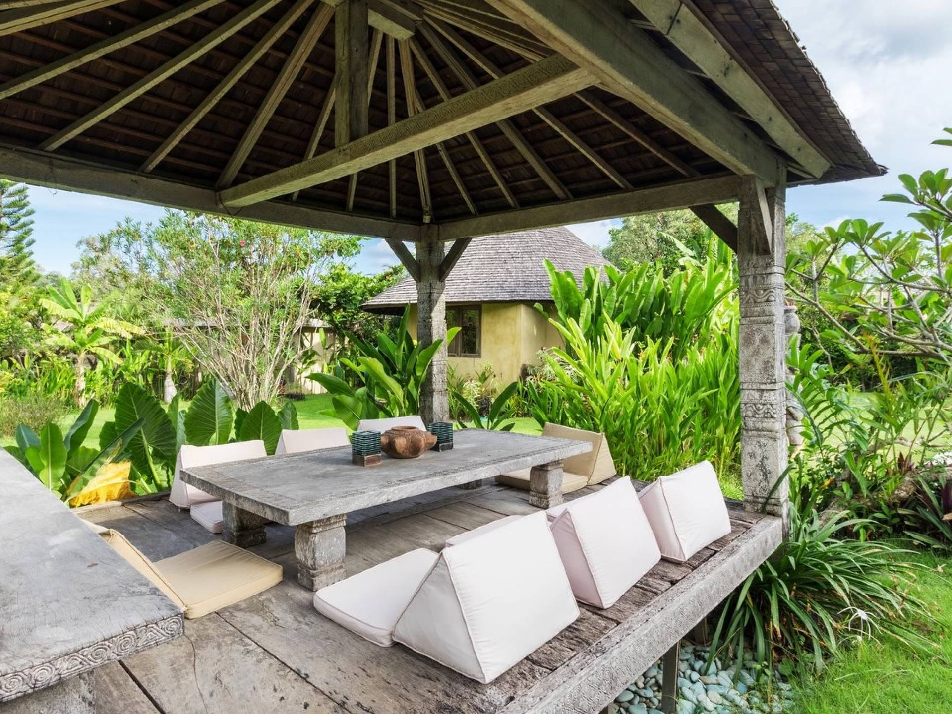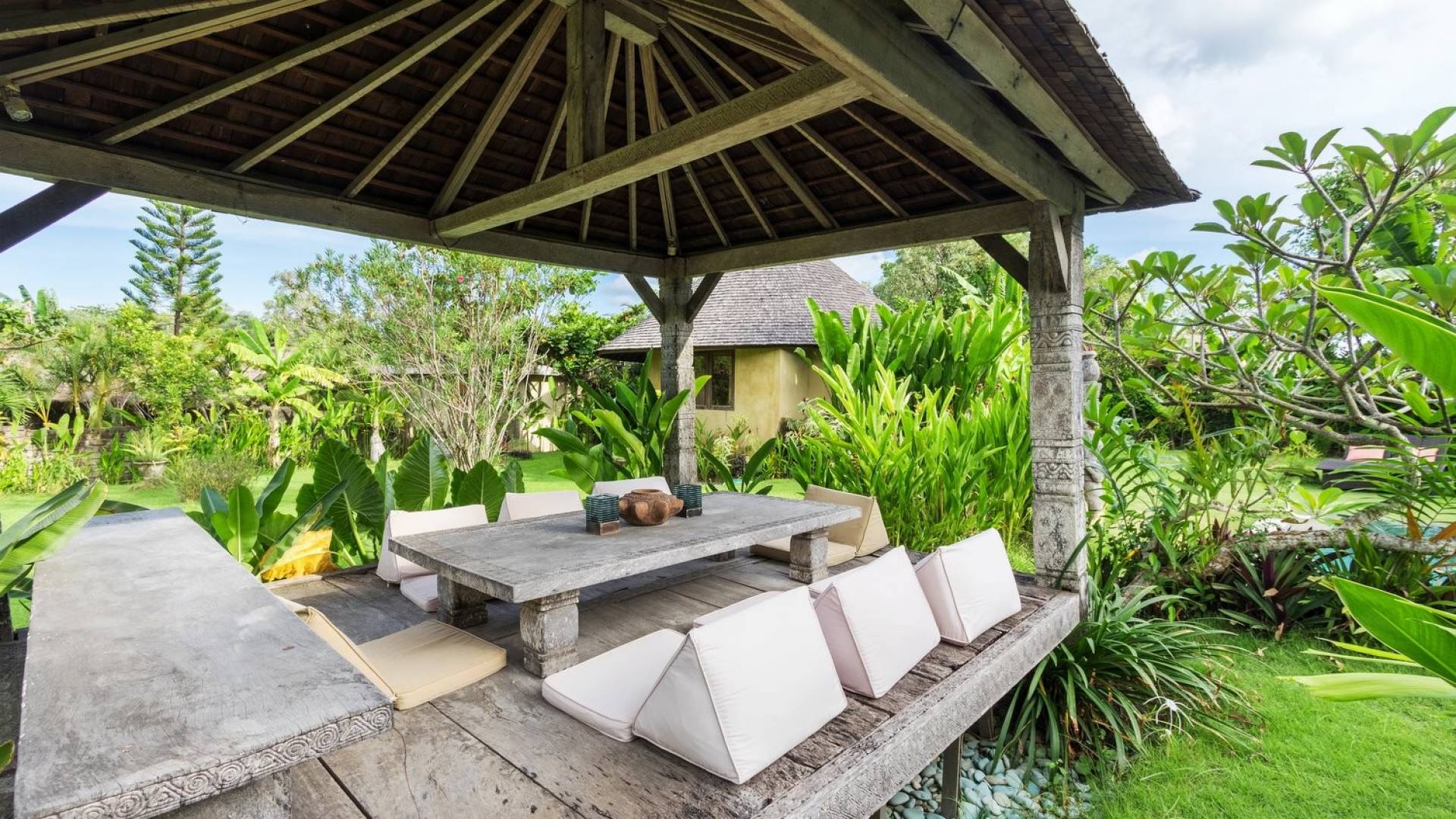 Villa Bungadesa bietet wunderschöne traditionelle indonesische Häuser, darunter ein javanisches Joglo und ein South Sulawesi Toraja House. Wunderschöne Teakholzmöbel und faszinierende traditionelle Kunstwerke verleihen dem Wohnzimmer einen rustikalen Charme und eine raffinierte Atmosphäre. Versteckt im Joglo-Pavillon mit seinem charakteristischen hohen Holzdach, ist das Design zum Garten hin offen und lässt frische Luft zirkulieren. Vorne steht ein Esstisch aus Teakholz für bis zu 10 Personen.