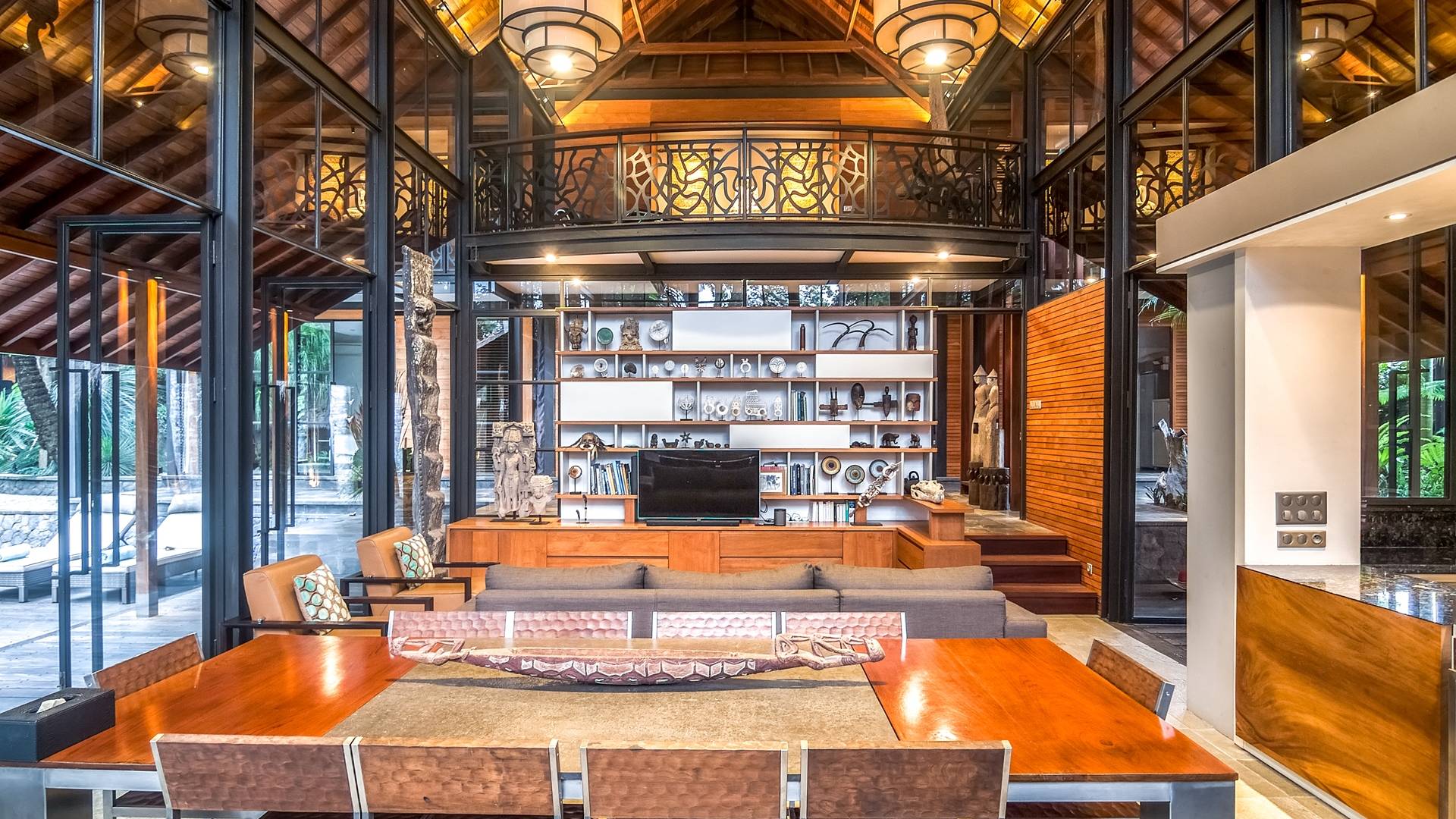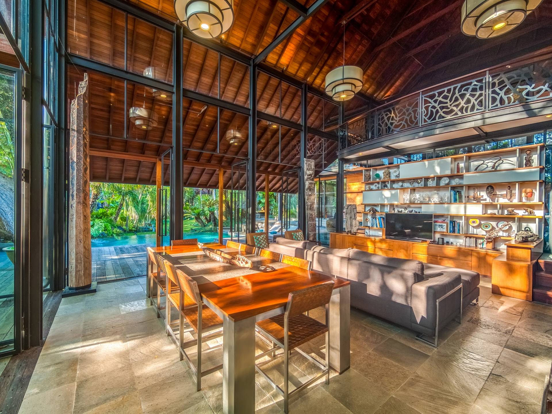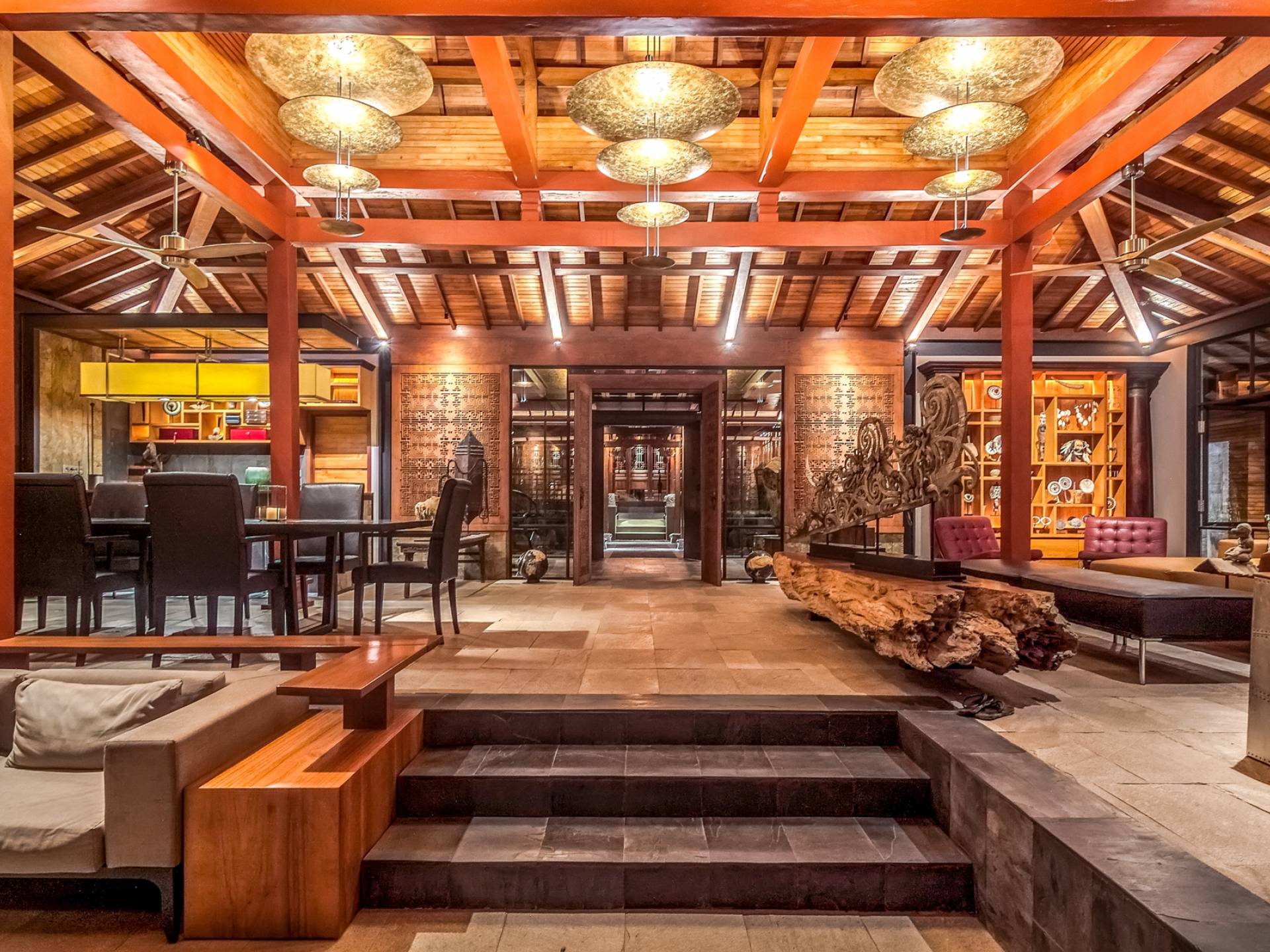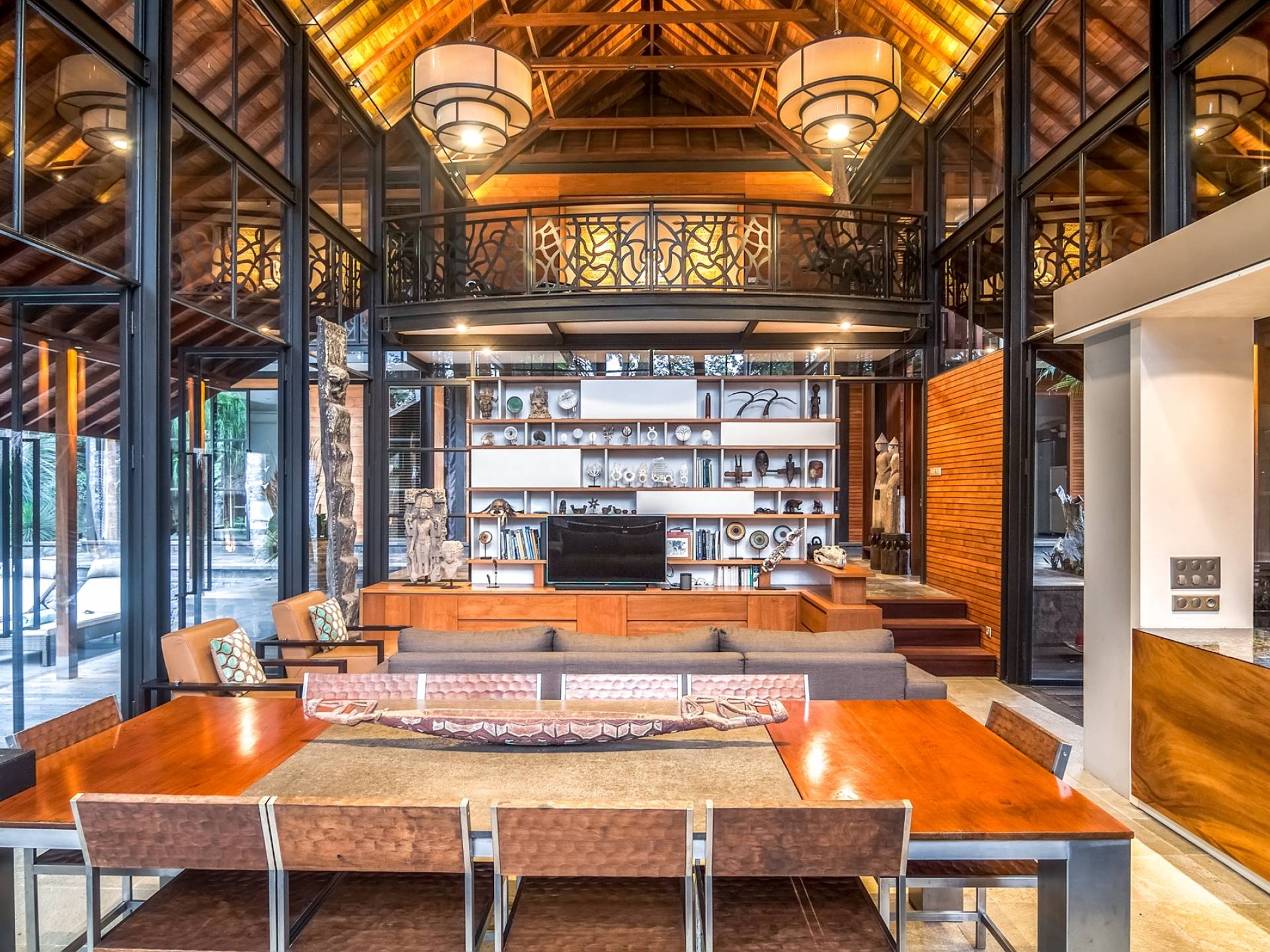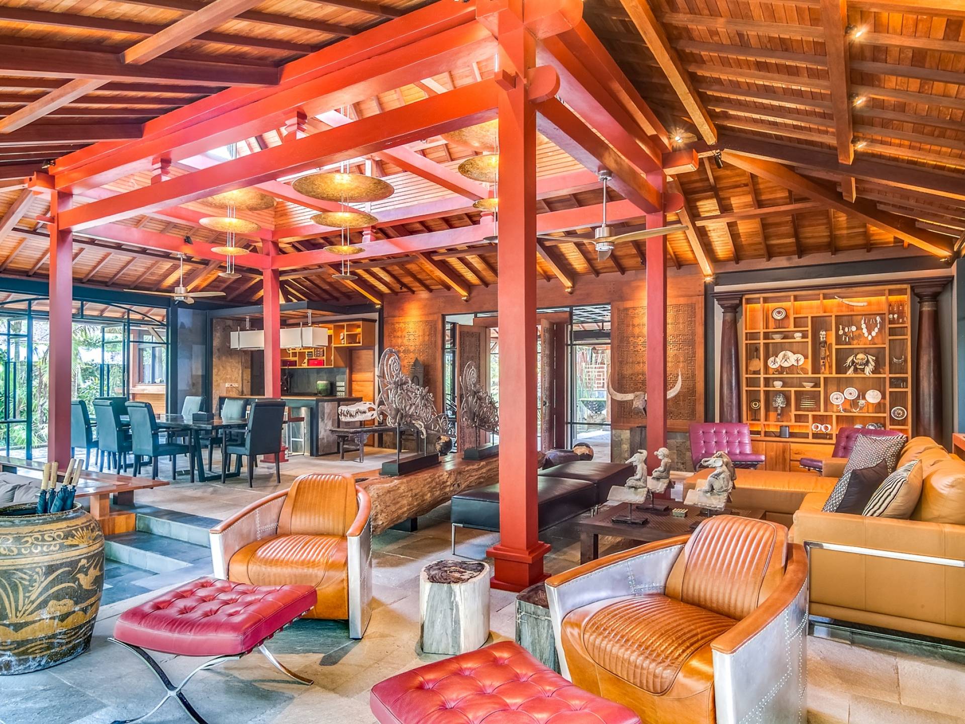 Das Anwesen mit seinen vier Gästegebäuden und fünf Schlafzimmern mit eigenem Bad wird Sie in Erstaunen versetzen, da sorgfältig verarbeitetes Teakholz seine Wärme über die Kraft von Eisen, Marmor, indischem Naturstein, Leder und Stahldetails wirft. Teiche, überdachte Wege und die große Sammlung von Antiquitäten und Stammeskunst verstärken das Gefühl der Ehrfurcht. Ein krönender Abschluss des Villengeländes sind die exquisiten Gärten, die mit einer Vielzahl seltener Arten bepflanzt und speziell entworfen wurden, um ein enormes Gefühl der Abgeschiedenheit zu verstärken - ein modernes Eden.