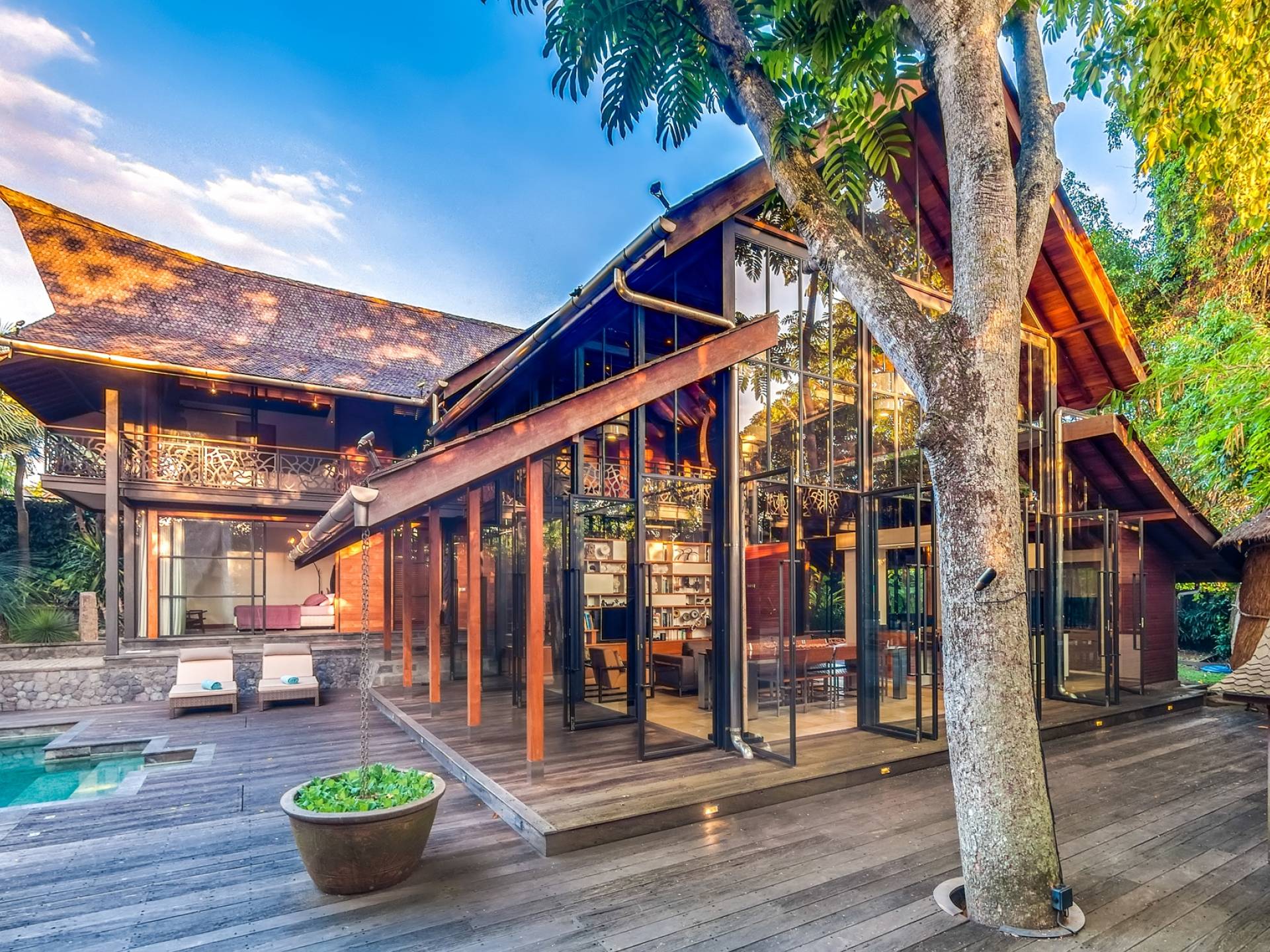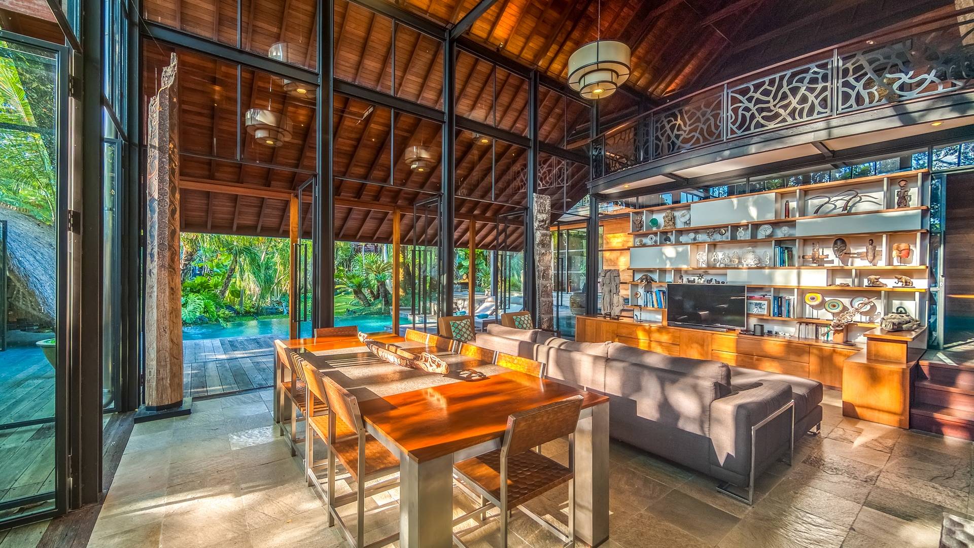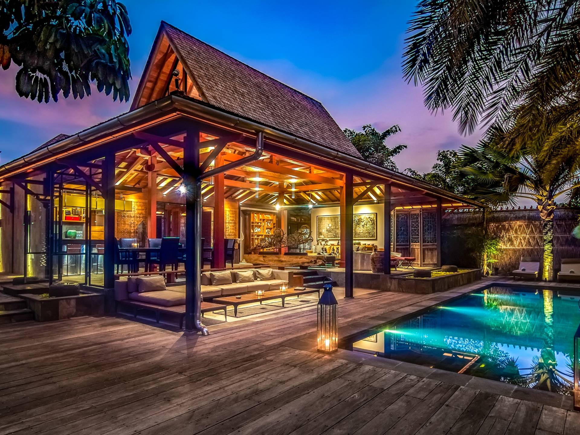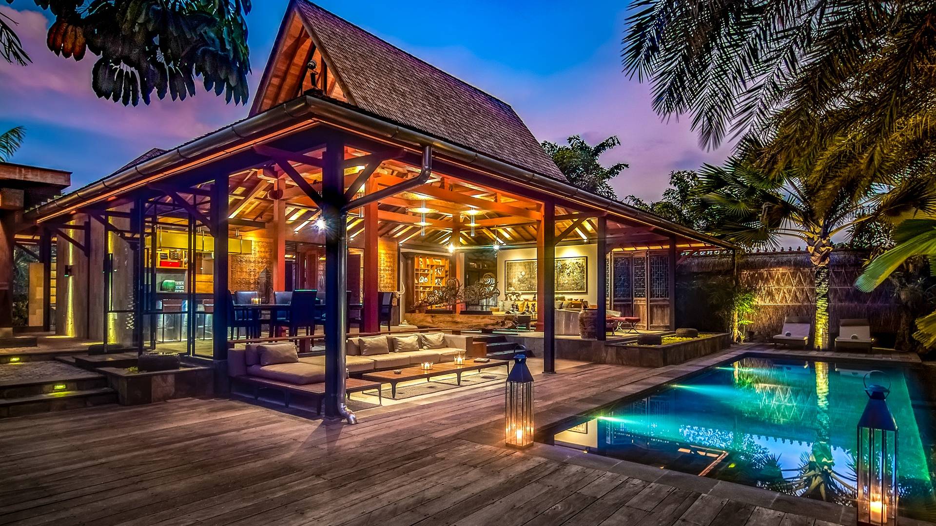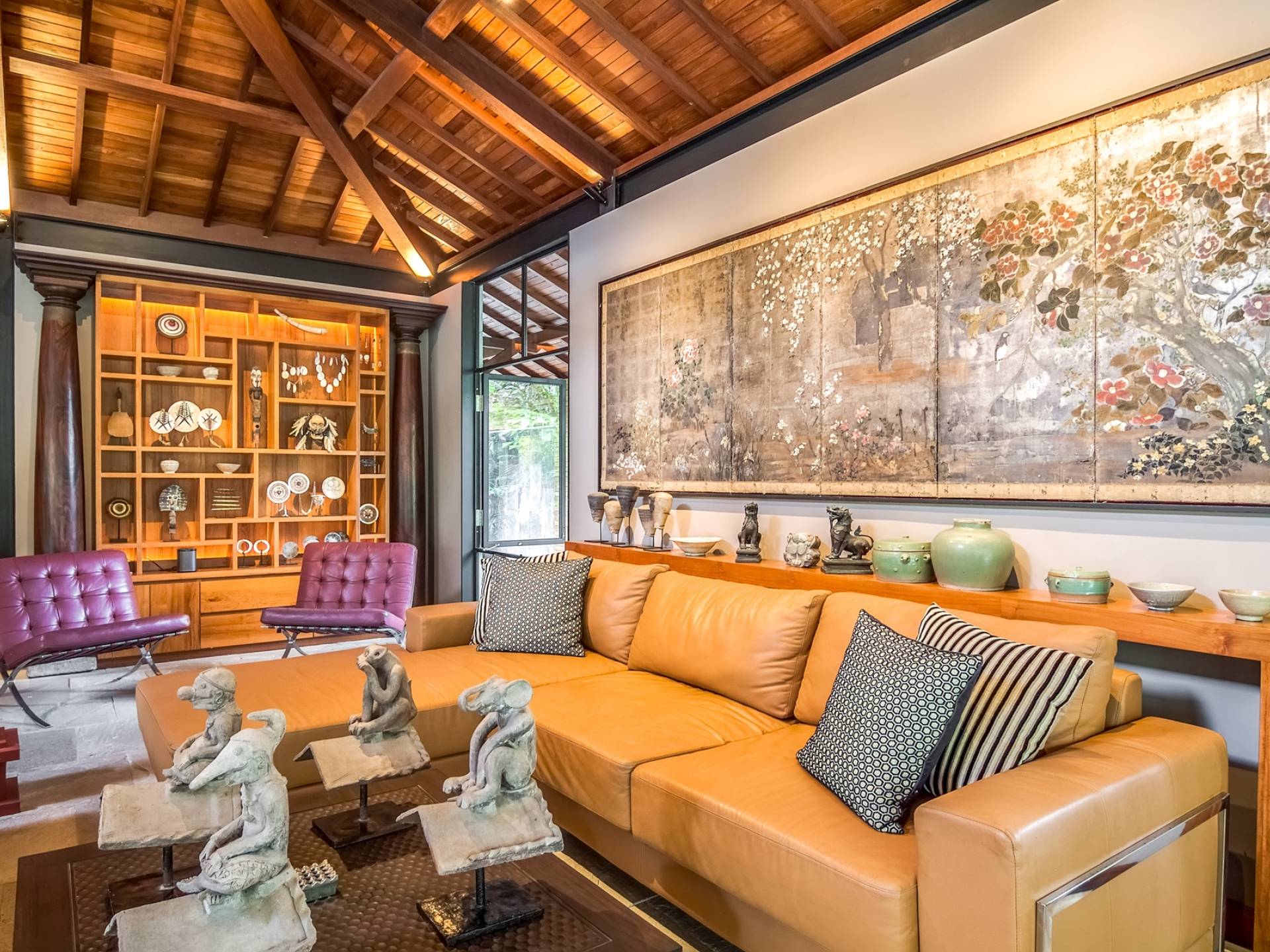 Das Anwesen mit seinen vier Gästegebäuden und fünf Schlafzimmern mit eigenem Bad wird Sie in Erstaunen versetzen, da sorgfältig verarbeitetes Teakholz seine Wärme über die Kraft von Eisen, Marmor, indischem Naturstein, Leder und Stahldetails wirft. Teiche, überdachte Wege und die große Sammlung von Antiquitäten und Stammeskunst verstärken das Gefühl der Ehrfurcht. Ein krönender Abschluss des Villengeländes sind die exquisiten Gärten, die mit einer Vielzahl seltener Arten bepflanzt und speziell entworfen wurden, um ein enormes Gefühl der Abgeschiedenheit zu verstärken - ein modernes Eden.