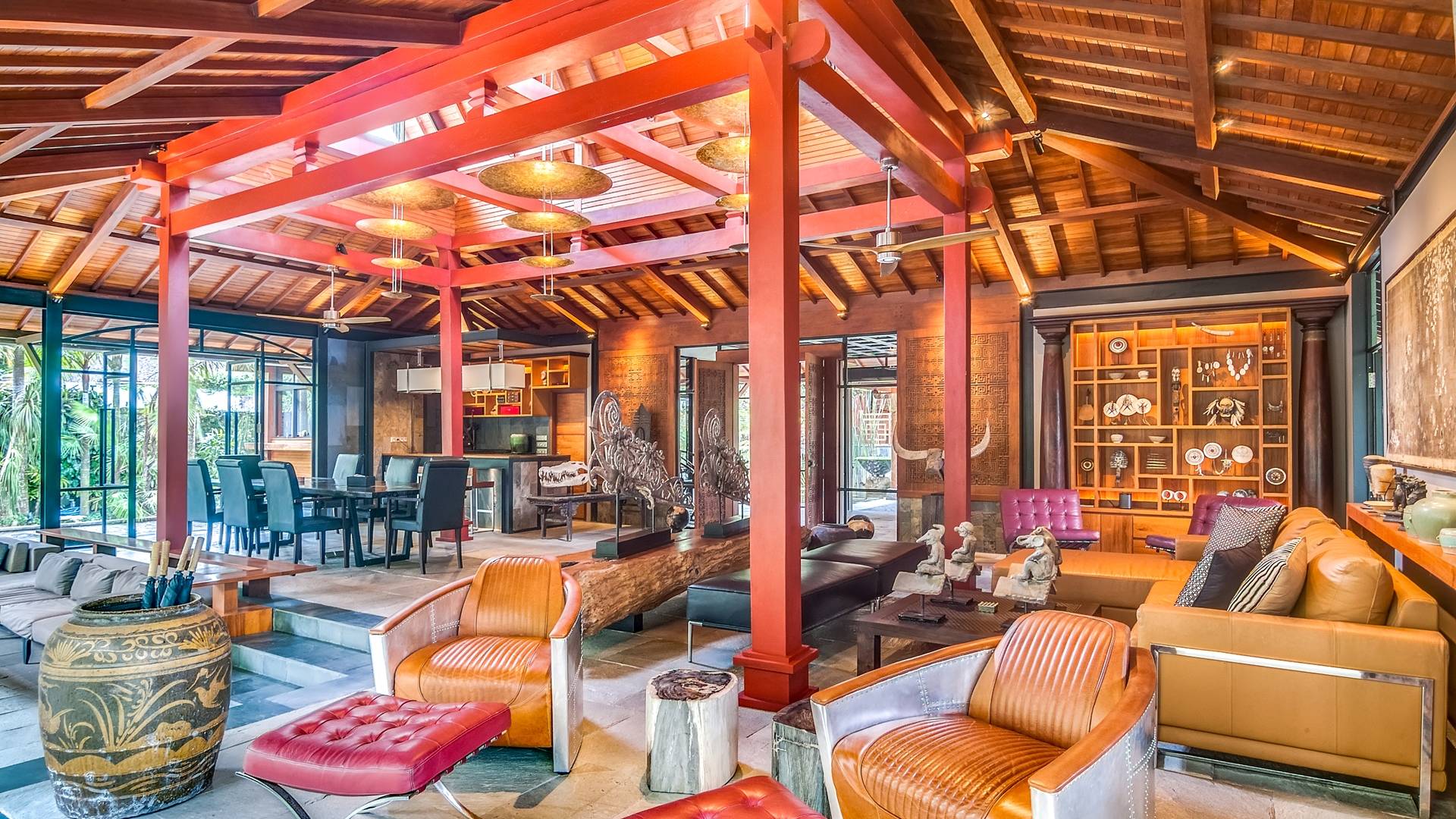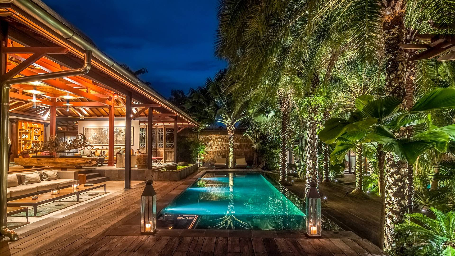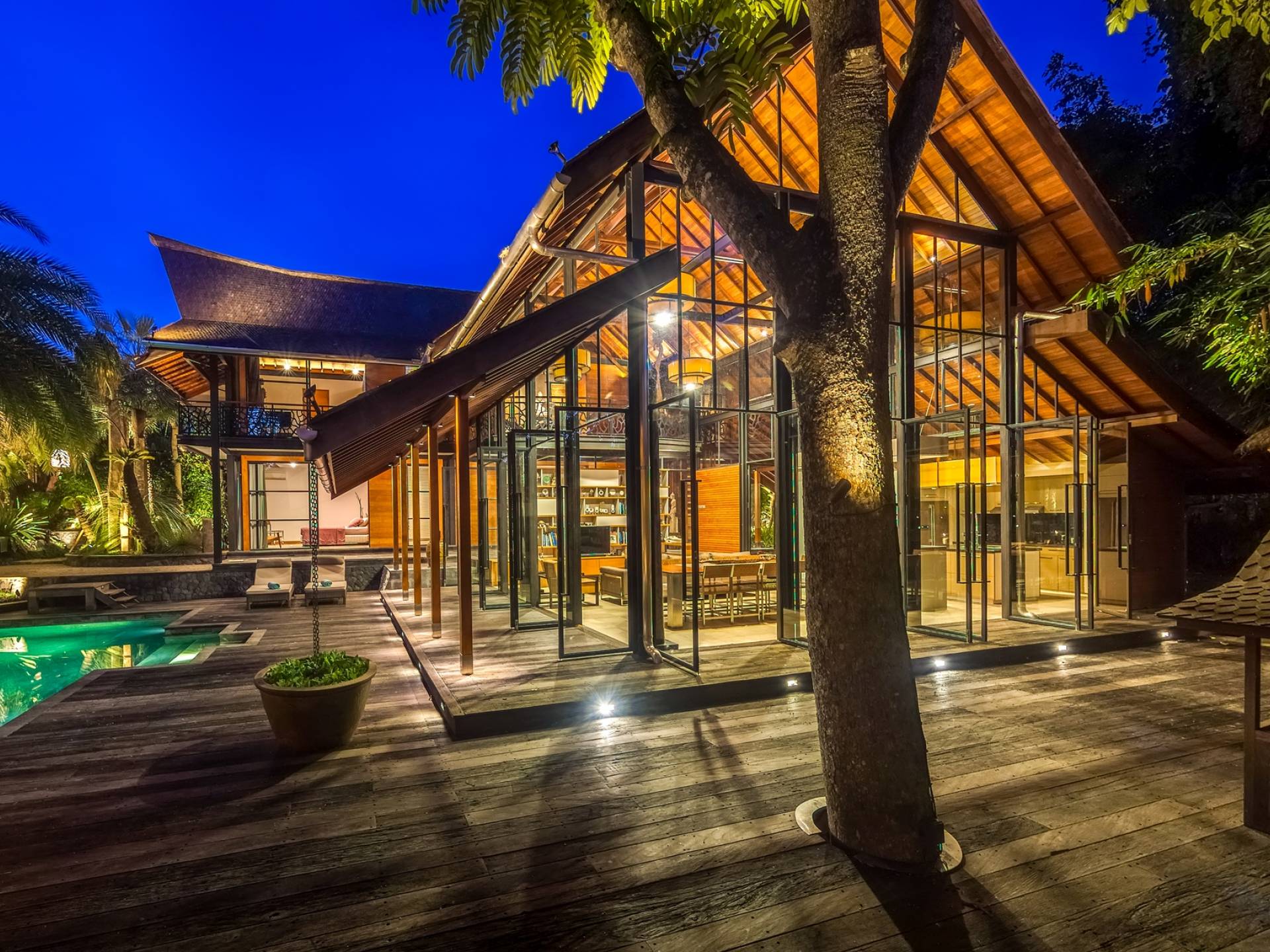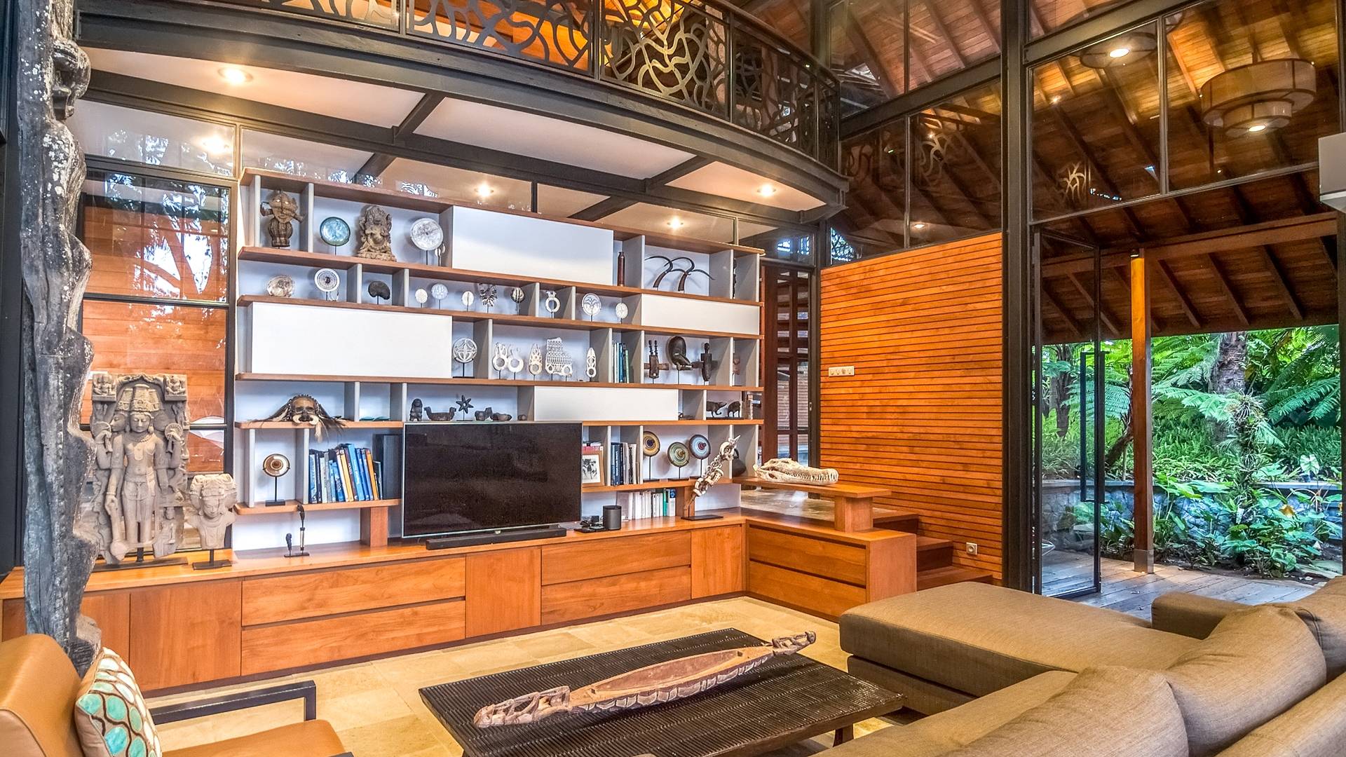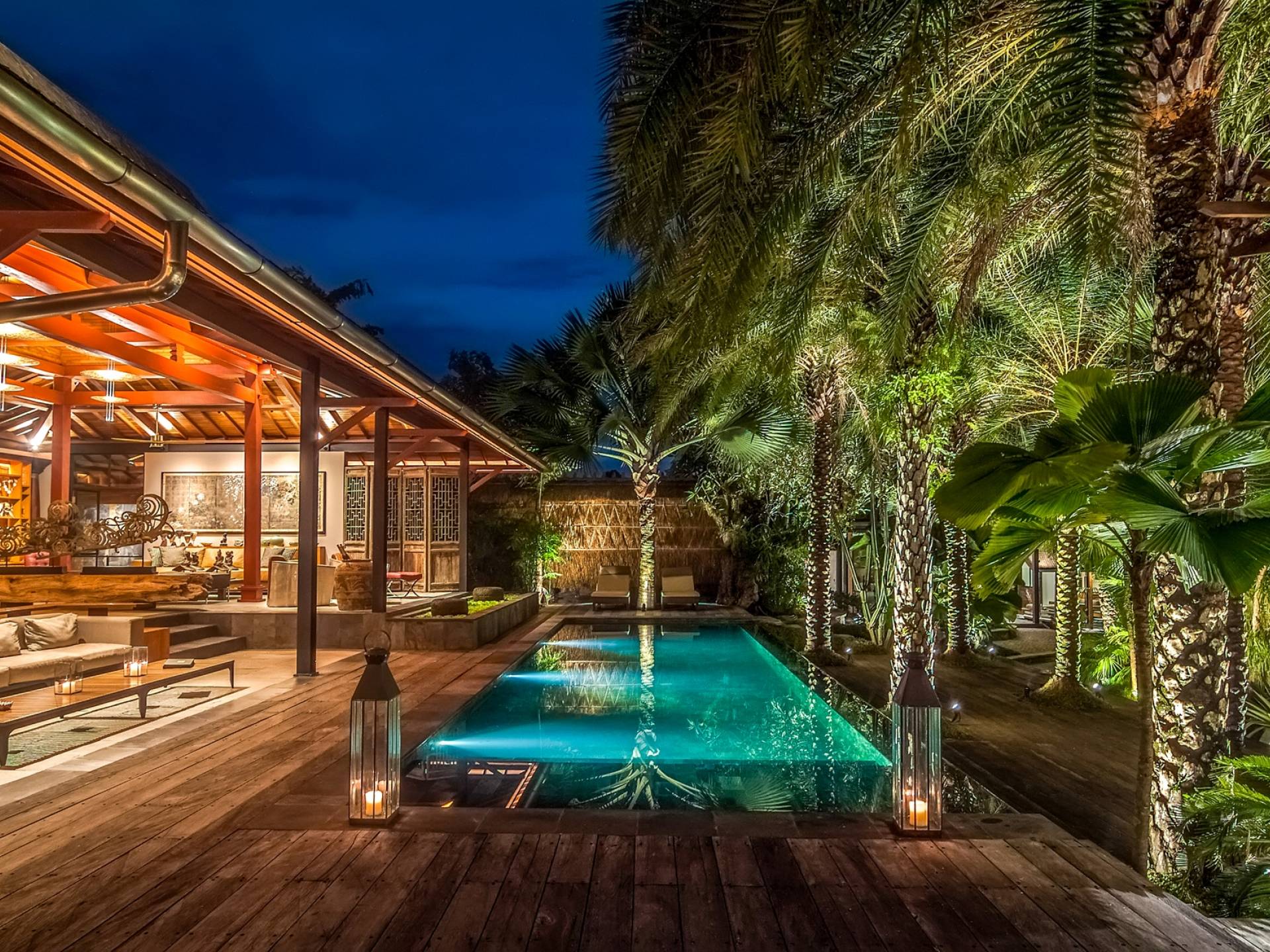 Das Anwesen mit seinen vier Gästegebäuden und fünf Schlafzimmern mit eigenem Bad wird Sie in Erstaunen versetzen, da sorgfältig verarbeitetes Teakholz seine Wärme über die Kraft von Eisen, Marmor, indischem Naturstein, Leder und Stahldetails wirft. Teiche, überdachte Wege und die große Sammlung von Antiquitäten und Stammeskunst verstärken das Gefühl der Ehrfurcht. Ein krönender Abschluss des Villengeländes sind die exquisiten Gärten, die mit einer Vielzahl seltener Arten bepflanzt und speziell entworfen wurden, um ein enormes Gefühl der Abgeschiedenheit zu verstärken - ein modernes Eden.