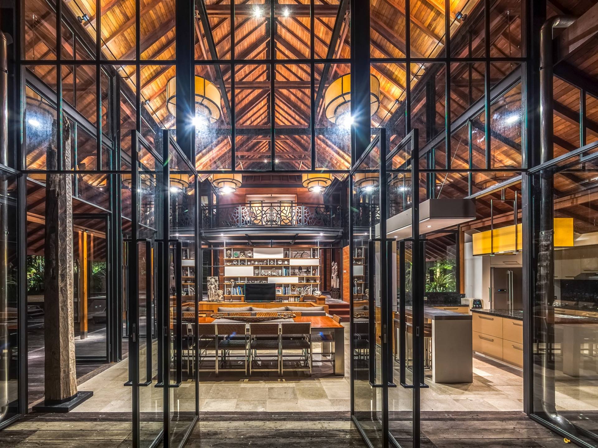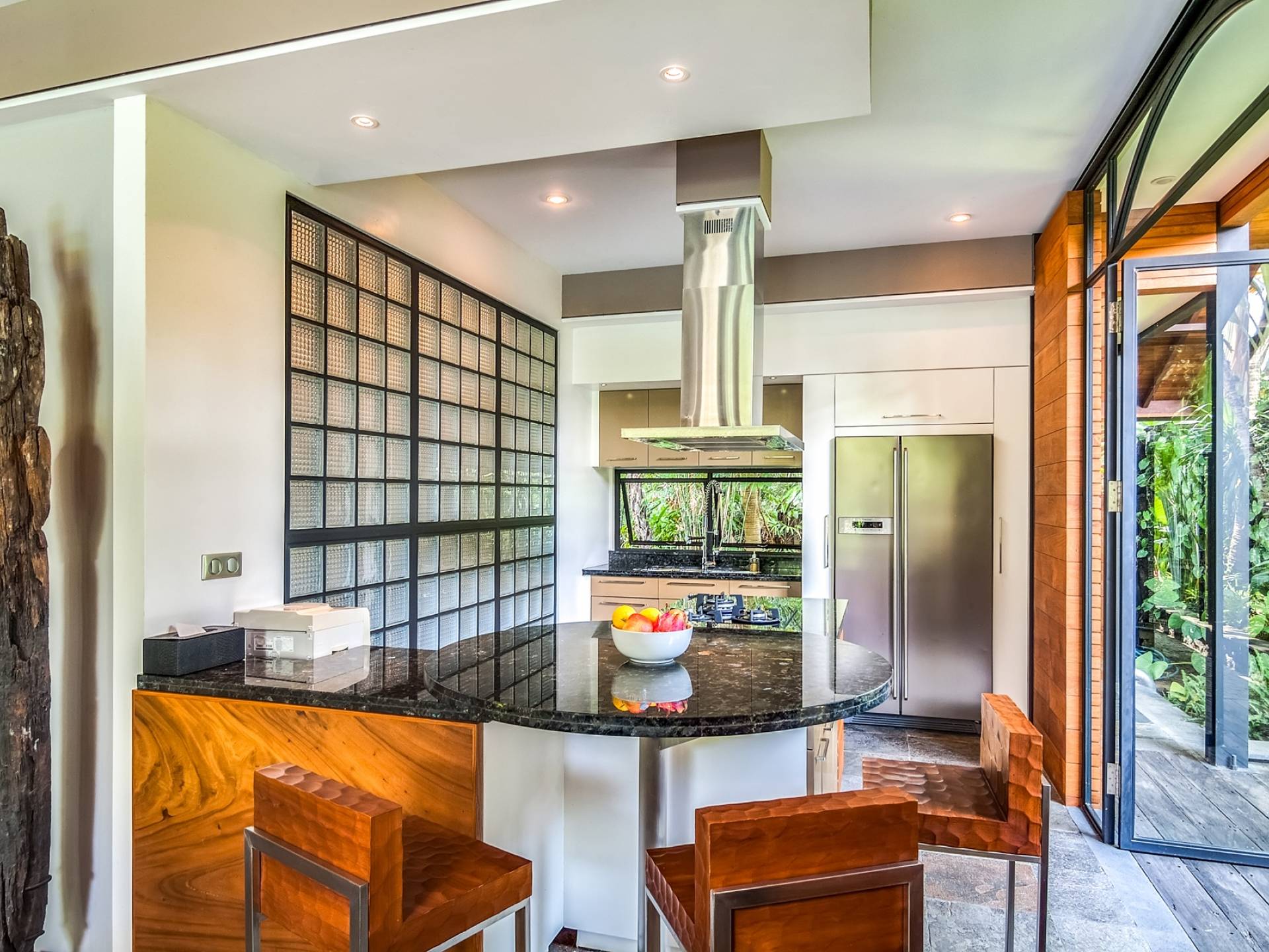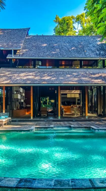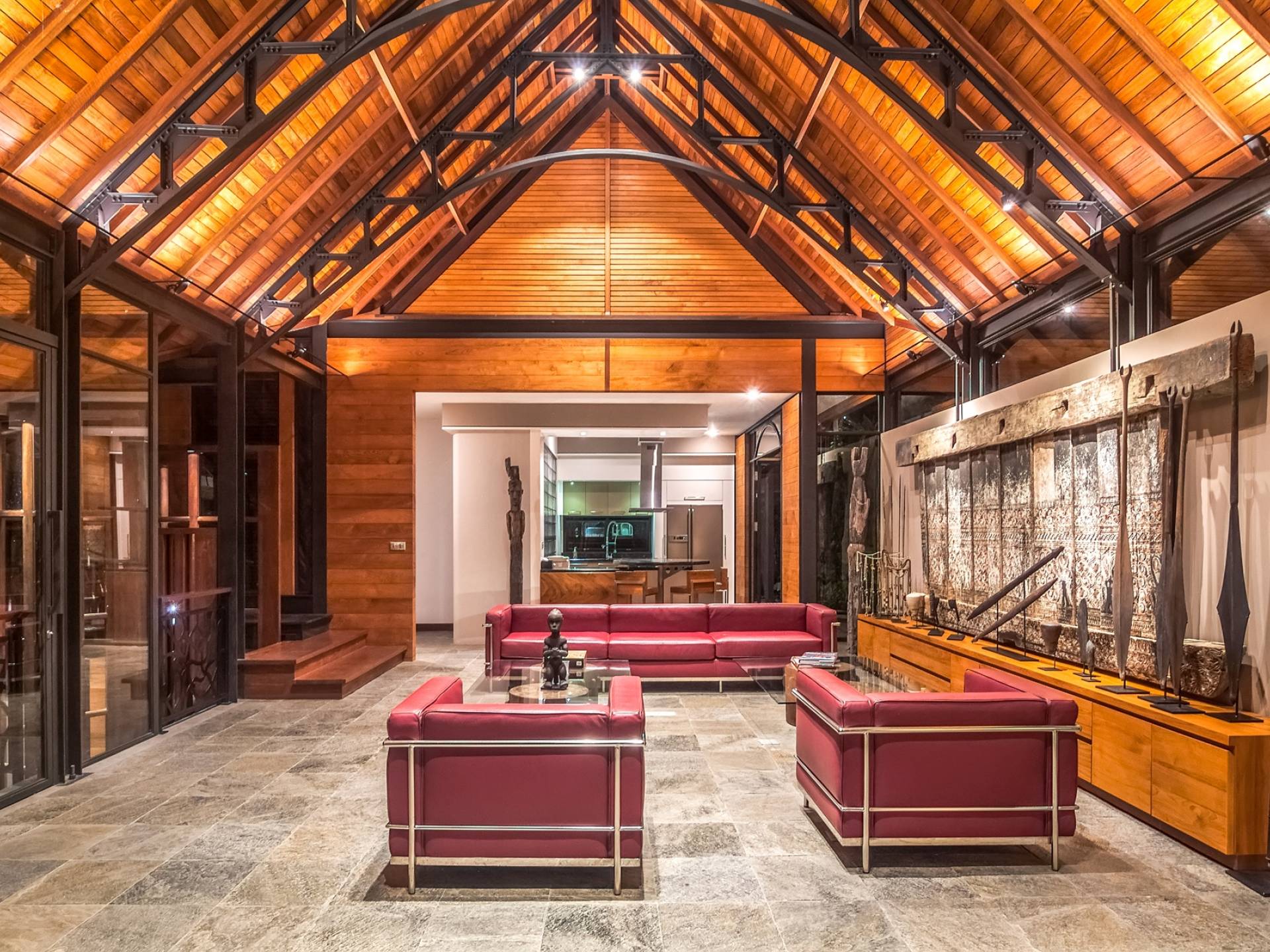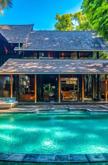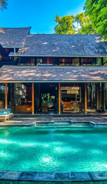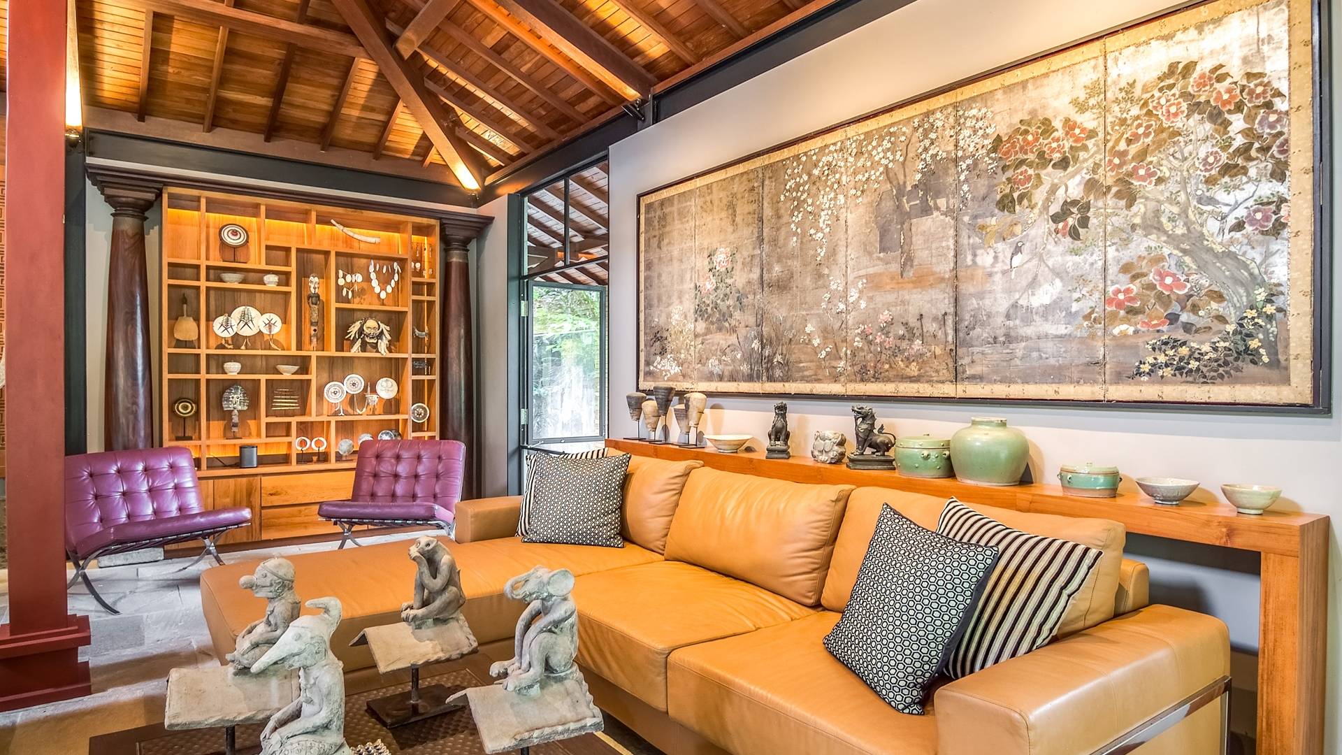 Das Anwesen mit seinen vier Gästegebäuden und fünf Schlafzimmern mit eigenem Bad wird Sie in Erstaunen versetzen, da sorgfältig verarbeitetes Teakholz seine Wärme über die Kraft von Eisen, Marmor, indischem Naturstein, Leder und Stahldetails wirft. Teiche, überdachte Wege und die große Sammlung von Antiquitäten und Stammeskunst verstärken das Gefühl der Ehrfurcht. Ein krönender Abschluss des Villengeländes sind die exquisiten Gärten, die mit einer Vielzahl seltener Arten bepflanzt und speziell entworfen wurden, um ein enormes Gefühl der Abgeschiedenheit zu verstärken - ein modernes Eden.