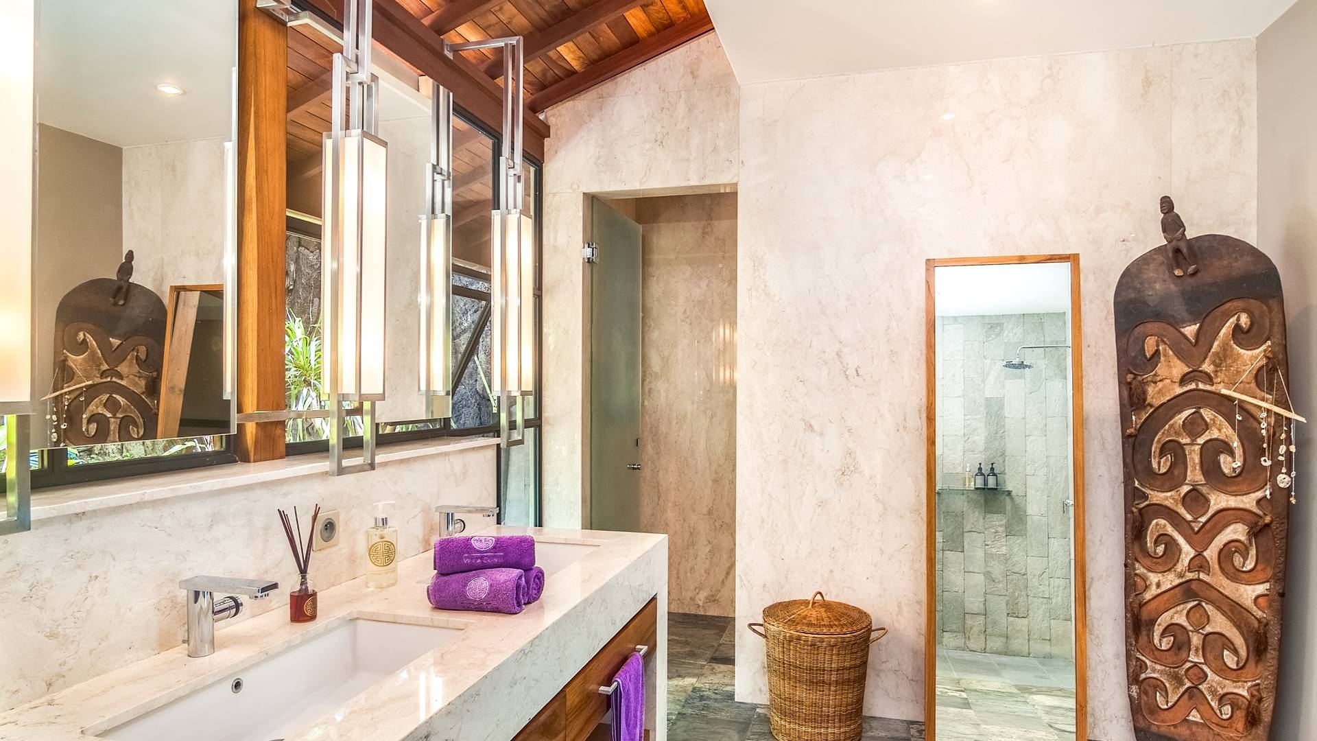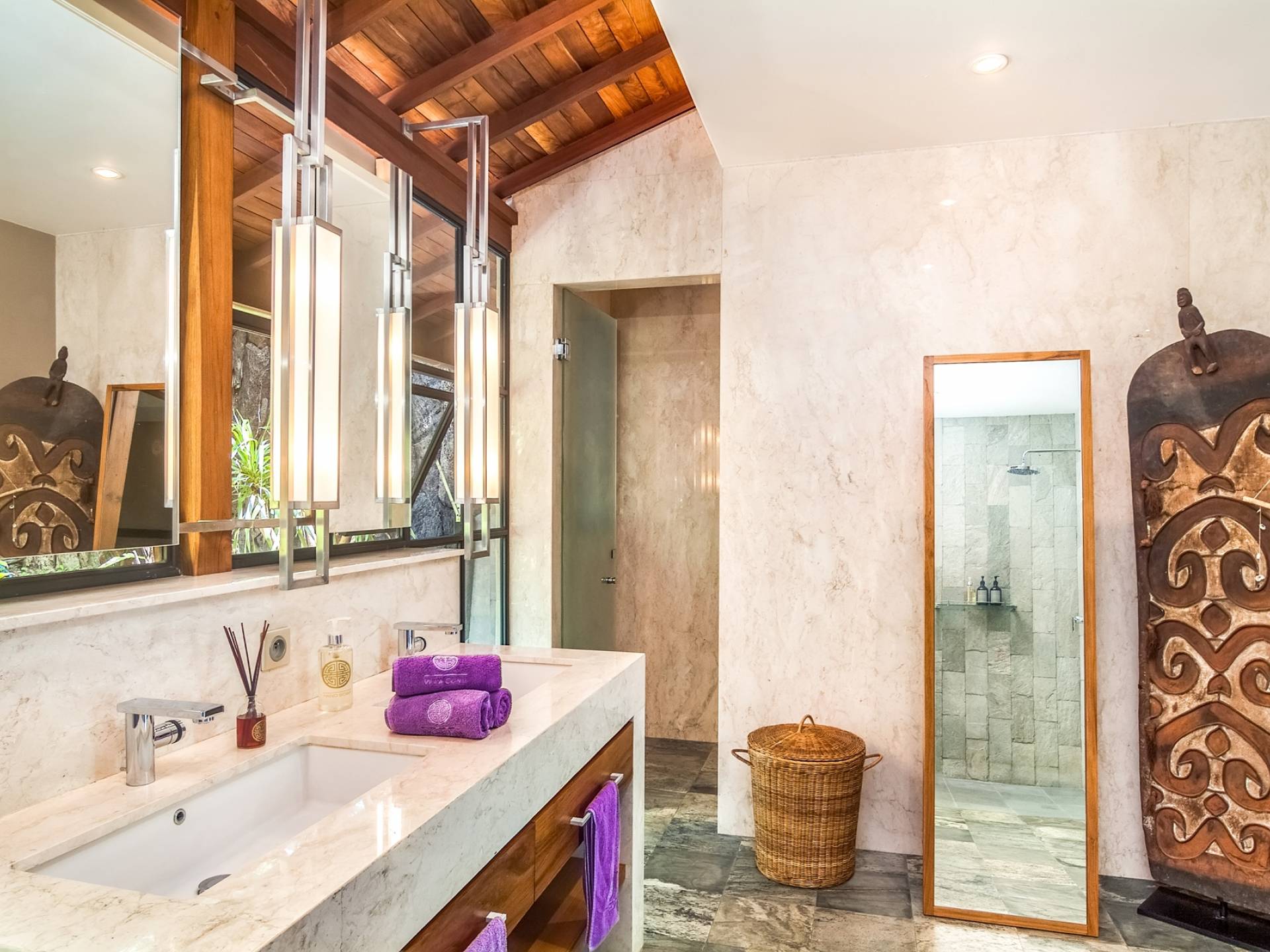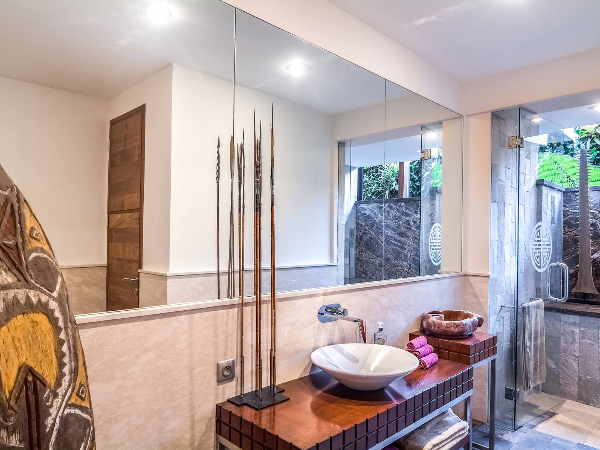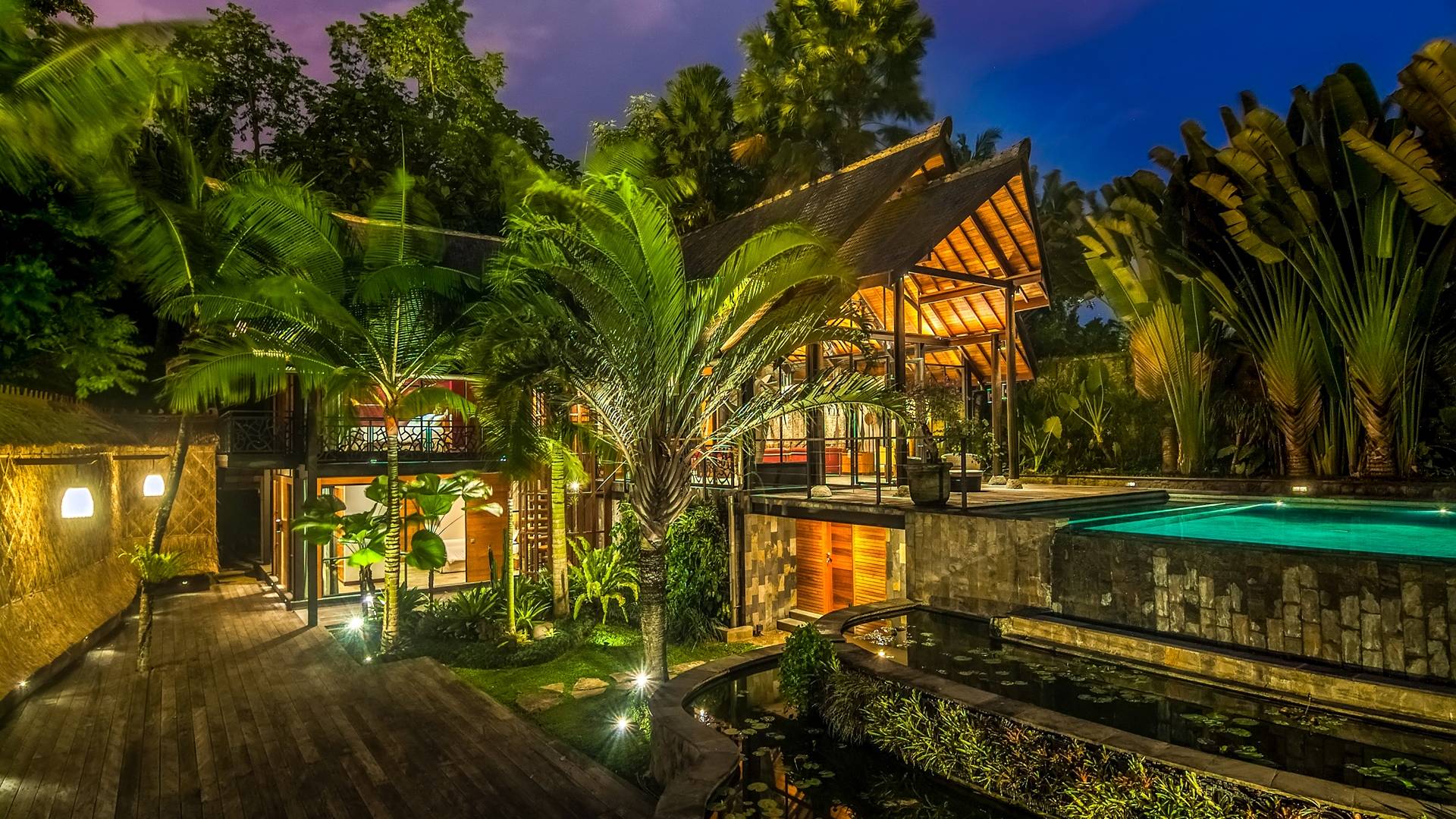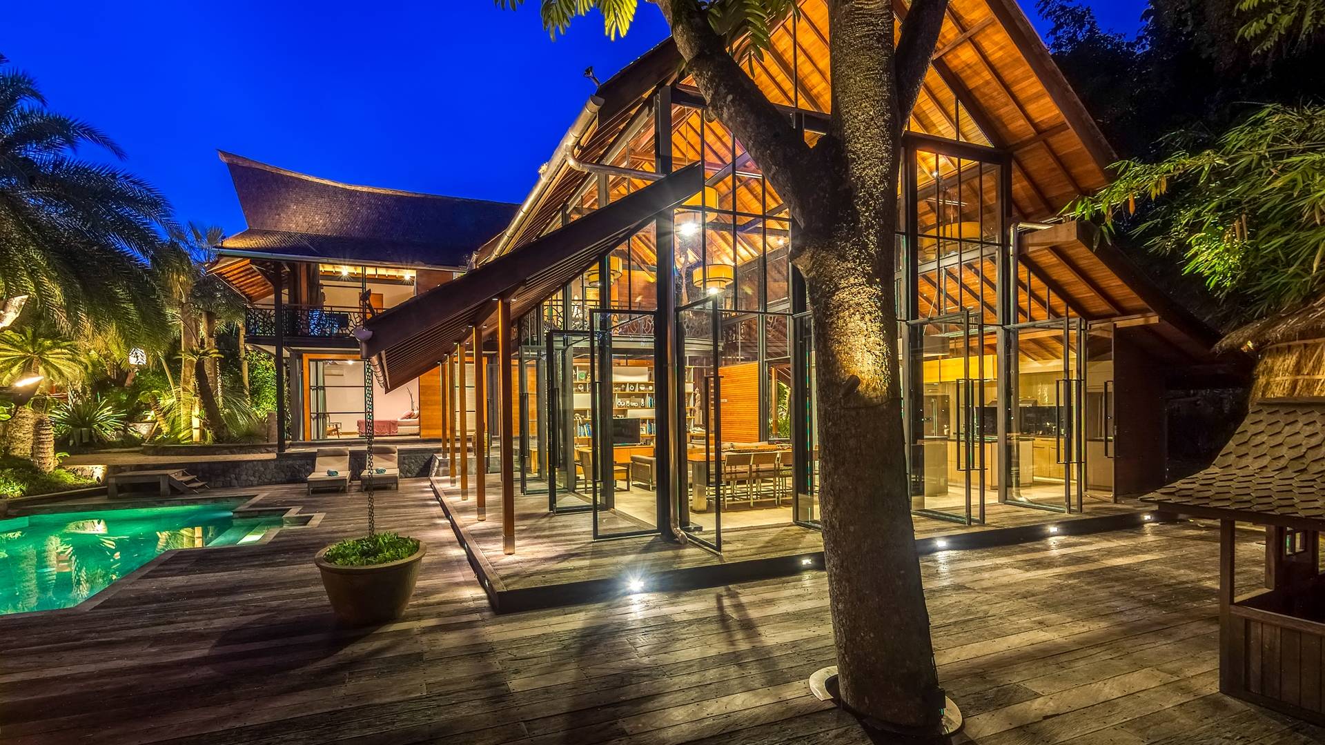 Das Anwesen mit seinen vier Gästegebäuden und fünf Schlafzimmern mit eigenem Bad wird Sie in Erstaunen versetzen, da sorgfältig verarbeitetes Teakholz seine Wärme über die Kraft von Eisen, Marmor, indischem Naturstein, Leder und Stahldetails wirft. Teiche, überdachte Wege und die große Sammlung von Antiquitäten und Stammeskunst verstärken das Gefühl der Ehrfurcht. Ein krönender Abschluss des Villengeländes sind die exquisiten Gärten, die mit einer Vielzahl seltener Arten bepflanzt und speziell entworfen wurden, um ein enormes Gefühl der Abgeschiedenheit zu verstärken - ein modernes Eden.