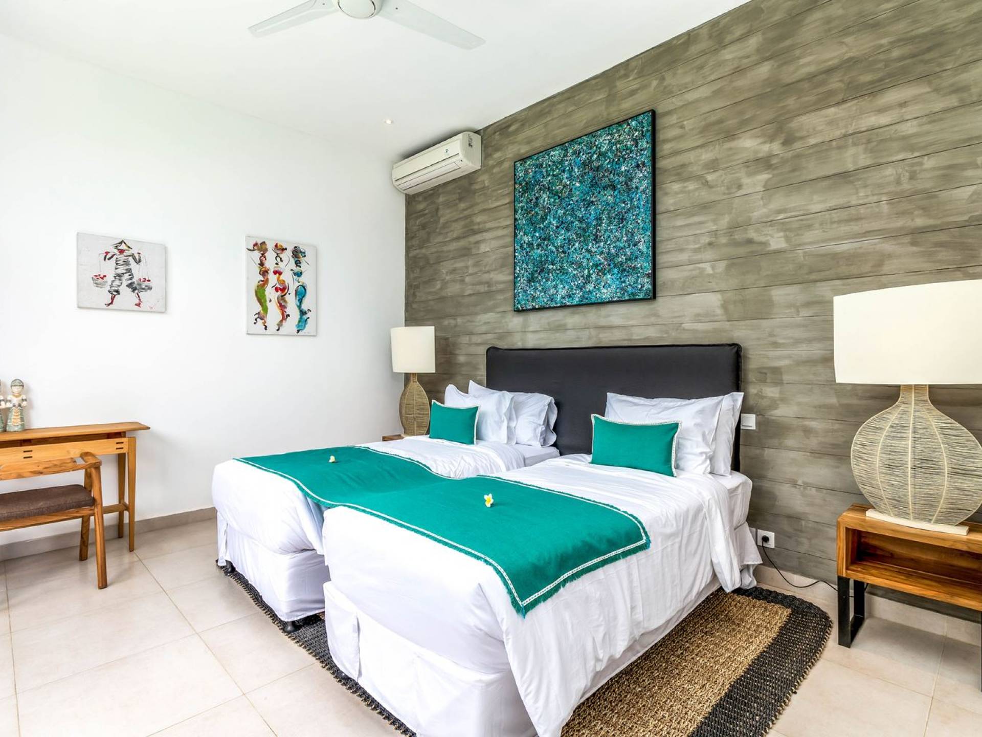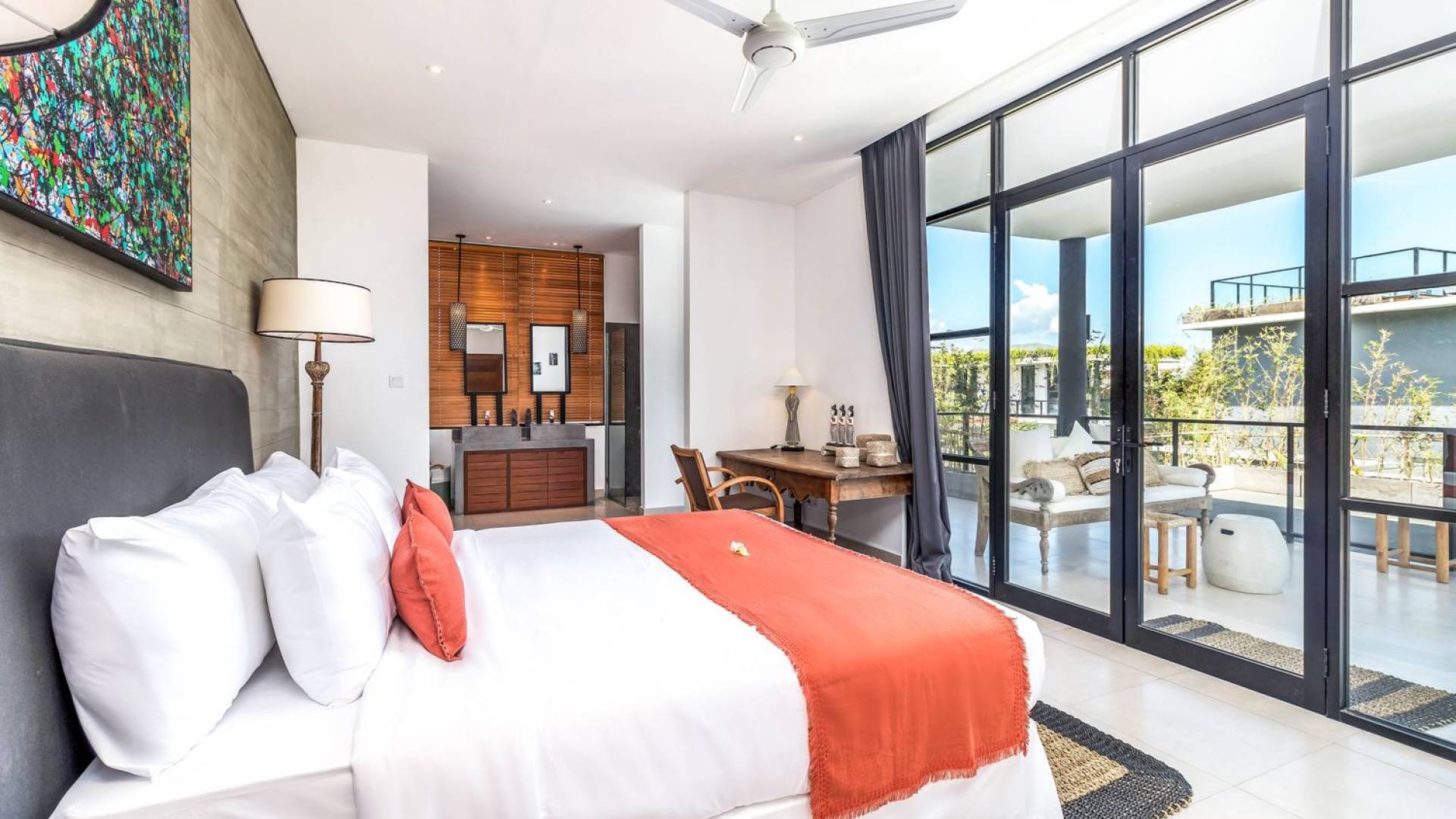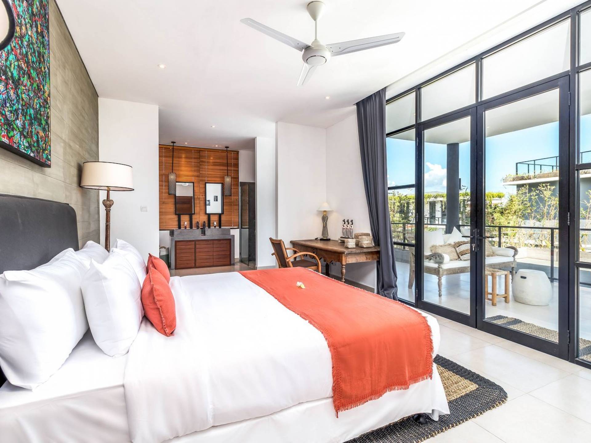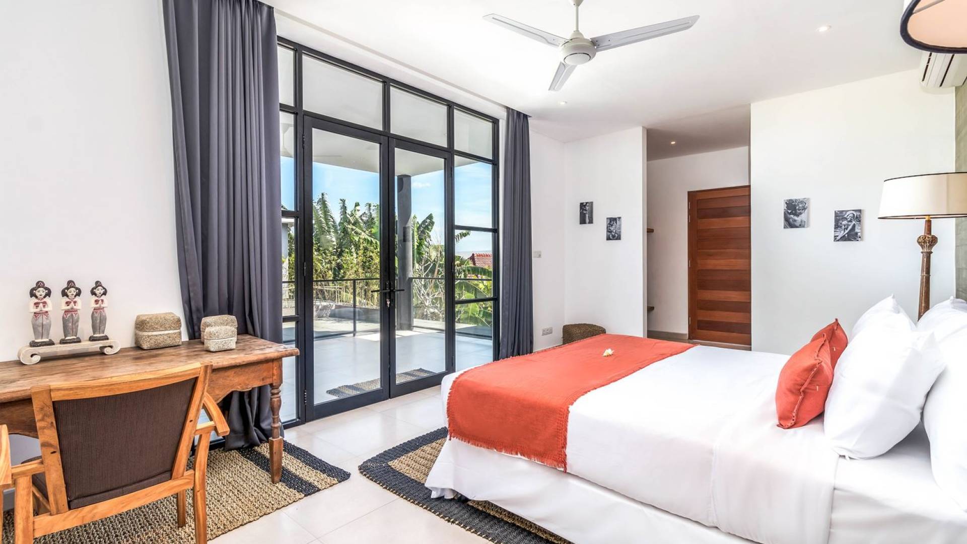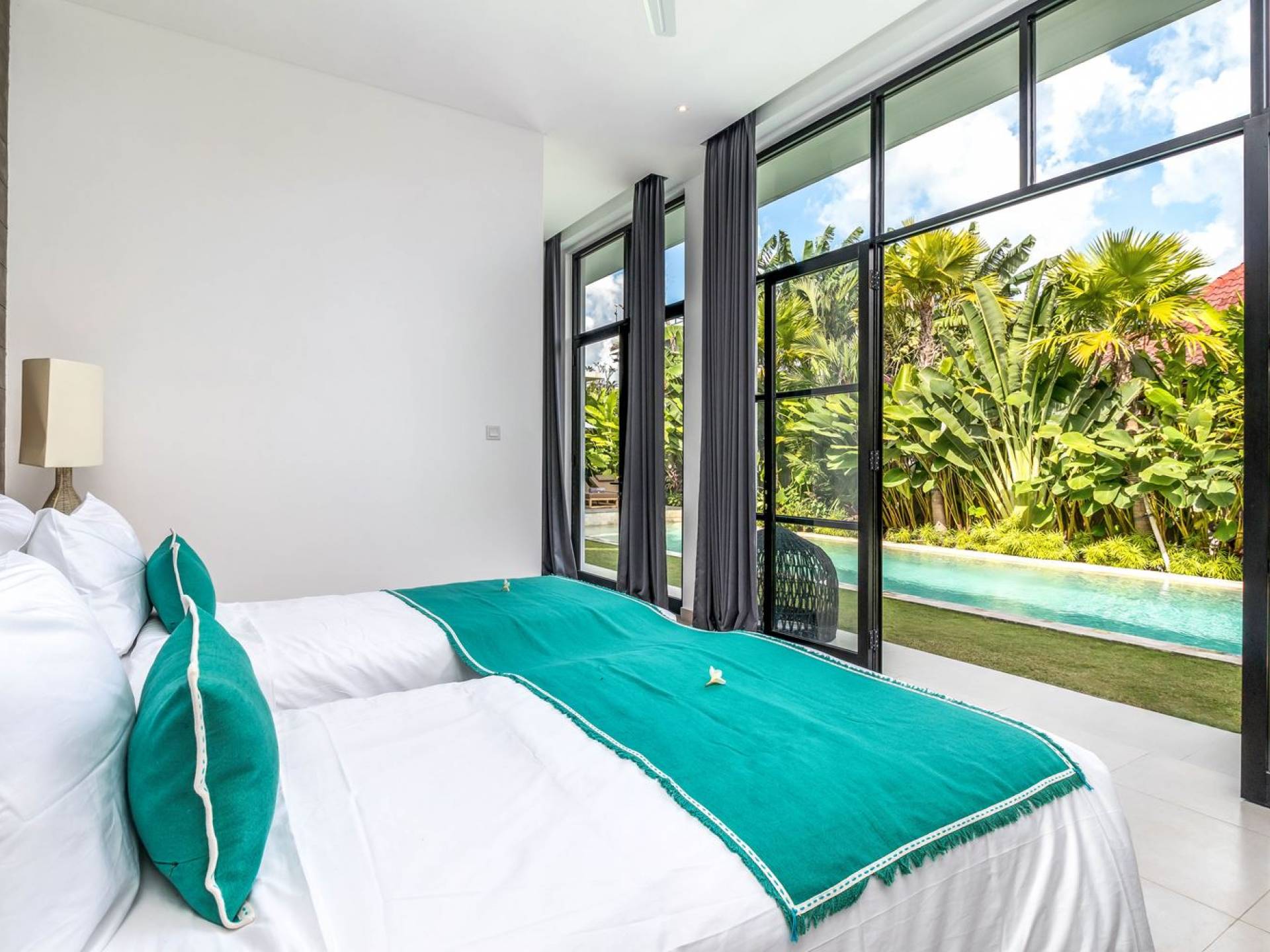 Villa Jaanuva Canggu ist eine Villa mit 3 Schlafzimmern, mit 1 Hauptsuite im ersten Stock (angrenzend an die Sonnenuntergangsterrasse) und 2 Schlafzimmern im Erdgeschoss, die sich öffnen zum Garten- und Poolbereich. Lust auf morgendliches Schwimmen, irgendjemand? Die Master-Suite ist sehr geräumig und mit einem Kingsize-Bett, einem Schreibtisch und Kleiderschränken mit Safe ausgestattet. Das eigene Badezimmer ist ebenfalls geräumig und verfügt über eine große Badewanne und eine entspannende Regendusche. Unten gibt es ein Schlafzimmer mit einem Kingsize-Bett und ein kleineres Schlafzimmer mit zwei Einzelbetten. Beide Zimmer sind klimatisiert und verfügen jeweils über ein eigenes Badezimmer, von dem eines über eine Badewanne verfügt. Alle Zimmer sind mit Safes zur Aufbewahrung wertvoller Gegenstände ausgestattet. Gäste, die in den Zimmern im Erdgeschoss wohnen, können morgens als erstes aufwachen und fast direkt in den Pool springen – alles, was man tun muss, ist, diese Glastüren zu öffnen. Darum geht es doch im Urlaub, nicht wahr?
