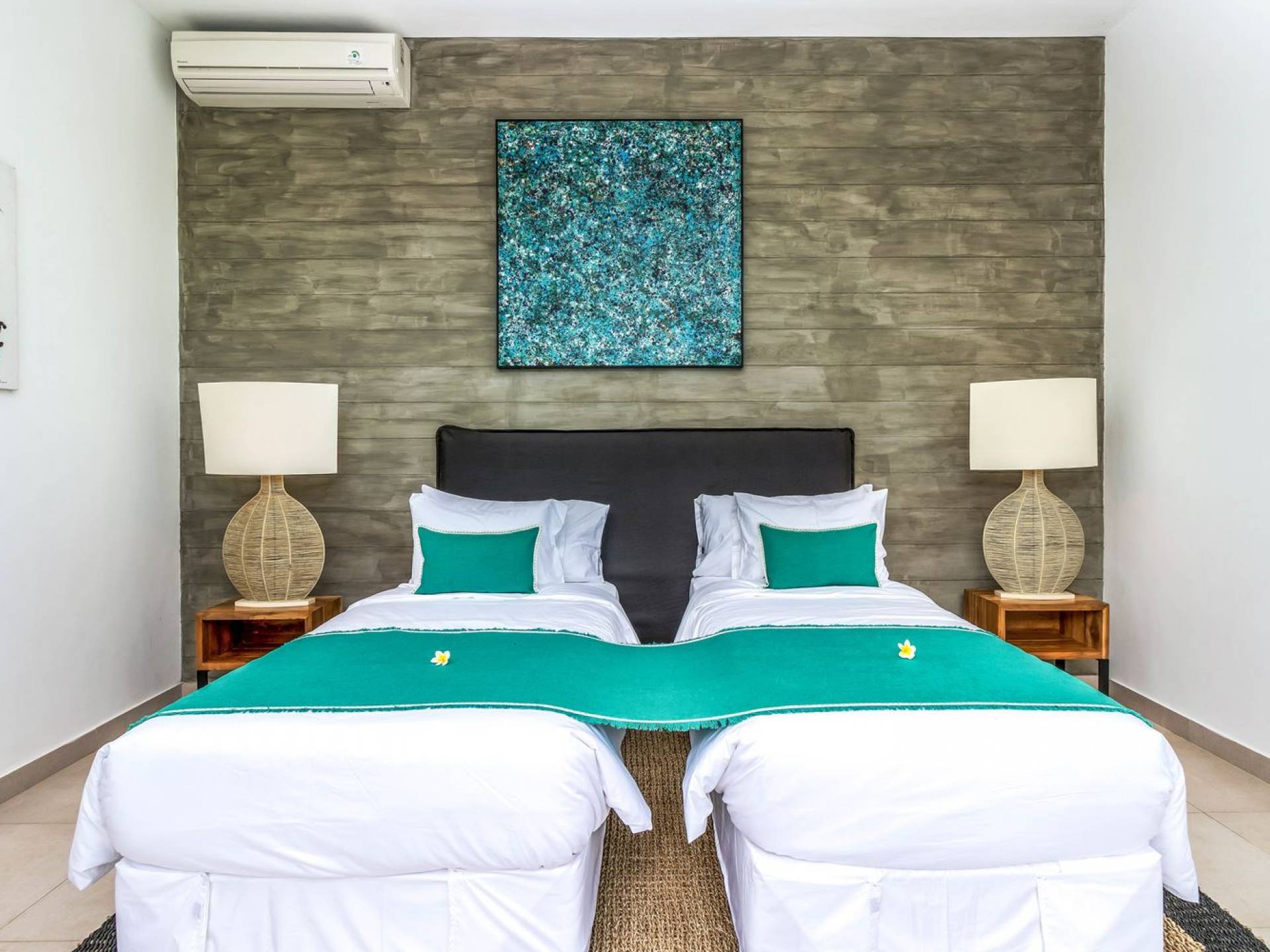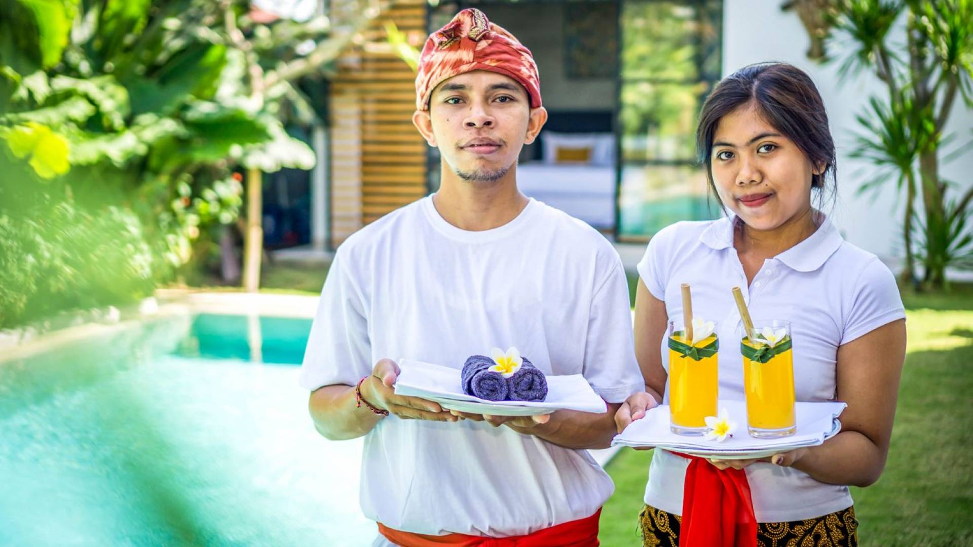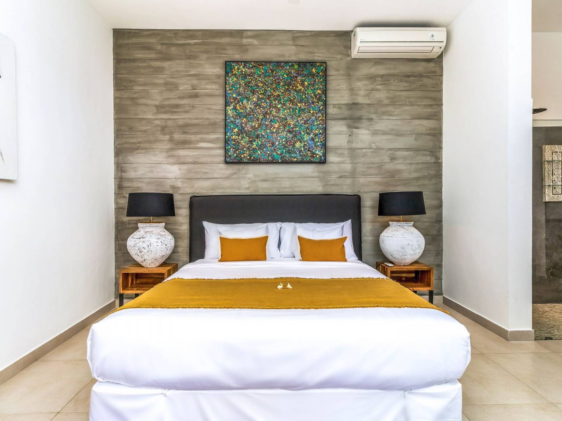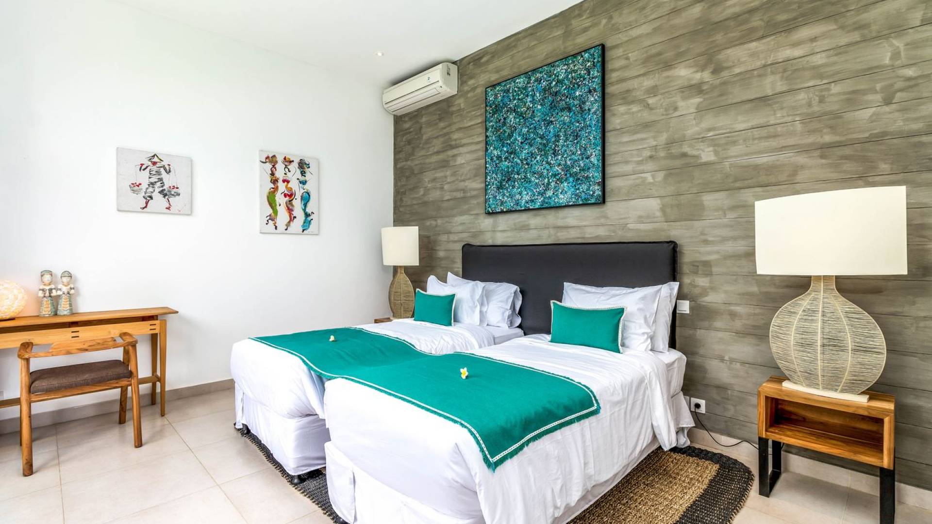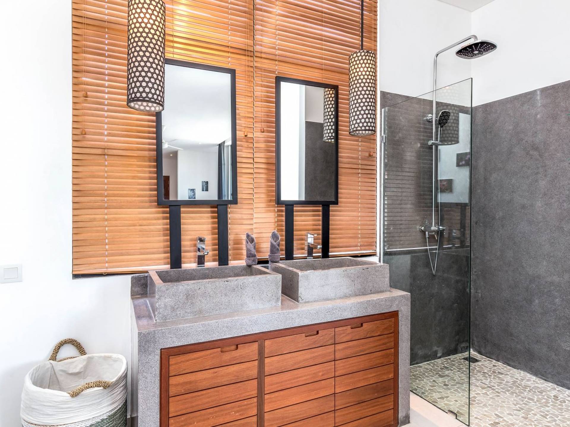 Villa Jaanuva Canggu ist eine Villa mit 3 Schlafzimmern, mit 1 Hauptsuite im ersten Stock (angrenzend an die Sonnenuntergangsterrasse) und 2 Schlafzimmern im Erdgeschoss, die sich öffnen zum Garten- und Poolbereich. Lust auf morgendliches Schwimmen, irgendjemand? Die Master-Suite ist sehr geräumig und mit einem Kingsize-Bett, einem Schreibtisch und Kleiderschränken mit Safe ausgestattet. Das eigene Badezimmer ist ebenfalls geräumig und verfügt über eine große Badewanne und eine entspannende Regendusche. Unten gibt es ein Schlafzimmer mit einem Kingsize-Bett und ein kleineres Schlafzimmer mit zwei Einzelbetten. Beide Zimmer sind klimatisiert und verfügen jeweils über ein eigenes Badezimmer, von dem eines über eine Badewanne verfügt. Alle Zimmer sind mit Safes zur Aufbewahrung wertvoller Gegenstände ausgestattet. Gäste, die in den Zimmern im Erdgeschoss wohnen, können morgens als erstes aufwachen und fast direkt in den Pool springen – alles, was man tun muss, ist, diese Glastüren zu öffnen. Darum geht es doch im Urlaub, nicht wahr?