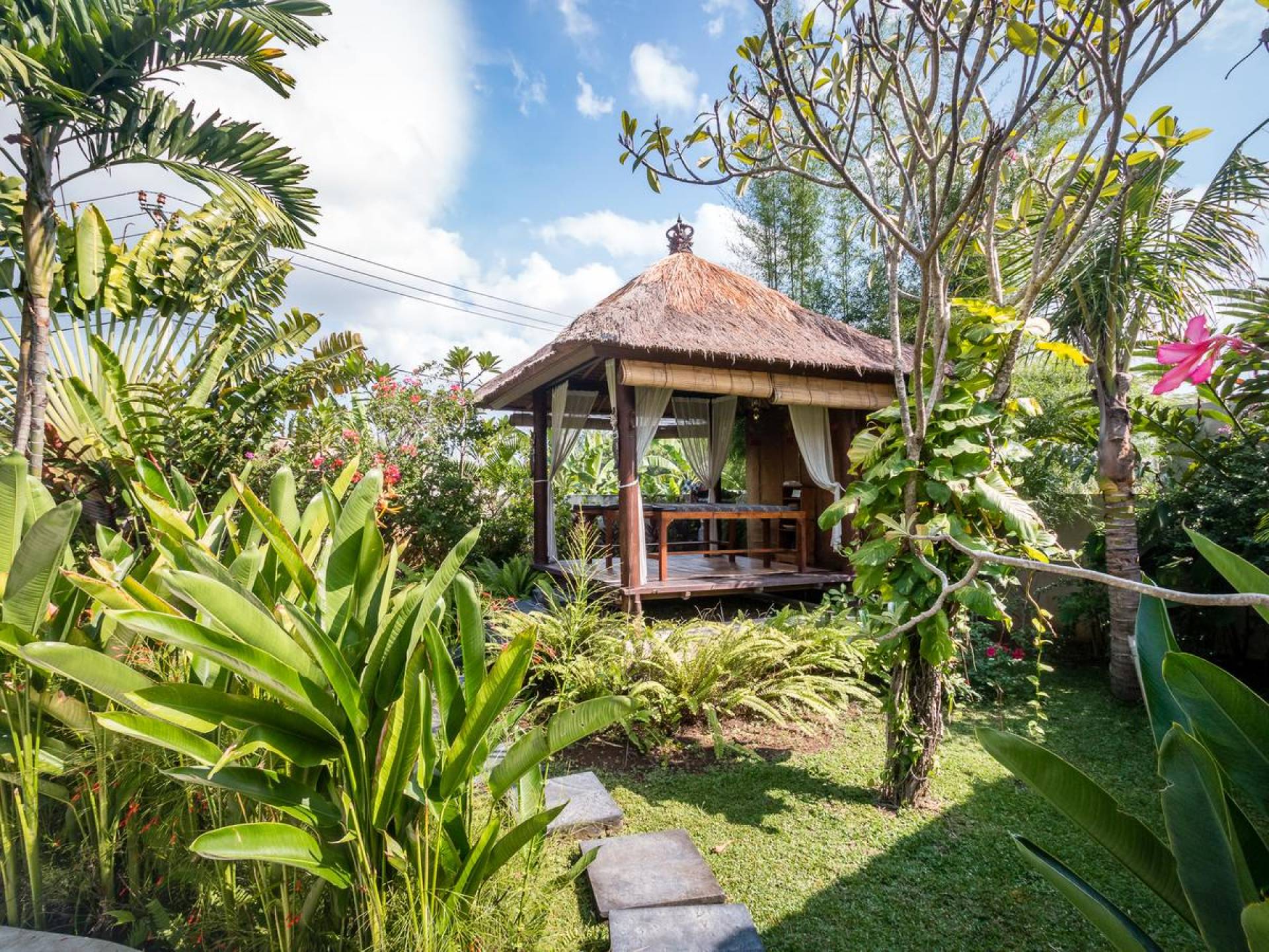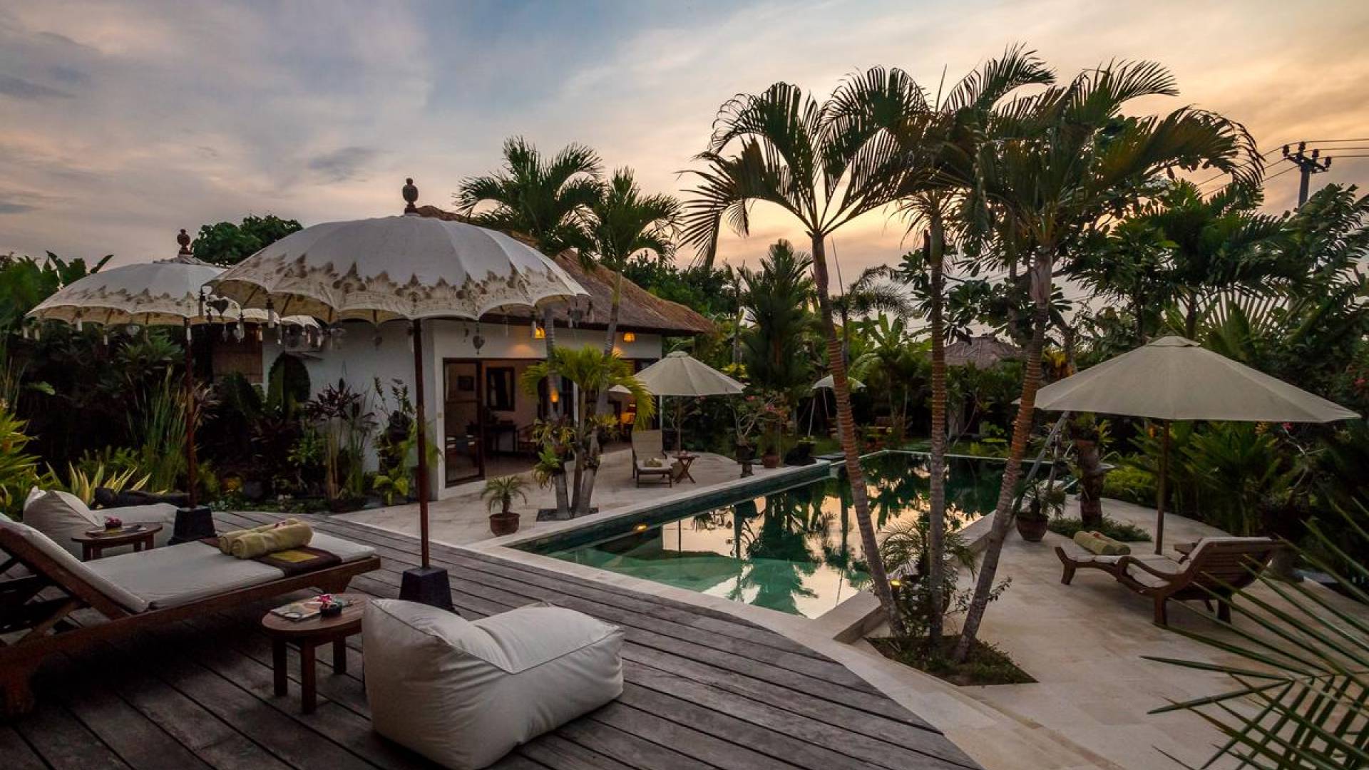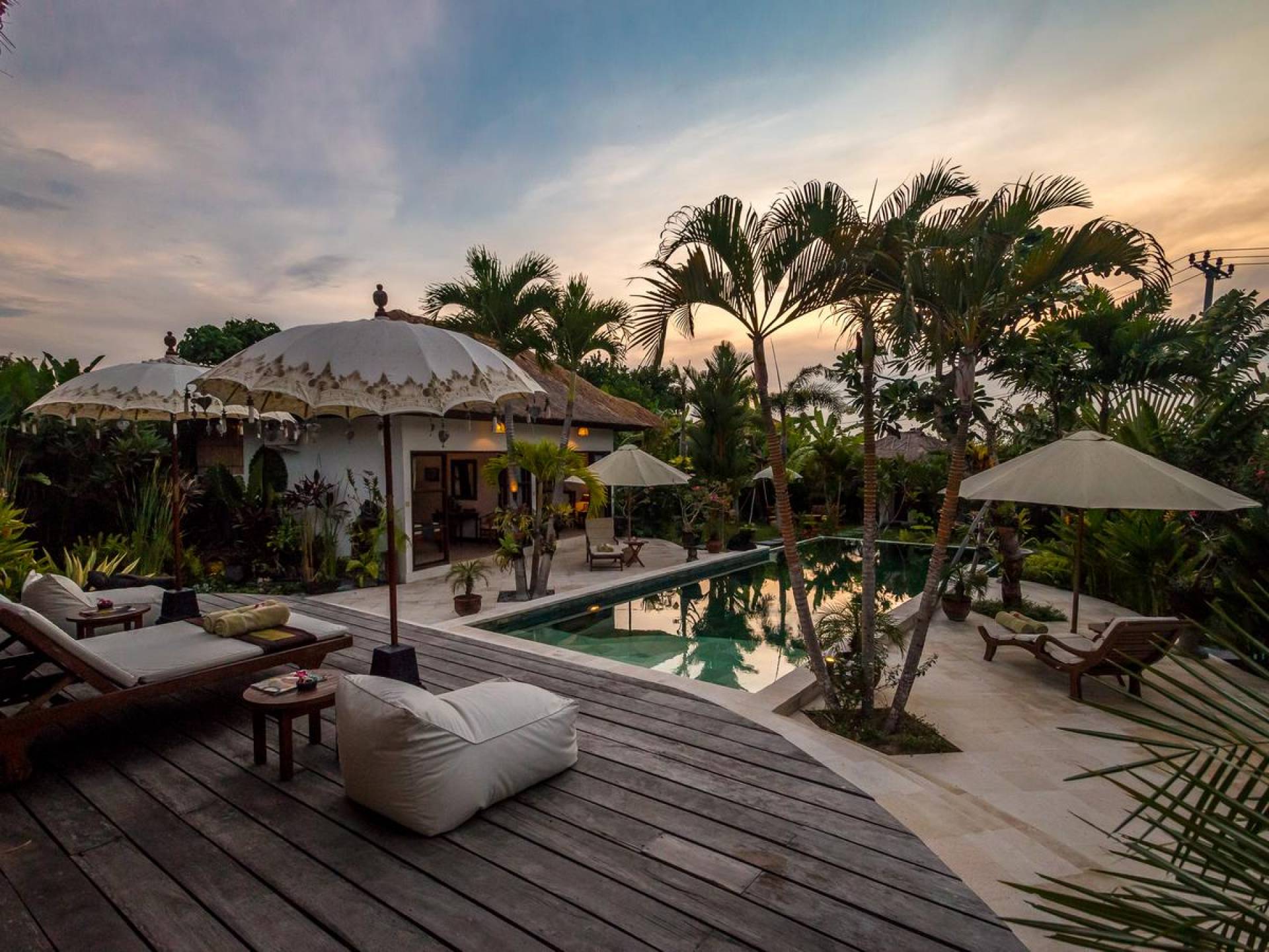 Villa Tibu Indah Canggu ist ein charmantes 3-Schlafzimmer-Ferienhaus, das das Herz derjenigen stiehlt, die an einem tropischen und friedlichen Ort in einer traditionellen offenen Villa mit einem großen üppigen grünen Garten wohnen möchten. Die Villa liegt versteckt in einer ländlichen Gegend, in der Sie immer noch das 'echte Bali' der Bauern in den Reisfeldern und Zeremonien im Dorftempel sehen können, während die Strände von Canggu und das angesagte Zentrum von Seminyak nur eine kurze Autofahrt entfernt sind ein Weg. Die Villa Tibu Indah Canggu verfügt über wunderschöne Alang-Alang-Dachpavillons, die sich um den tropischen Garten wickeln und die perfekte Atmosphäre schaffen, um sich während Ihres Urlaubs auf der Insel Bali vollständig zu entspannen.