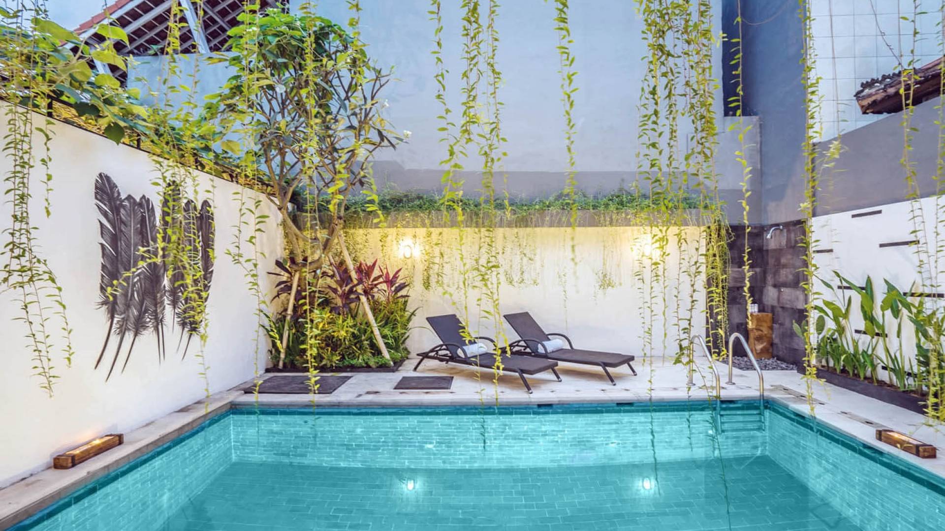 Der mit tropischem Grün gefüllte Garten der Villa Vanilla ist der perfekte entspannende und ruhige Ort, um heiße Bali-Tage in der Sonne zu verbringen. Mit einem üppigen Rasen und einem privaten Swimmingpool können Sie die Zeit mit Ihren Lieben in Ruhe und Frieden genießen. Legen Sie sich in die Sonne auf den verstellbaren Sonnenliegen und tauchen Sie in den Pool ein, um sich abzukühlen, arrangieren Sie Cocktails am Pool bei Sonnenuntergang und sonnen Sie sich in der kühlen Brise, die durch die Gegend weht.