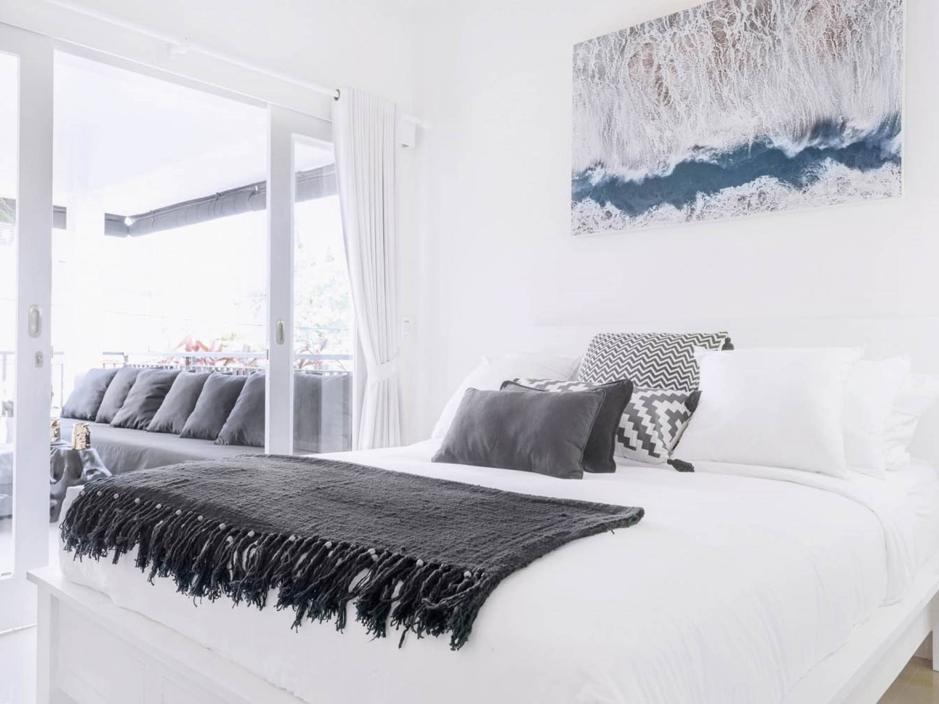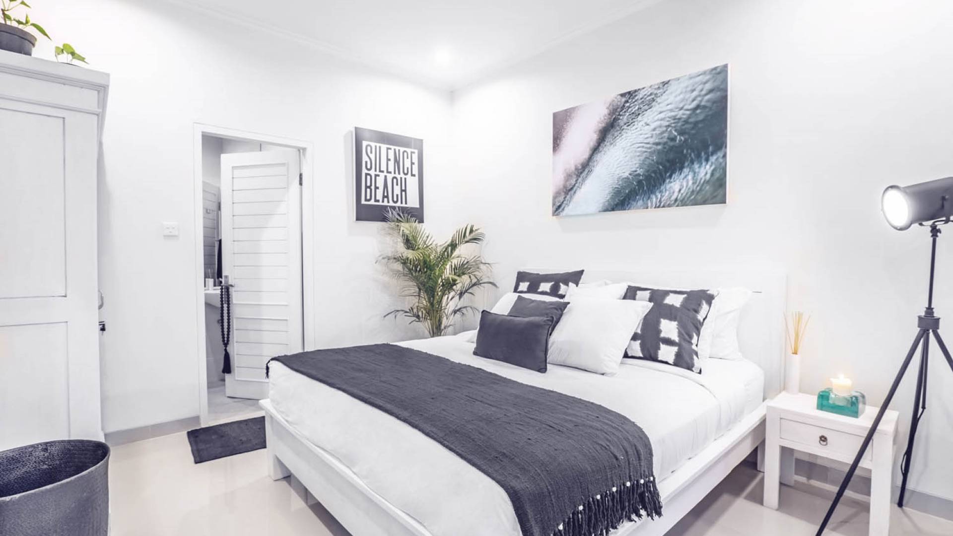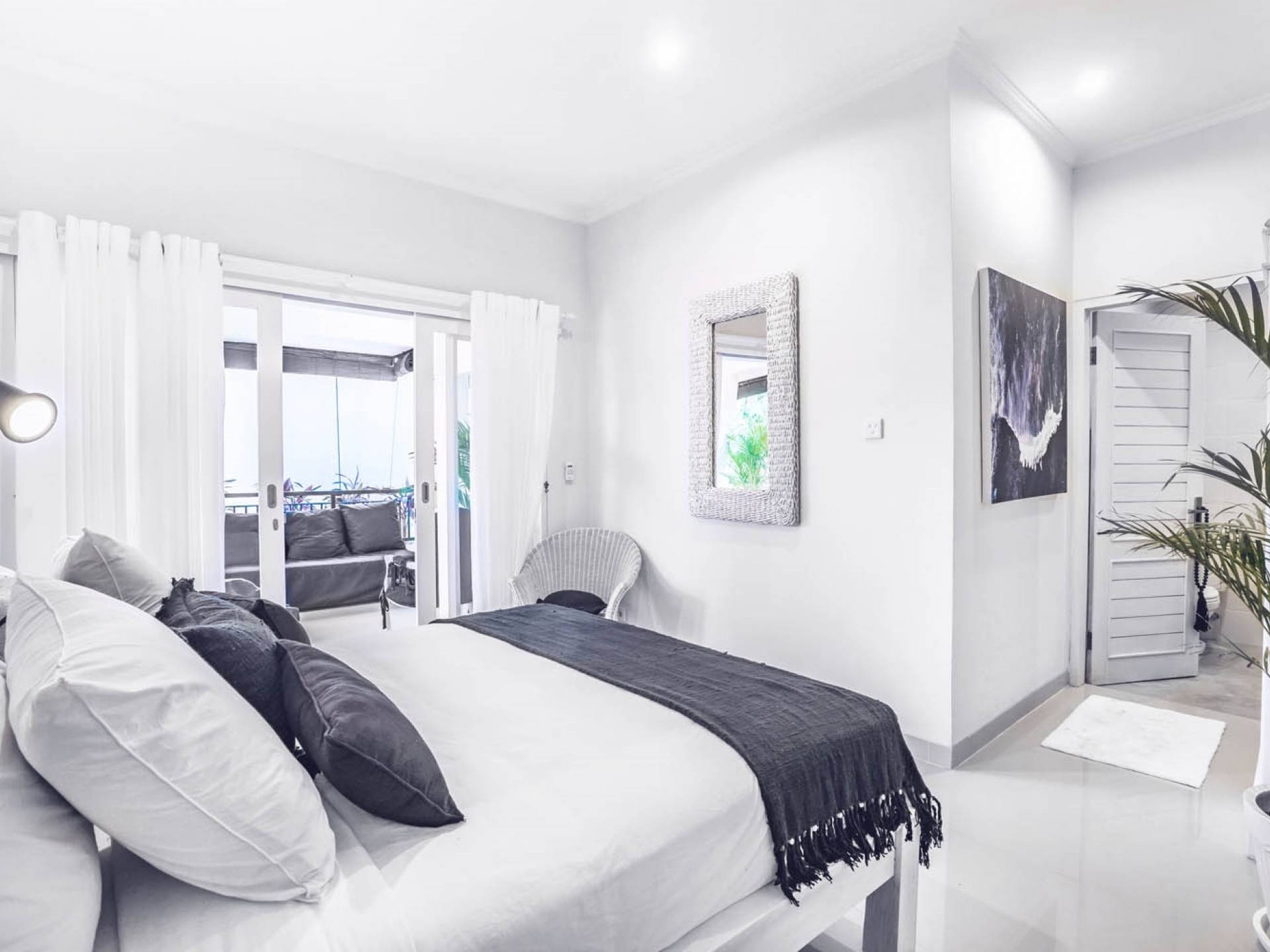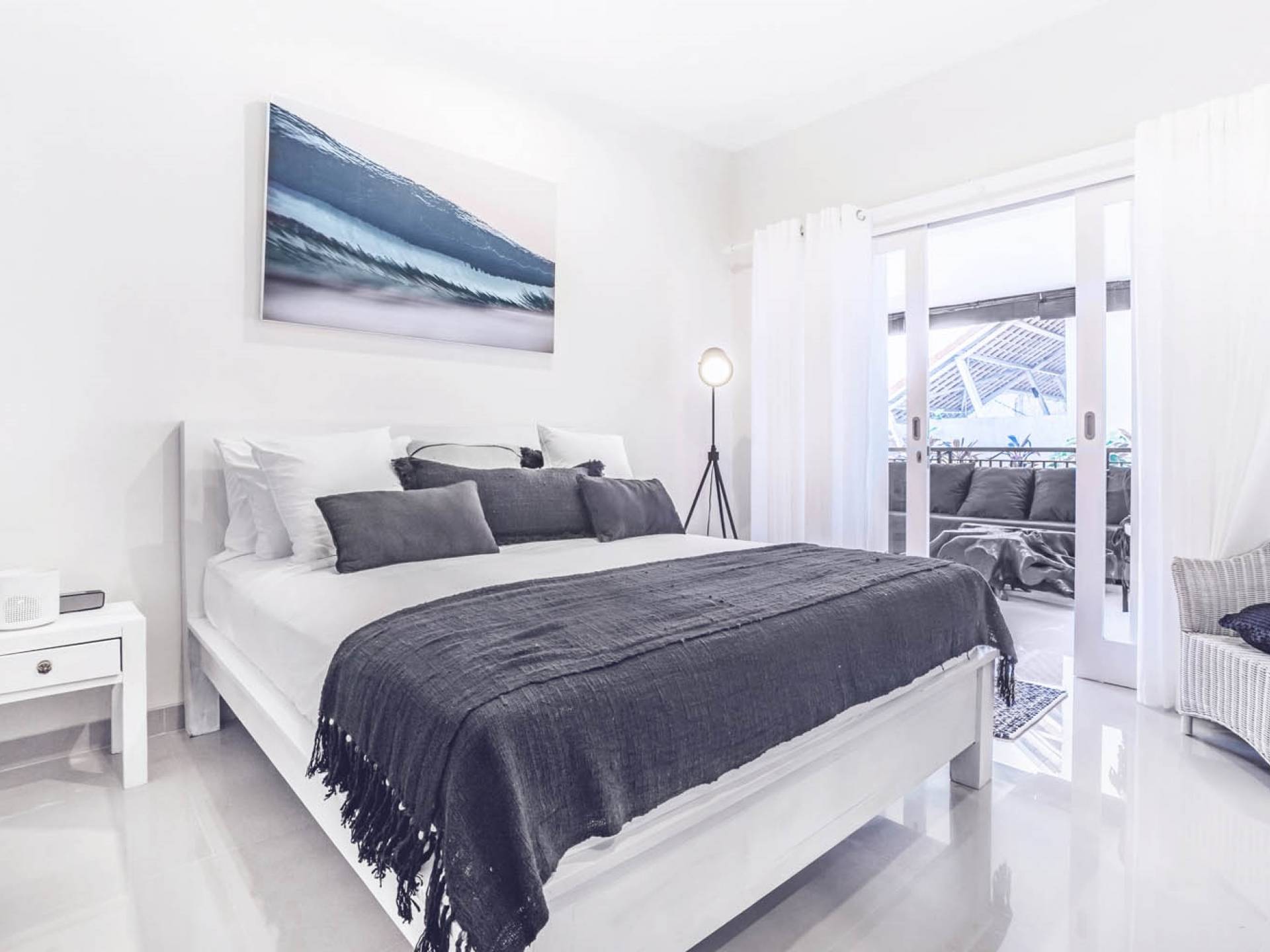Alle drei Schlafzimmer in der Villa Vanilla sind modern, minimalistisch und komfortabel mit weichen Betten, luxuriöser Bettwäsche, weiß getünchten Kleiderschränken und eigenen Badezimmern. Sie können sich nach einem Tag draußen in der Hitze zurücklehnen und die kühle Klimaanlage genießen, ein entspannendes Mittagsschläfchen halten oder Ihr Lieblingsbuch lesen. Malerisch mit schwarzen und weißen Leinwänden und tropischem Grün dekoriert, ist es ein ruhiger Zufluchtsort. Sie werden die Villa Vanilla nie wieder verlassen wollen, um eine friedliche Nachtruhe zu gewährleisten.