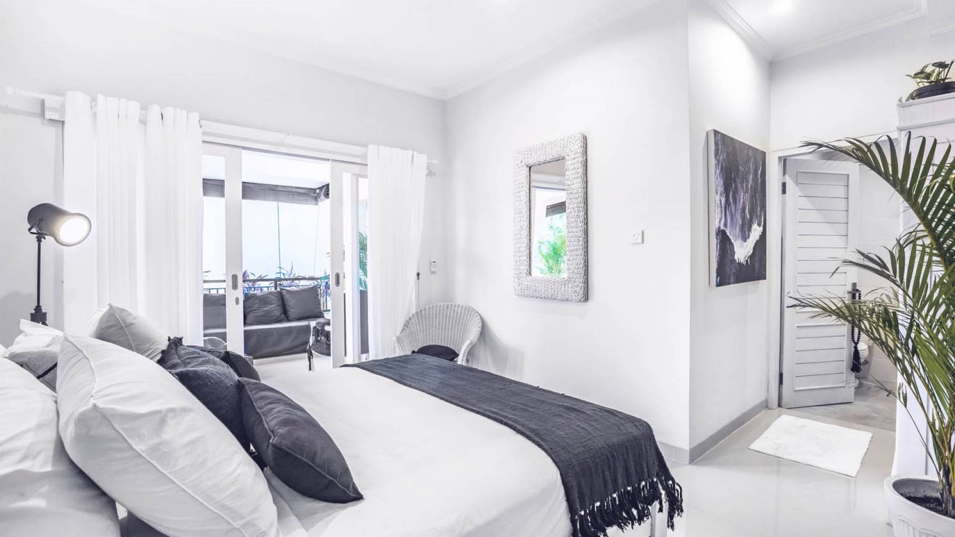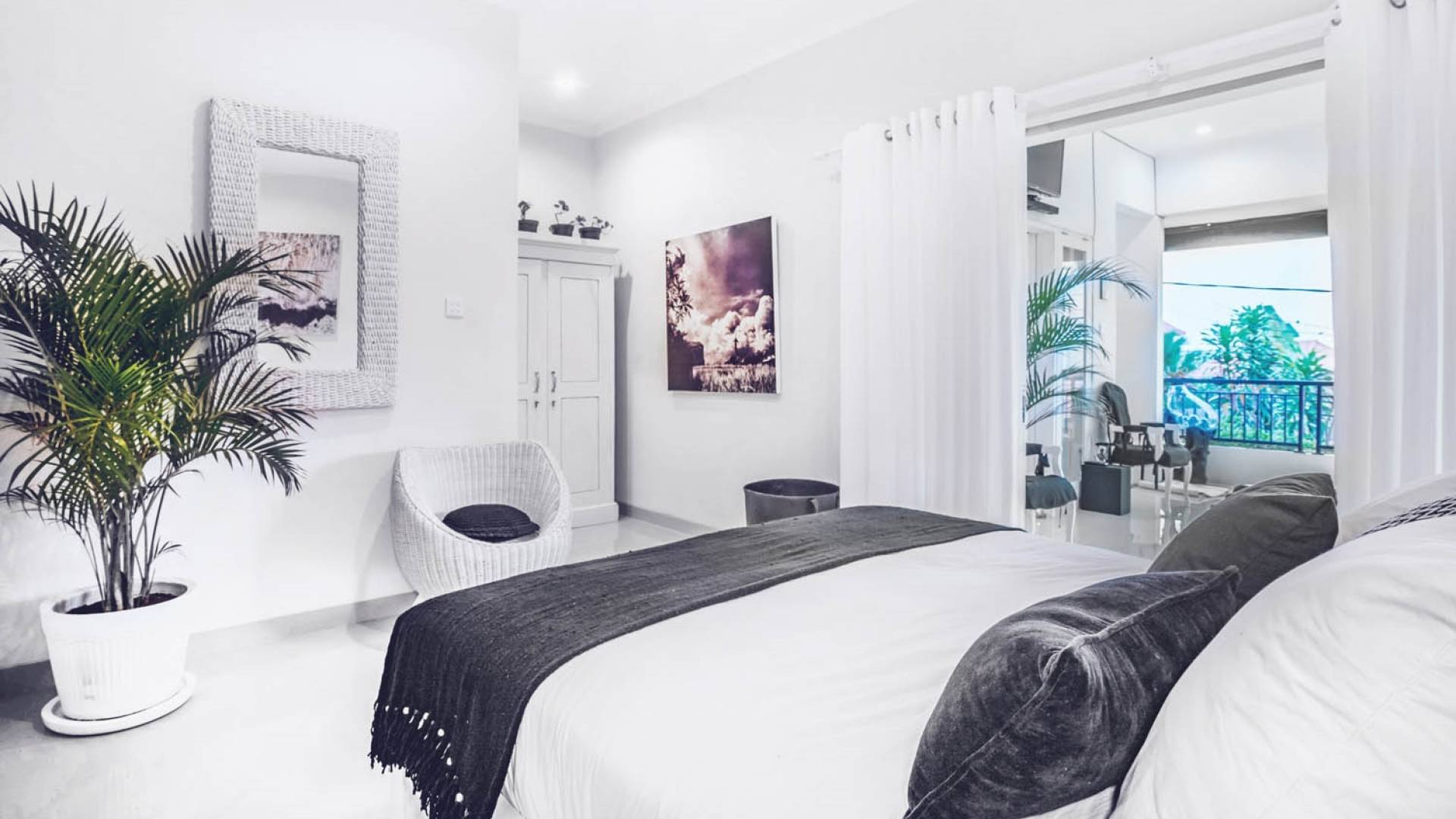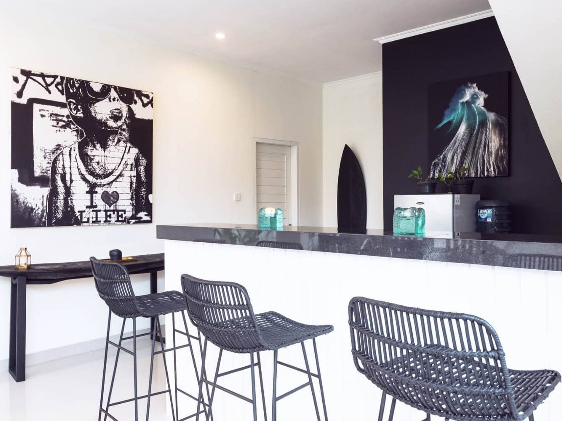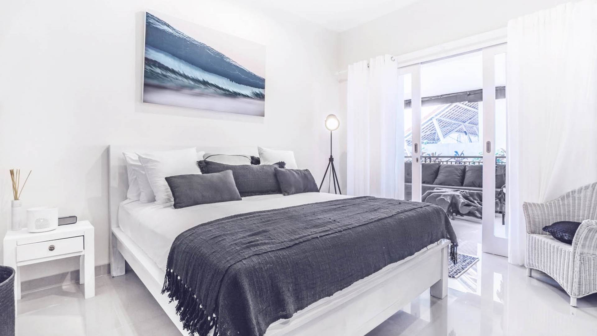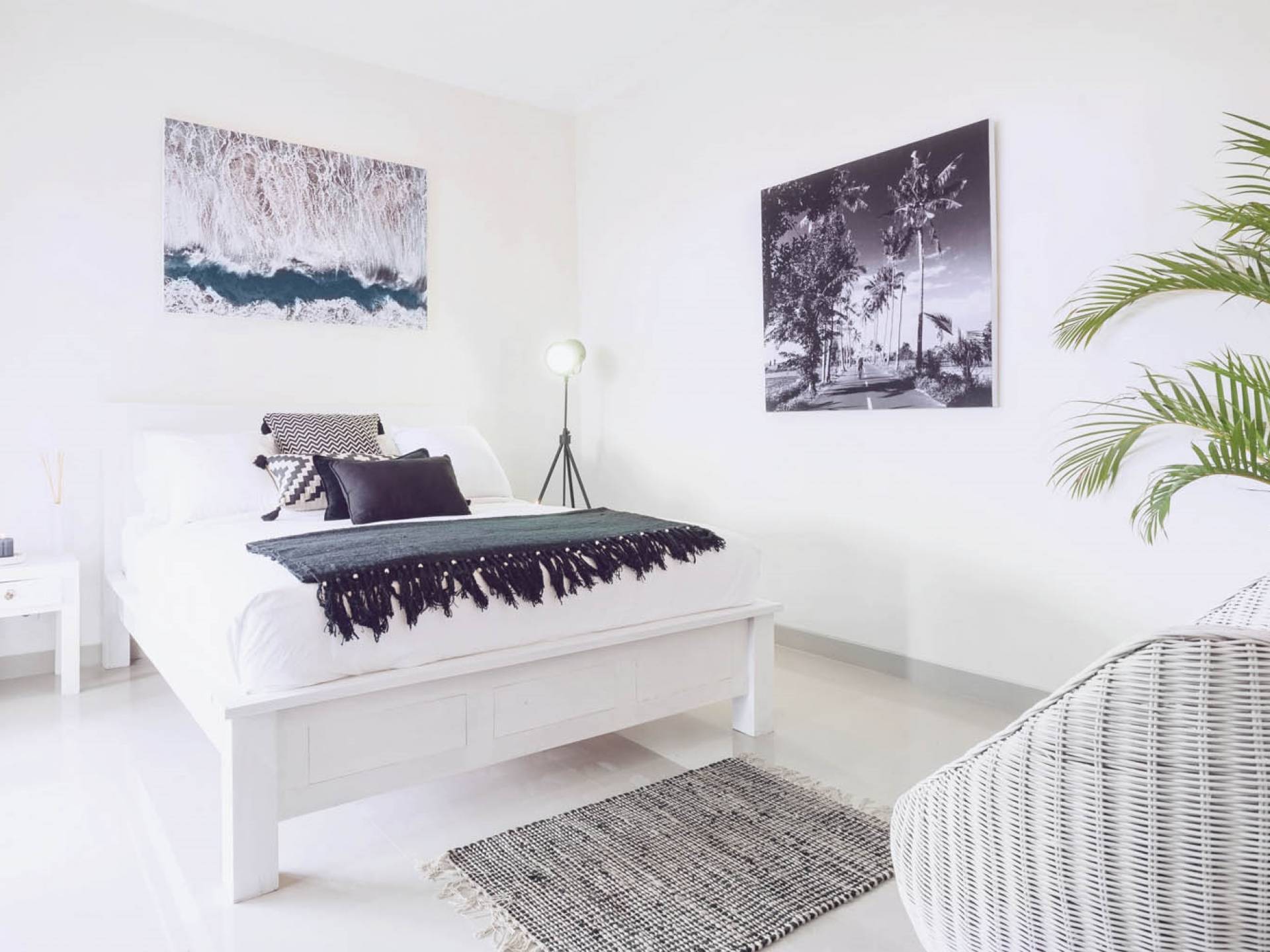 Alle drei Schlafzimmer in der Villa Vanilla sind modern, minimalistisch und komfortabel mit weichen Betten, luxuriöser Bettwäsche, weiß getünchten Kleiderschränken und eigenen Badezimmern. Sie können sich nach einem Tag draußen in der Hitze zurücklehnen und die kühle Klimaanlage genießen, ein entspannendes Mittagsschläfchen halten oder Ihr Lieblingsbuch lesen. Malerisch mit schwarzen und weißen Leinwänden und tropischem Grün dekoriert, ist es ein ruhiger Zufluchtsort. Sie werden die Villa Vanilla nie wieder verlassen wollen, um eine friedliche Nachtruhe zu gewährleisten.