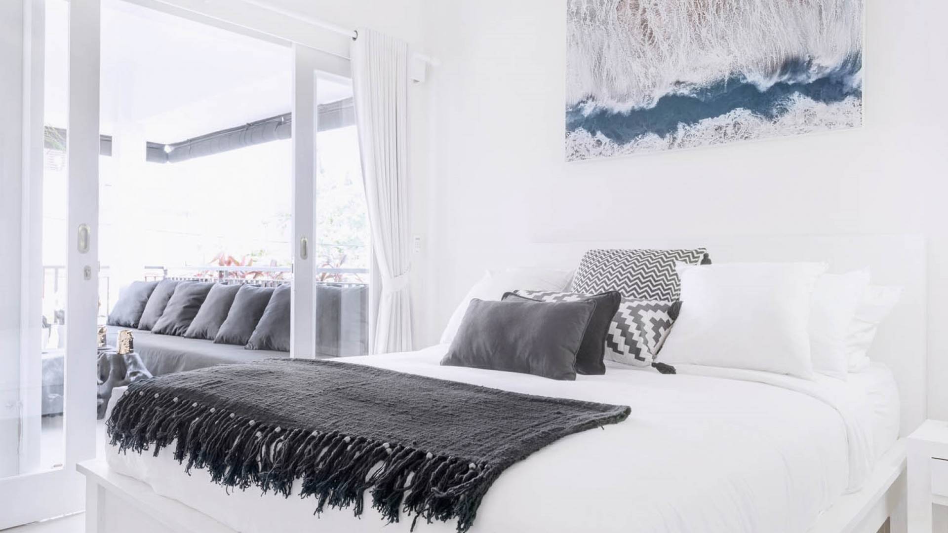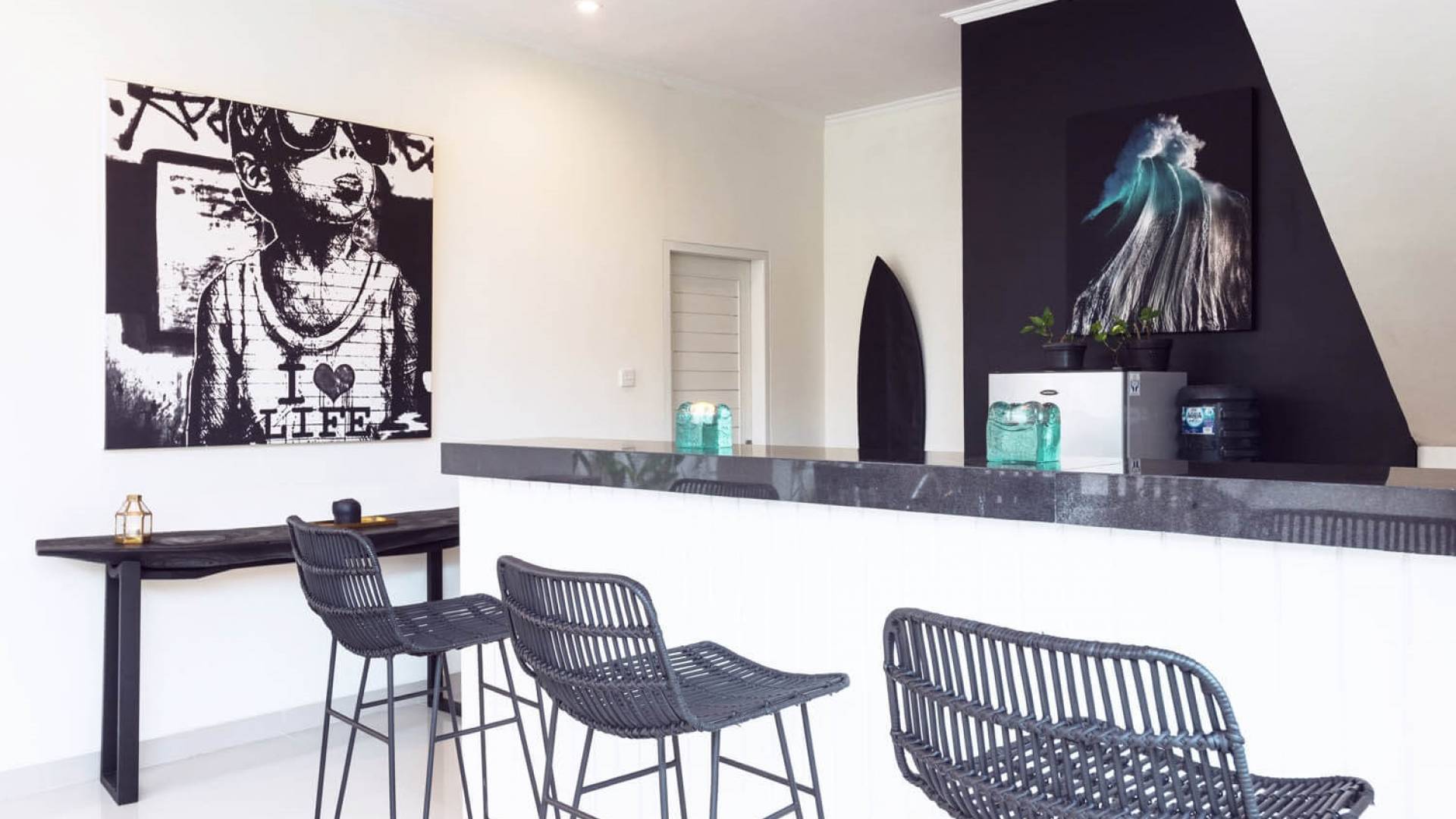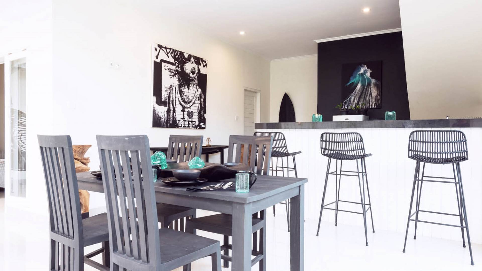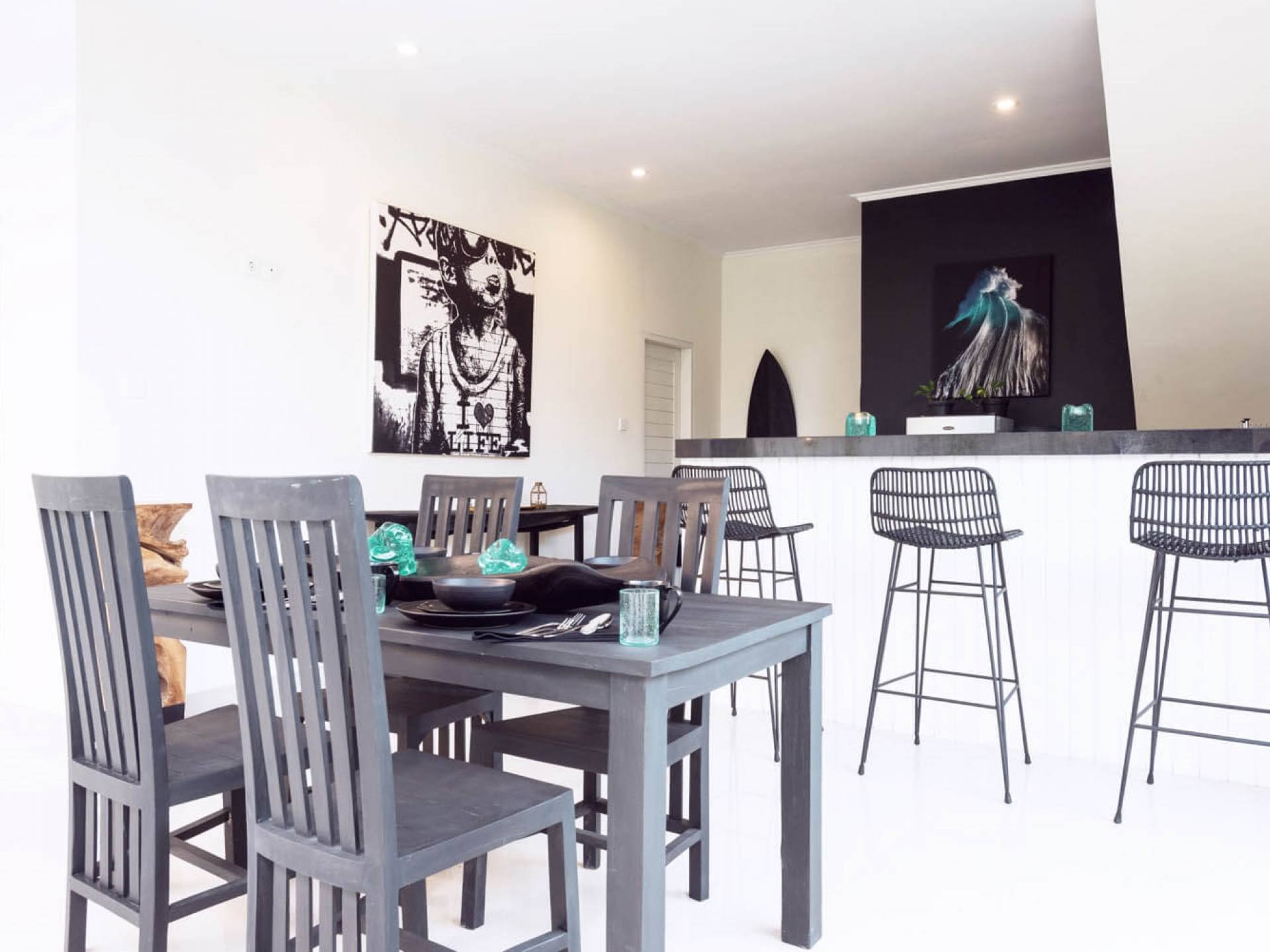 Alle drei Schlafzimmer in der Villa Vanilla sind modern, minimalistisch und komfortabel mit weichen Betten, luxuriöser Bettwäsche, weiß getünchten Kleiderschränken und eigenen Badezimmern. Sie können sich nach einem Tag draußen in der Hitze zurücklehnen und die kühle Klimaanlage genießen, ein entspannendes Mittagsschläfchen halten oder Ihr Lieblingsbuch lesen. Malerisch mit schwarzen und weißen Leinwänden und tropischem Grün dekoriert, ist es ein ruhiger Zufluchtsort. Sie werden die Villa Vanilla nie wieder verlassen wollen, um eine friedliche Nachtruhe zu gewährleisten.