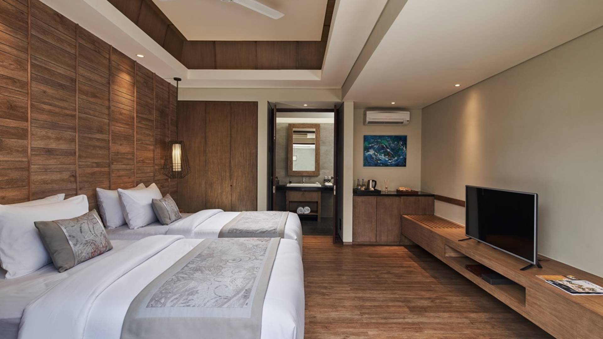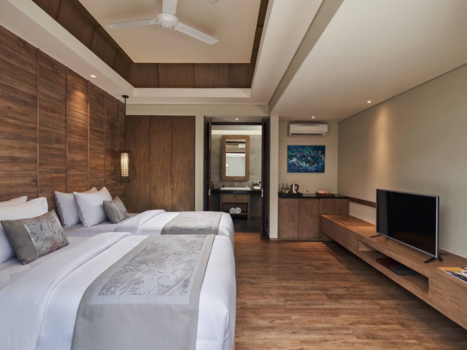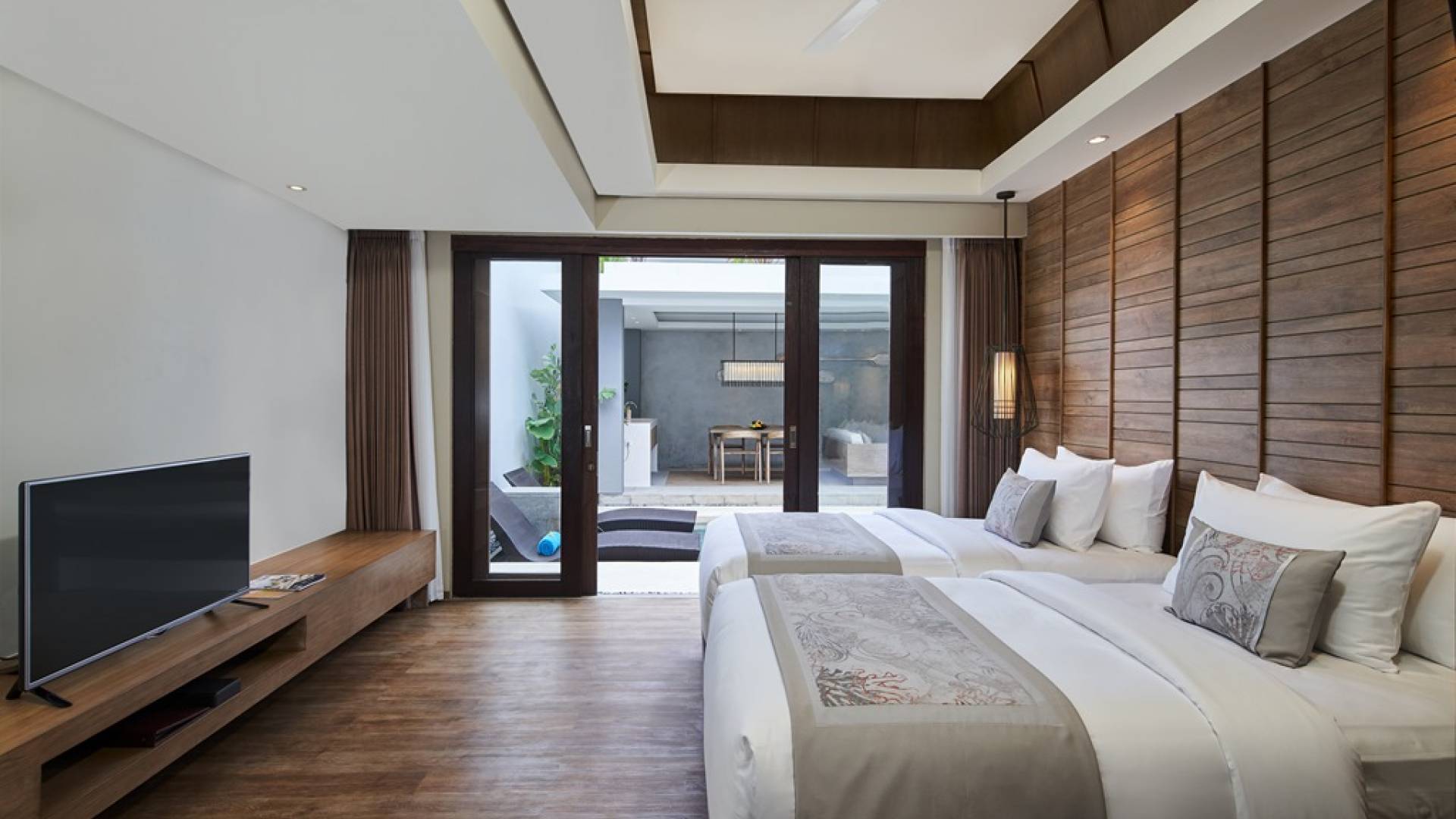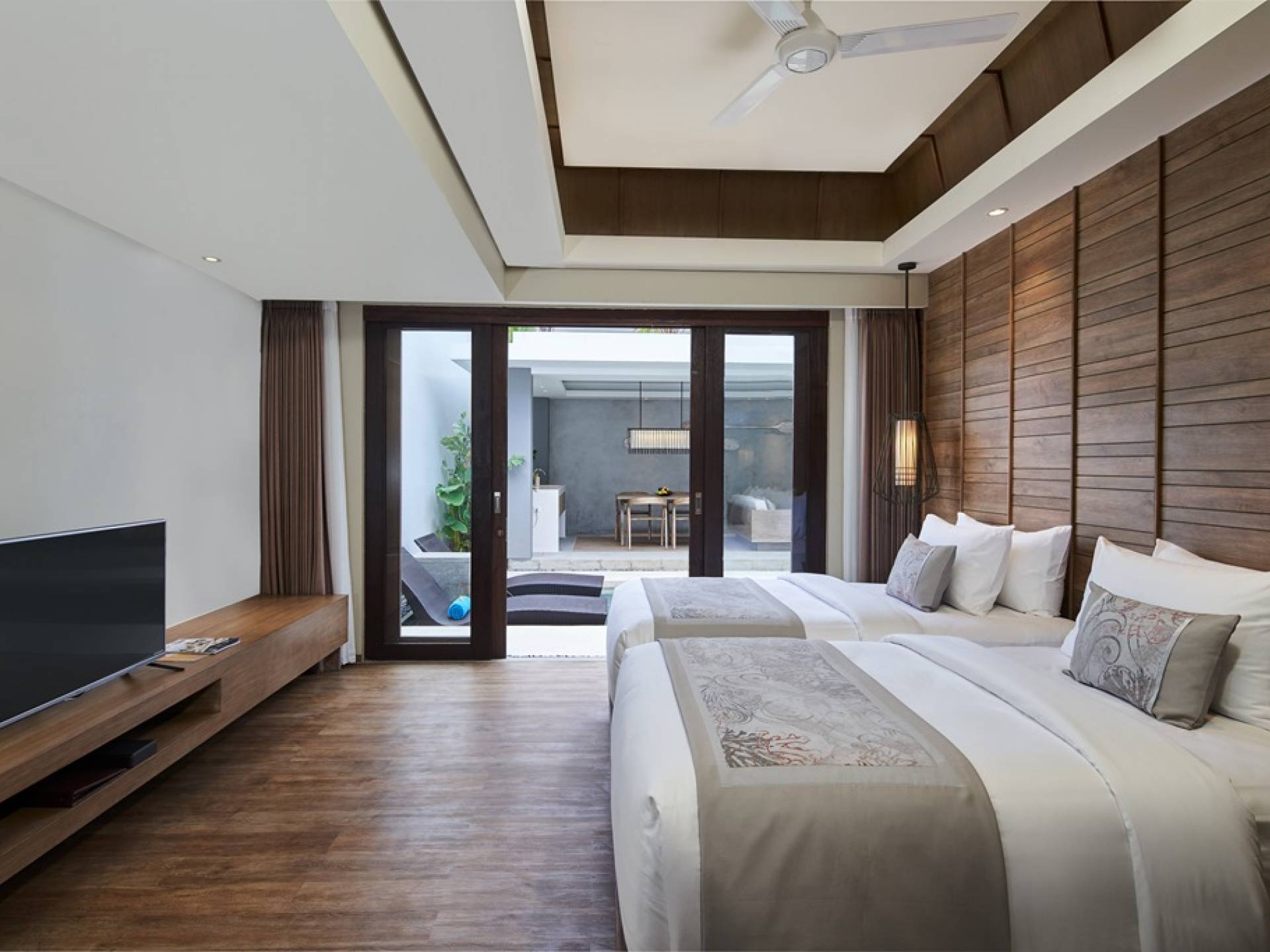 Die Dwitaya Deluxe Poolvilla mit zwei Schlafzimmern ist wunderschön für Familien, Freunde und kleine Gruppen eingerichtet und verfügt über ein Kingsize-Bett für das Hauptschlafzimmer und zwei Einzelbetten für das zweite Schlafzimmer. Die luxuriösen 135 m² großen Dwitaya-Villen sind geschmackvoll mit moderner Atmosphäre eingerichtet und verfügen über ein eigenes privates Tauchbecken zum Abkühlen sowie eine Außenterrasse mit Essbereich, Sonnenliegen im Freien, 42-Zoll-Flachbild-TV und alle hochwertigen Dekorationen und leichte Berührungen, die Sie von X2 erwarten.