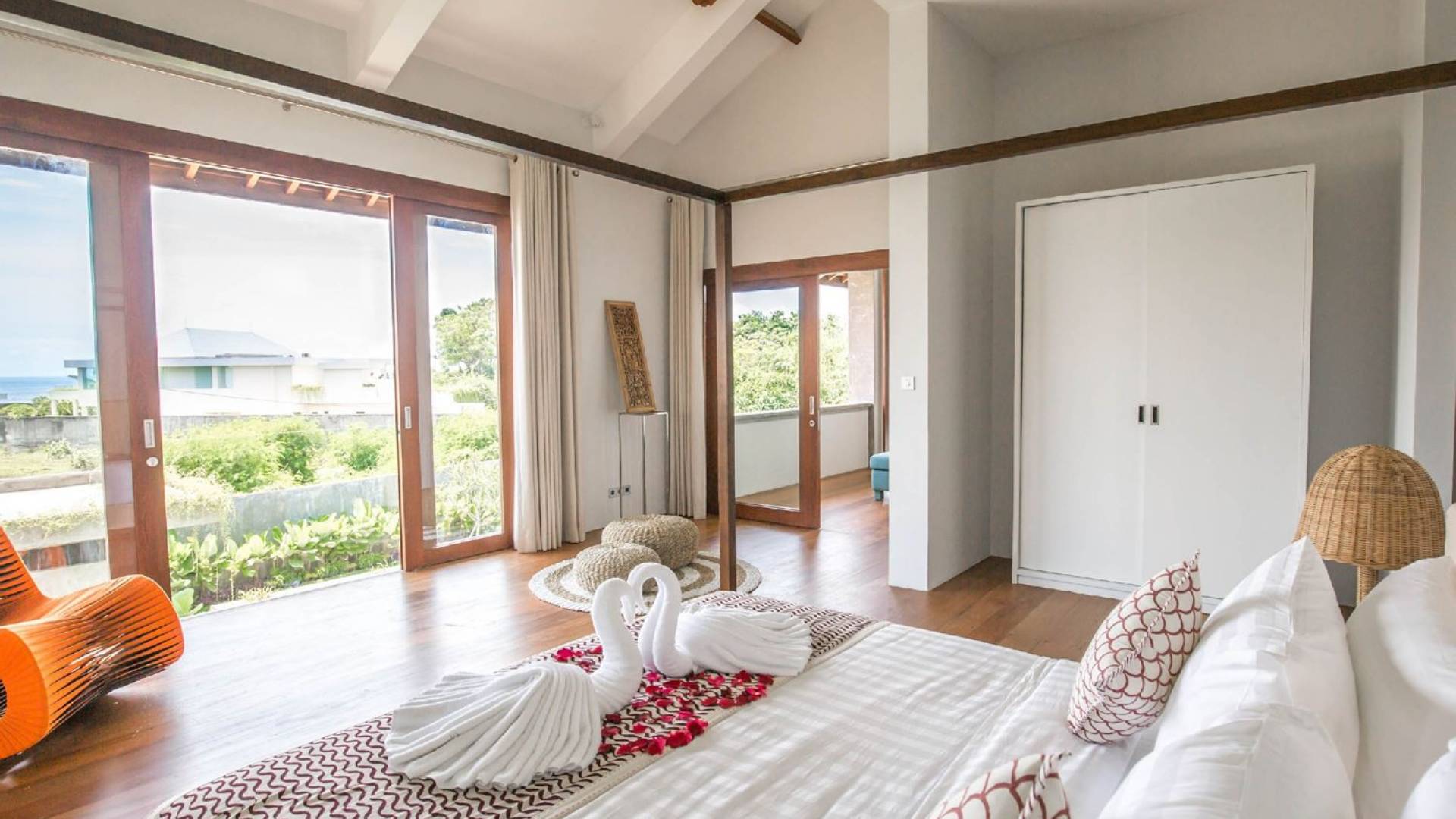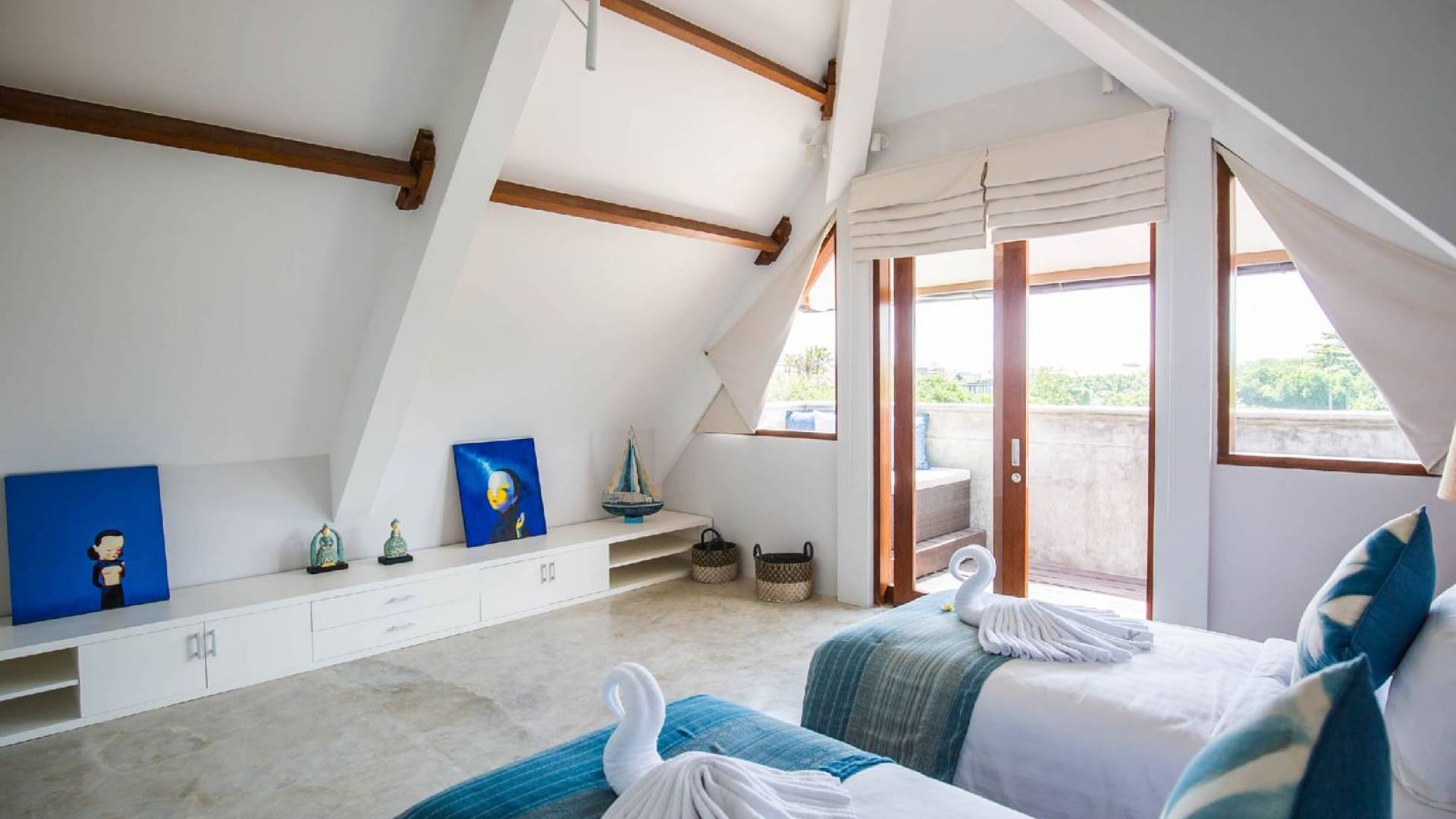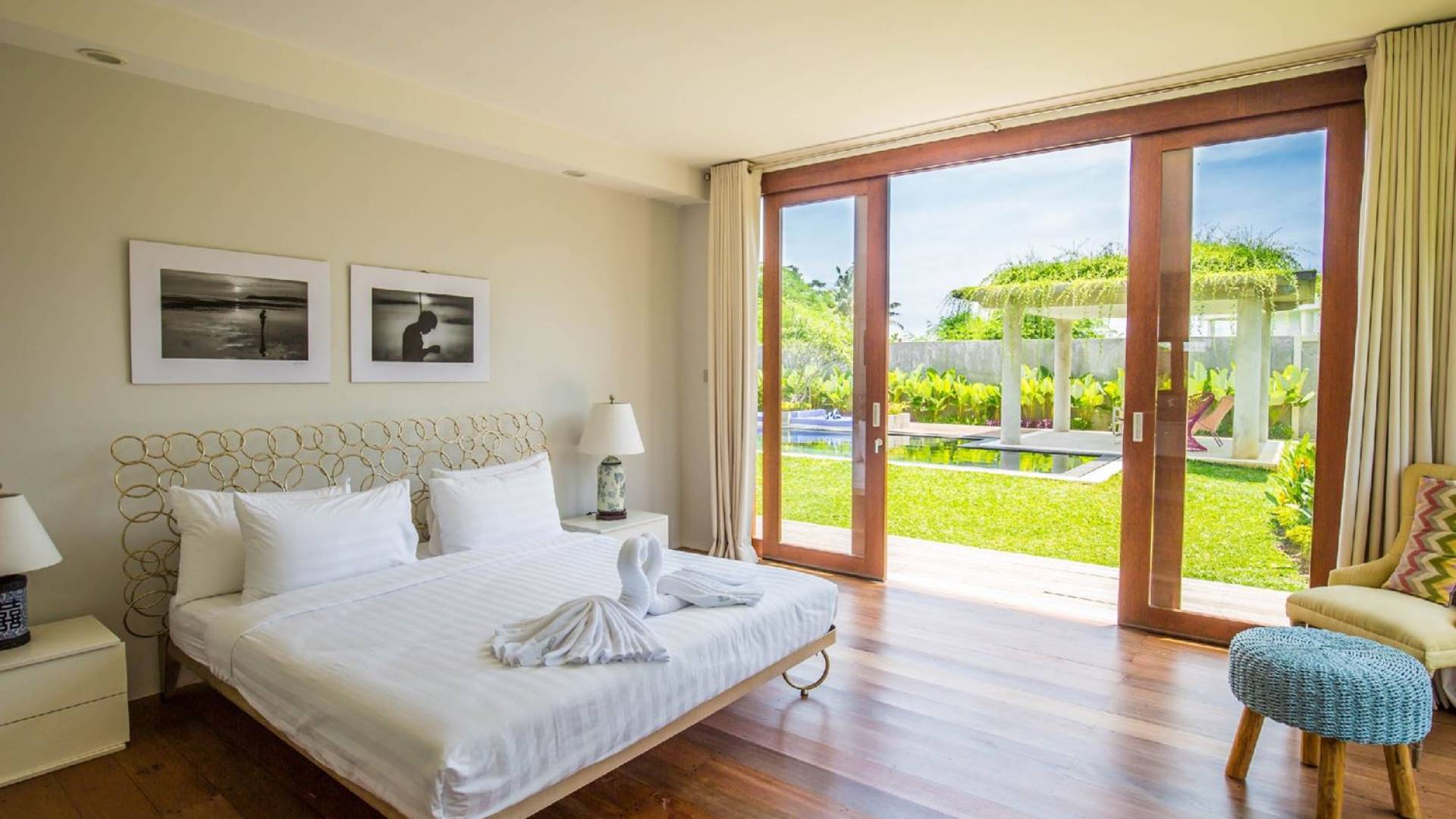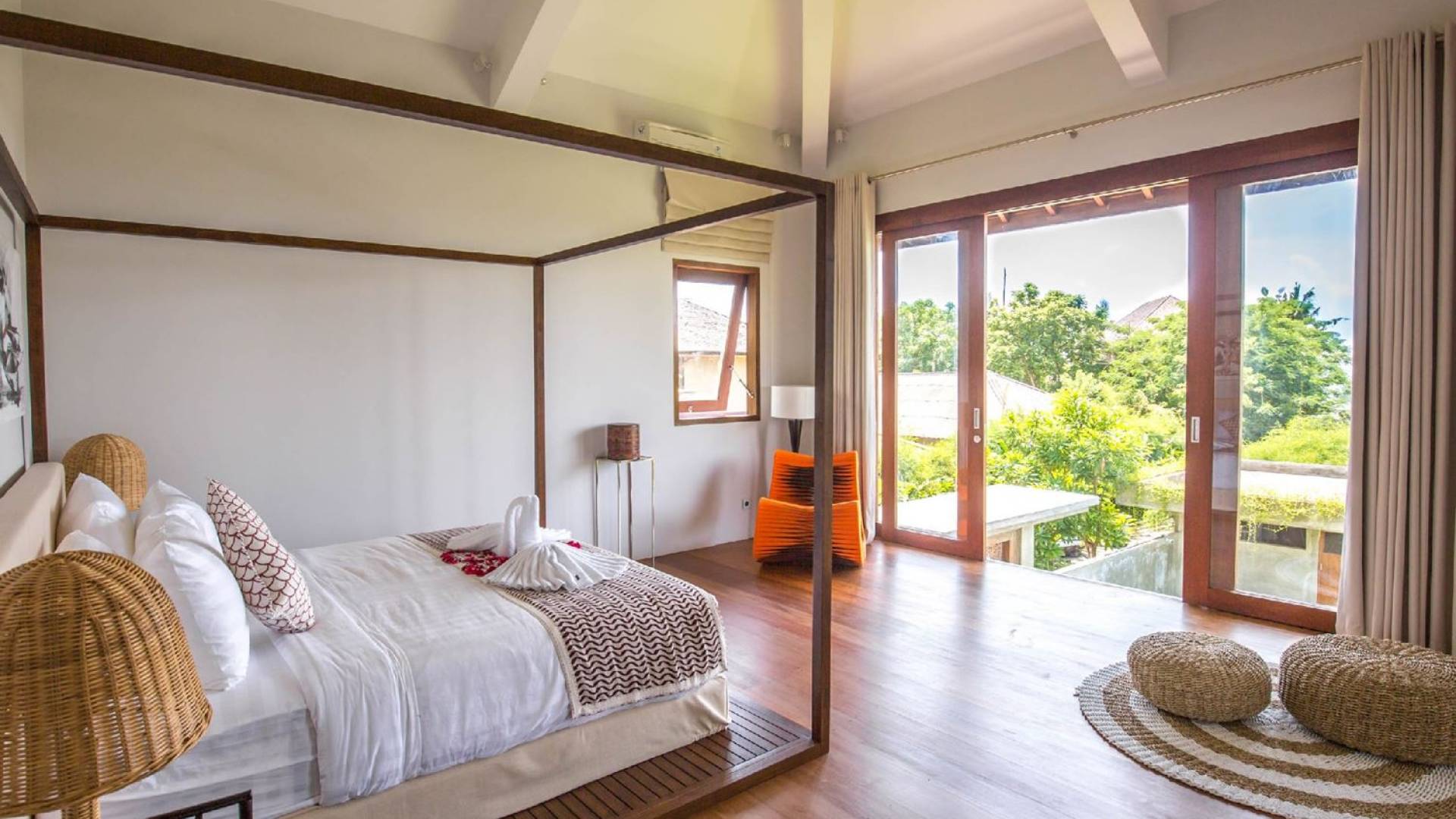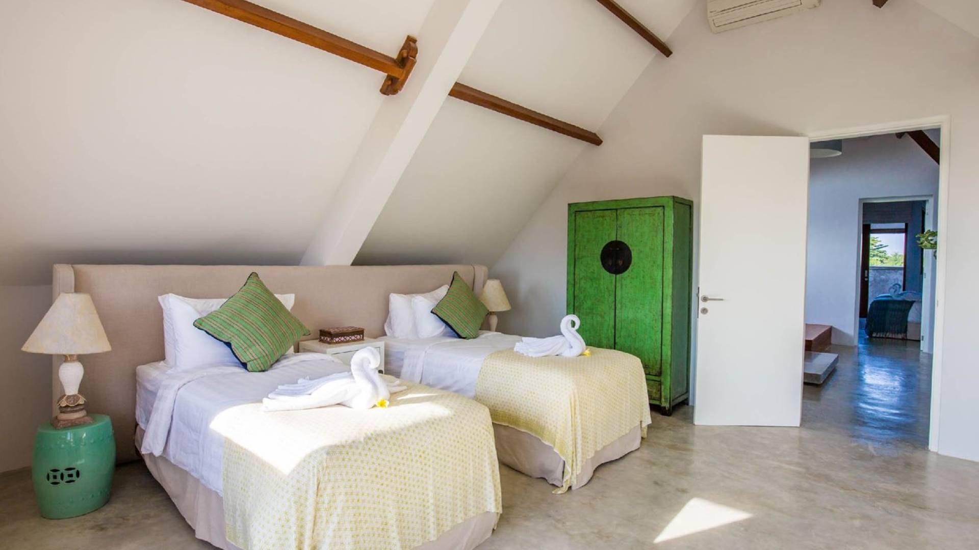 Villa Delfino beherbergt insgesamt 5 Schlafzimmer, 2 mit Kingsize-Betten, 2 mit Einzelbetten und 1 mit Etagenbett für die Kinder. Der Medienraum kann auf Anfrage als zusätzliches Schlafzimmer eingerichtet werden. Alle Schlafzimmer sind für Ihren Komfort mit Klimaanlage ausgestattet. Die Master-Suiten sind geräumig und lichtdurchflutet und verfügen über individuell gestaltete Himmelbetten und angrenzende Freiluftterrassen mit einem Tagesbett und herrlichem Blick auf die Umgebung. Die en-suite Badezimmer sind super deluxe, ausgestattet mit Regenduschen und eines dieser Badezimmer verfügt sogar über eine freistehende Badewanne, in der Sie am Ende des Tages eintauchen können. Das dritte Schlafzimmer flankiert die Seite des Wohnzimmers und bietet einen schönen Blick auf den Garten. Die beiden Schlafzimmer mit 2 Einzelbetten befinden sich auf der obersten Etage und teilen sich ein Badezimmer. Das Zimmer mit Etagenbetten ist mit einem Stapel Spielzeug und Kinderbüchern ausgestattet - Kinder werden es lieben, dort zu schlafen und zu spielen!