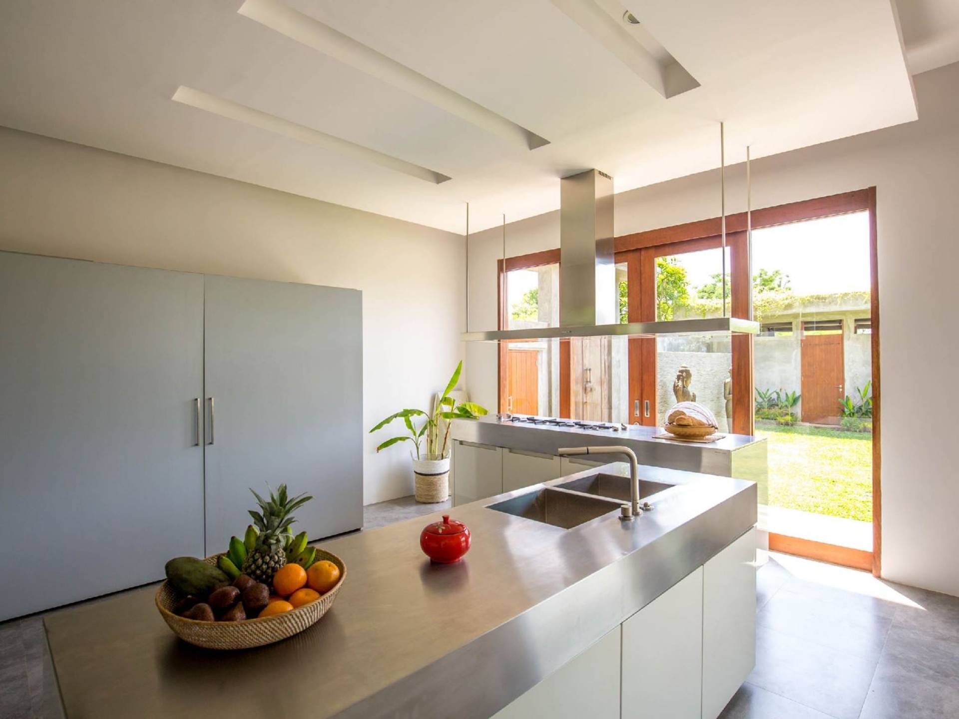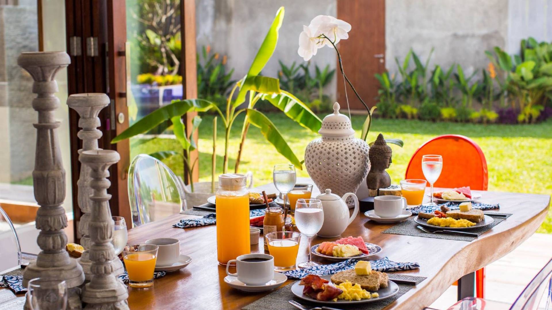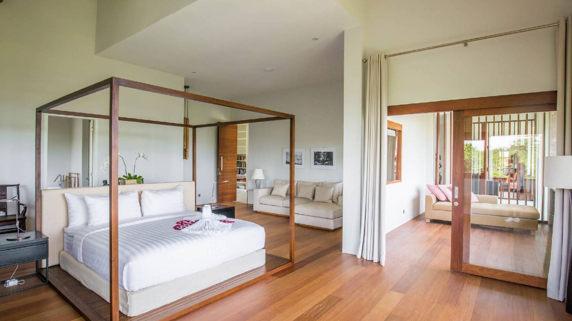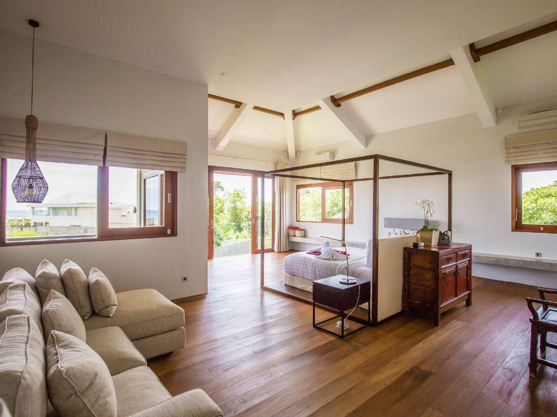 Der Wohnbereich ist von natürlichem Sonnenlicht durchflutet und die Gäste haben den Luxus, zwischen einem klimatisierten Wohnbereich und einem tropischen offenen Wohnbereich mit einfachem Zugang zum Außenbereich der Villa zu wählen. Das zeitgenössische italienische Innendesign umfasst maßgefertigte Lampen und Möbel sowie eine geschmackvolle Sammlung traditioneller Artefakte. Die Villa wurde offensichtlich mit viel Liebe und Auge fürs Detail von den Eigentümern der Villa eingerichtet. Auf der einen Seite befindet sich die Lounge-Ecke mit Sofas und Relaxsesseln, die 3 runde Kaffeetische umgeben. In der Mitte des Wohnbereichs steht ein antikes Sofa aus Teakholz und auf der anderen Seite ein langer, schöner Teakholz-Esstisch, der groß genug ist, um bis zu 10 Personen Platz zu bieten.