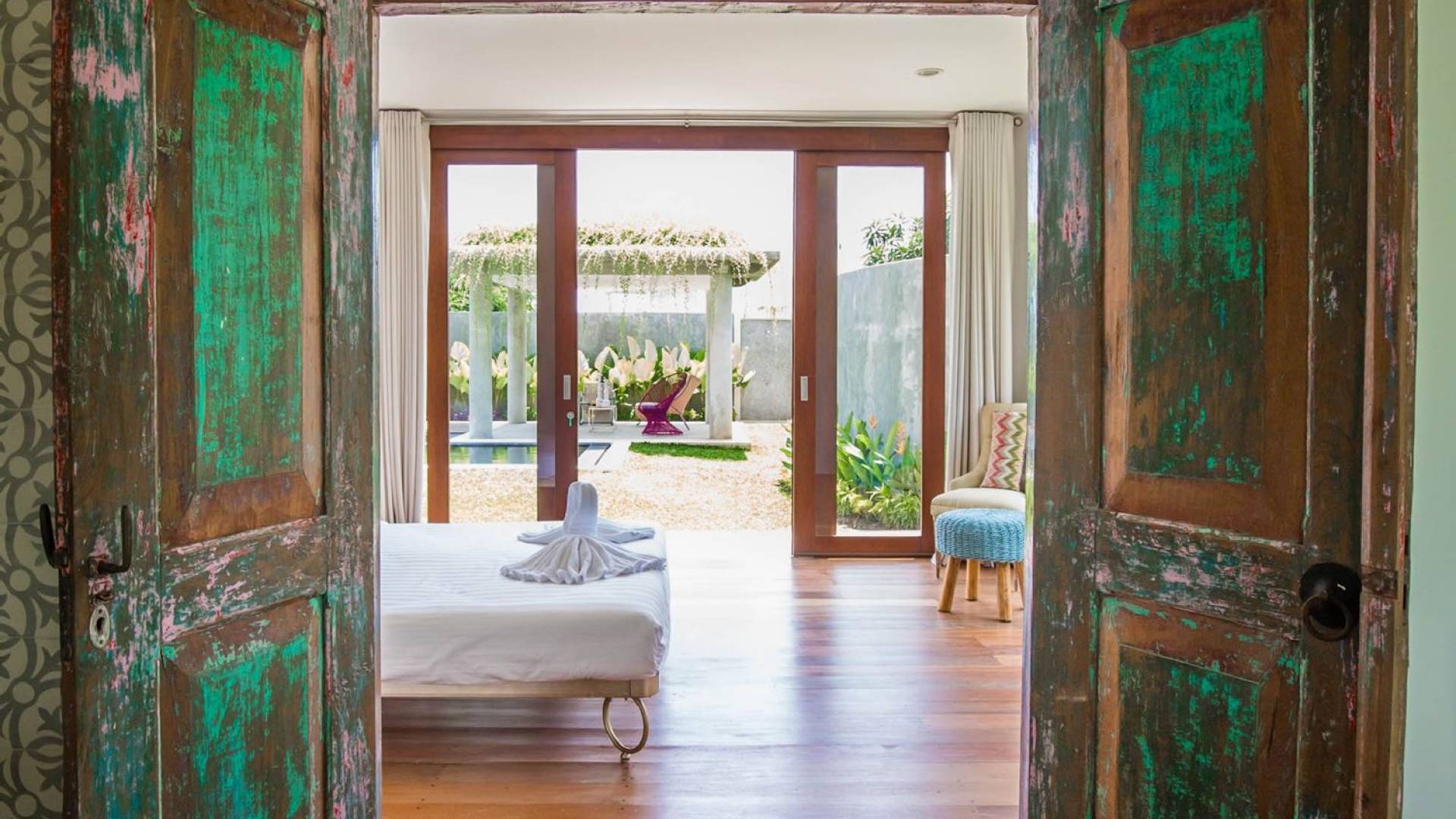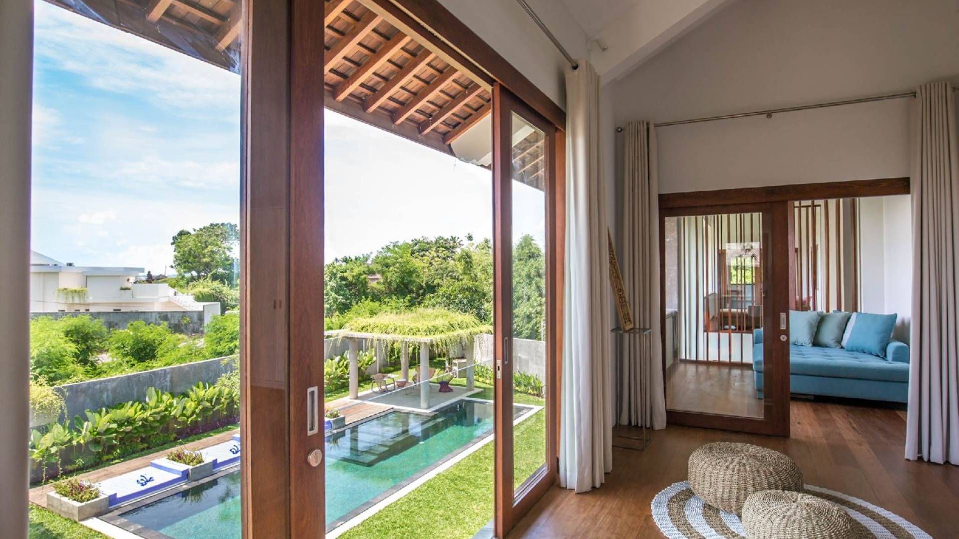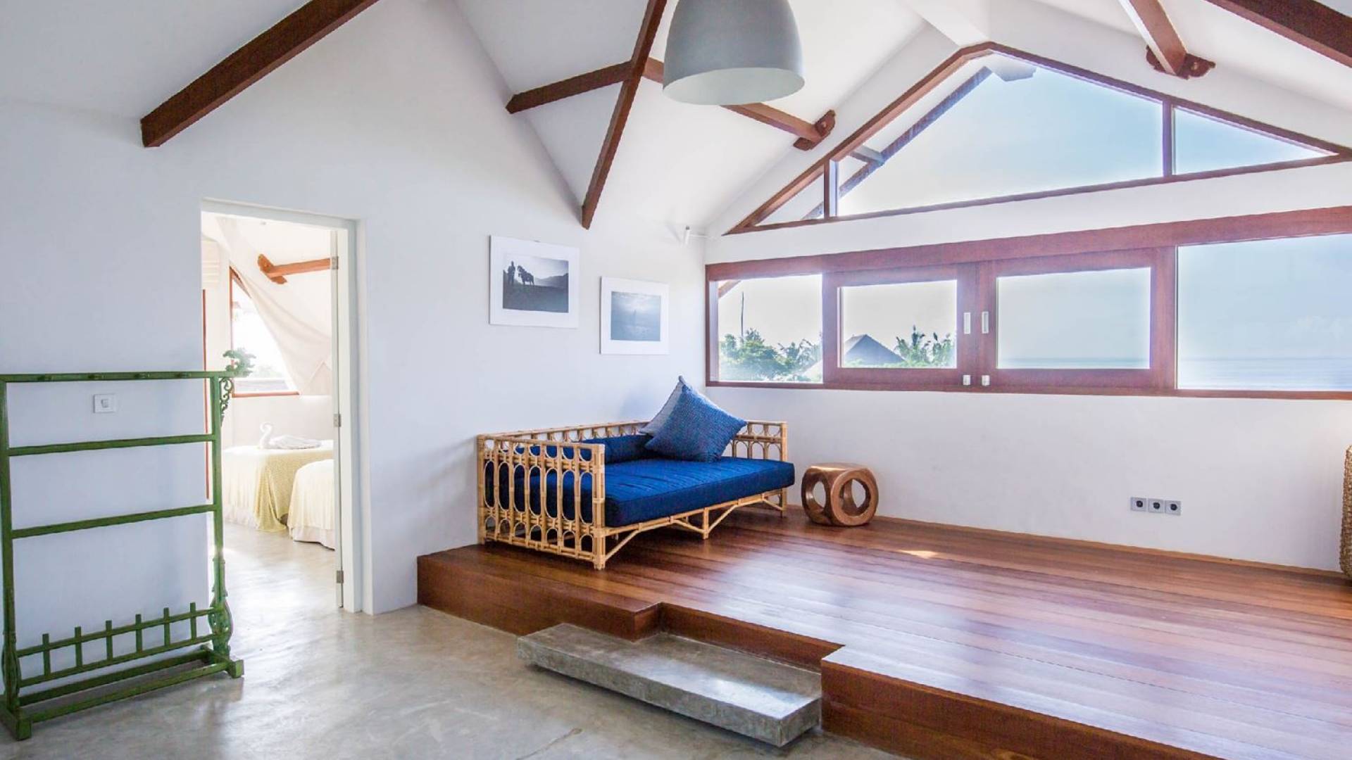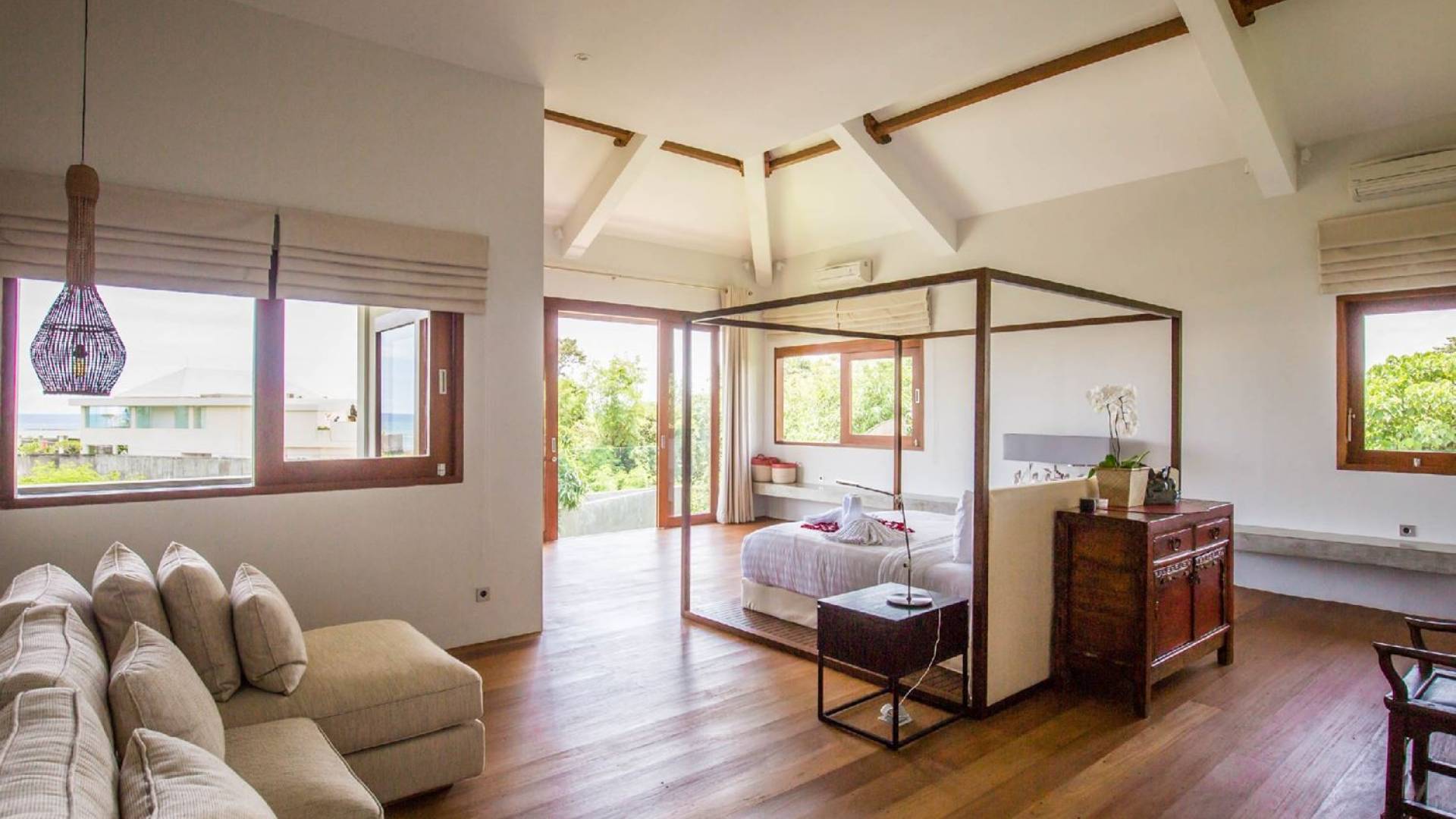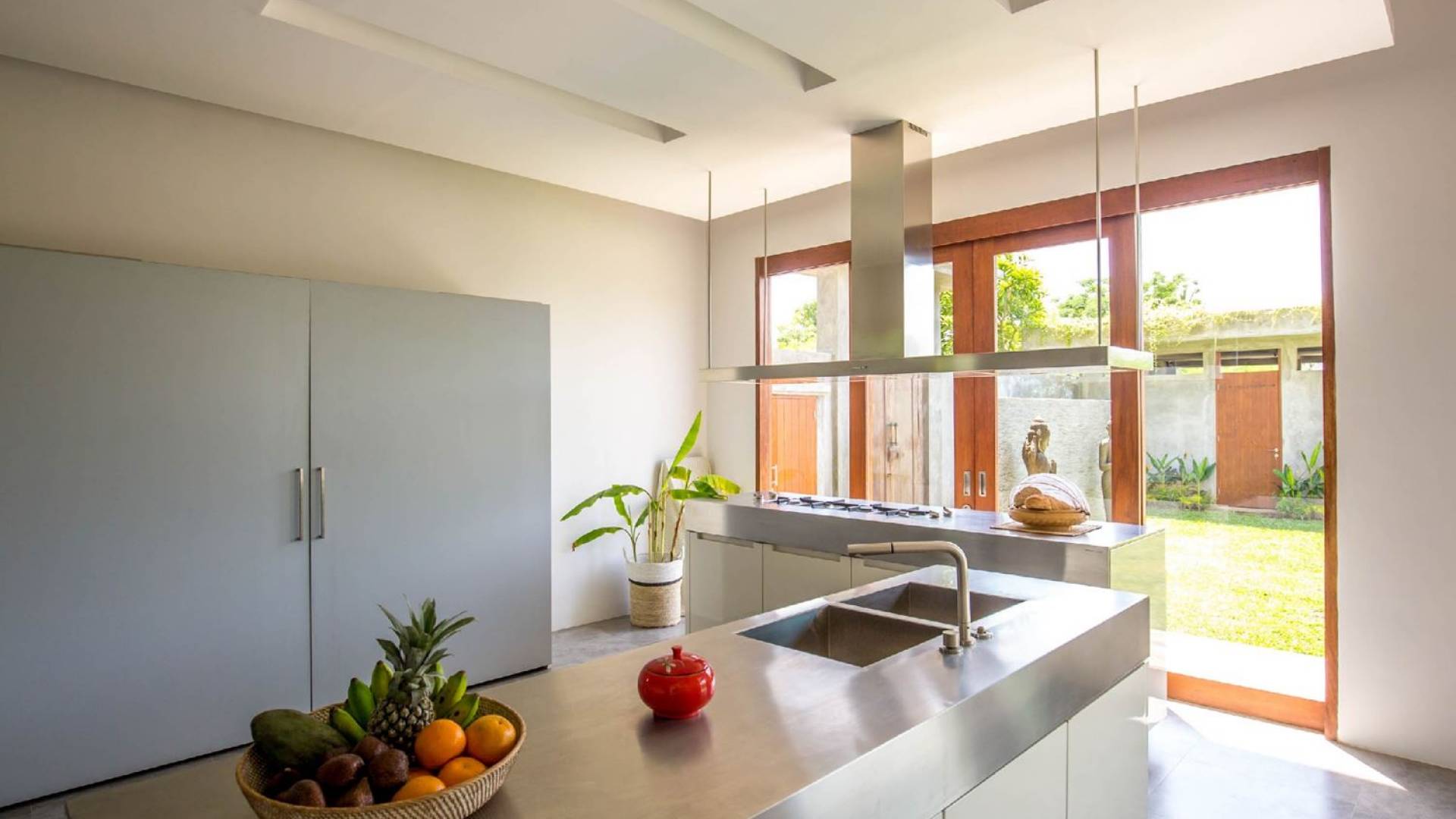Der Wohnbereich ist von natürlichem Sonnenlicht durchflutet und die Gäste haben den Luxus, zwischen einem klimatisierten Wohnbereich und einem tropischen offenen Wohnbereich mit einfachem Zugang zum Außenbereich der Villa zu wählen. Das zeitgenössische italienische Innendesign umfasst maßgefertigte Lampen und Möbel sowie eine geschmackvolle Sammlung traditioneller Artefakte. Die Villa wurde offensichtlich mit viel Liebe und Auge fürs Detail von den Eigentümern der Villa eingerichtet. Auf der einen Seite befindet sich die Lounge-Ecke mit Sofas und Relaxsesseln, die 3 runde Kaffeetische umgeben. In der Mitte des Wohnbereichs steht ein antikes Sofa aus Teakholz und auf der anderen Seite ein langer, schöner Teakholz-Esstisch, der groß genug ist, um bis zu 10 Personen Platz zu bieten.