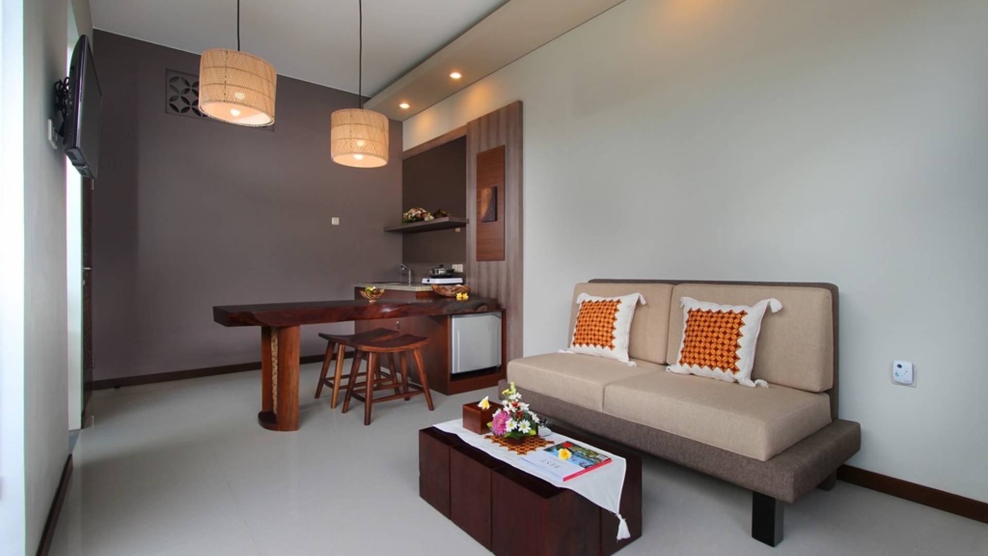 Die Villa mit 1 Schlafzimmer im Maharaja Villas Seminyak bietet Garten- oder Poolblick von der komfortablen Terrasse aus. Ihr eigenes Badezimmer verfügt über eine Badewannen-/Duschkombination mit Regendusche sowie Bademäntel und Designer-Toilettenartikel. Der kostenlose WLAN-Internetzugang hält Sie in Verbindung, und die Flachbildfernseher und der DVD-Player sorgen für Unterhaltung. Fordern Sie eine Massage im Zimmer an. Eine Kaffee-/Teemaschine, eine Mikrowelle und ein Kühlschrank sind ebenfalls vorhanden. Zu den Annehmlichkeiten zählen kostenlose Wasserflaschen und ein separates Wohnzimmer.