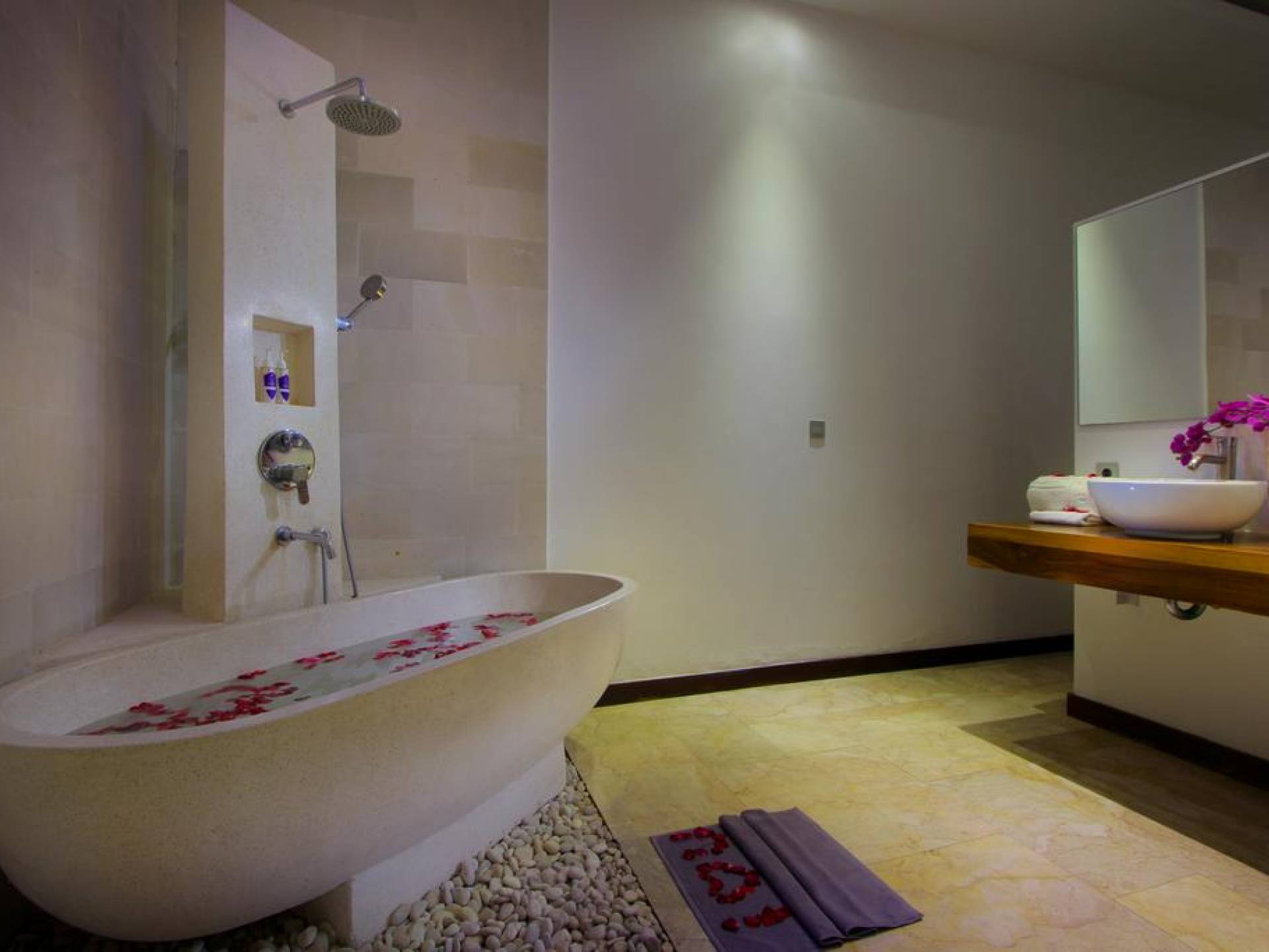 Anema Villa Seminyak bietet die Annehmlichkeiten eines hauseigenen Wäscheservices und kostenlose Parkplätze. Auf Anfrage können auch Flughafentransfers arrangiert werden. Das Frühstück wird täglich im Essbereich jeder Villa serviert. Eine Auswahl an westlichen und lokalen Köstlichkeiten wird in der Villa serviert.