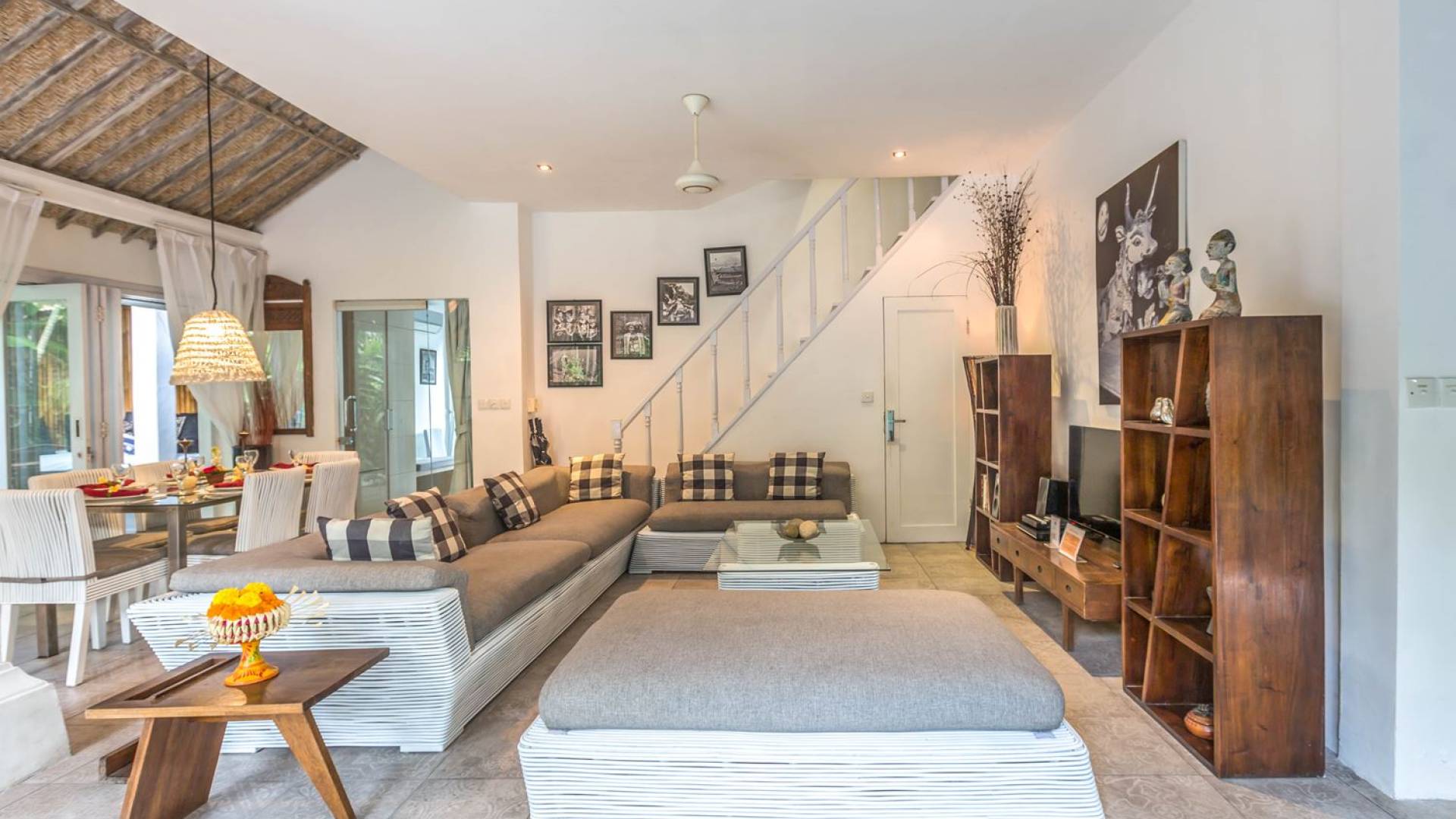 Esha Drupadi I Seminyak ist eine Luxusvilla mit 3 Schlafzimmern und einem privaten Pool. Esha Villas Drupadi I ist eine Villa mit drei Schlafzimmern, die Teil von Esha Villas Drupadi ist, einem Villenkomplex, der aus zwei Villen mit drei Schlafzimmern besteht. Villa Esha Drupadi I und Villa Esha Drupadi II. Alle liegen nebeneinander und es ist möglich, sie alle zu mieten, um eine größere Reisegruppe unterzubringen.