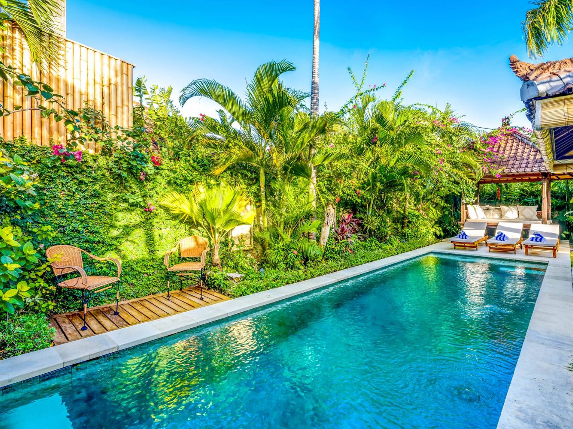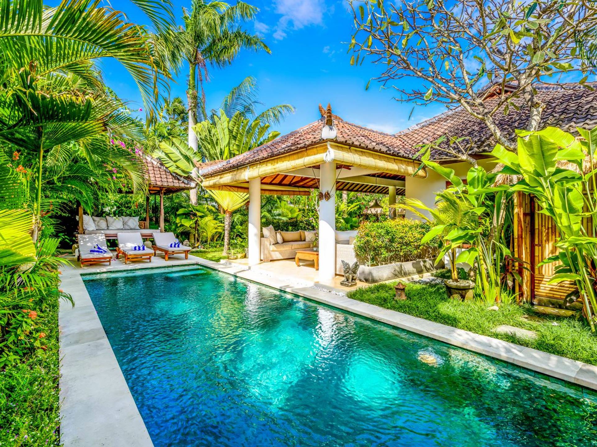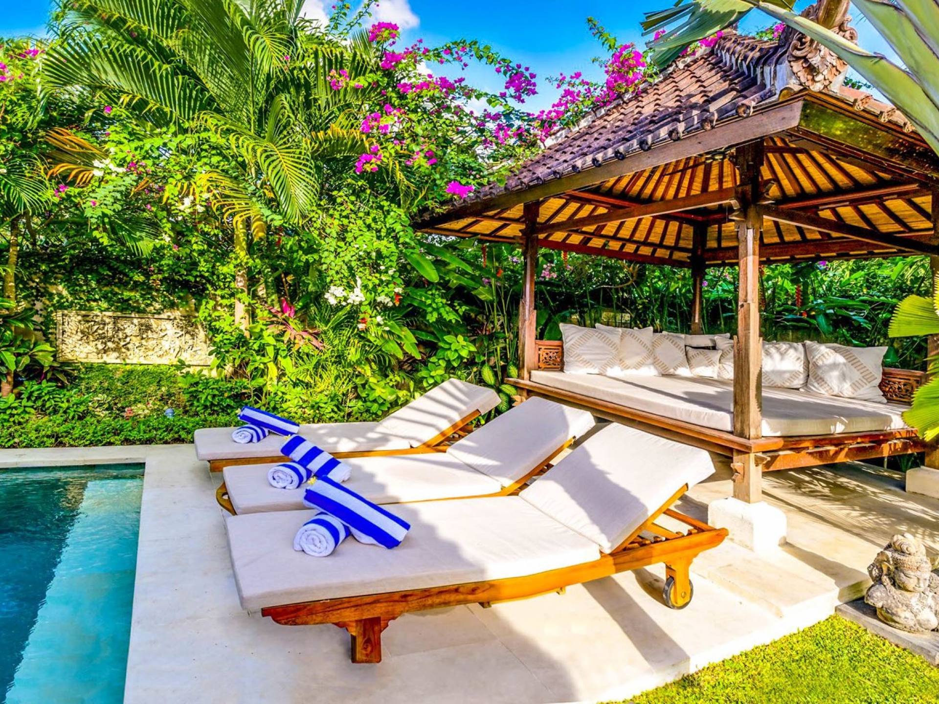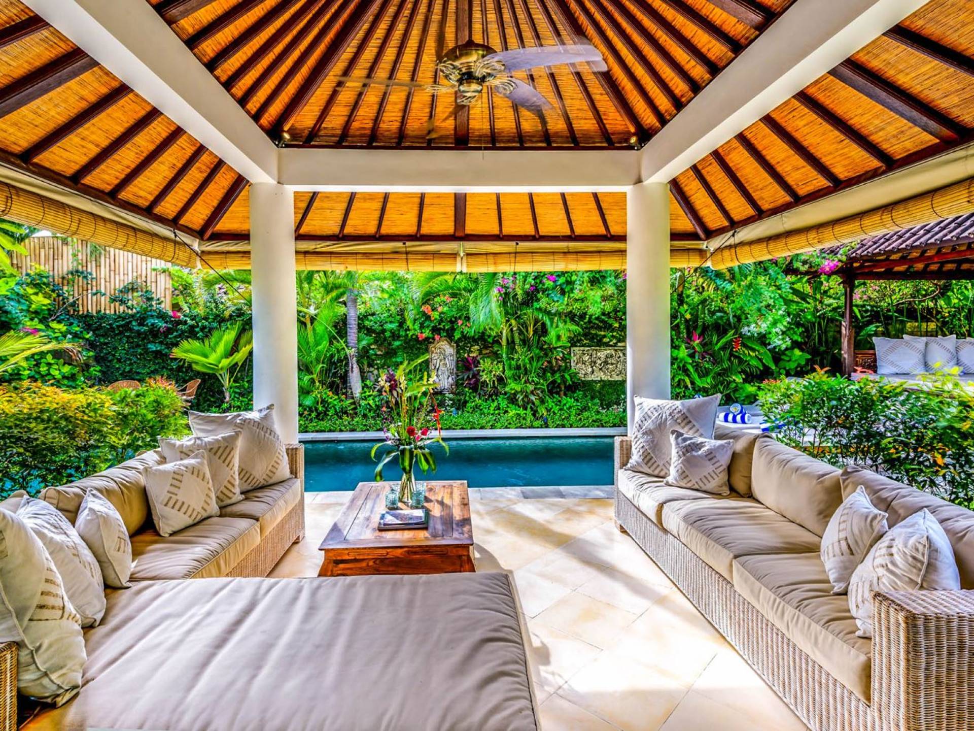 Diese Villa mit 3 Schlafzimmern liegt nur wenige Gehminuten vom Strand von Seminyak entfernt und verfügt über einen Wohnbereich im Freien, der an einen Essbereich angrenzt, sowie eine gut ausgestattete Küche. Draußen gibt es einen großen gepflegten Rasen und Grün, das einen privaten Pool mit Liegestühlen am Pool, Außenstühlen und einem großen Pavillon / Ballen umgibt, der sich ideal für ein Nickerchen oder Entspannung am Nachmittag eignet. Alle Zimmer auf einer Ebene und eine Rasenfläche mit einem üppigen tropischen Garten machen diese Villa zu einer perfekten Wahl für ältere Menschen und eine Familie, die mit Kindern reist.