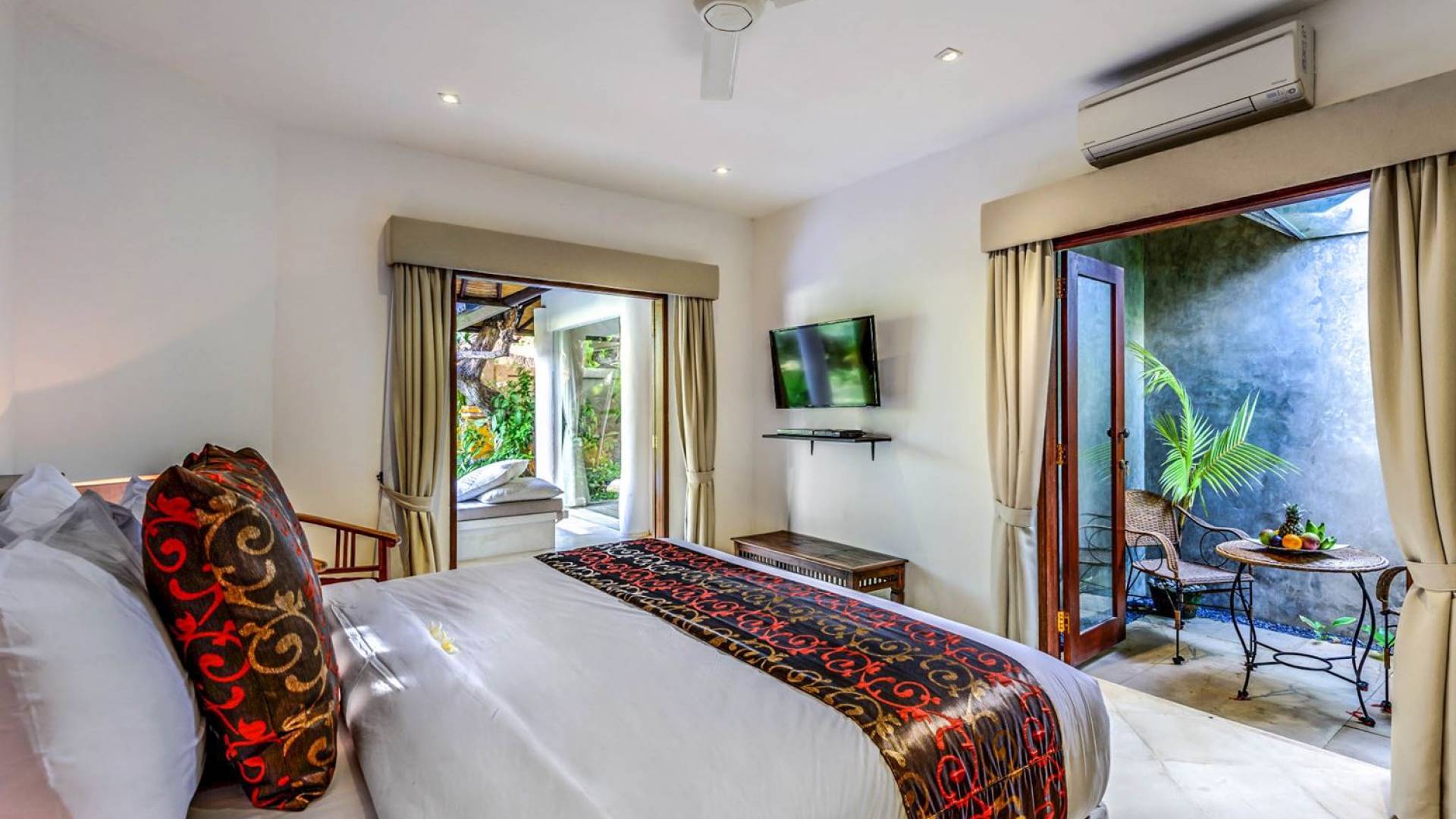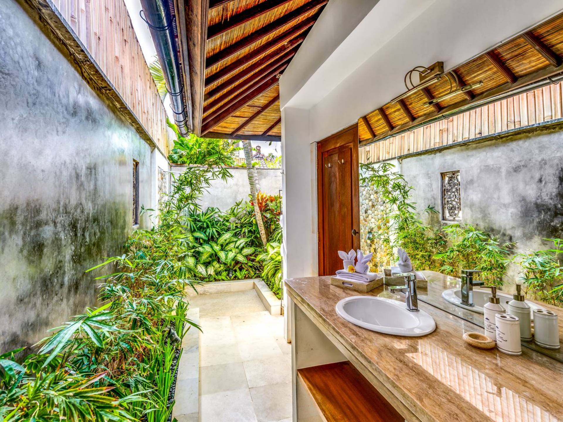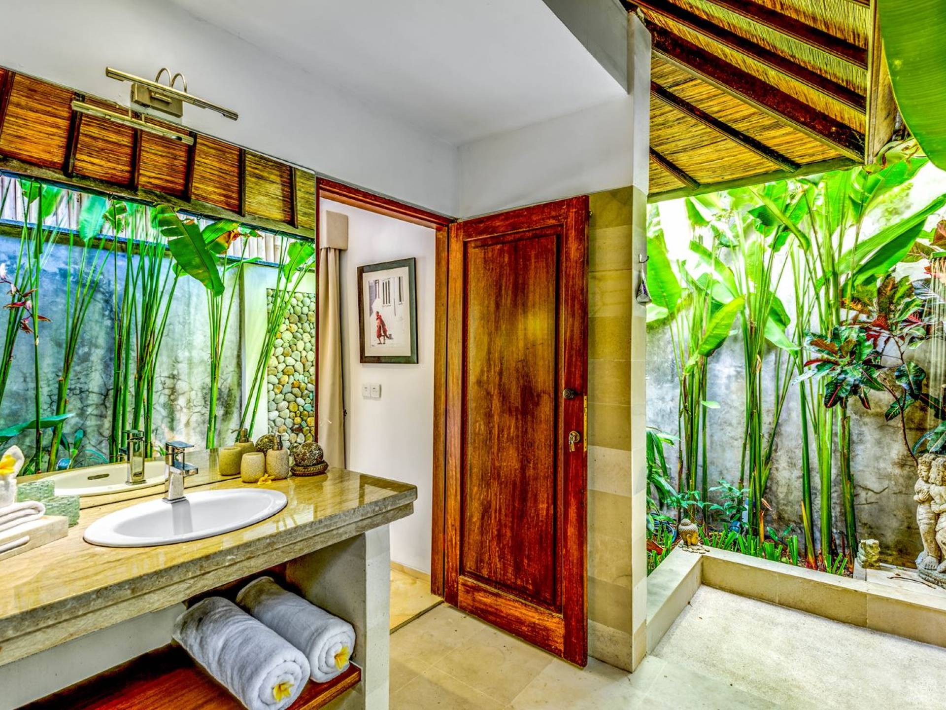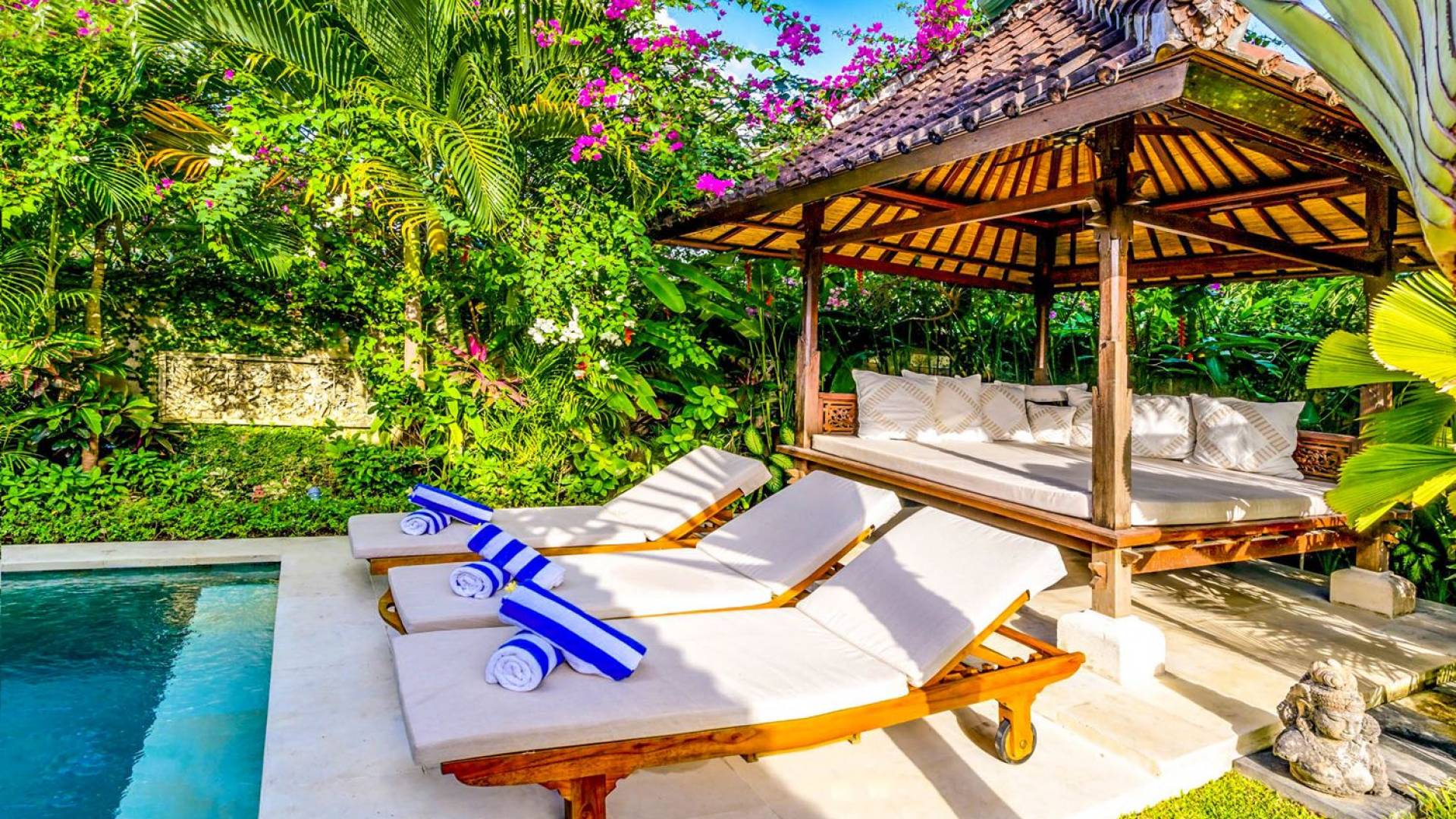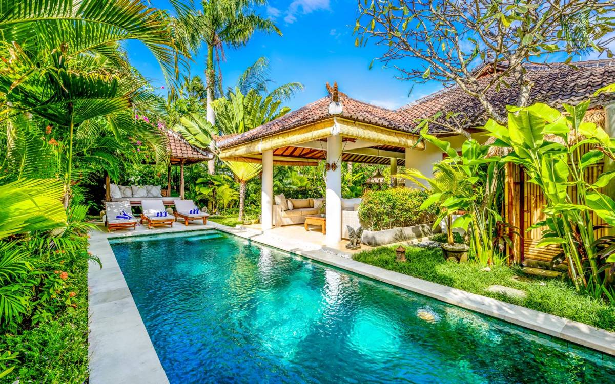 Diese Villa mit 3 Schlafzimmern liegt nur wenige Gehminuten vom Strand von Seminyak entfernt und verfügt über einen Wohnbereich im Freien, der an einen Essbereich angrenzt, sowie eine gut ausgestattete Küche. Draußen gibt es einen großen gepflegten Rasen und Grün, das einen privaten Pool mit Liegestühlen am Pool, Außenstühlen und einem großen Pavillon / Ballen umgibt, der sich ideal für ein Nickerchen oder Entspannung am Nachmittag eignet. Alle Zimmer auf einer Ebene und eine Rasenfläche mit einem üppigen tropischen Garten machen diese Villa zu einer perfekten Wahl für ältere Menschen und eine Familie, die mit Kindern reist.