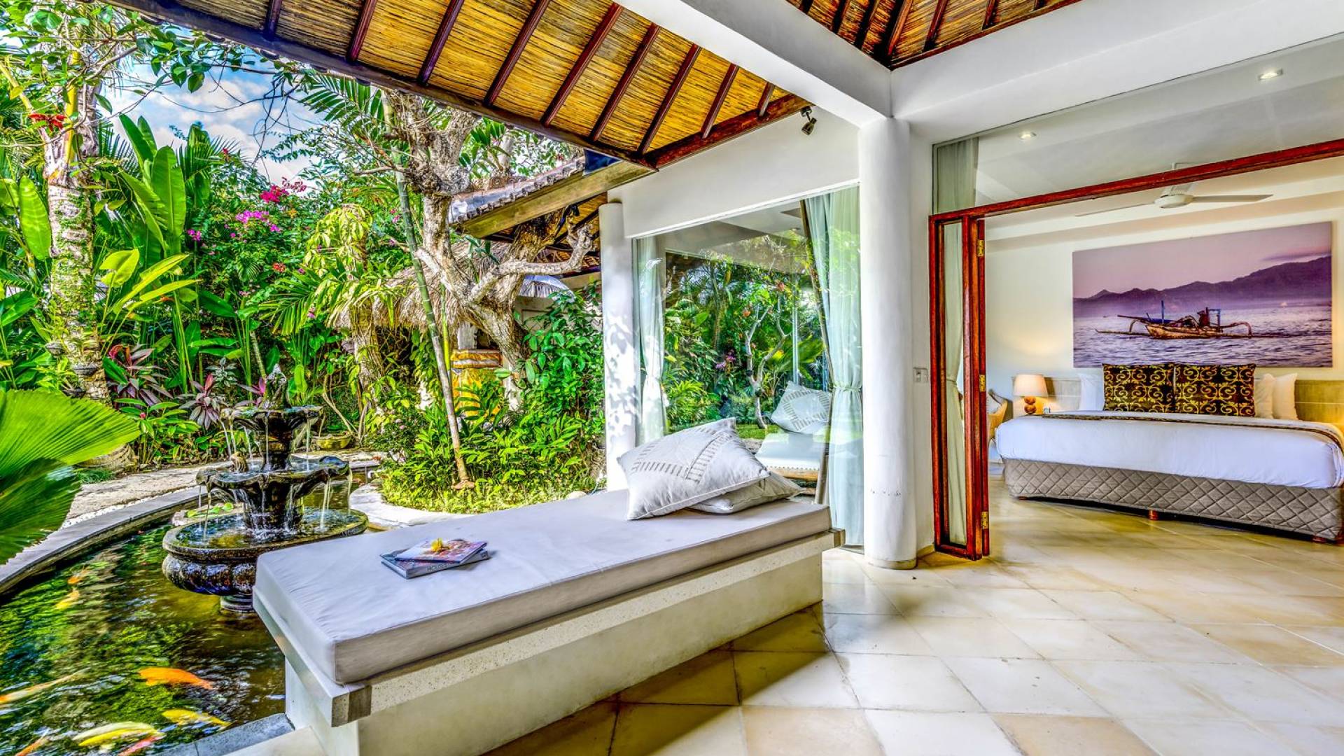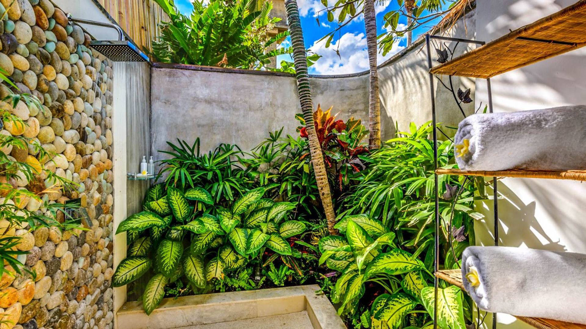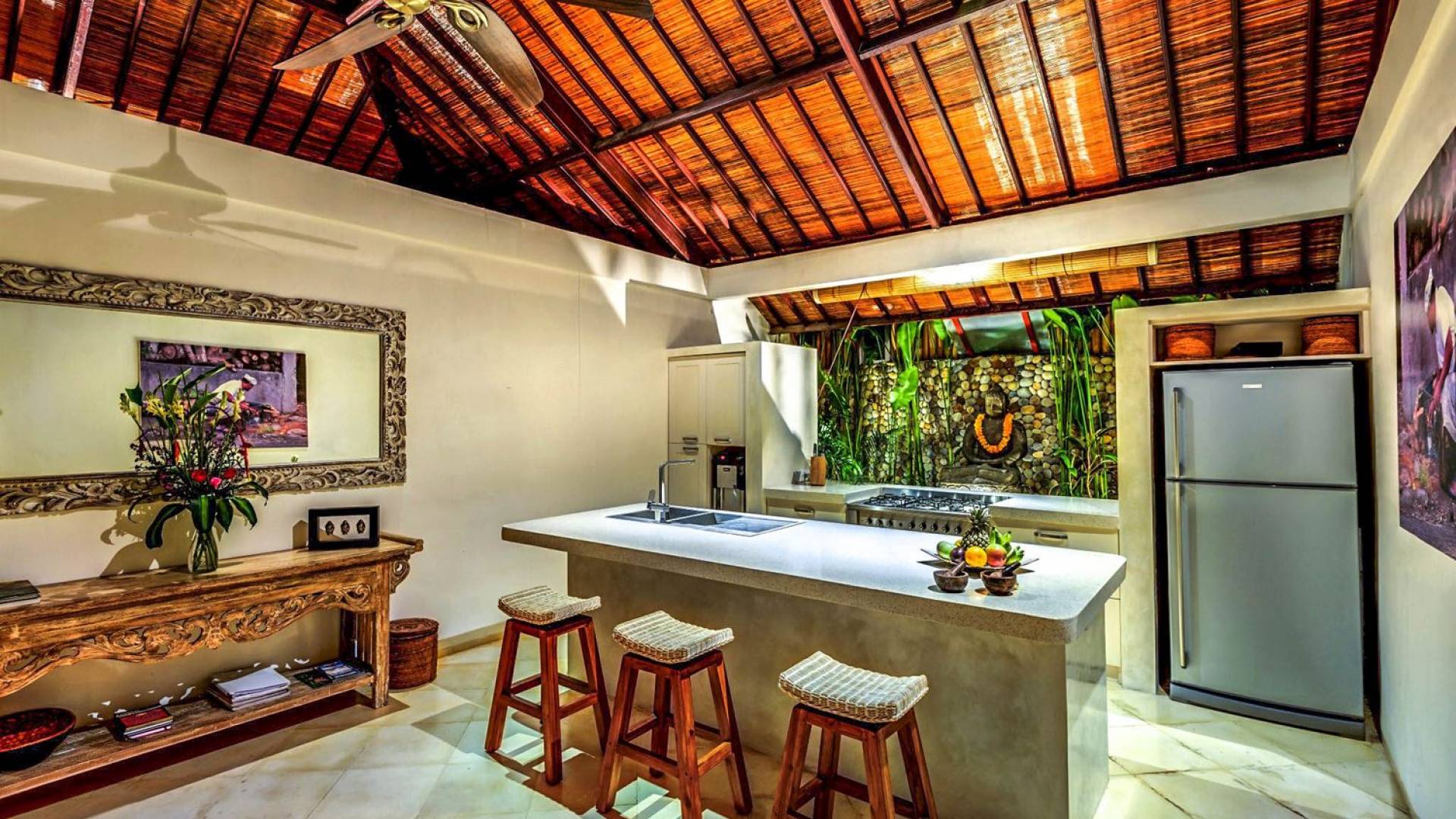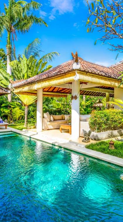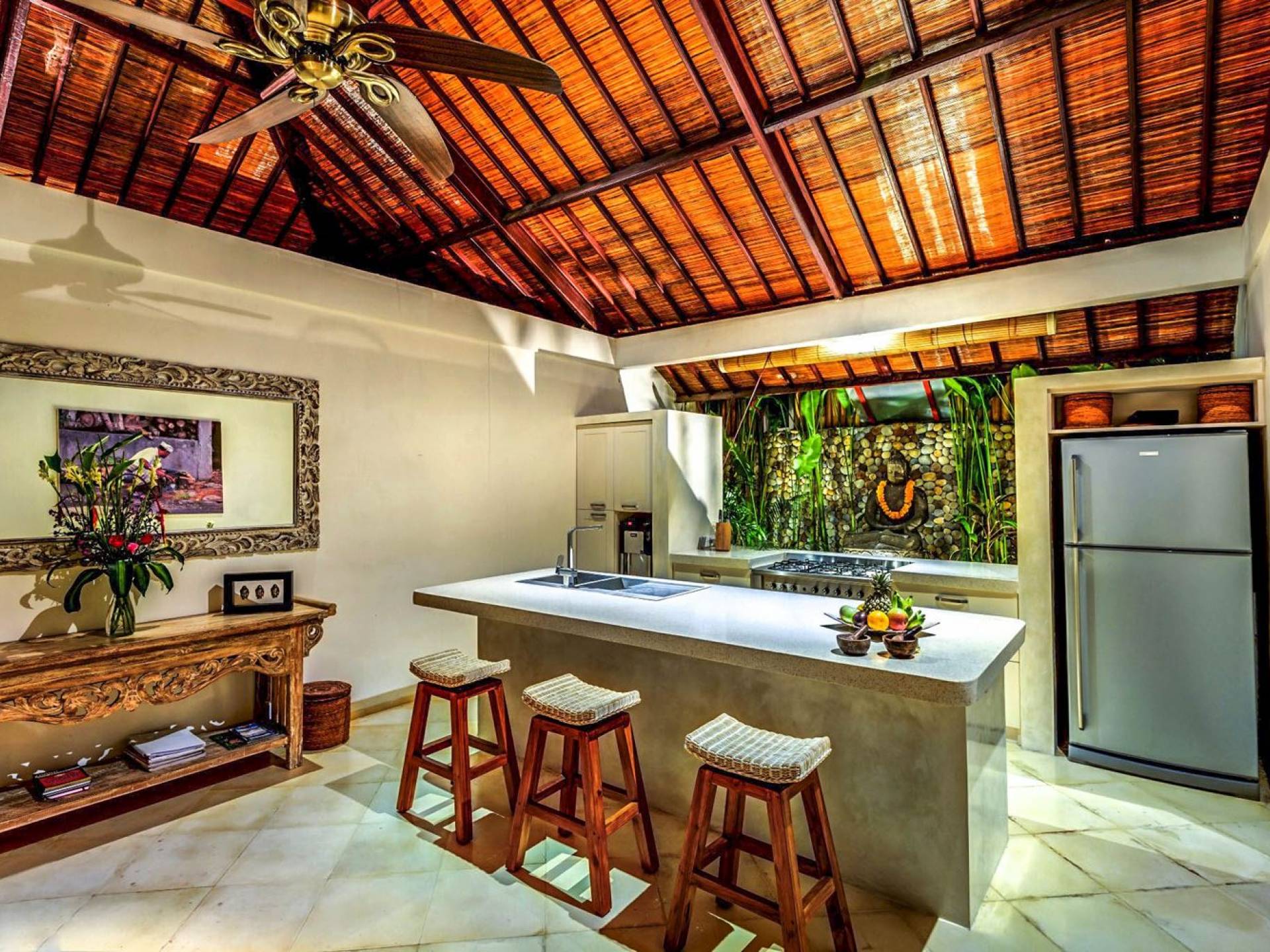Villa Vitari Seminyak ist eine Luxusvilla mit 3 Schlafzimmern und einem privaten Pool. Wenn Sie durch den beeindruckenden privaten Eingang gehen, vorbei an der Steinmauer, werden Sie von einem wunderschönen Landschaftsgarten umgeben, der die Villa umgibt. Der Eingangsweg schlängelt sich um einen großen Koi-Teich mit einem Wasserspiel, in dem Sie sich sofort wie zu Hause fühlen, entspannen und entspannen können.
