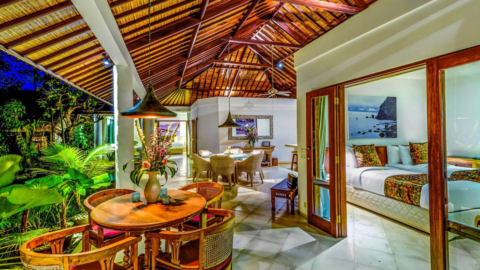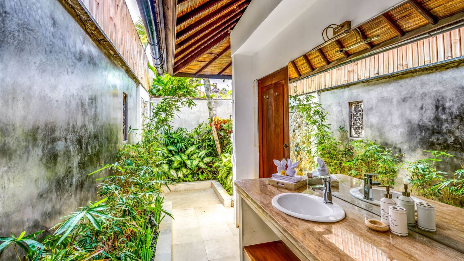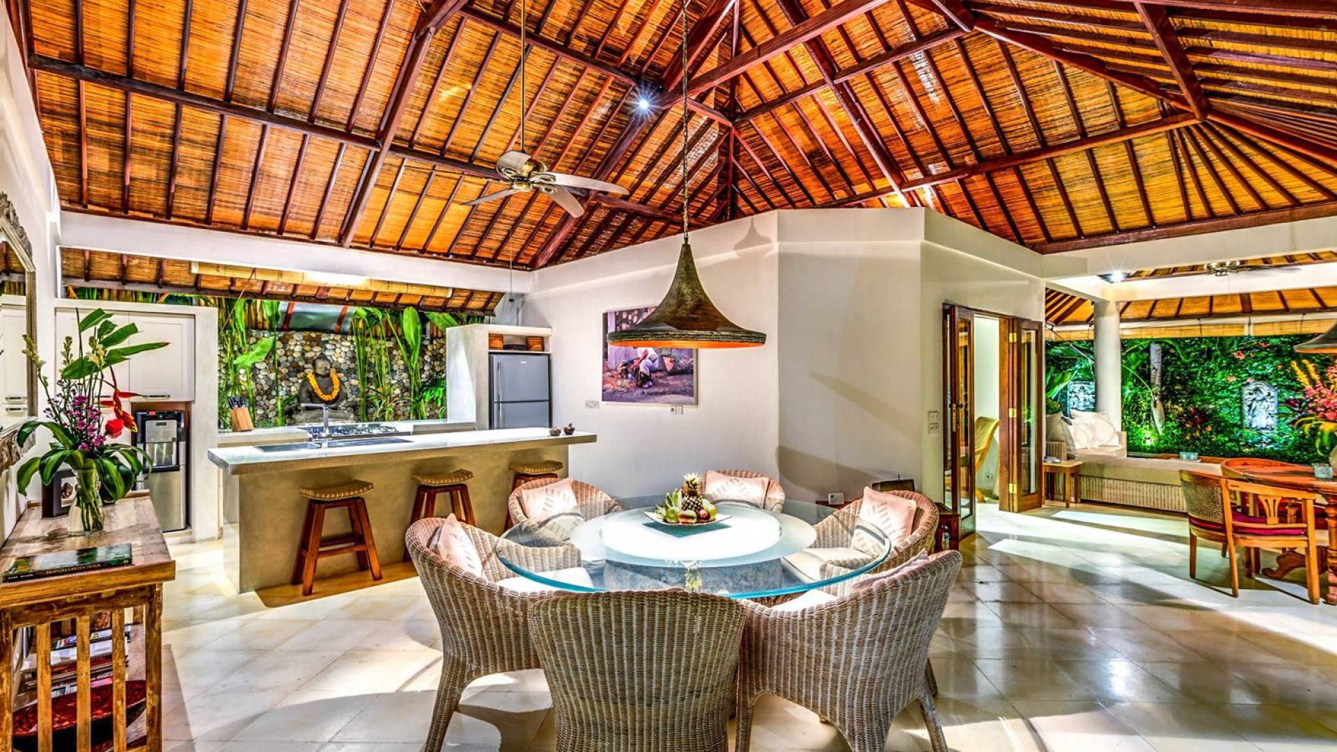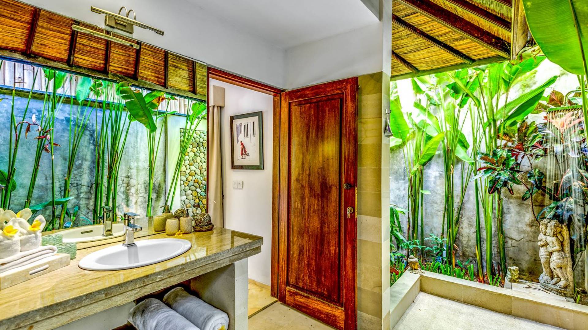 Villa Vitari Seminyak ist eine Luxusvilla mit 3 Schlafzimmern und einem privaten Pool. Wenn Sie durch den beeindruckenden privaten Eingang gehen, vorbei an der Steinmauer, werden Sie von einem wunderschönen Landschaftsgarten umgeben, der die Villa umgibt. Der Eingangsweg schlängelt sich um einen großen Koi-Teich mit einem Wasserspiel, in dem Sie sich sofort wie zu Hause fühlen, entspannen und entspannen können.
