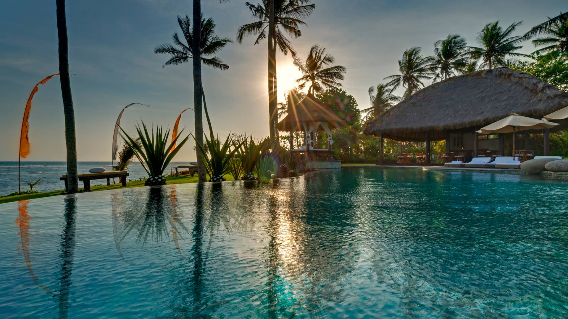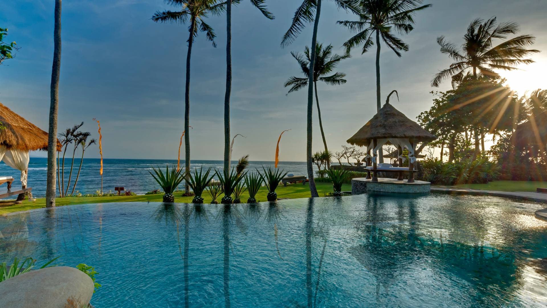 Taman Ahimsa bedeutet "Garten des Friedens", was abgesehen von den rhythmischen Wellen, die sich direkt hinter der Grenze dieser magischen Villa mit sieben Schlafzimmern an der Südwestküste Balis brechen, die Umgebung perfekt beschreibt. Traditionelle Materialien aus Stroh, Kokosnussschalen, Bambus, Rattan und recyceltem Holz bereichern eine atemberaubende natürliche Umgebung, während indonesische Artefakte und kunstvolle handgefertigte Stoffe dem Interieur einen einzigartigen Charakter verleihen. Lassen Sie nach einem Tag der Entspannung oder einer belebenden Massage am Pool Ihren Gaumen vom erfahrenen Küchenchef der Villa und seinem Team verzaubern, bevor Sie zu Ihrem verträumten Schlafzimmerpavillon mit seinem sternenklaren Meerblick zurückkehren.