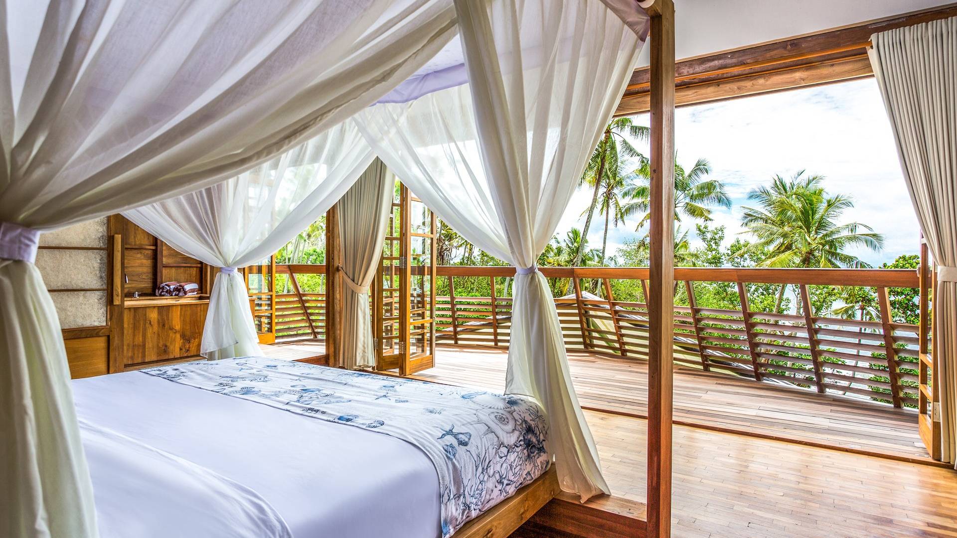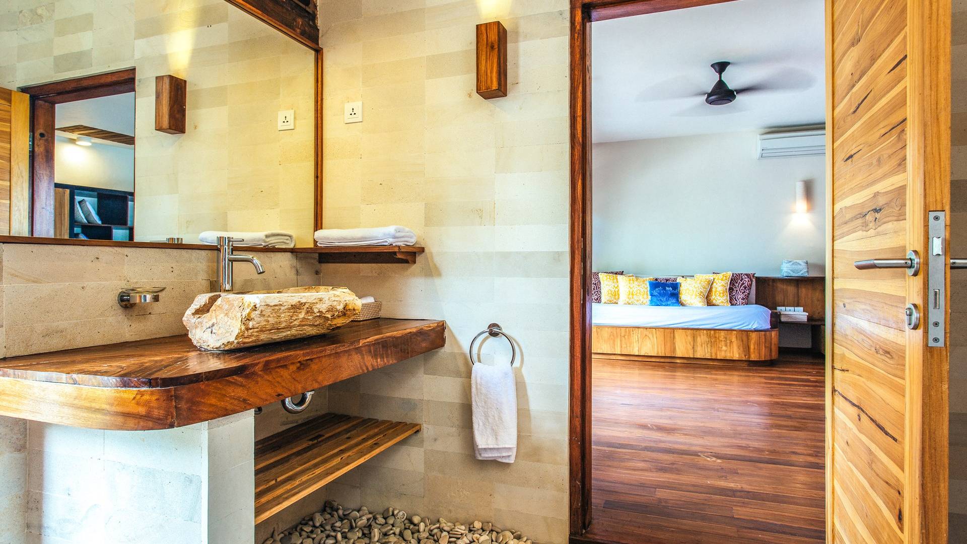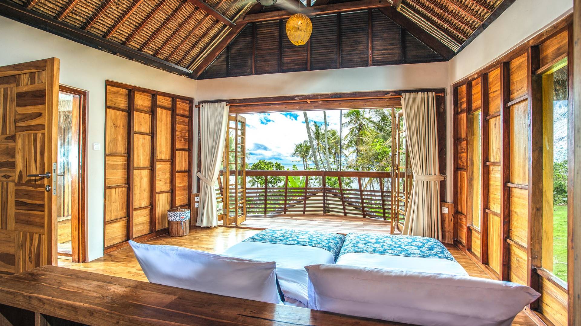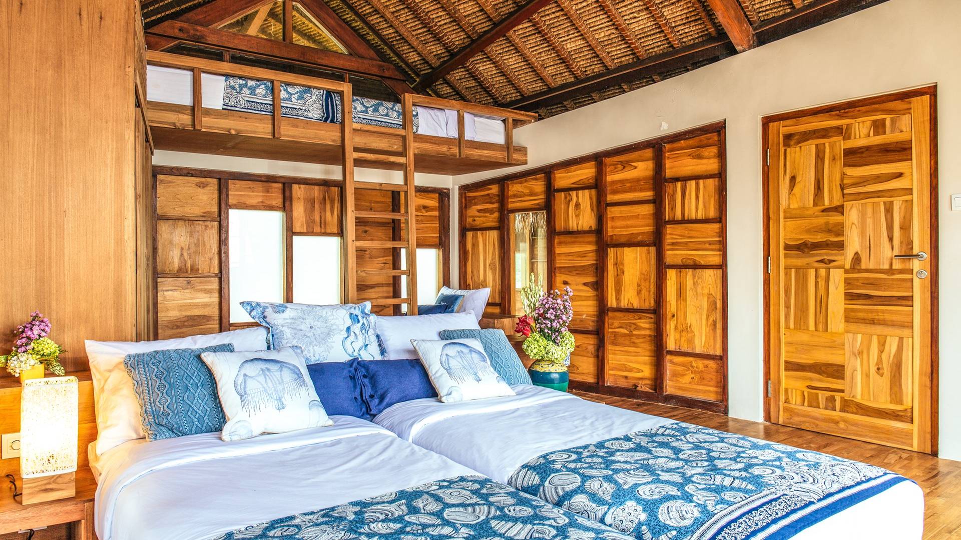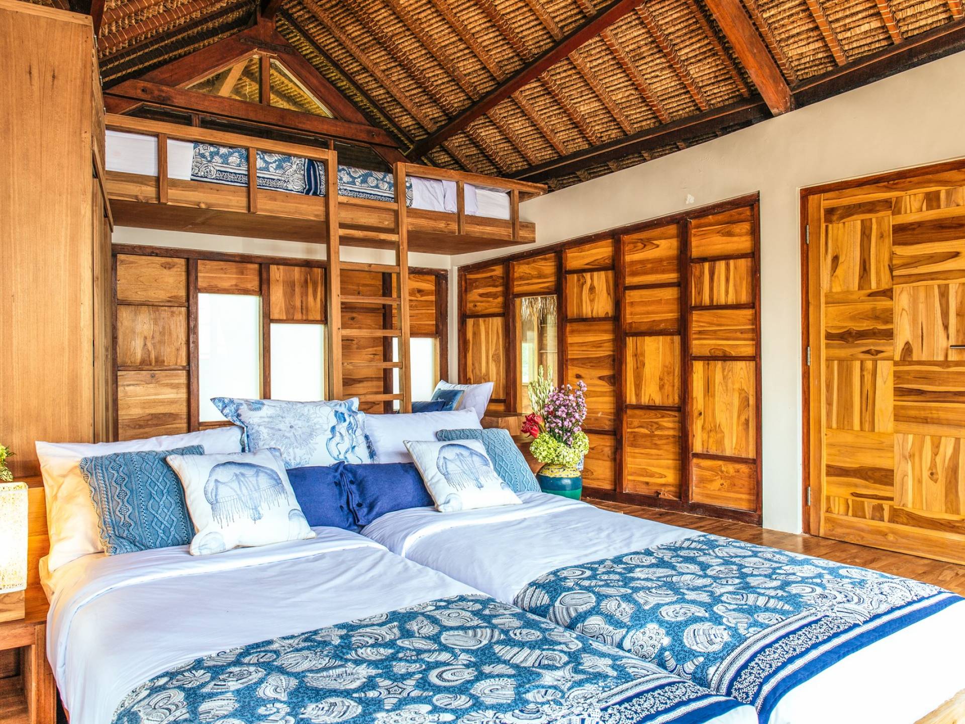 Das Cove Bali verfügt über 4 Schlafzimmer im Haupthaus und ein separates Gästehaus mit einem Schlafzimmer in der Nähe des Pools. Jedes Schlafzimmer hat seine eigene Terrasse oder Deck mit Blick auf das Meer und bietet den Gästen von jedem Zimmer aus einen wunderschönen Meerblick. Die Schlafzimmer haben eine komfortable Größe mit einer gemütlichen Atmosphäre. Jedes verfügt über eine eigene Klimaanlage und einen Deckenventilator für maximalen Komfort.