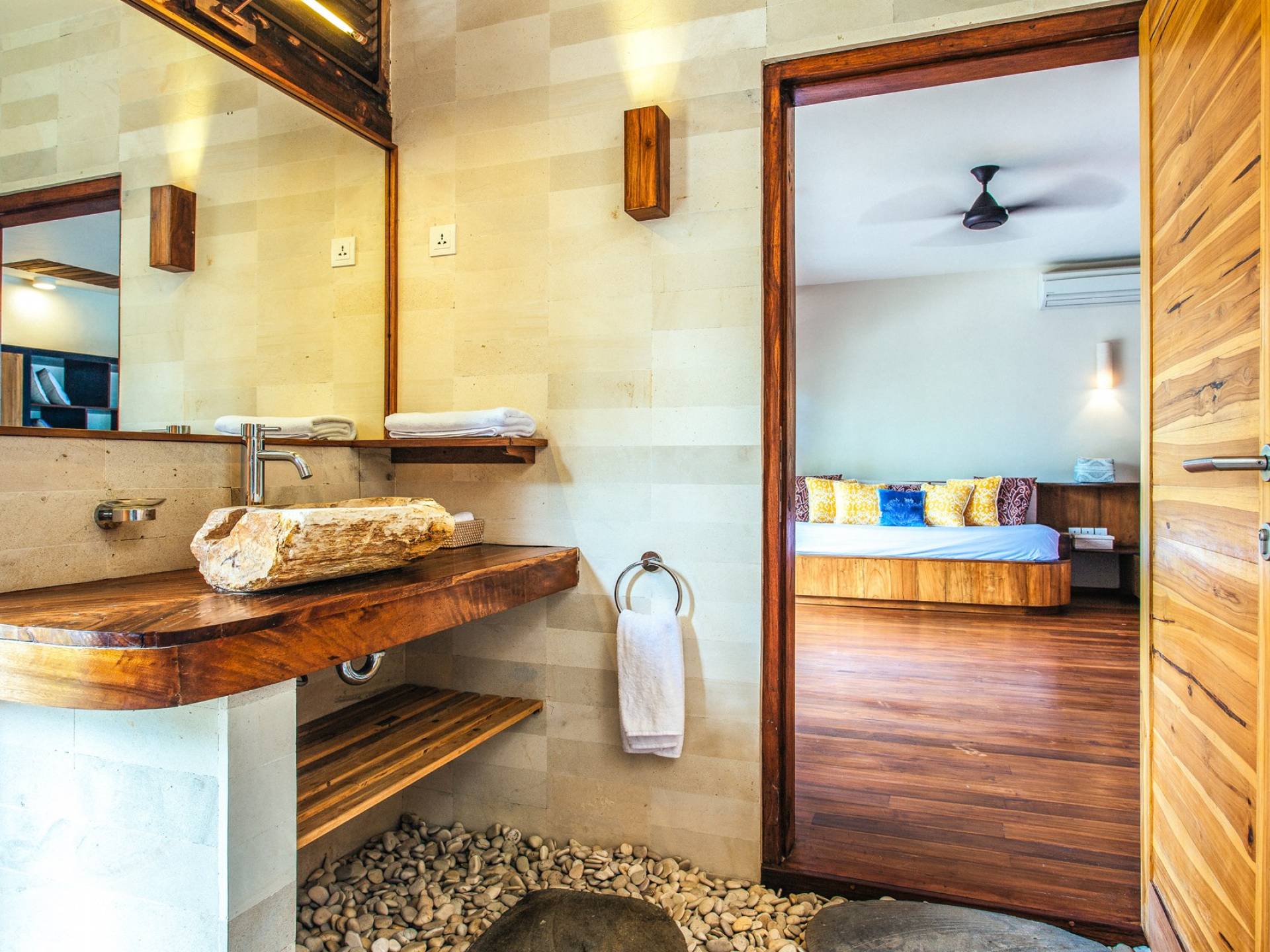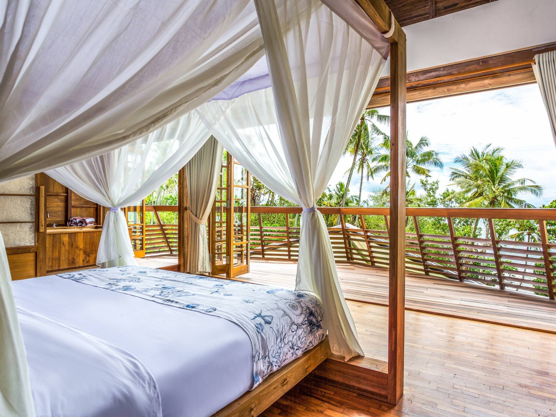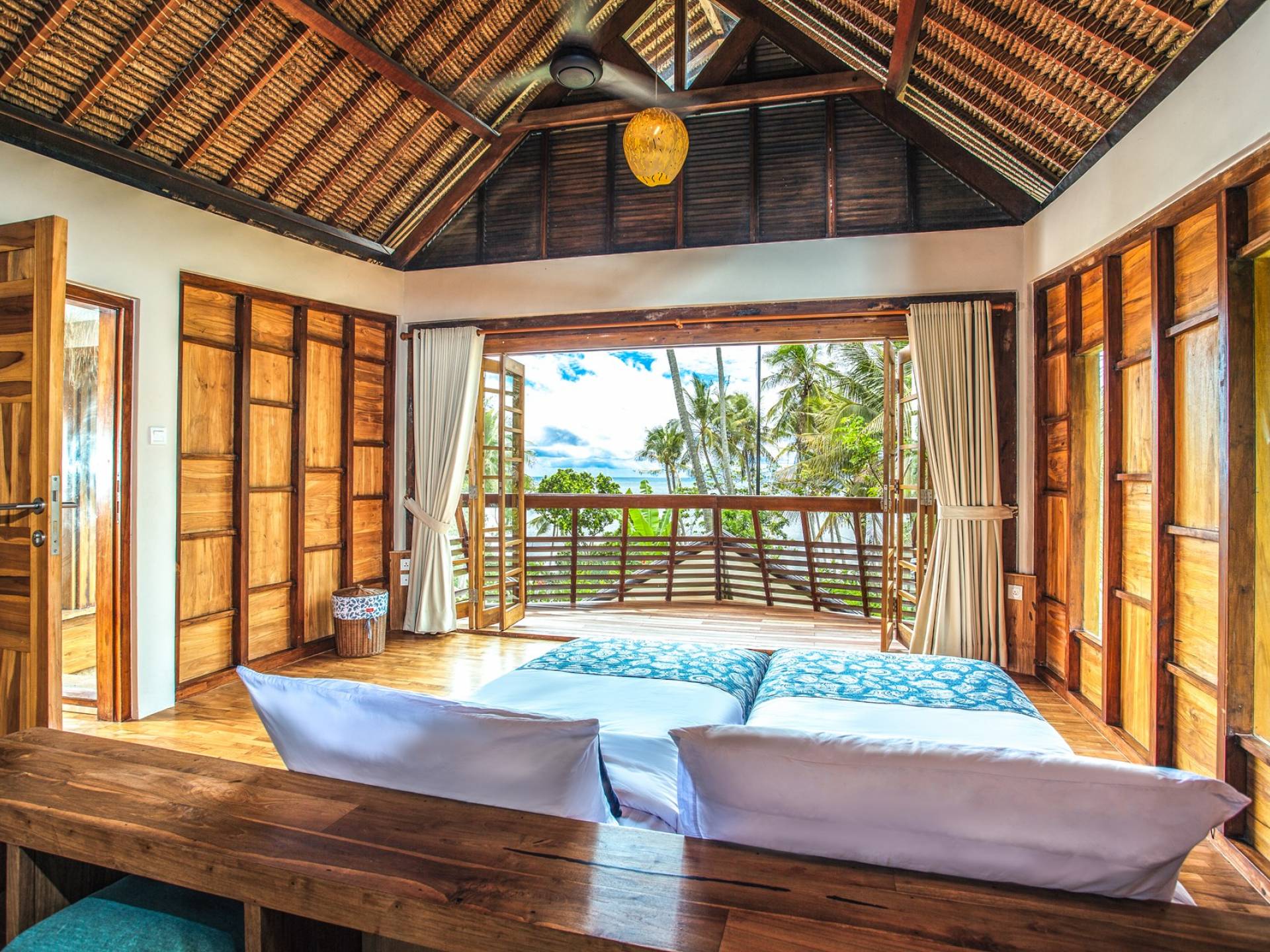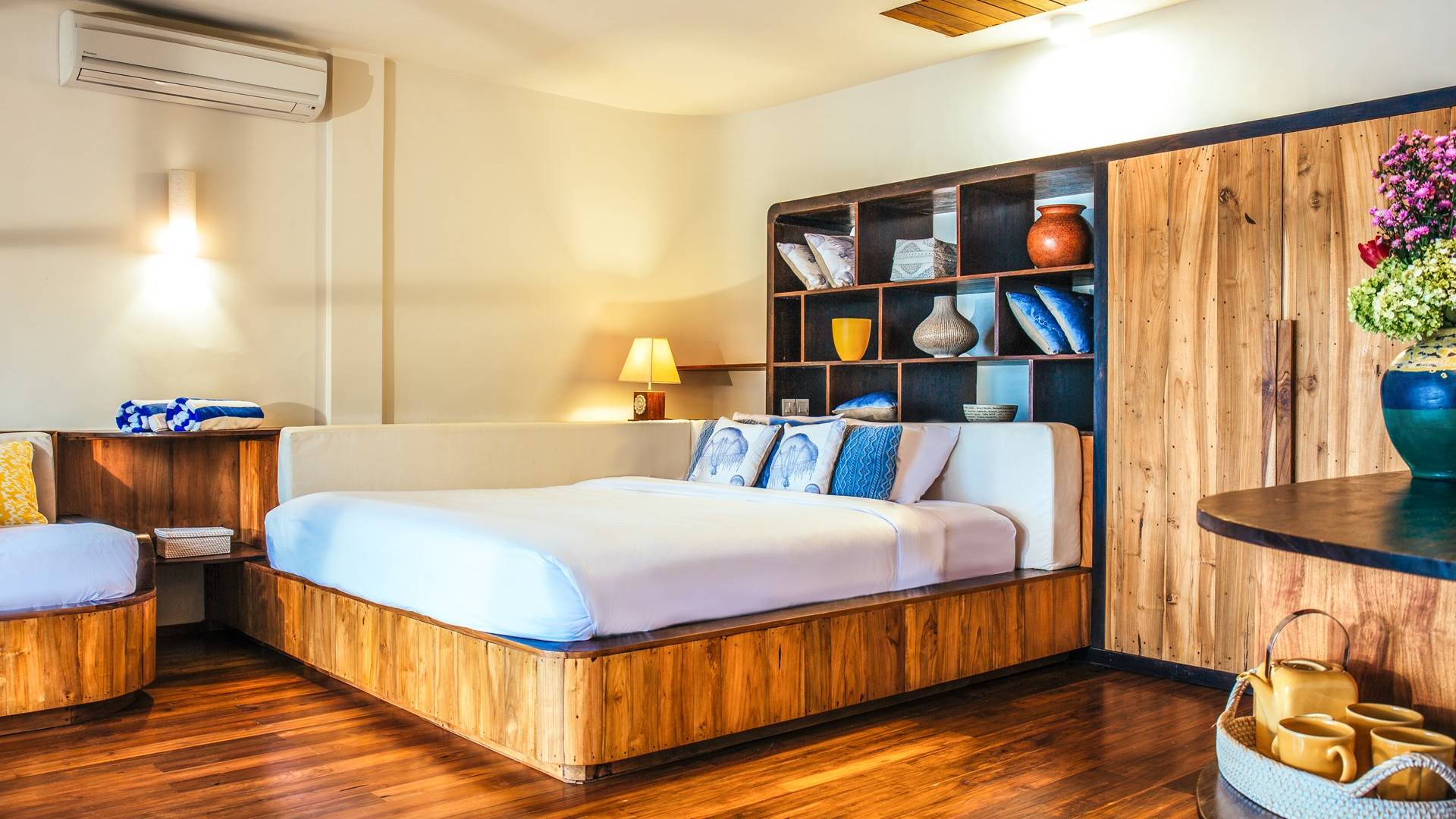 Das Cove Bali verfügt über 4 Schlafzimmer im Haupthaus und ein separates Gästehaus mit einem Schlafzimmer in der Nähe des Pools. Jedes Schlafzimmer hat seine eigene Terrasse oder Deck mit Blick auf das Meer und bietet den Gästen von jedem Zimmer aus einen wunderschönen Meerblick. Die Schlafzimmer haben eine komfortable Größe mit einer gemütlichen Atmosphäre. Jedes verfügt über eine eigene Klimaanlage und einen Deckenventilator für maximalen Komfort.