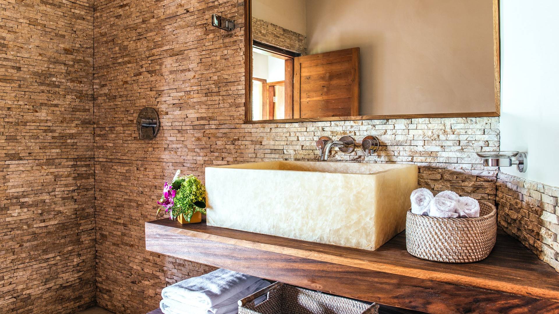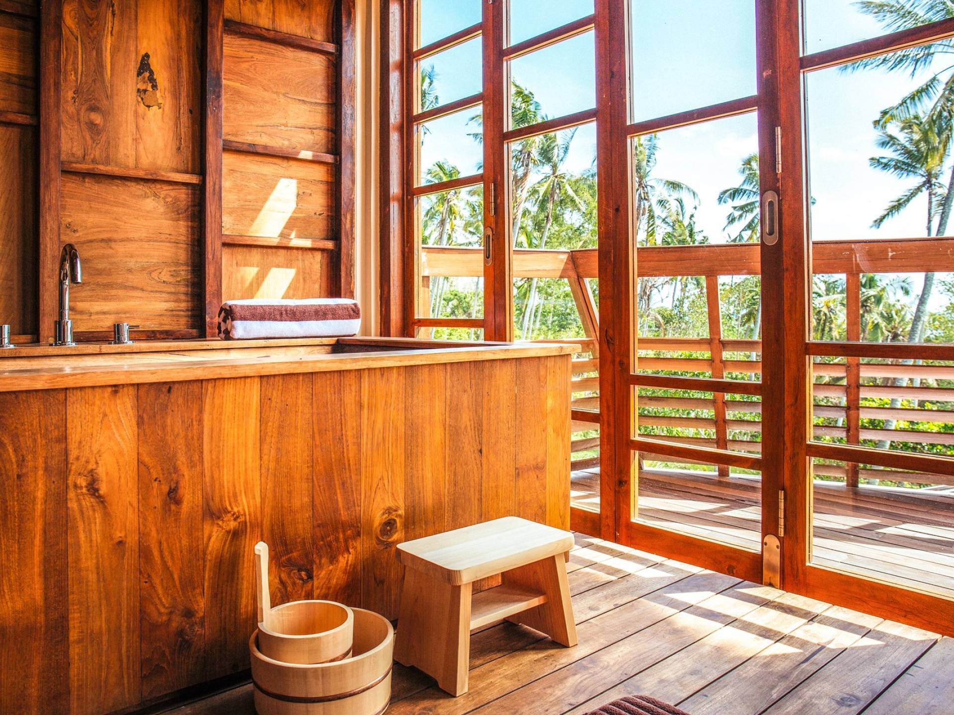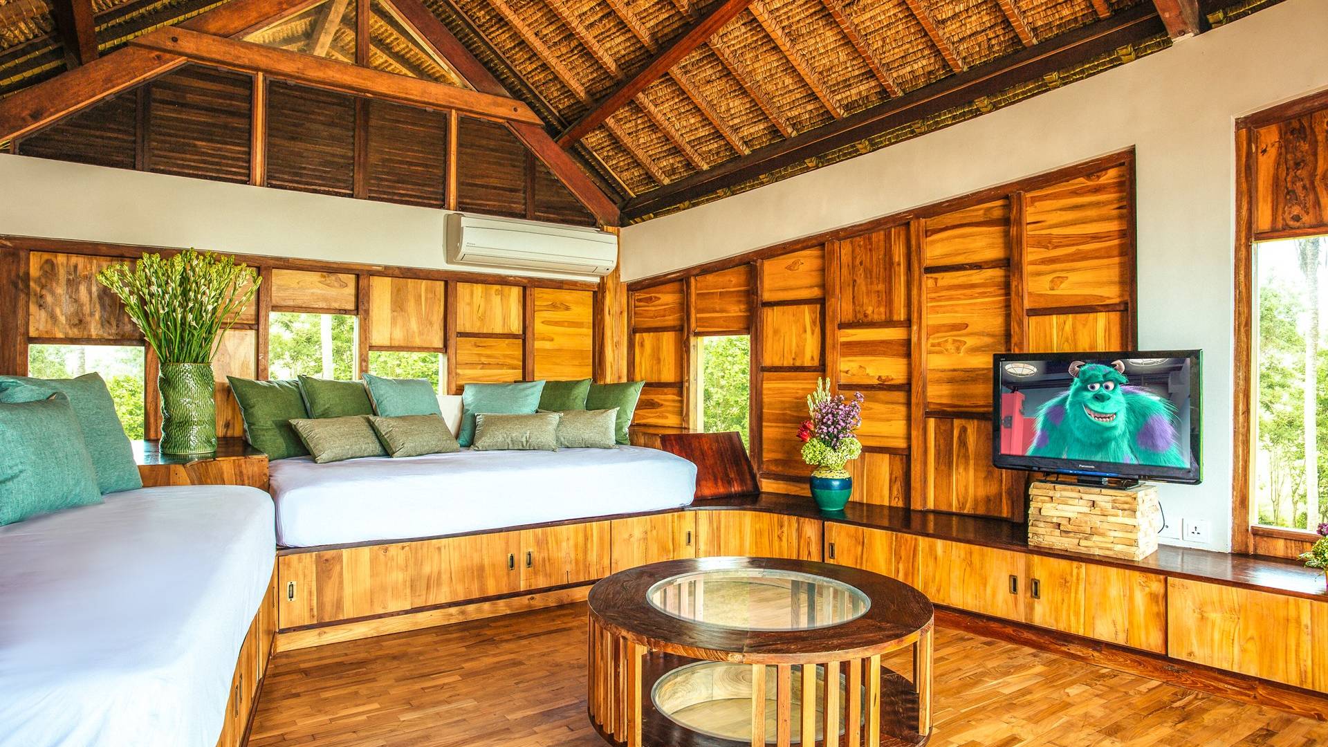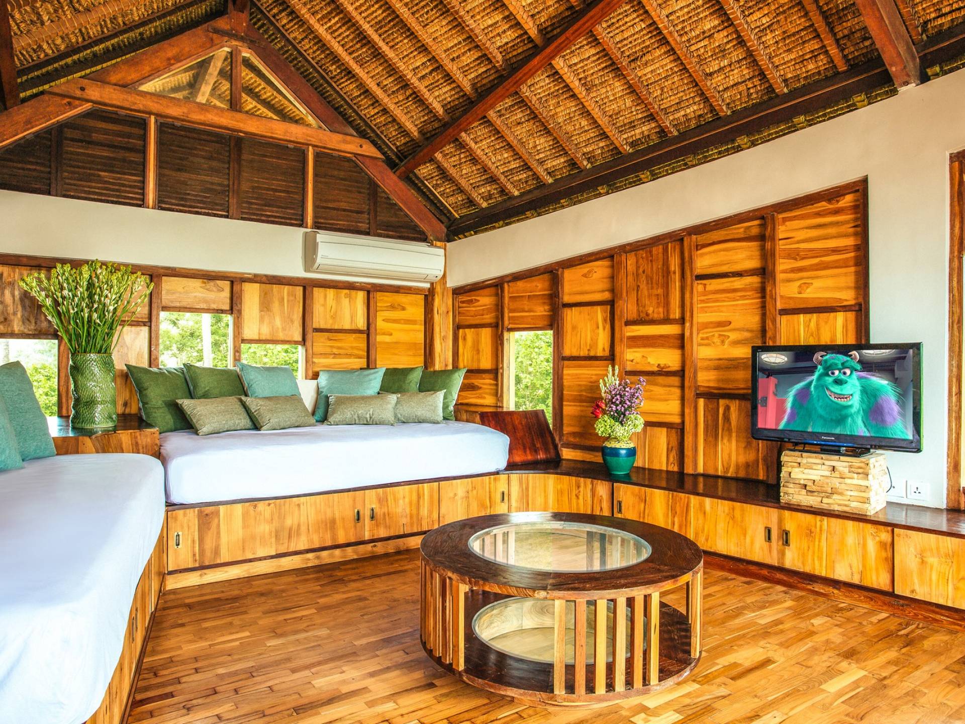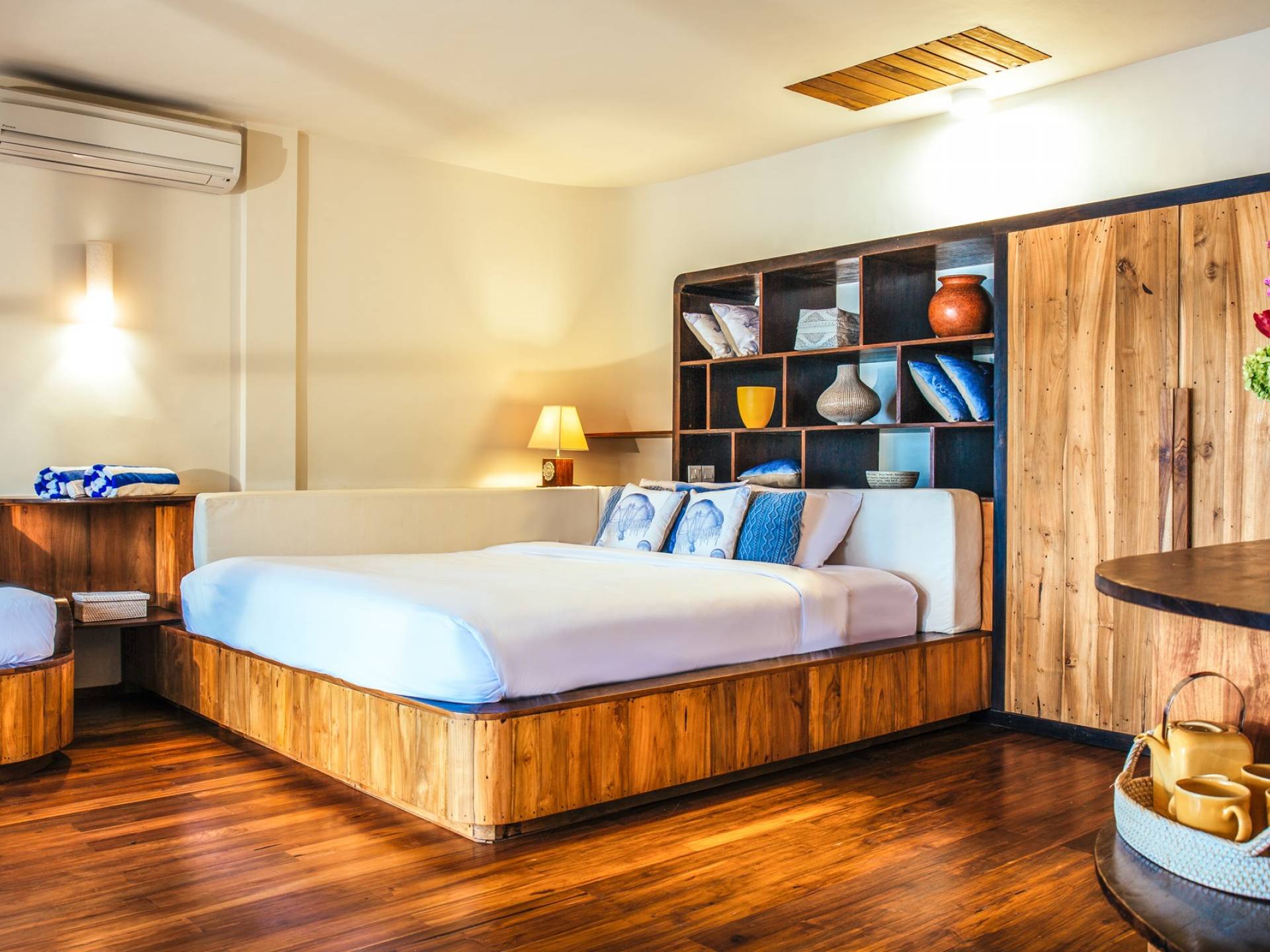 Das Cove Bali verfügt über 4 Schlafzimmer im Haupthaus und ein separates Gästehaus mit einem Schlafzimmer in der Nähe des Pools. Jedes Schlafzimmer hat seine eigene Terrasse oder Deck mit Blick auf das Meer und bietet den Gästen von jedem Zimmer aus einen wunderschönen Meerblick. Die Schlafzimmer haben eine komfortable Größe mit einer gemütlichen Atmosphäre. Jedes verfügt über eine eigene Klimaanlage und einen Deckenventilator für maximalen Komfort.