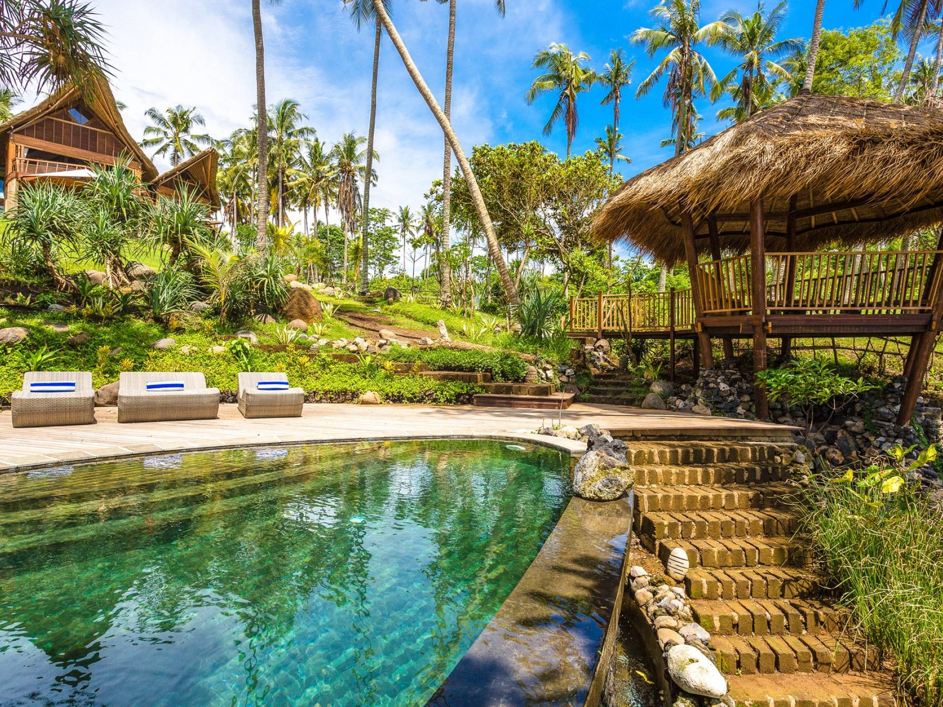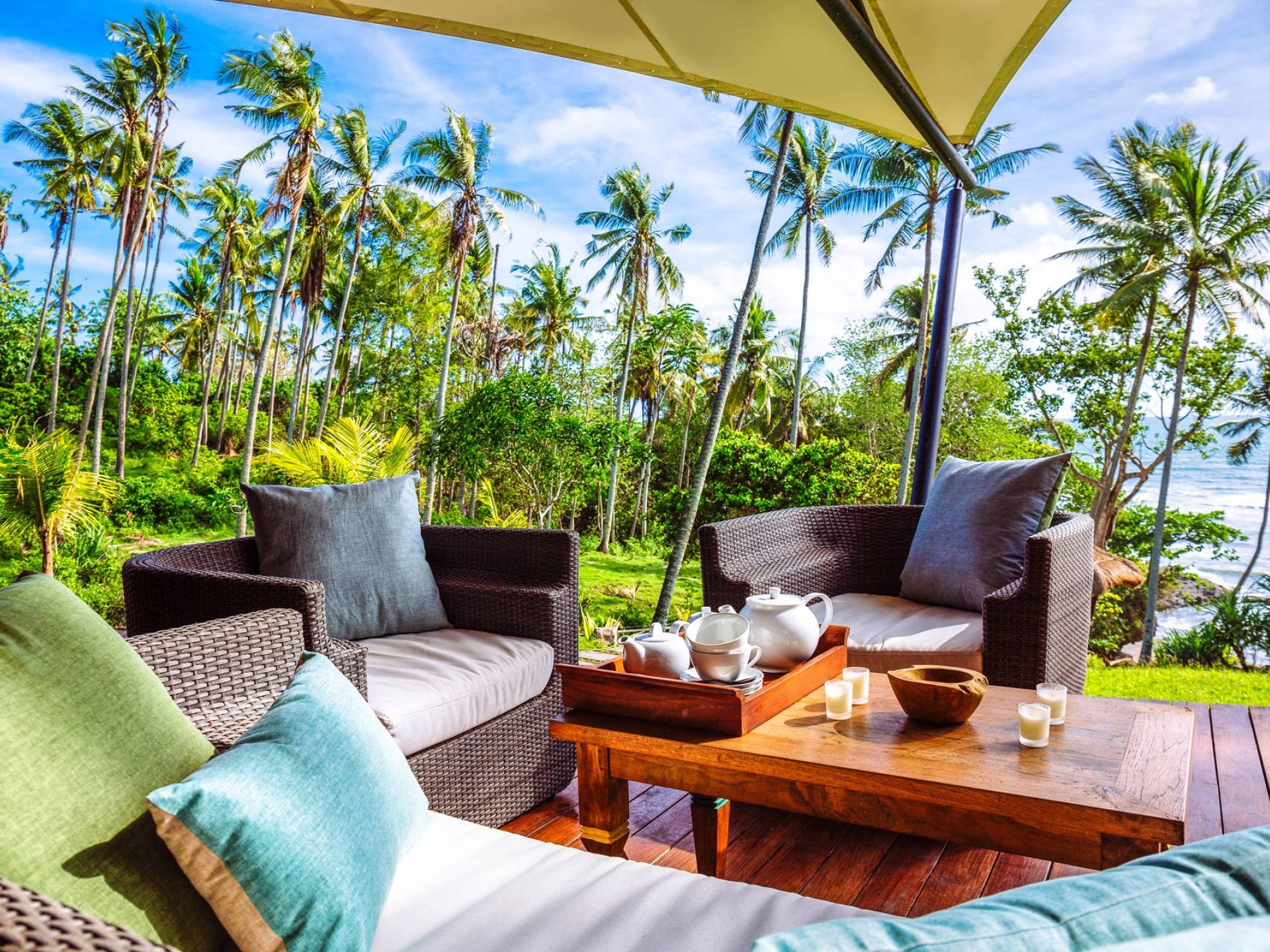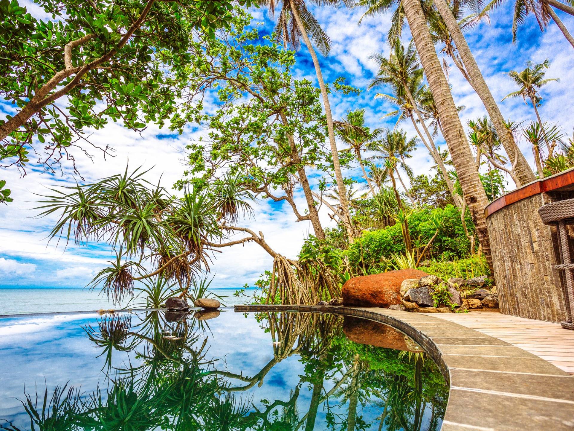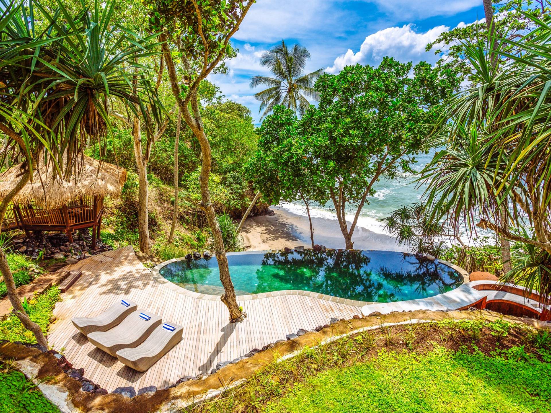 Genießen Sie von diesem Strandgrundstück mit einer begehbaren Grotte einen privaten Zugang zum Strand. Nehmen Sie ein belebendes Bad in einem 14-Meter-Infinity-Pool oder verbringen Sie einfach die Zeit am Pool mit dem sanften Schaukeln der Kokospalmen. Es gibt viel Platz am Pooldeck mit Sundowner-Bar zum Faulenzen und Entspannen. Oder haben Sie sportliche Action auf dem Tennisplatz, der auch für Badminton, Volleyball oder andere Spiele genutzt werden kann.