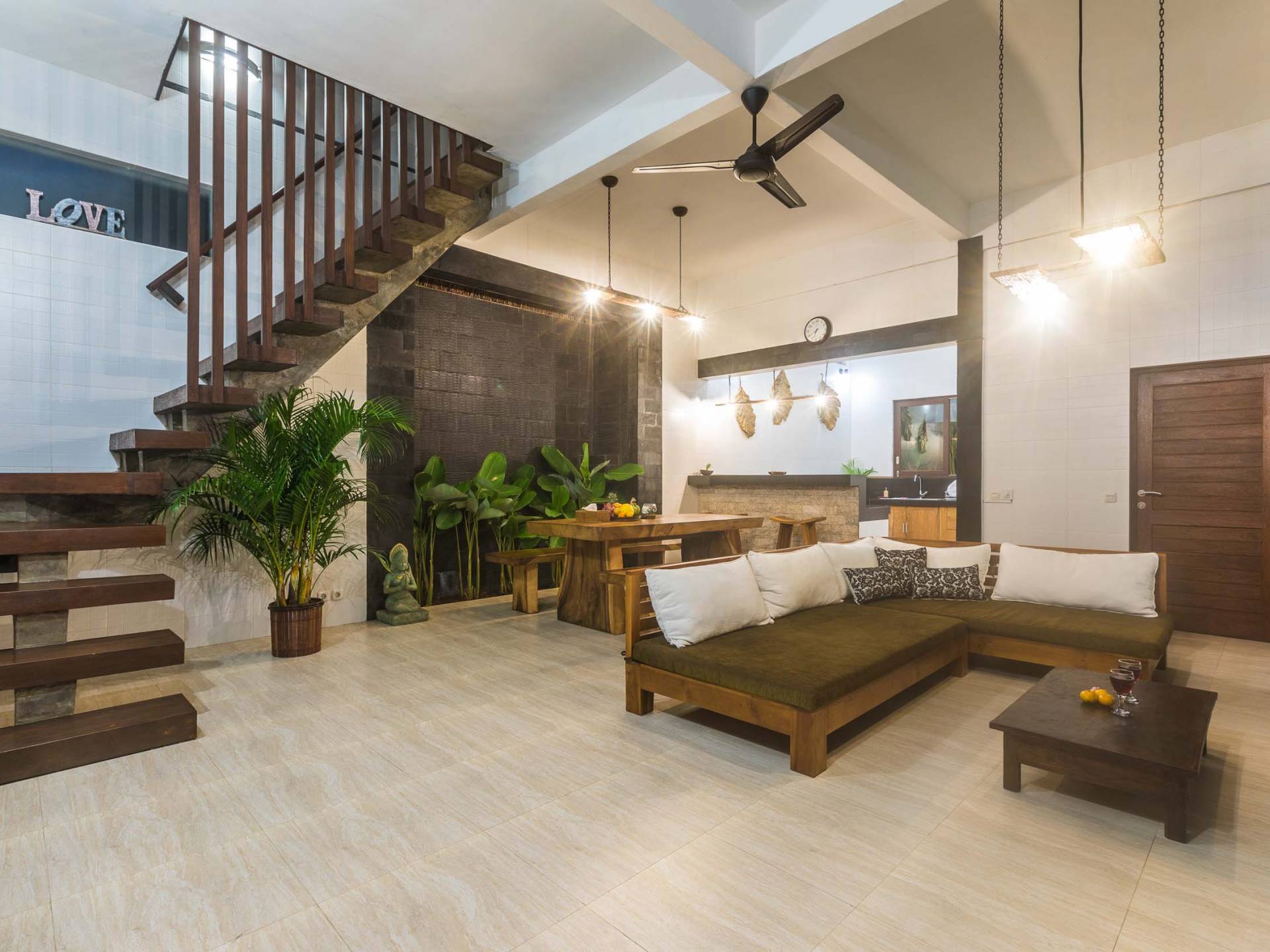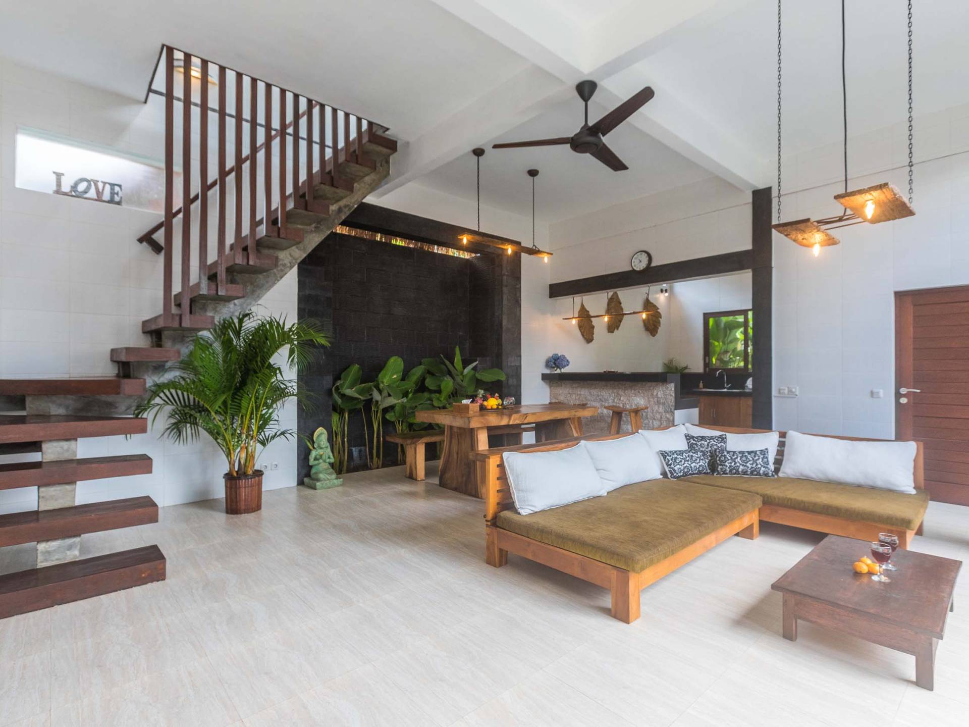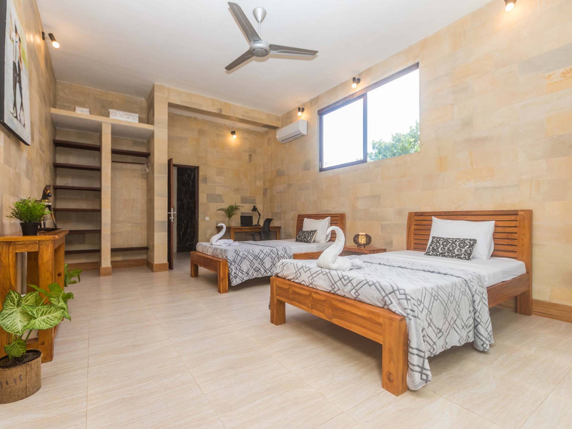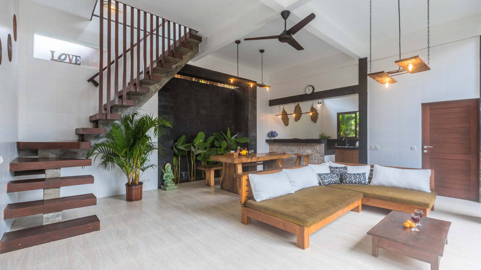 Dies ist eine verschönerte zweistöckige Villa. Ein Schlafzimmer mit Bad, Küche und Wohnzimmer befindet sich im 1. Stock. Zwei weitere Schlafzimmer mit Badezimmern, eine offene Lounge und ein Yoga-Bereich sowie ein Sky Garden-Bereich befinden sich im zweiten Stock. Es gibt schöne und sichere Treppen und einen richtigen Handlauf. Jedes Zimmer inklusive Wohnbereich und Küche ist mit einem Deckenventilator ausgestattet, so dass es im Haus immer schön und entspannt ist. Zwei Schlafzimmer sind mit Klimaanlage ausgestattet, das dritte ist mit einem Deckenventilator ausgestattet, der stark genug ist, sodass Sie möglicherweise sogar nach einer Decke fragen.